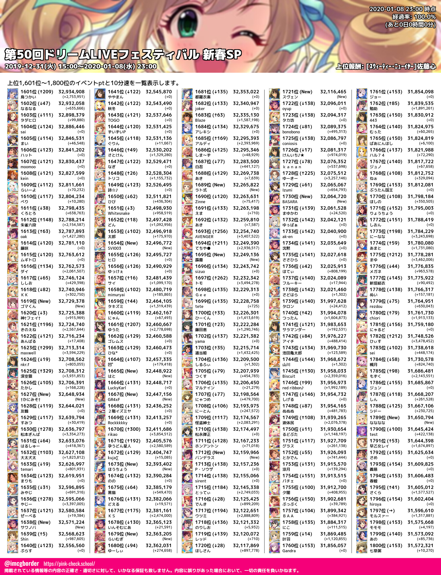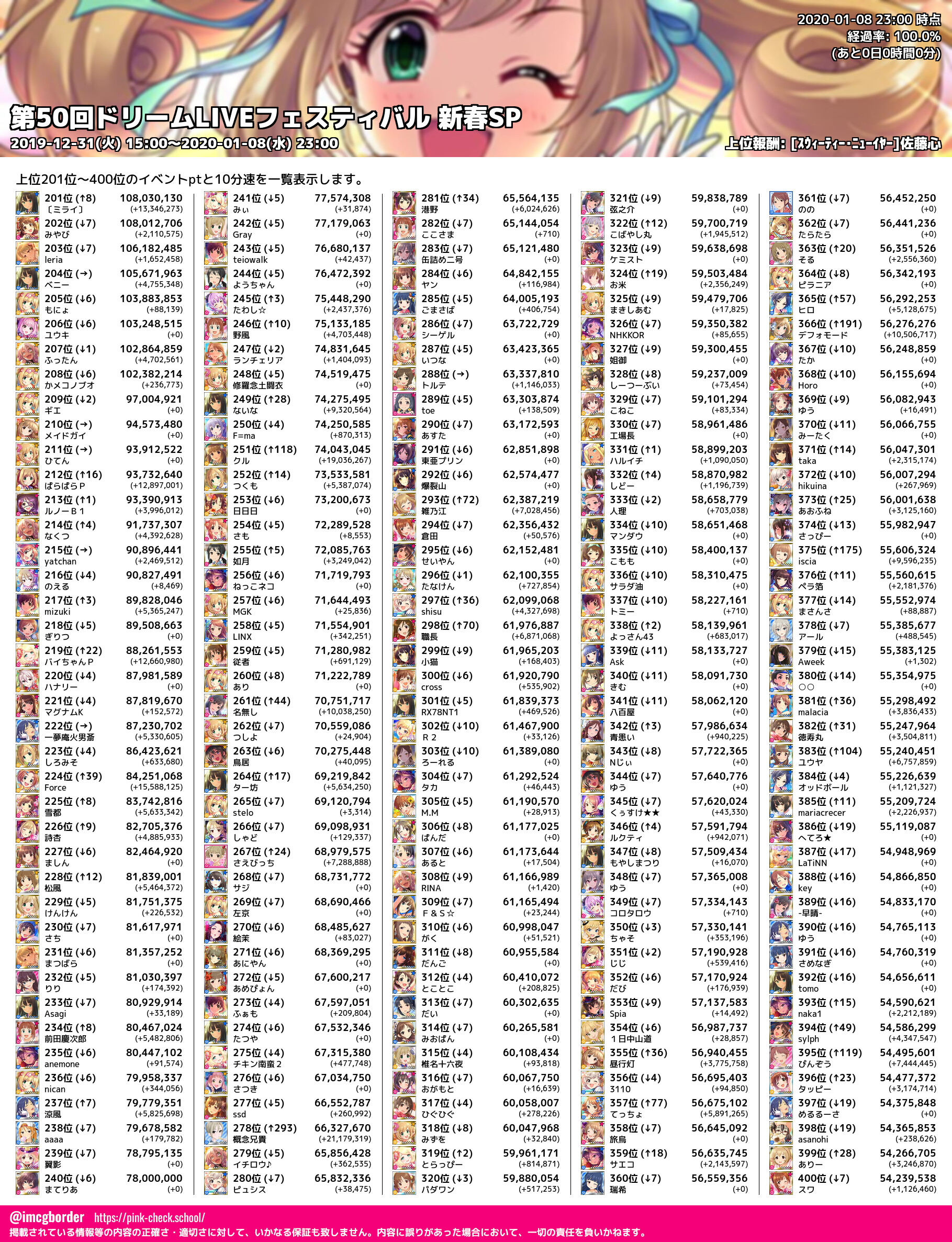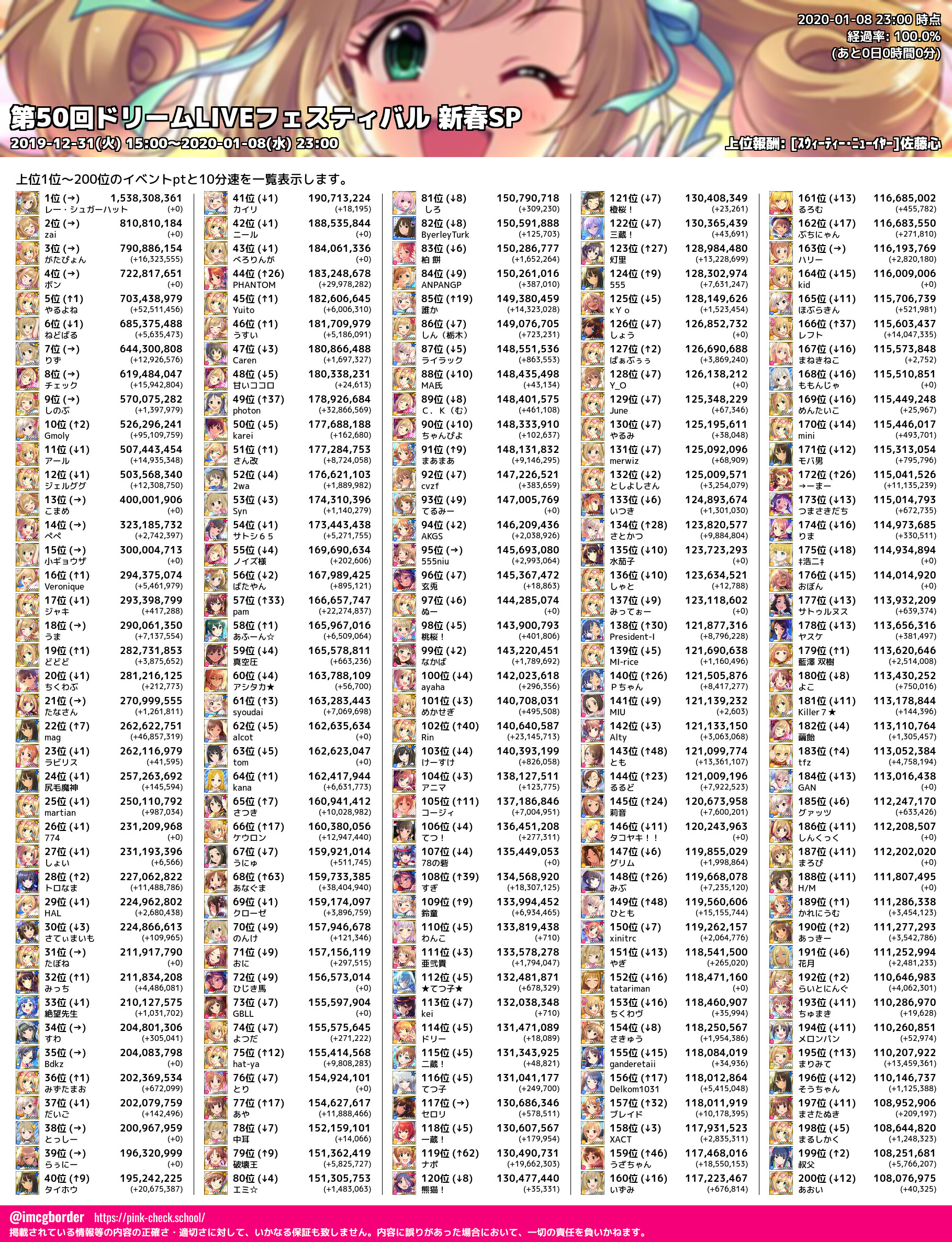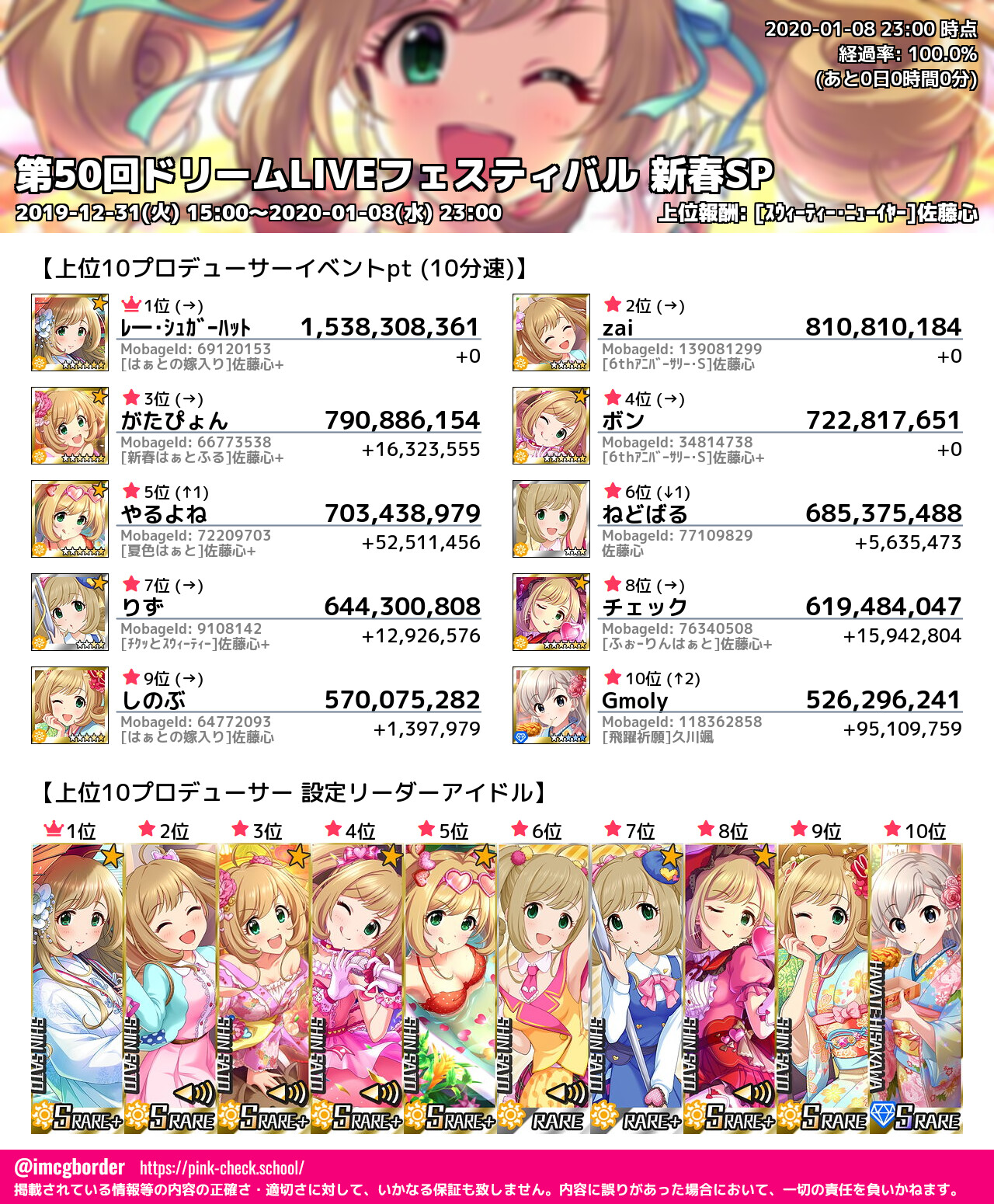 上位プロデューサースコア (2020-01-08 23:00 時点)