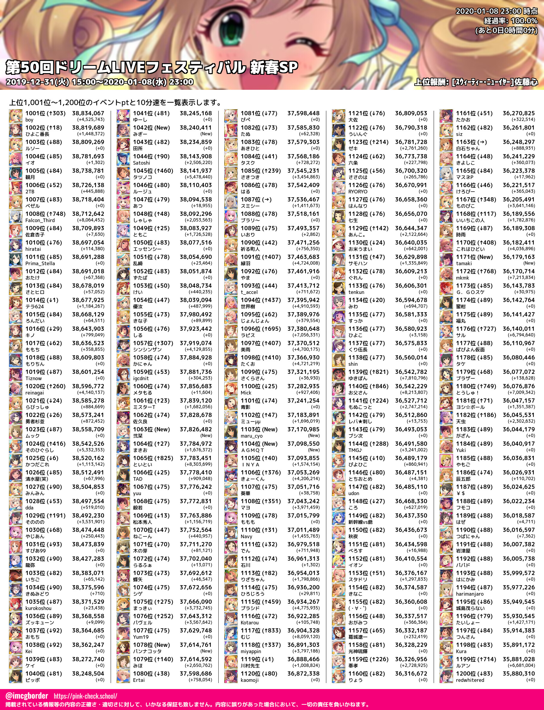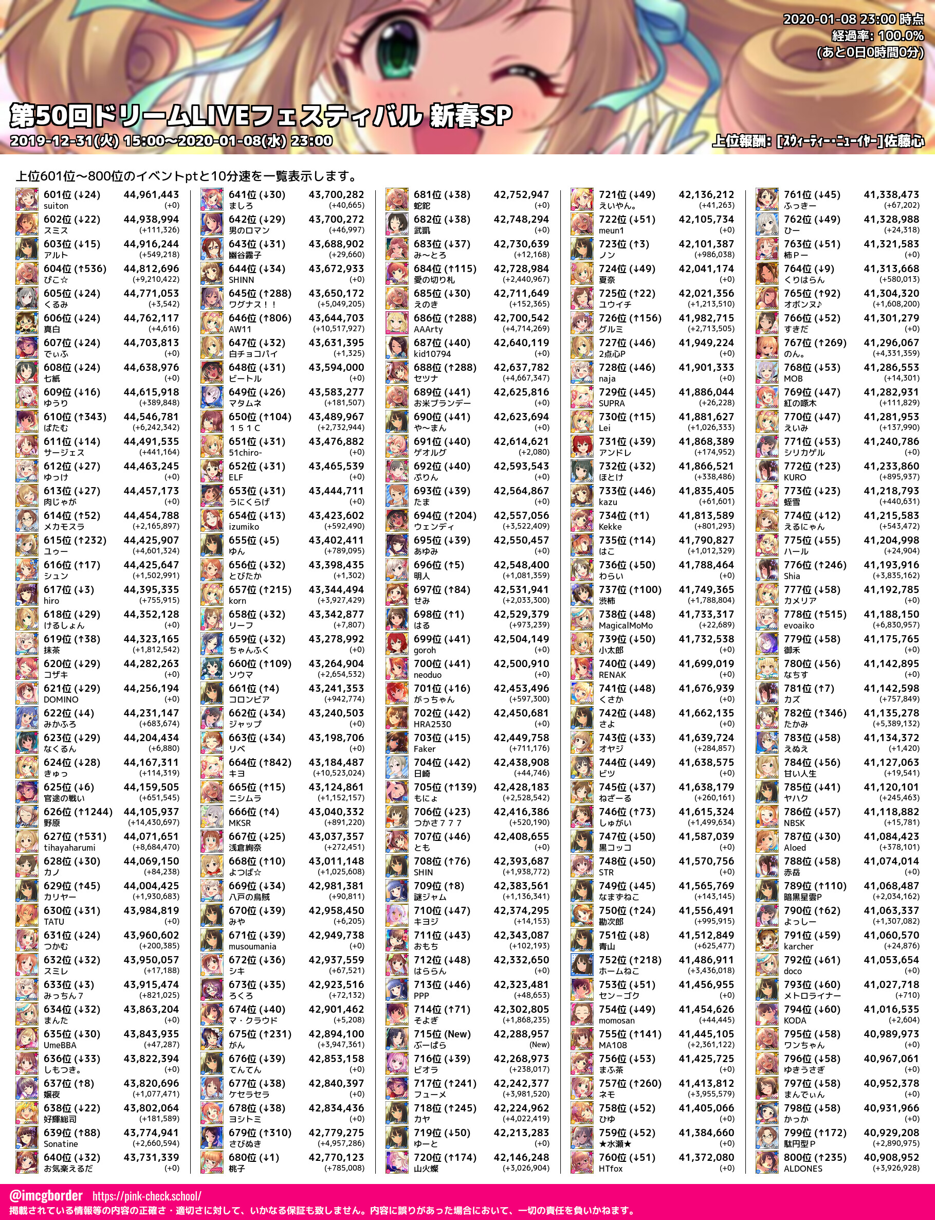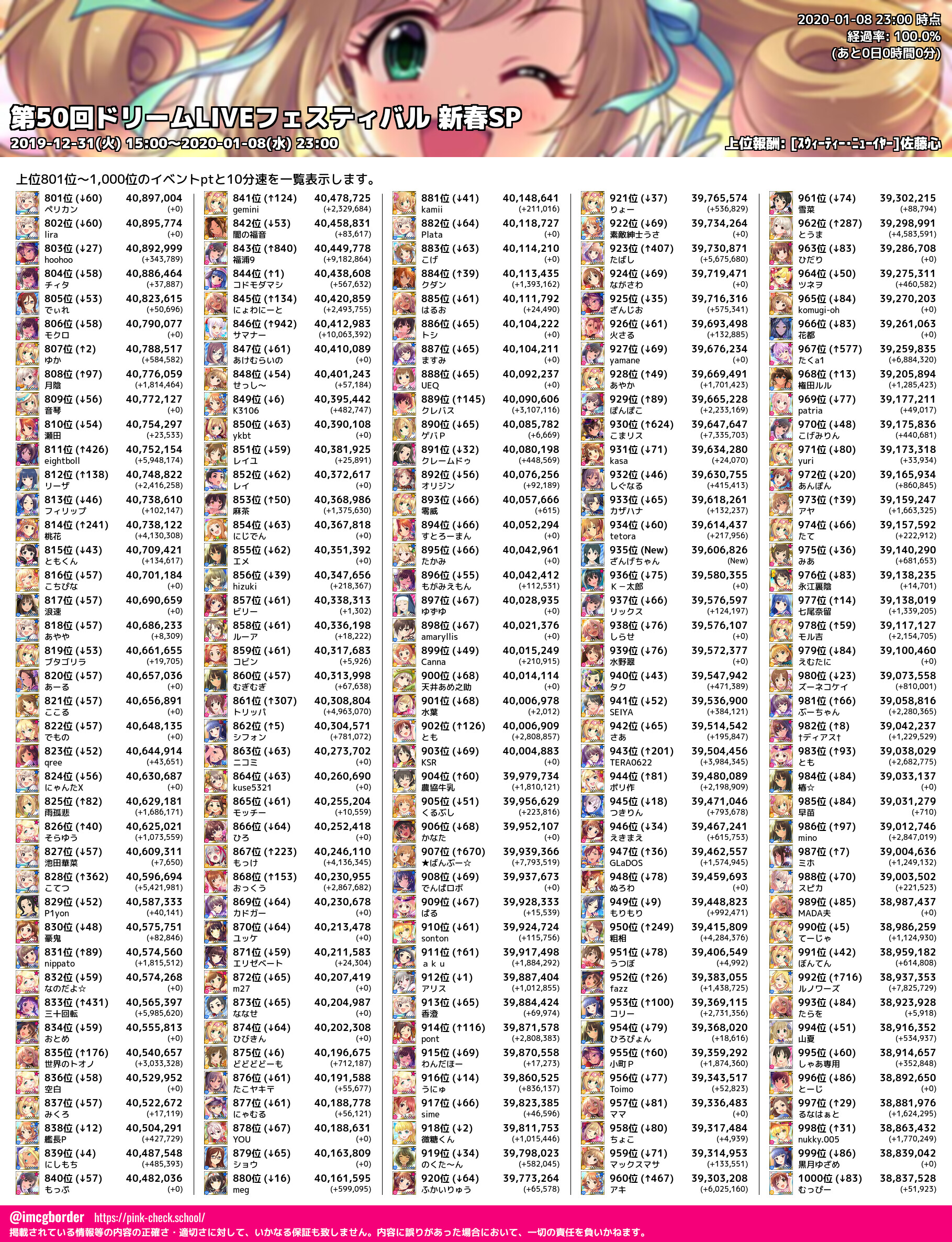上位プロデューサースコア (2020-01-08 23:00 時点)
