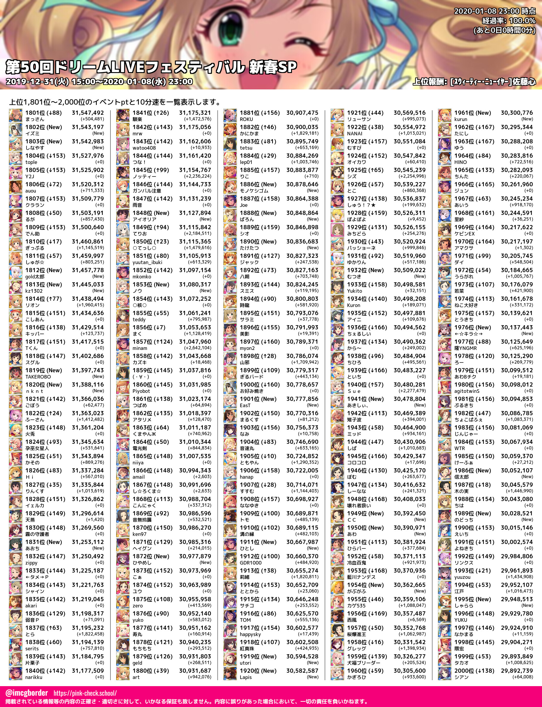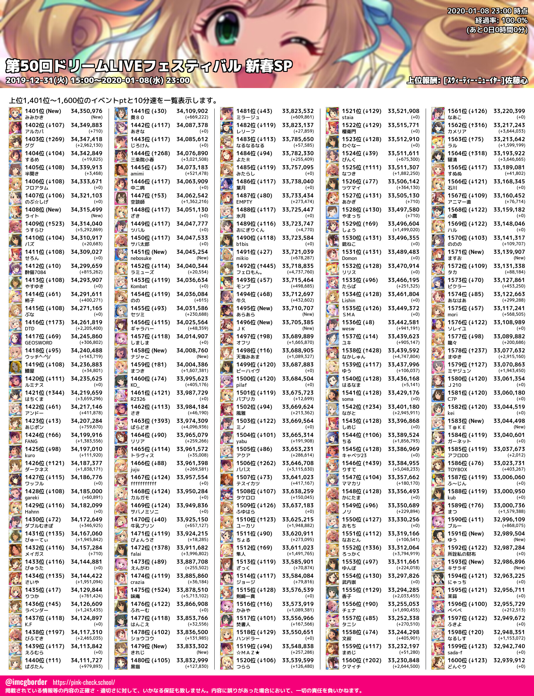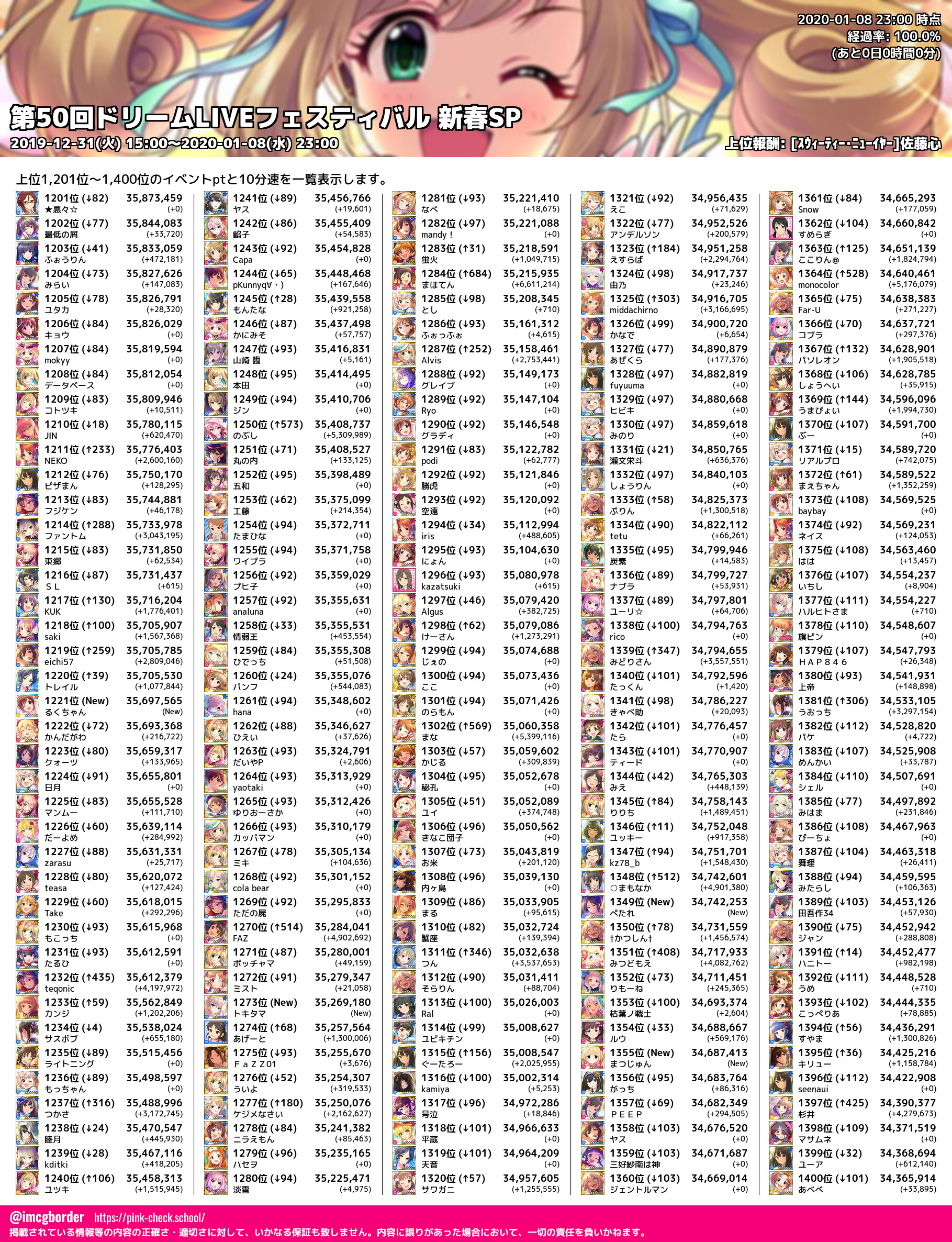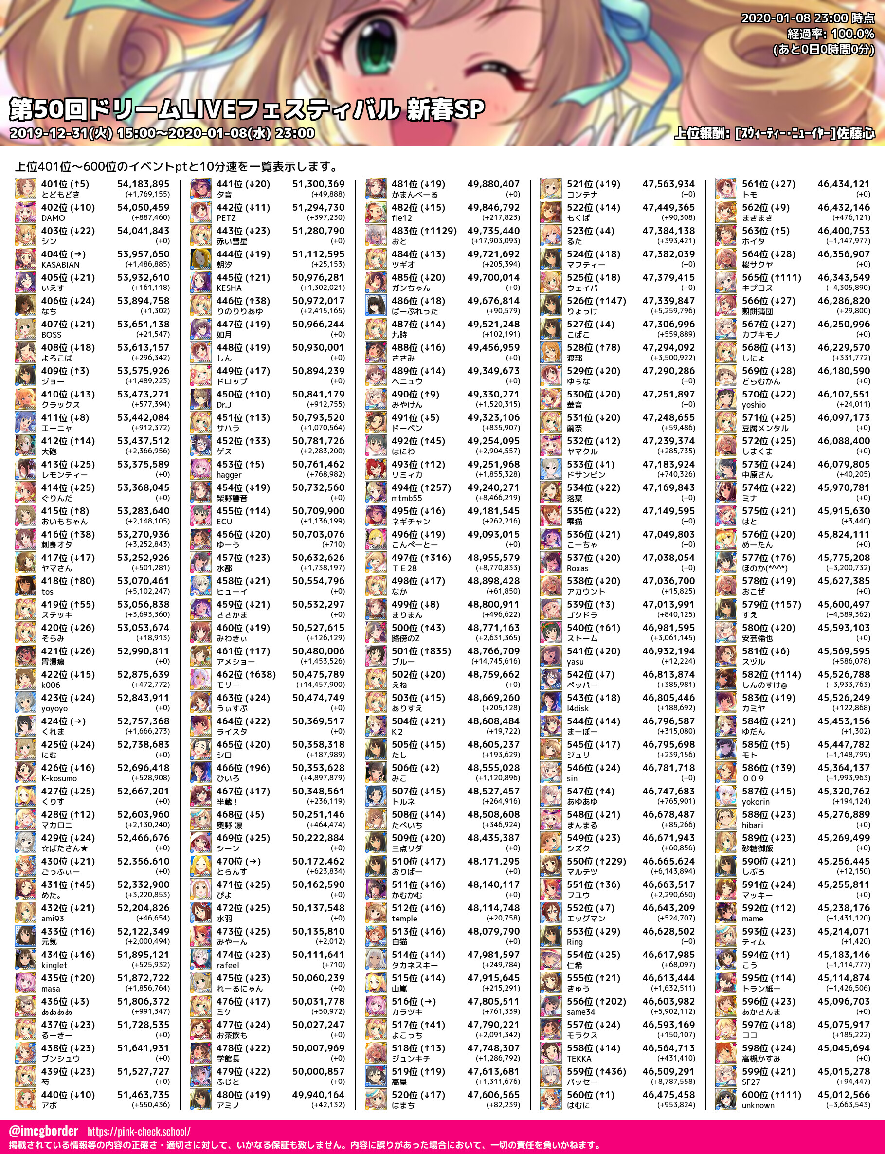 上位プロデューサースコア (2020-01-08 23:00 時点)