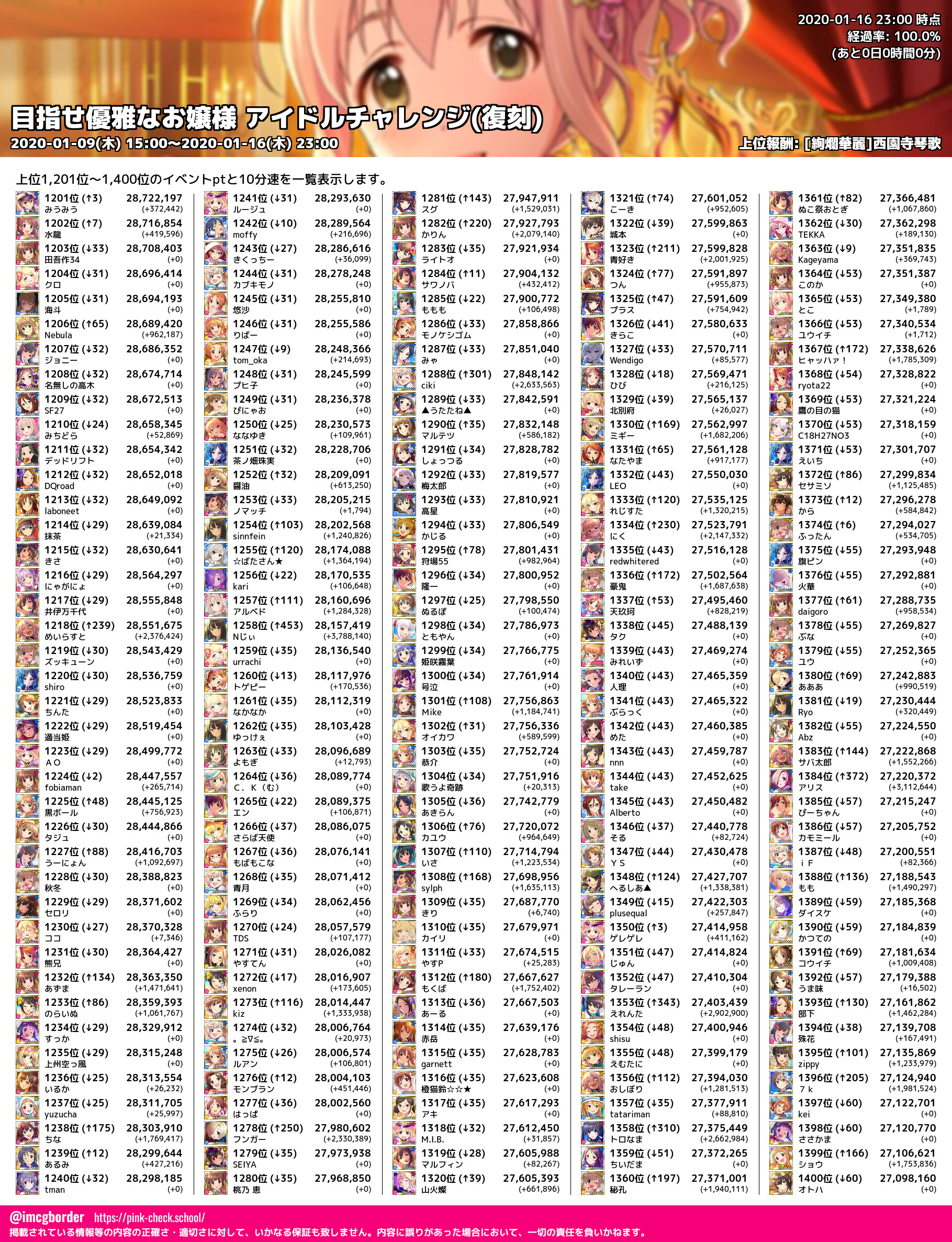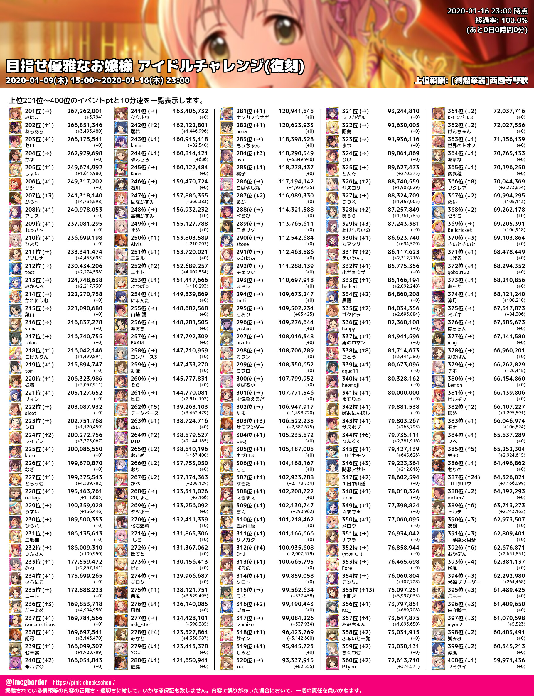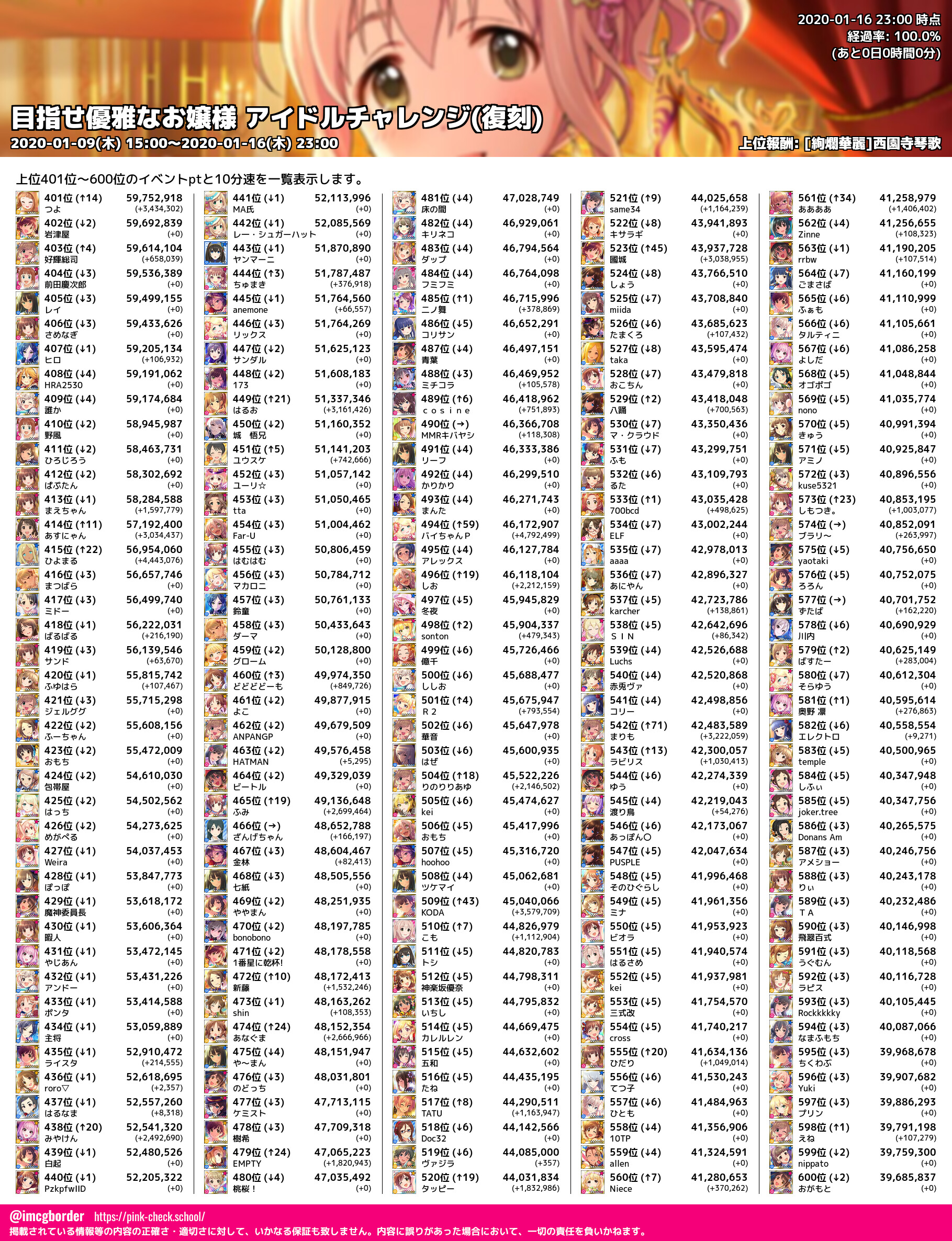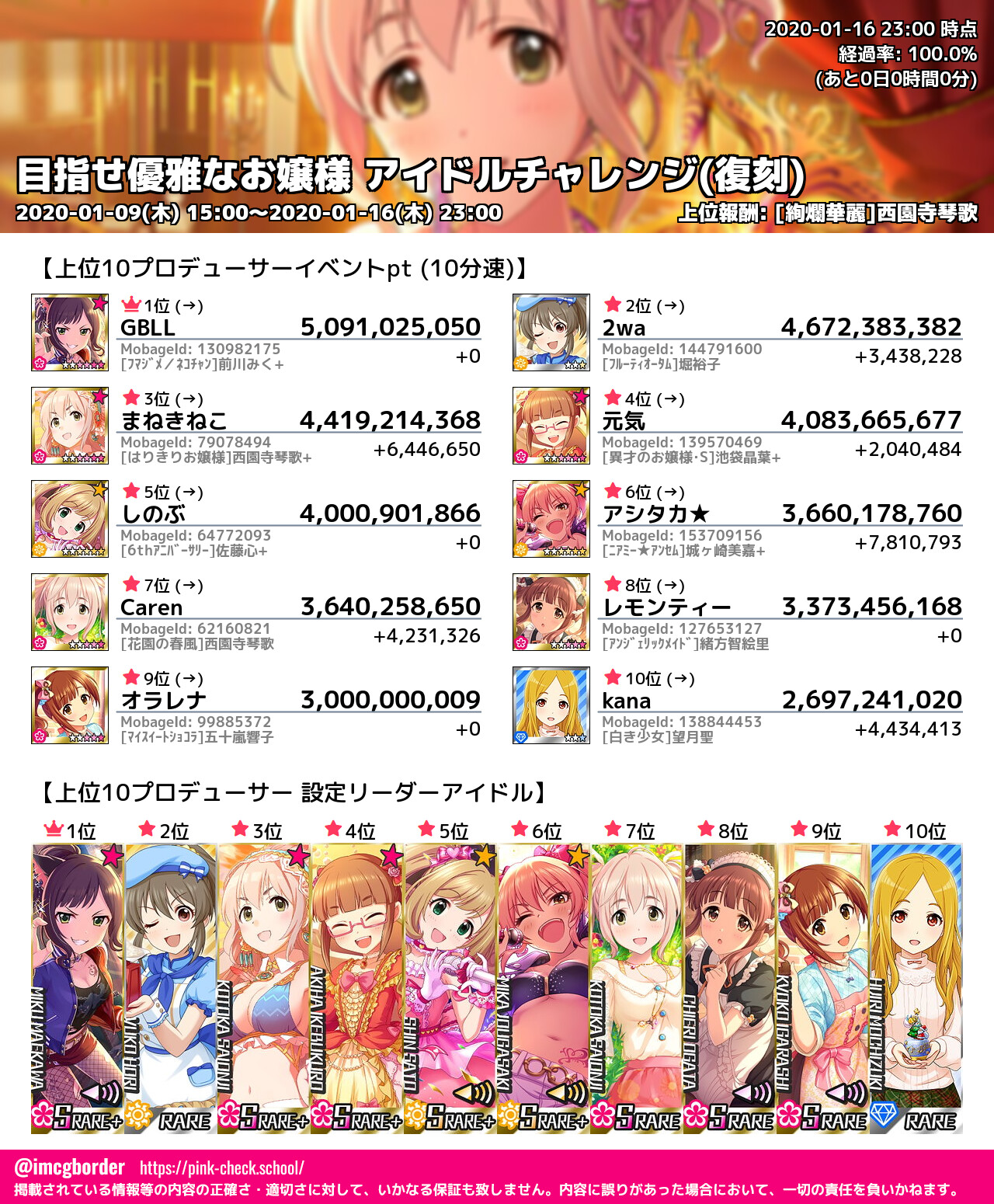 上位プロデューサースコア (2020-01-16 23:00 時点)