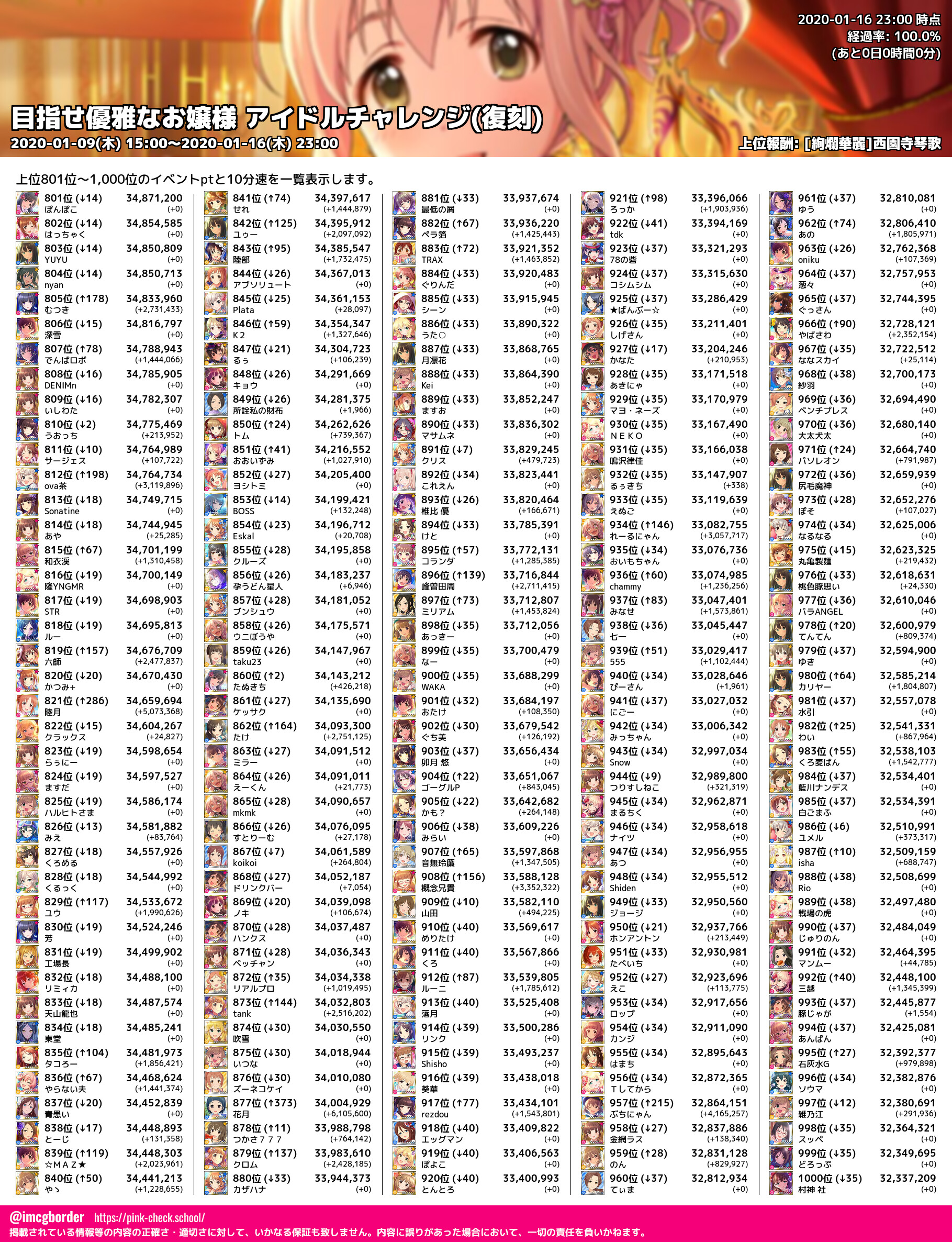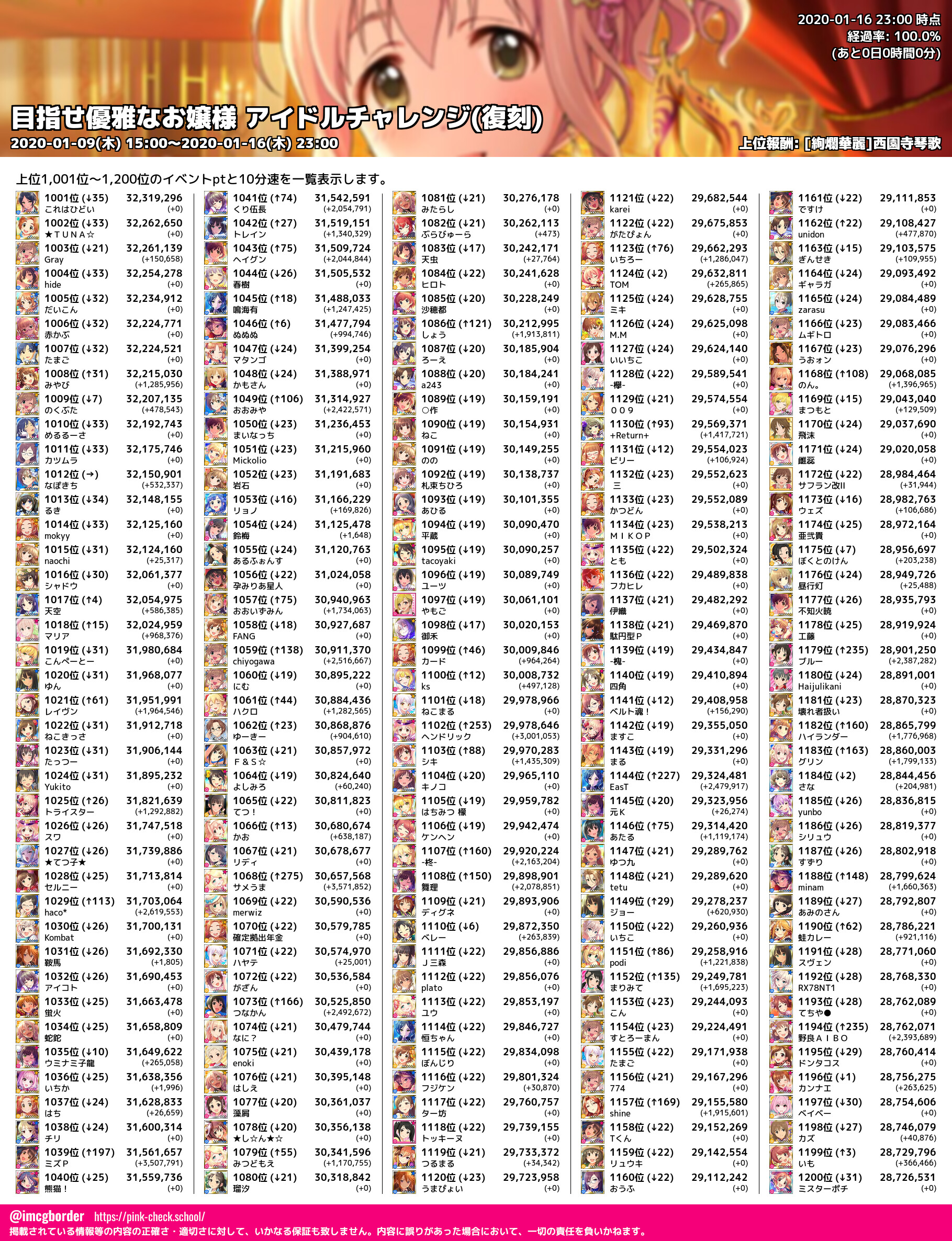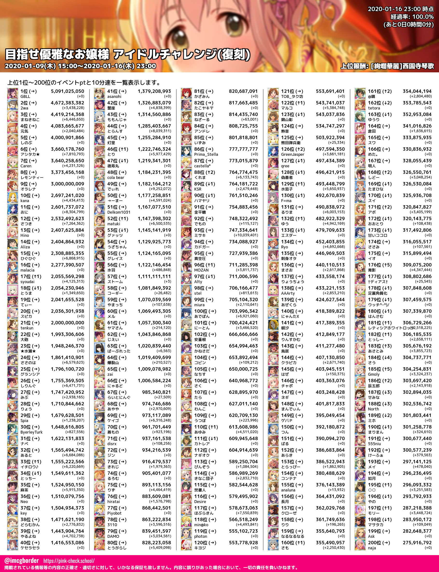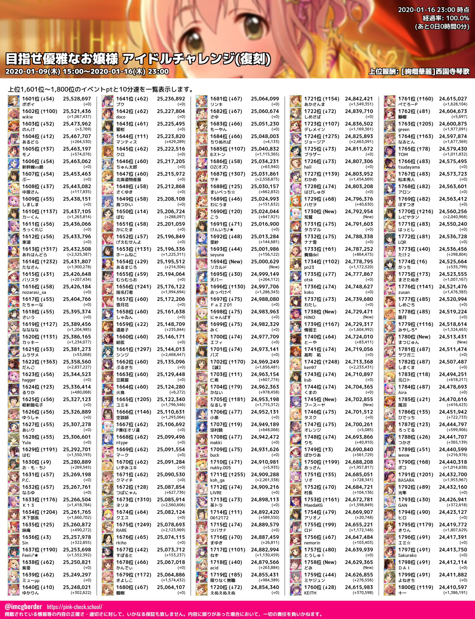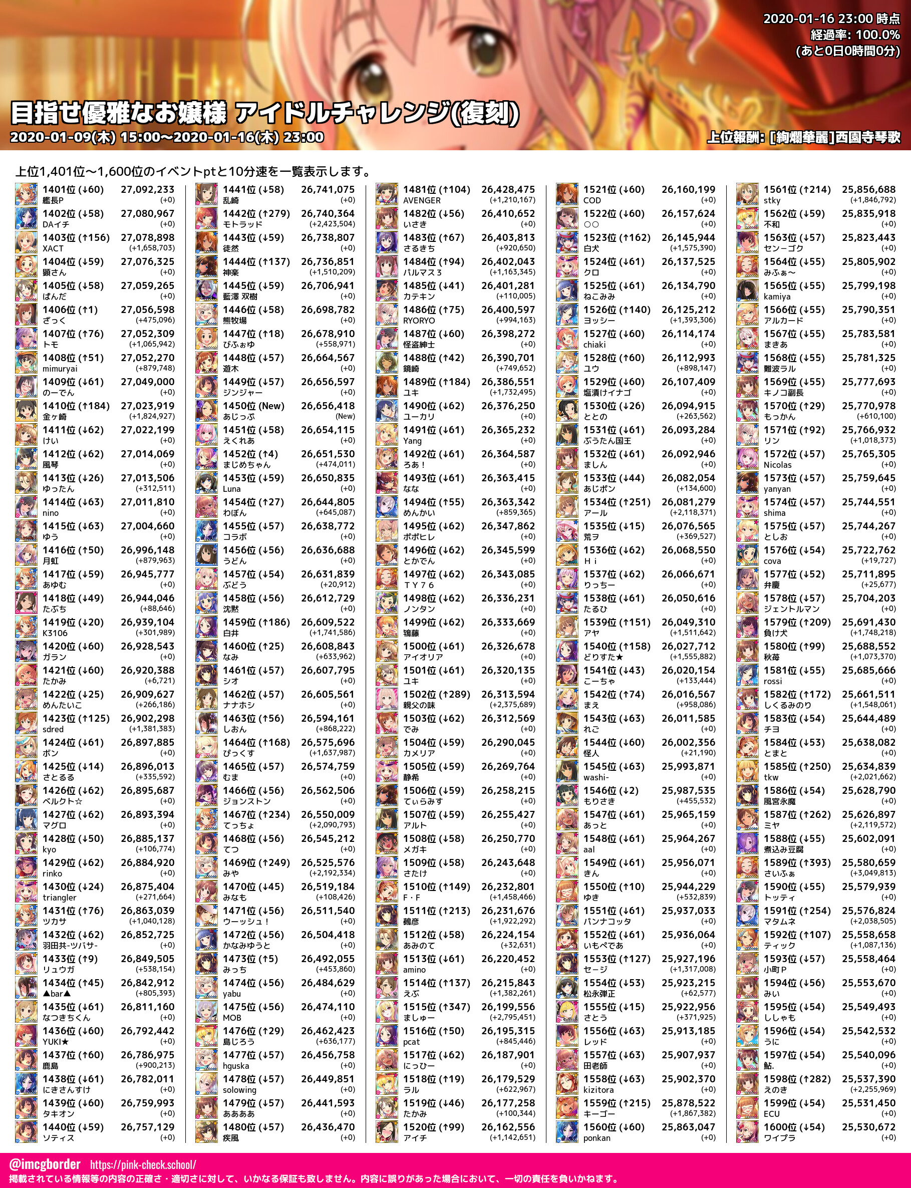 上位プロデューサースコア (2020-01-16 23:00 時点)