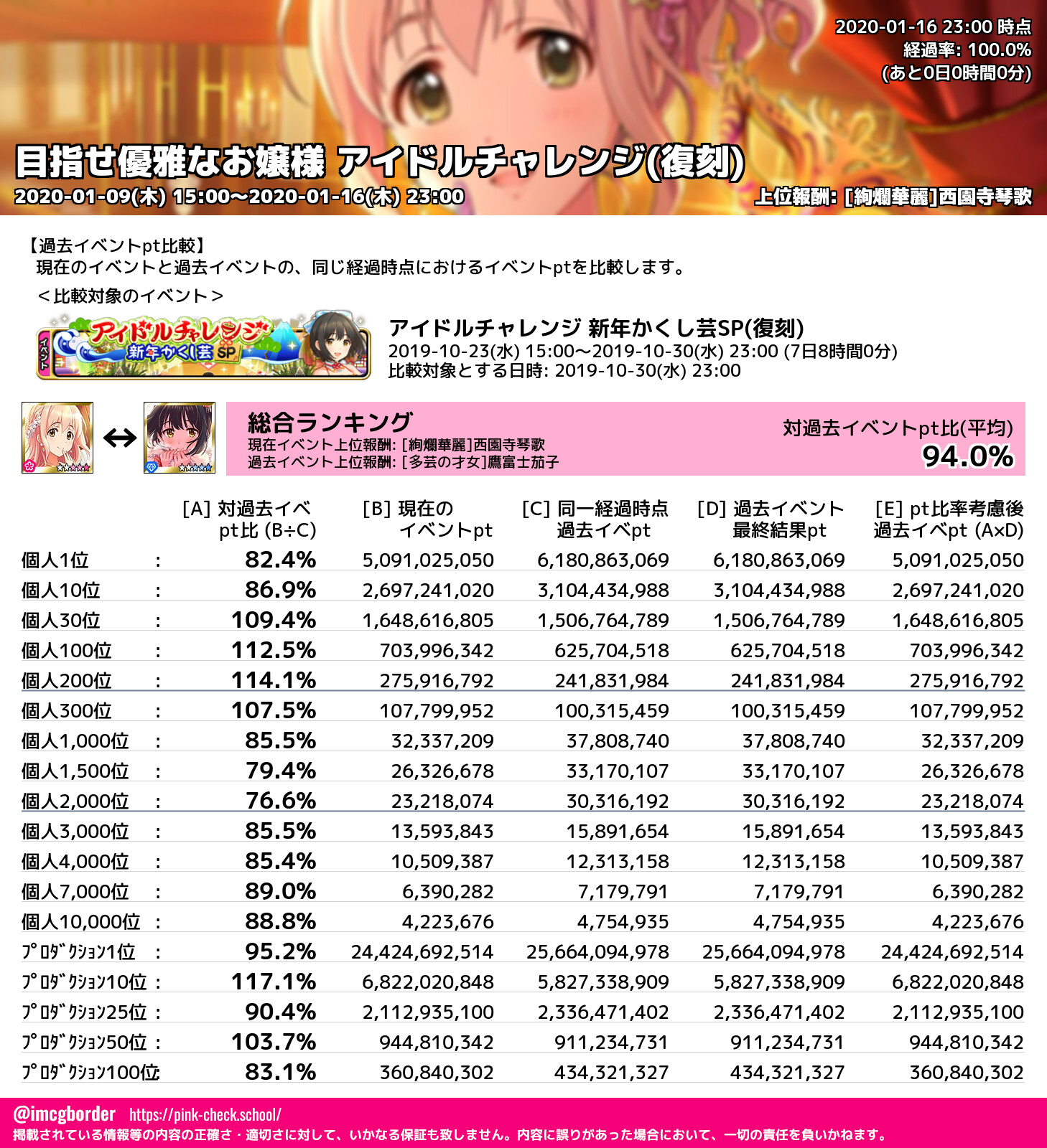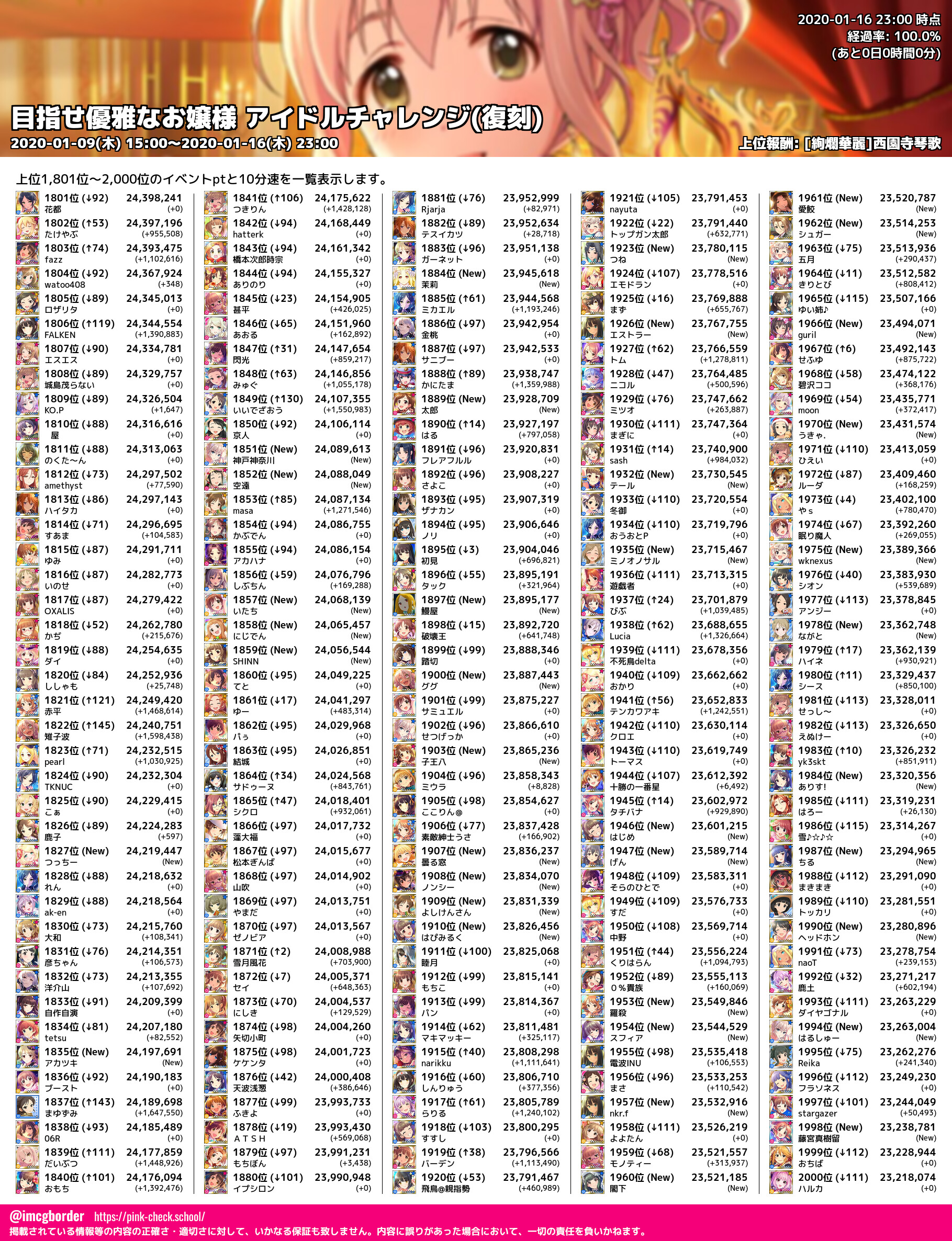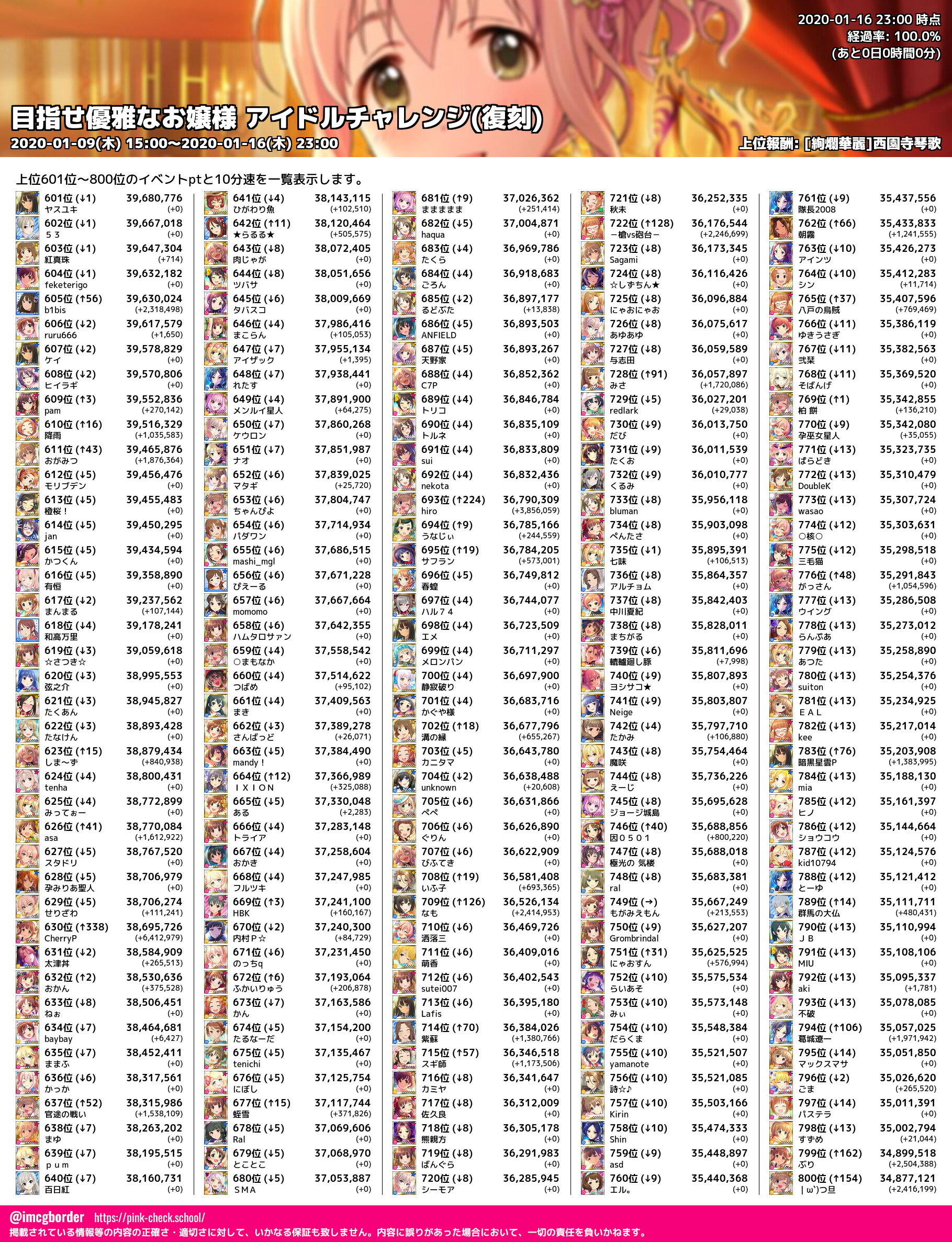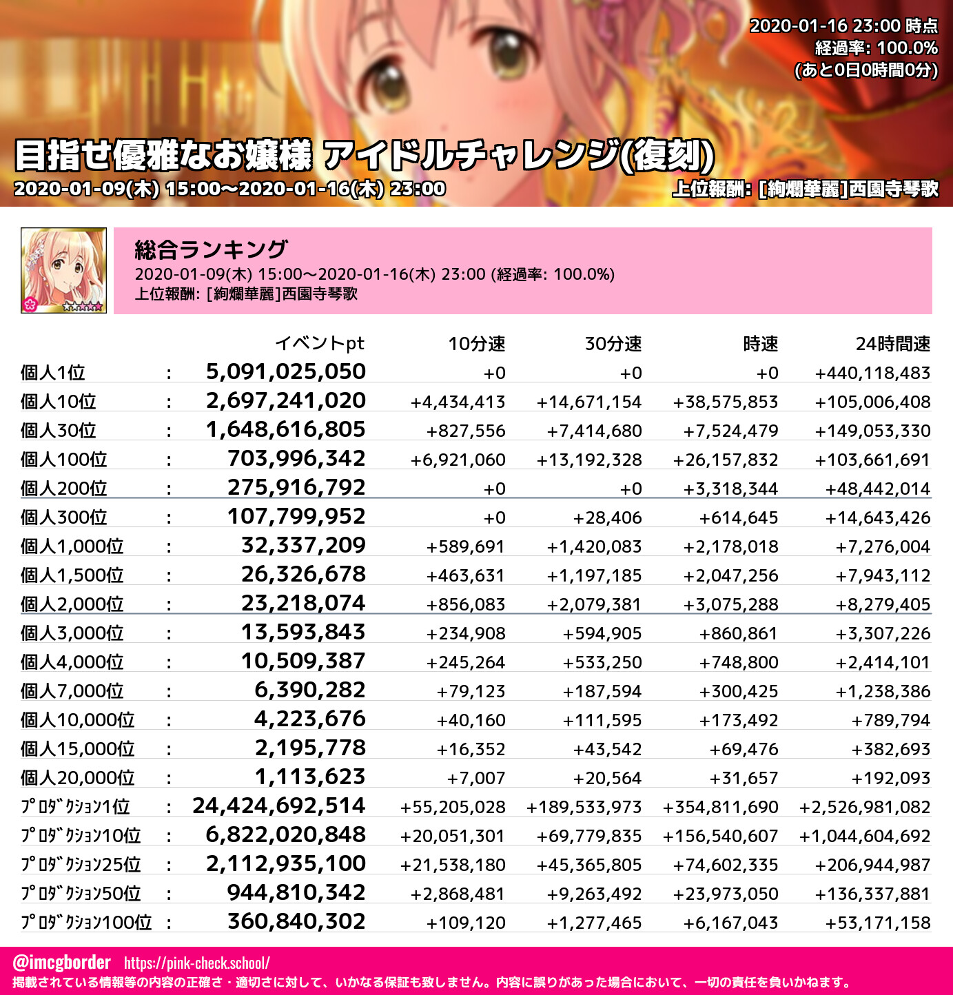 上位プロデューサースコア (2020-01-16 23:00 時点)
