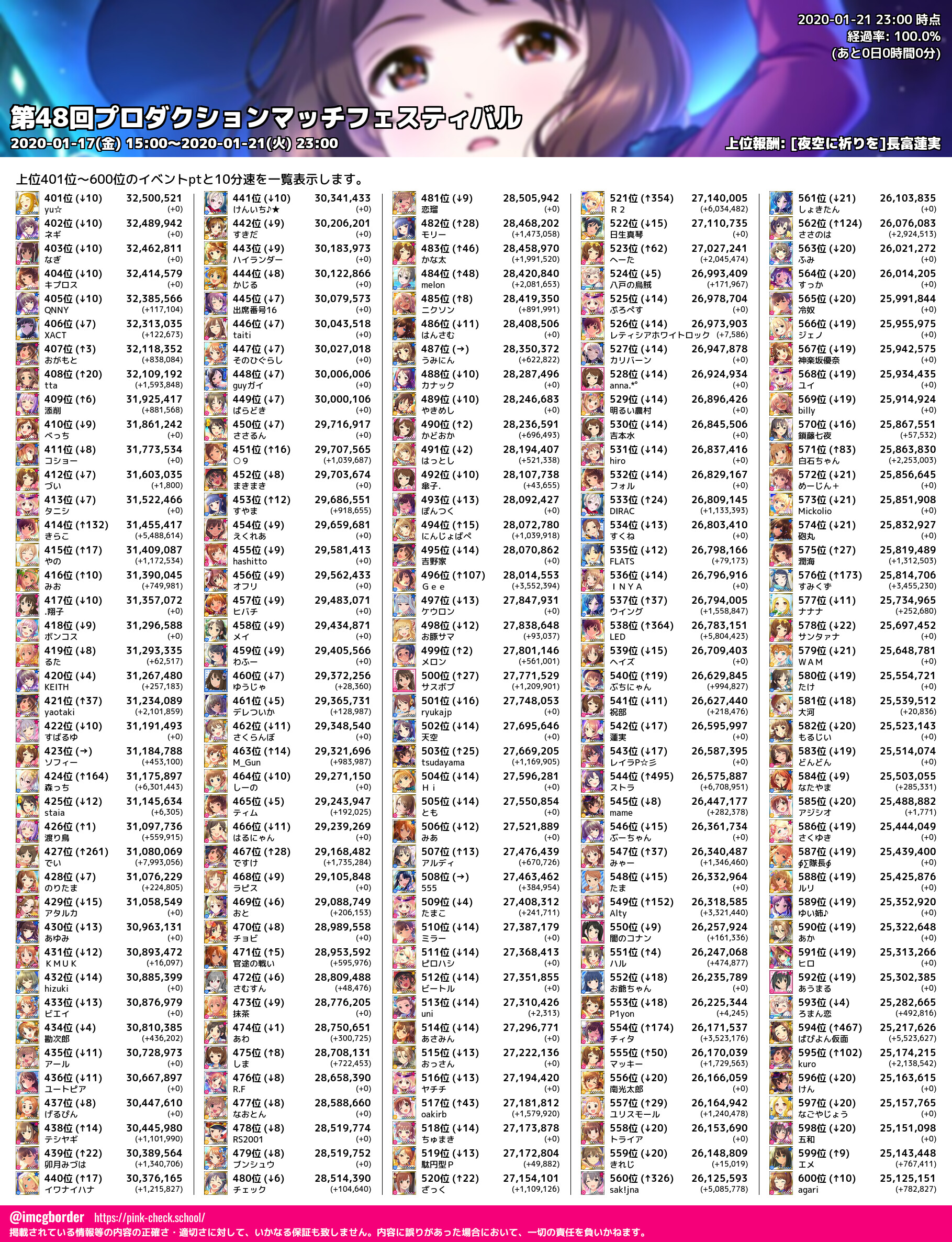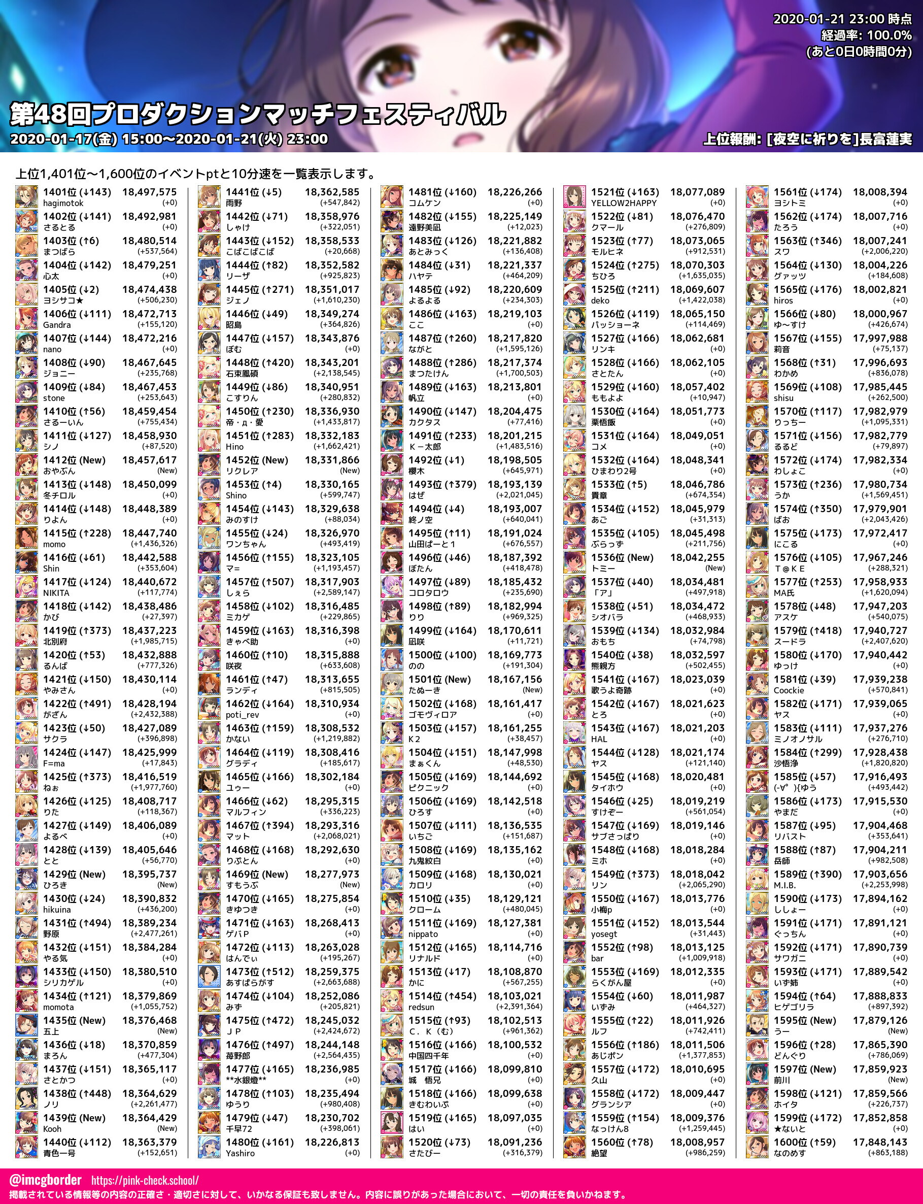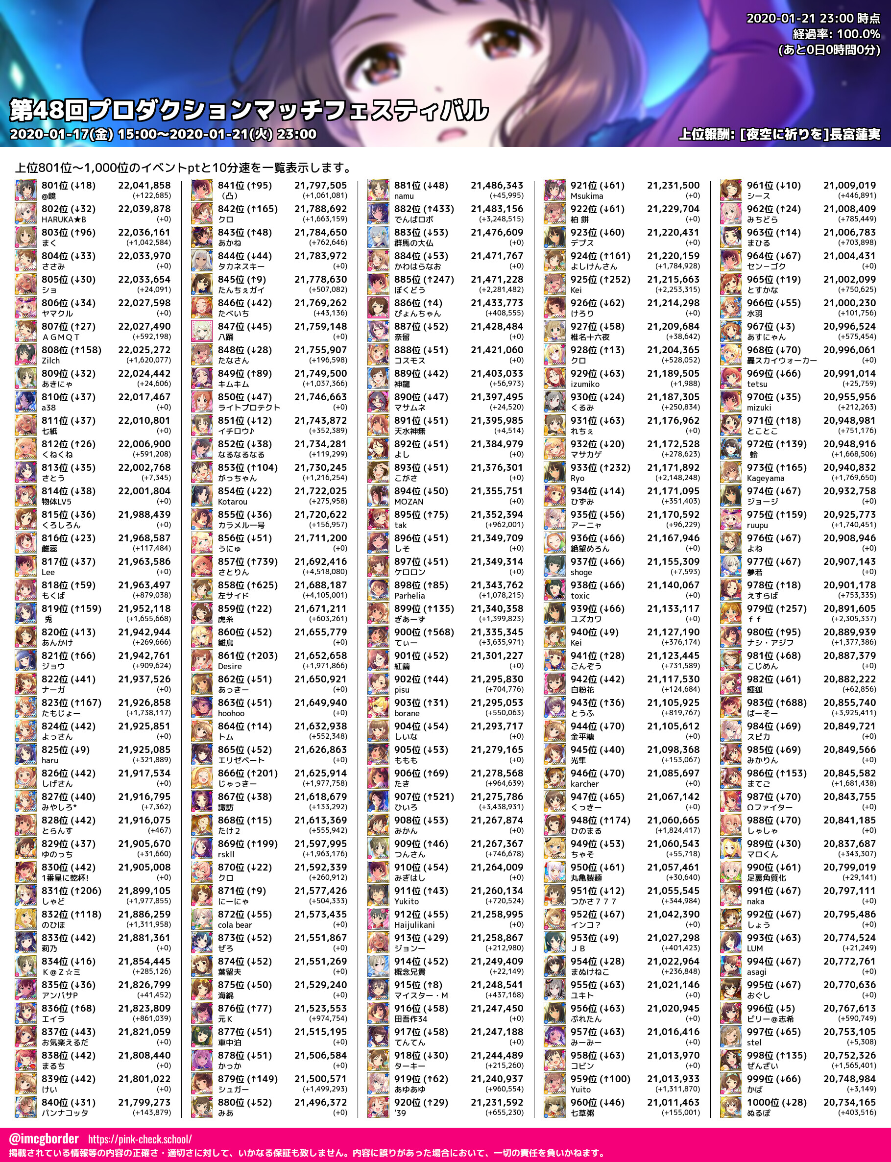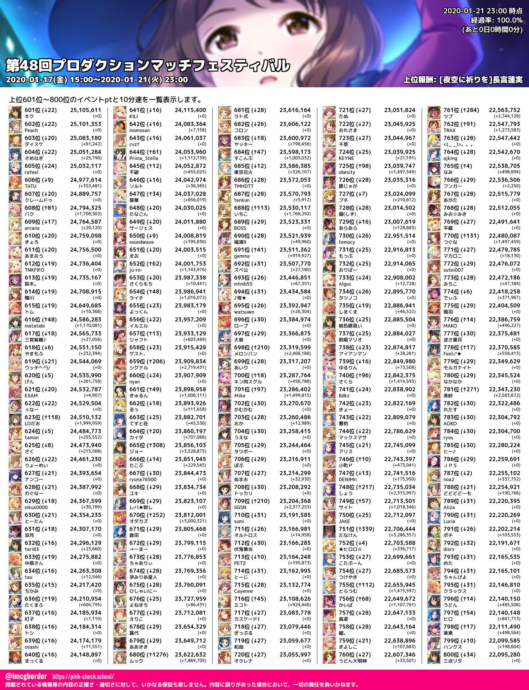 上位プロデューサースコア (2020-01-21 23:00 時点)