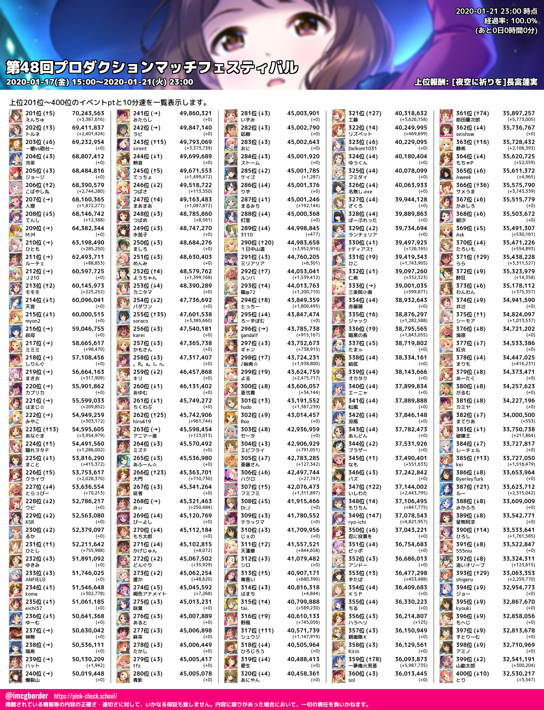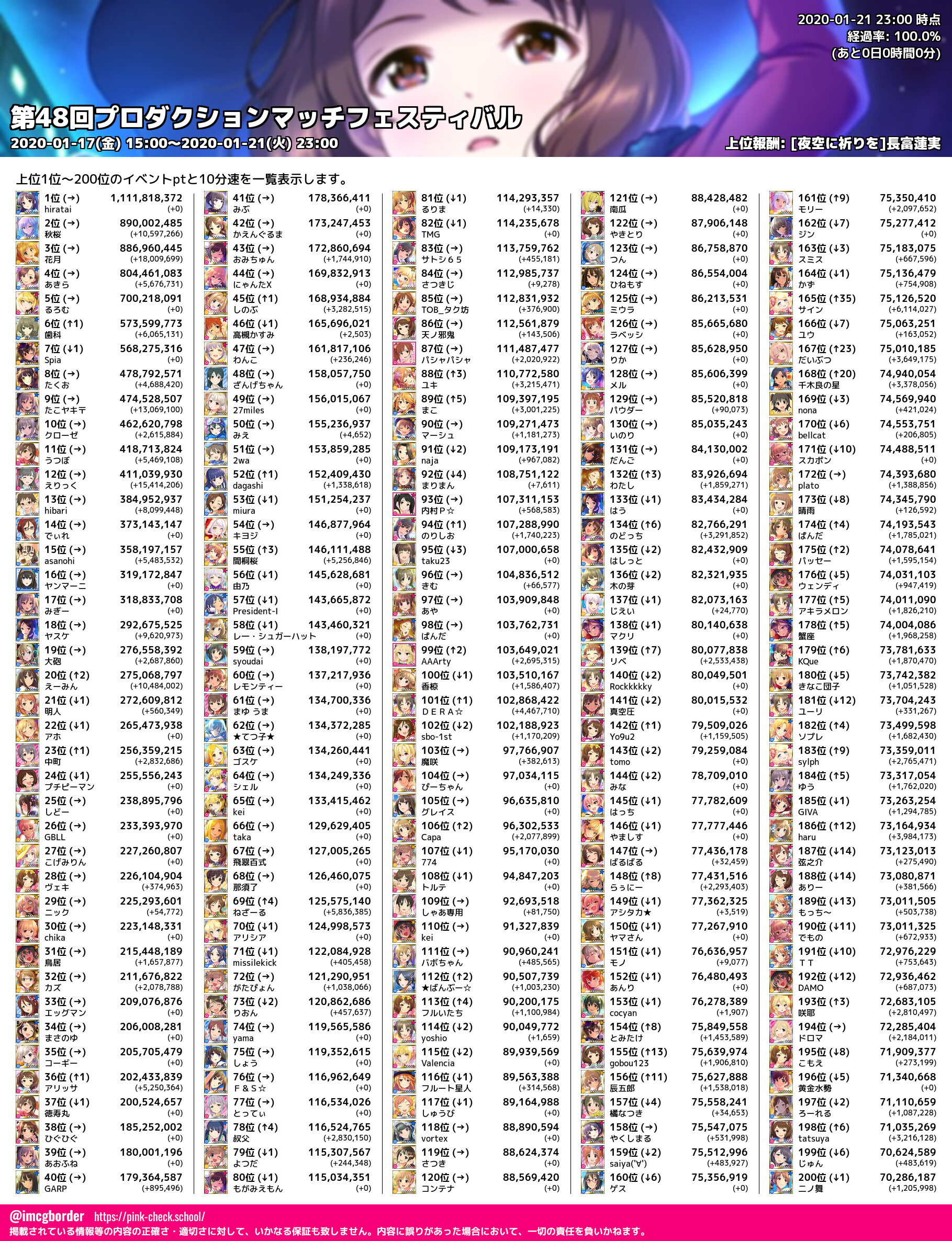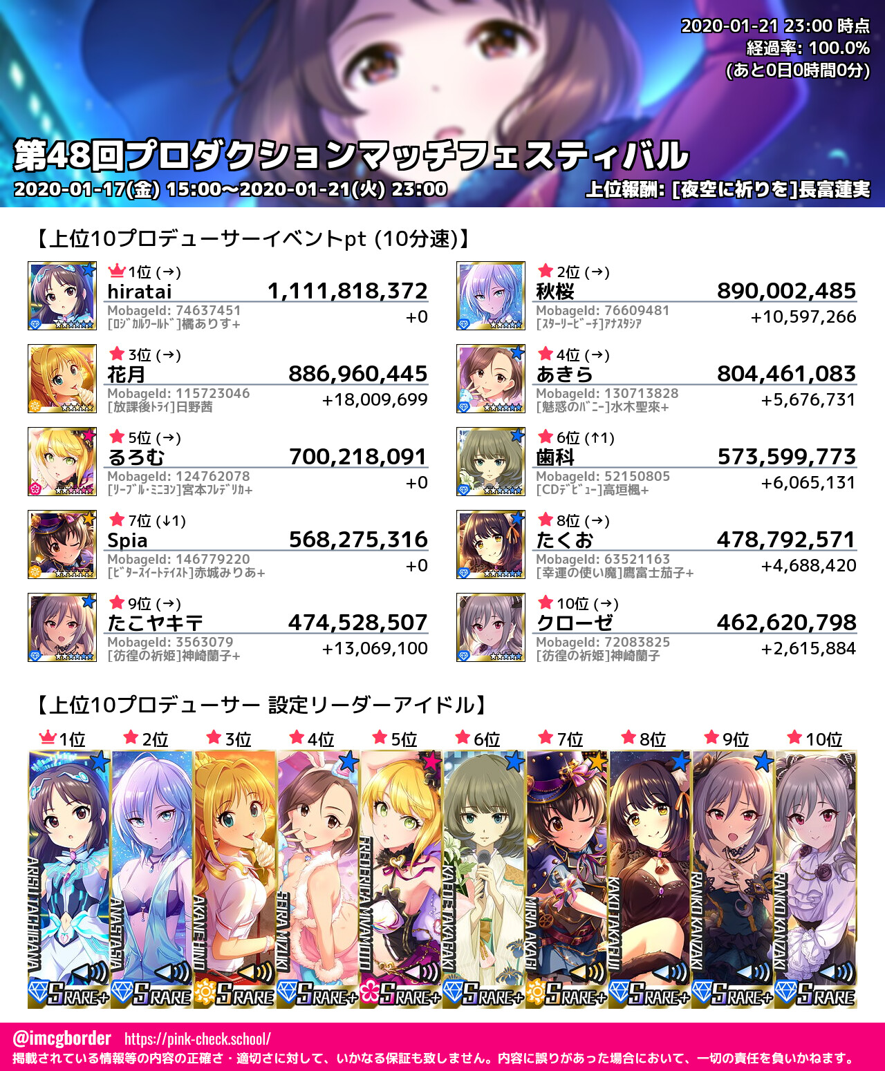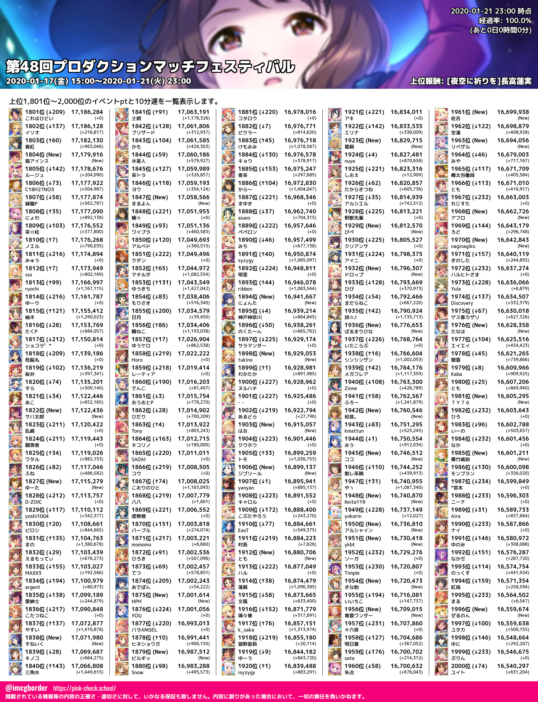 上位プロデューサースコア (2020-01-21 23:00 時点)