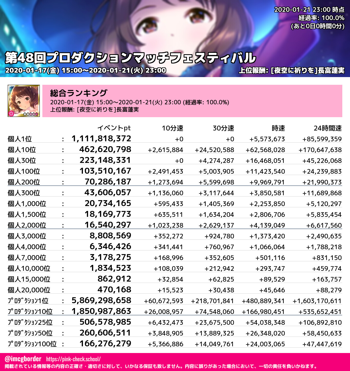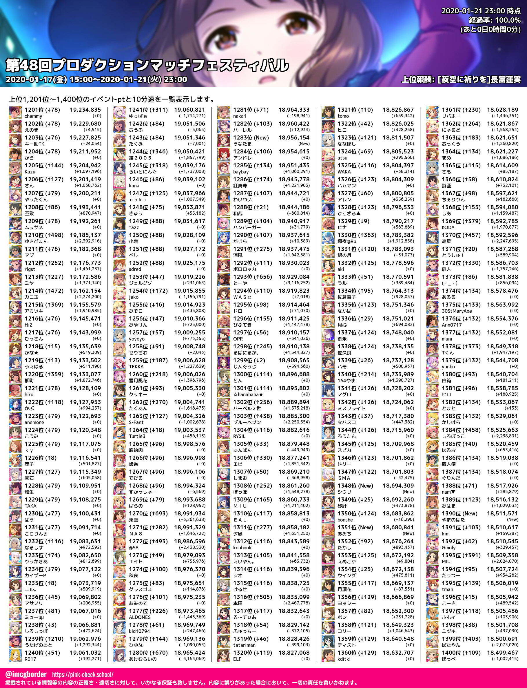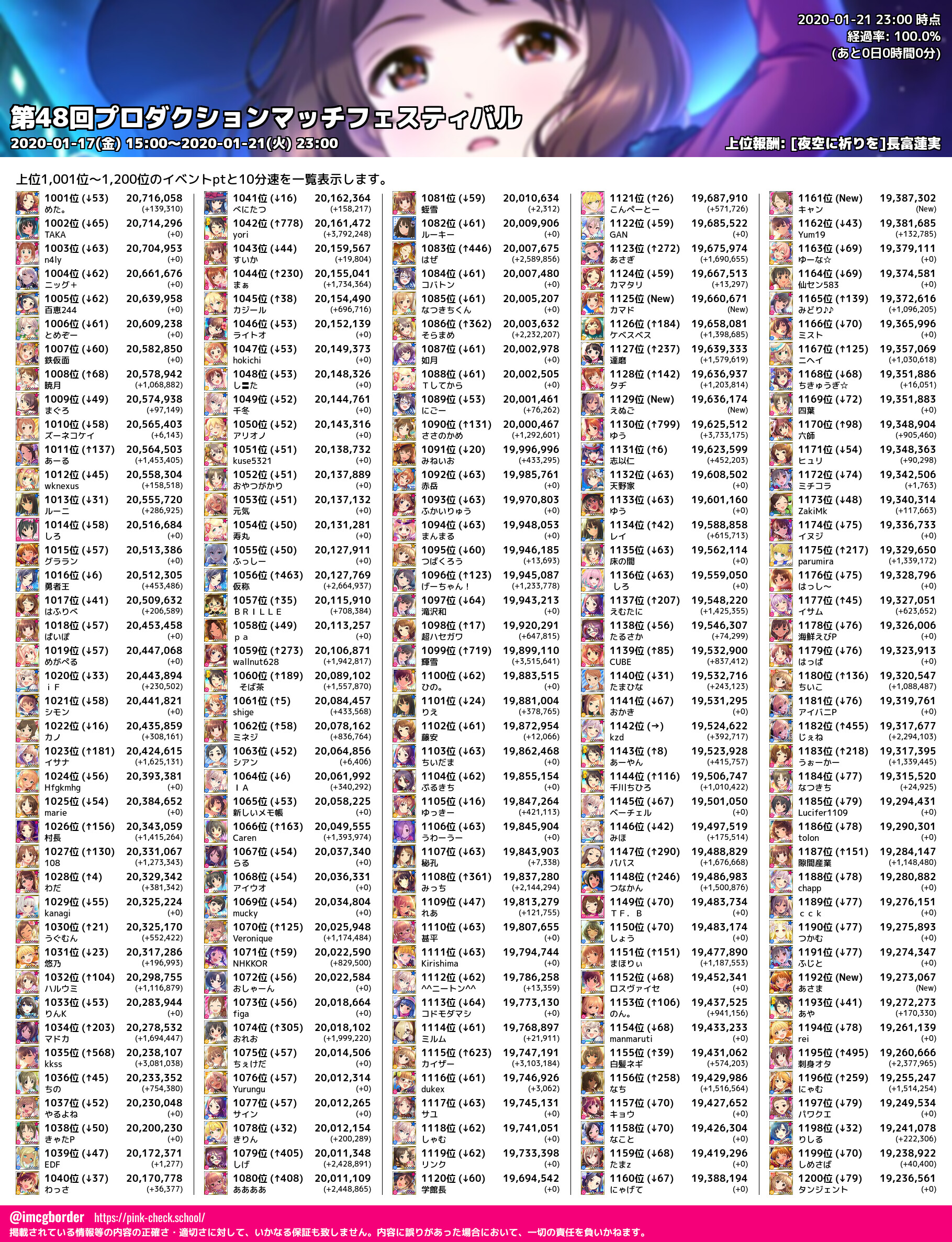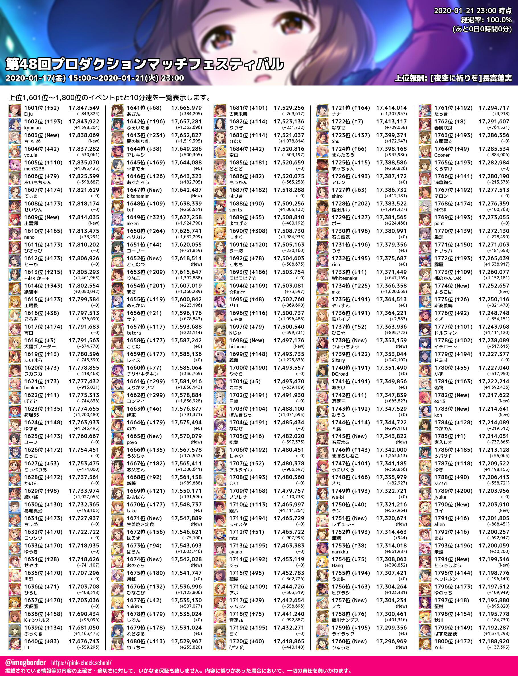 上位プロデューサースコア (2020-01-21 23:00 時点)