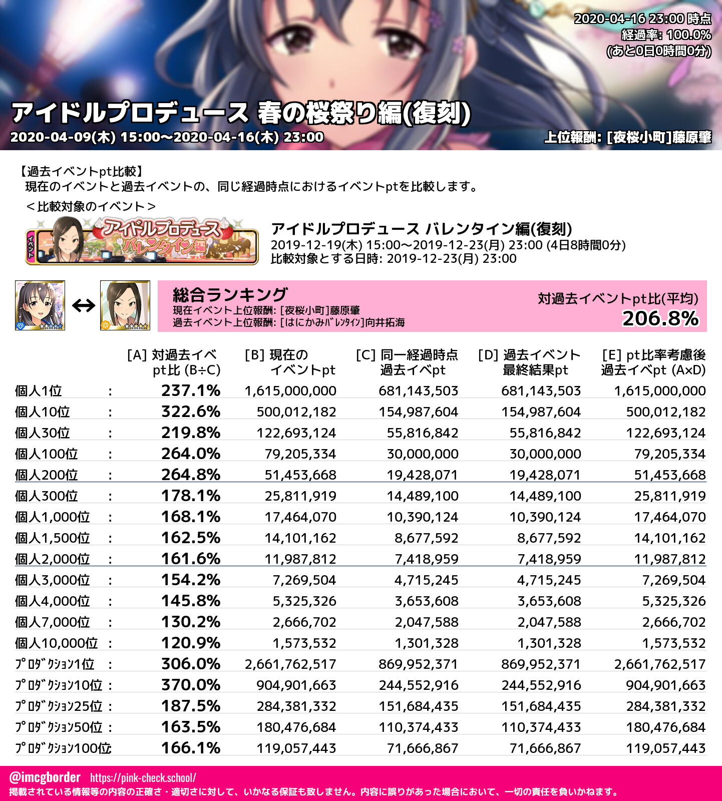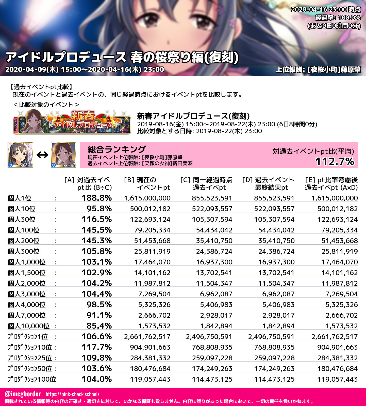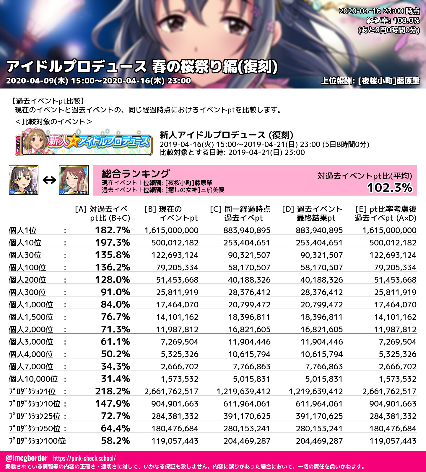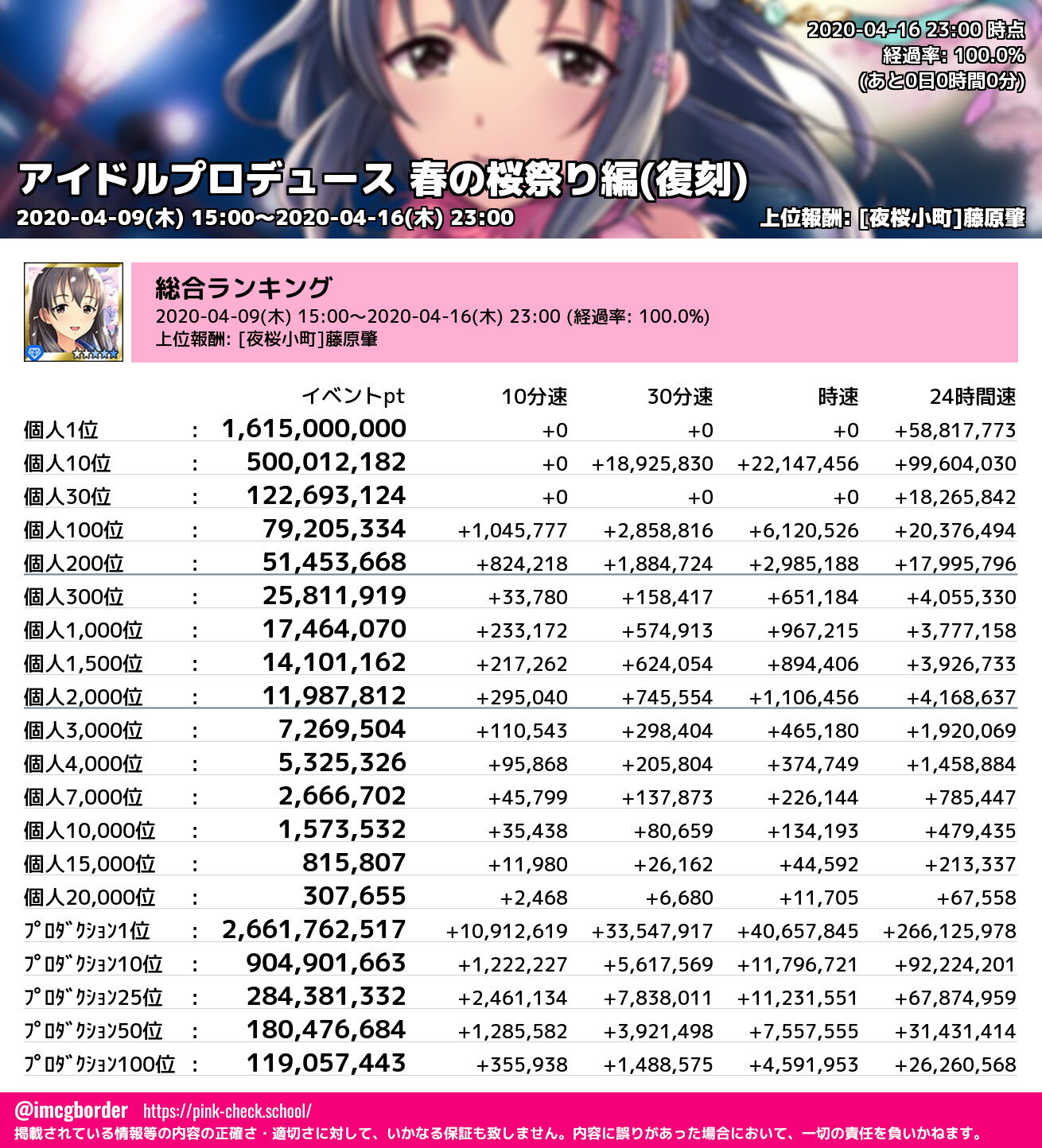 アイドルプロデュース 春の桜祭り編(復刻) 結果集計完了