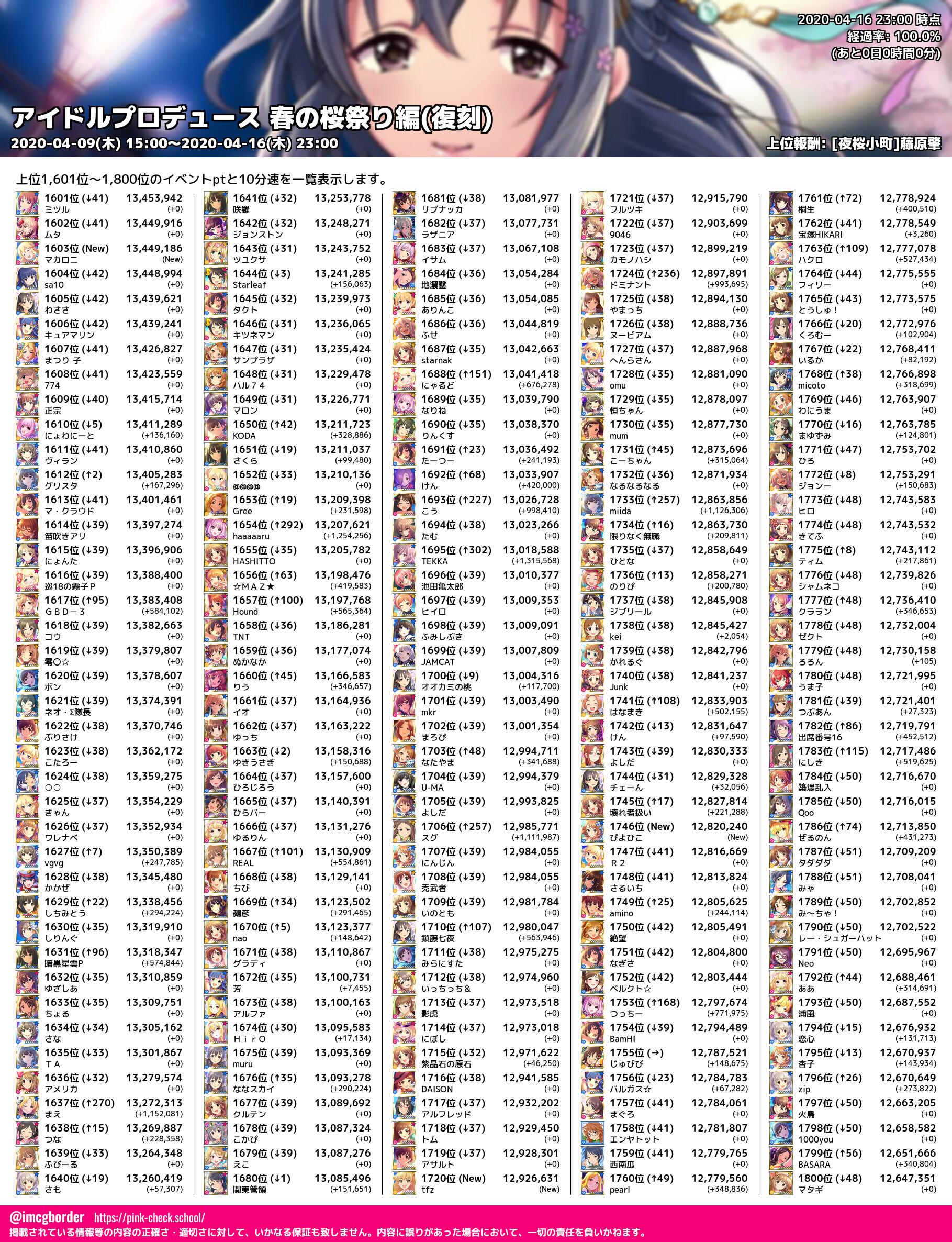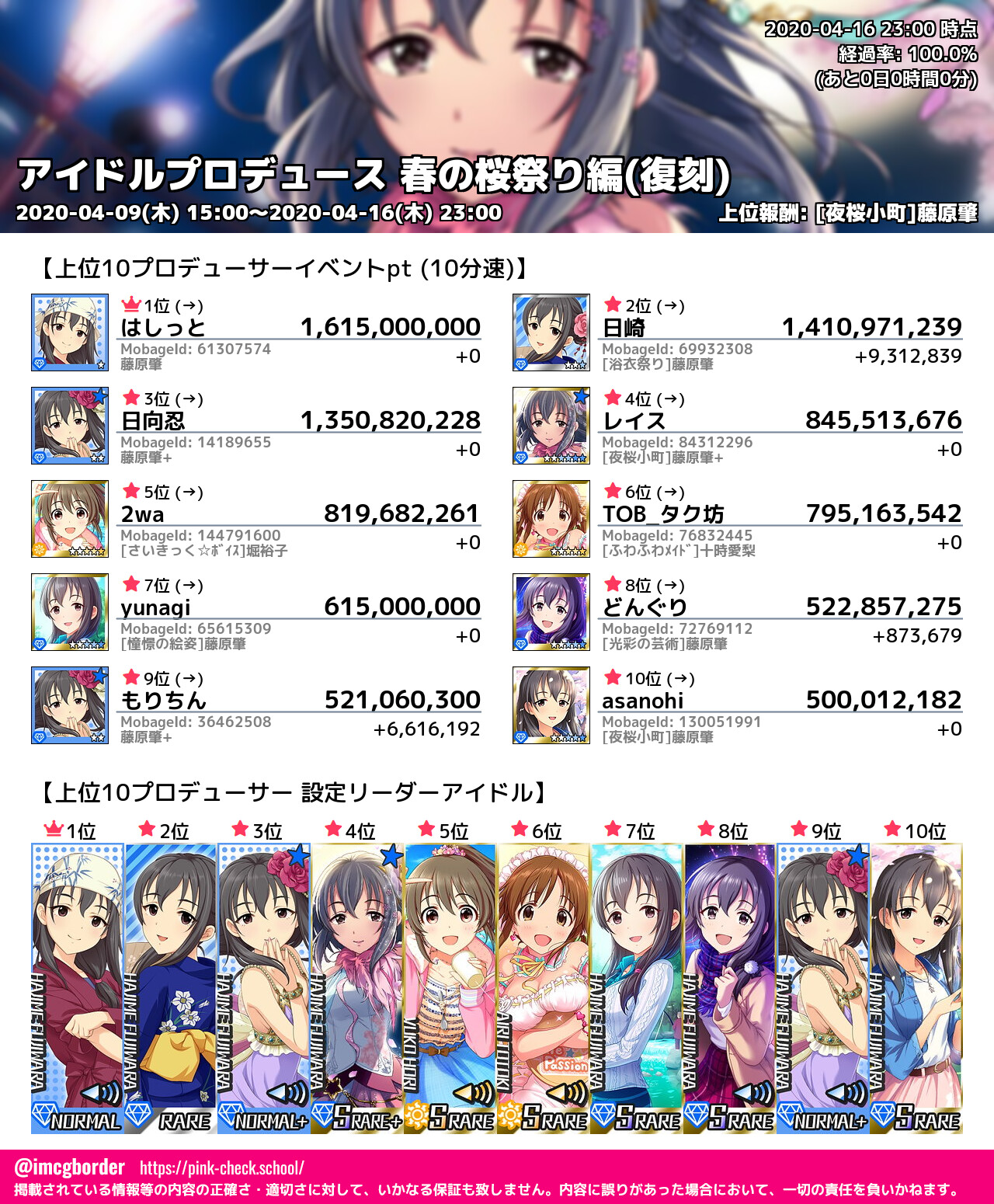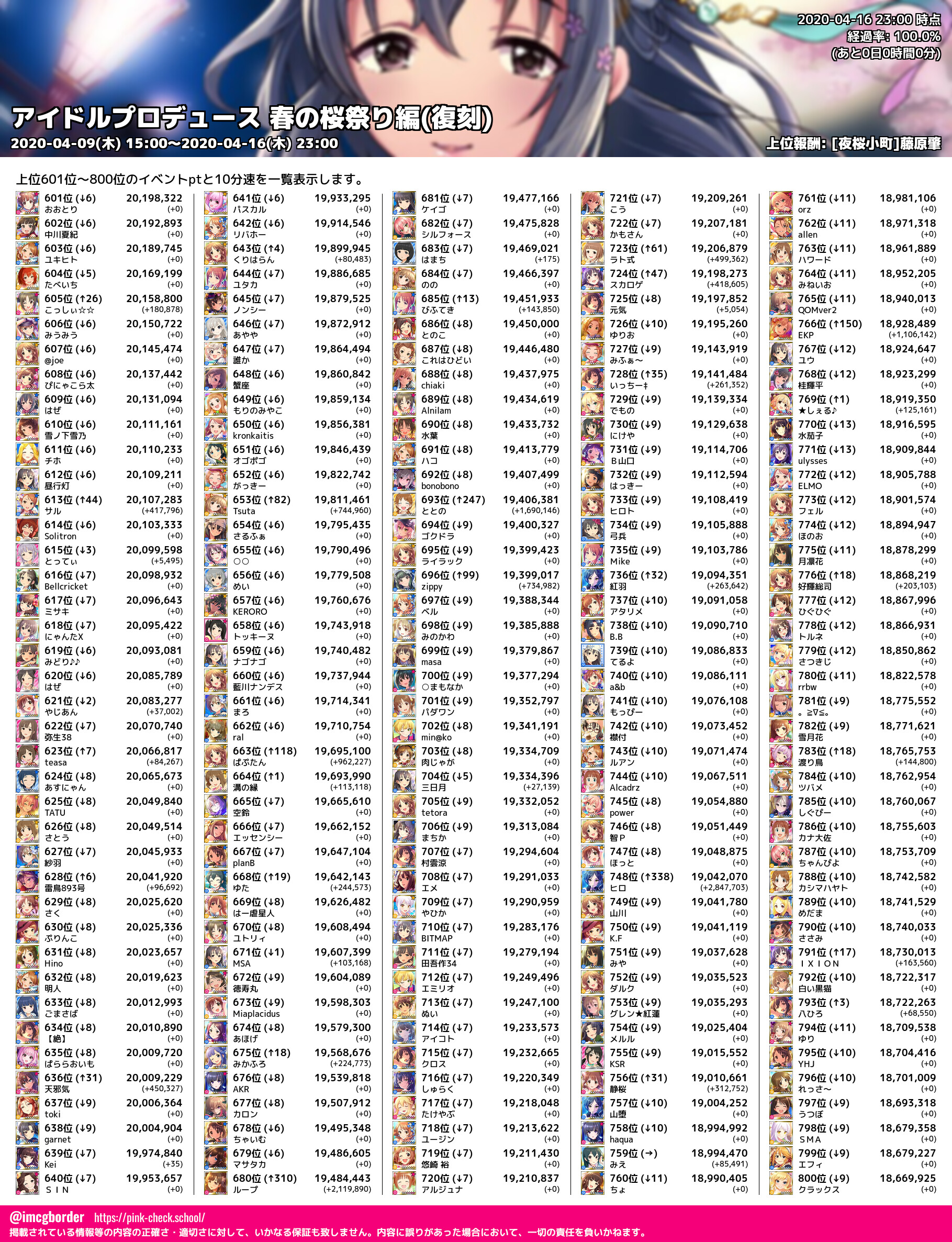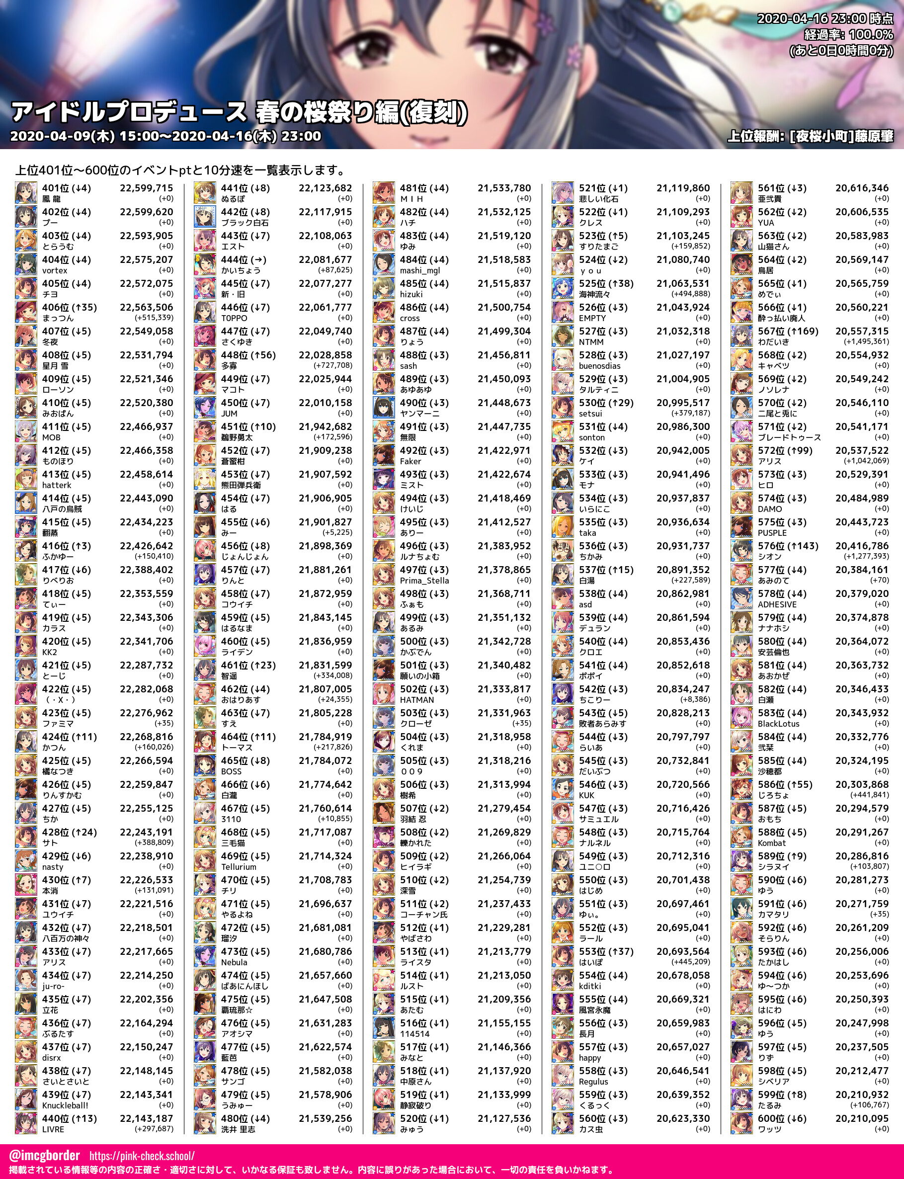 上位プロデューサースコア (2020-04-16 23:00 時点)