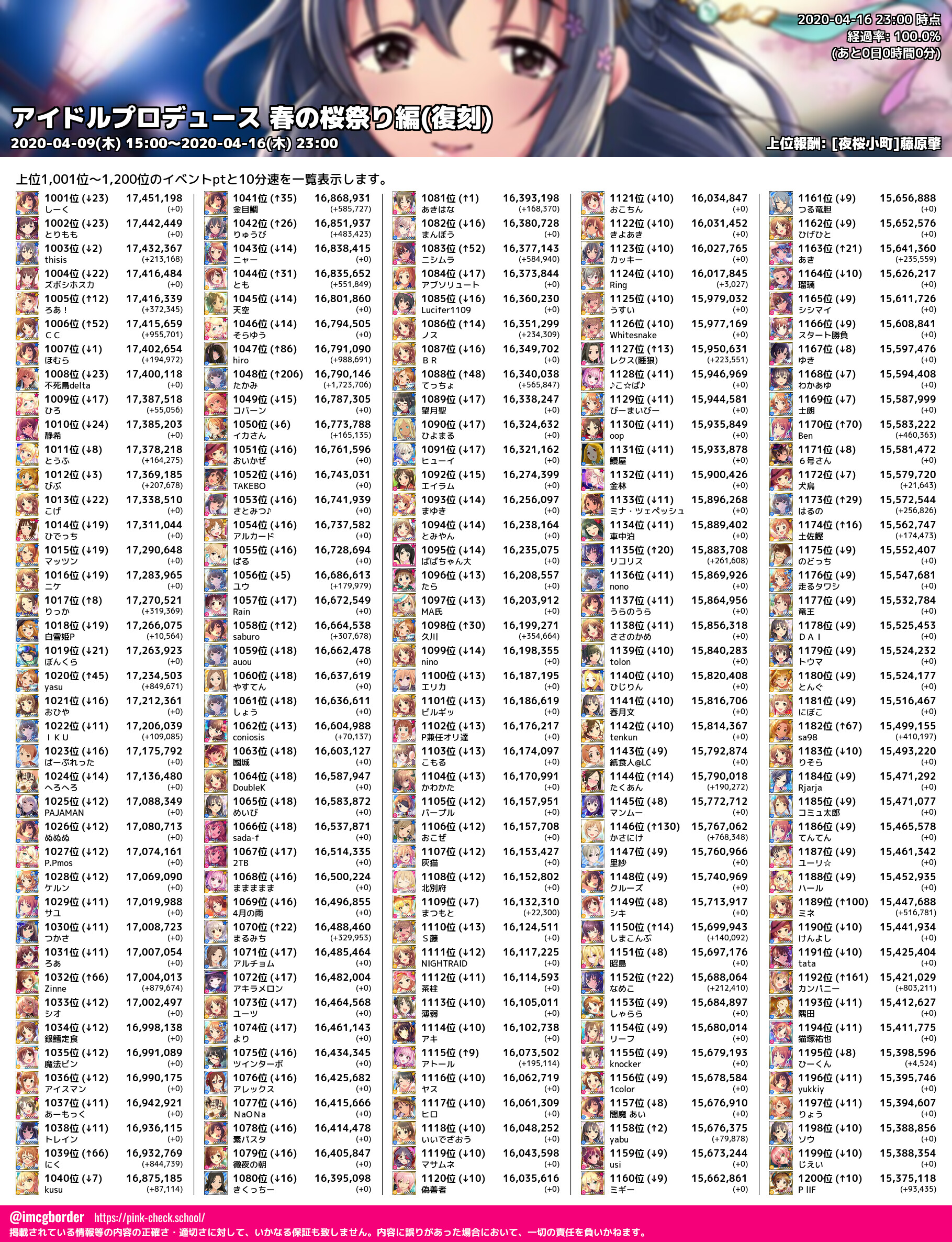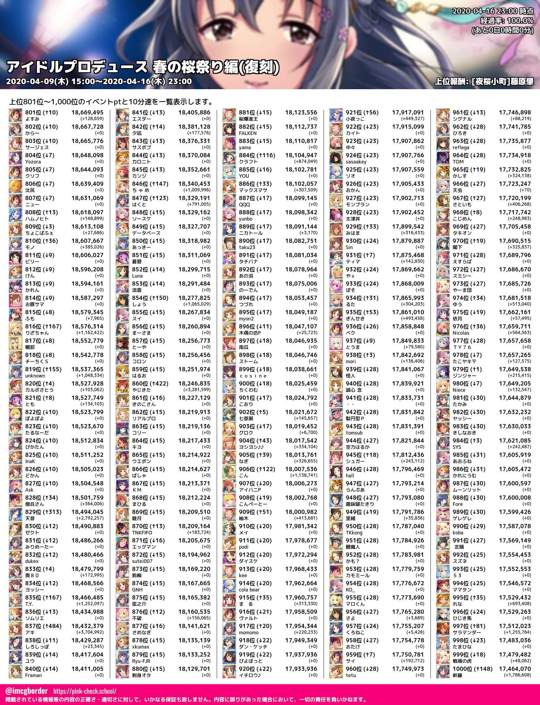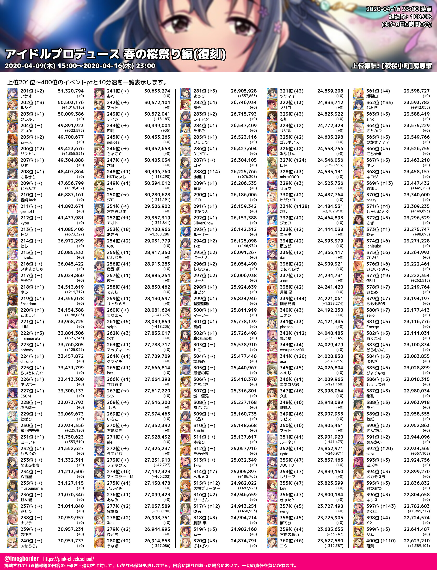 上位プロデューサースコア (2020-04-16 23:00 時点)