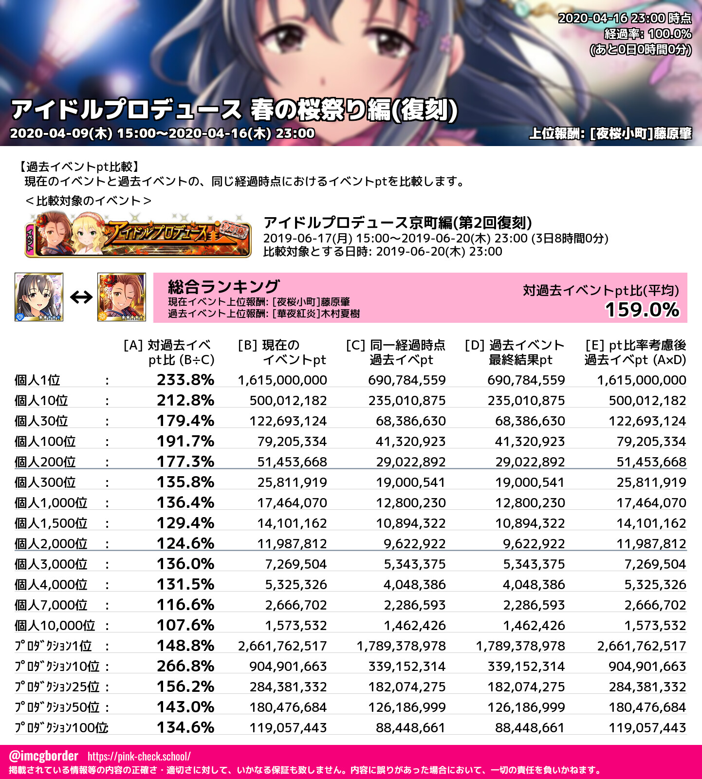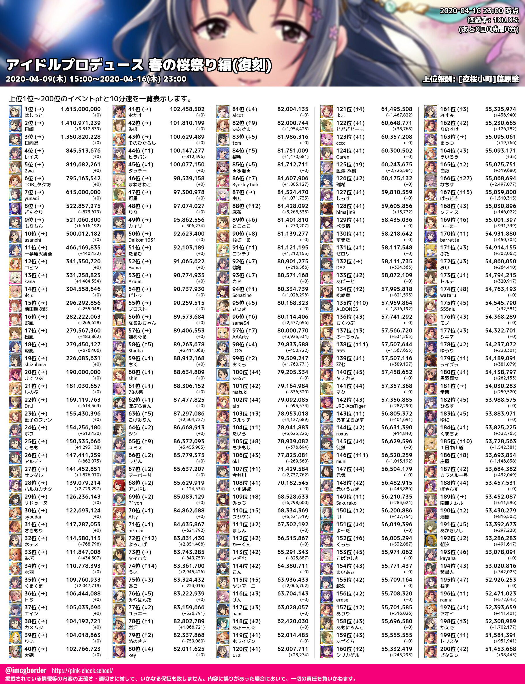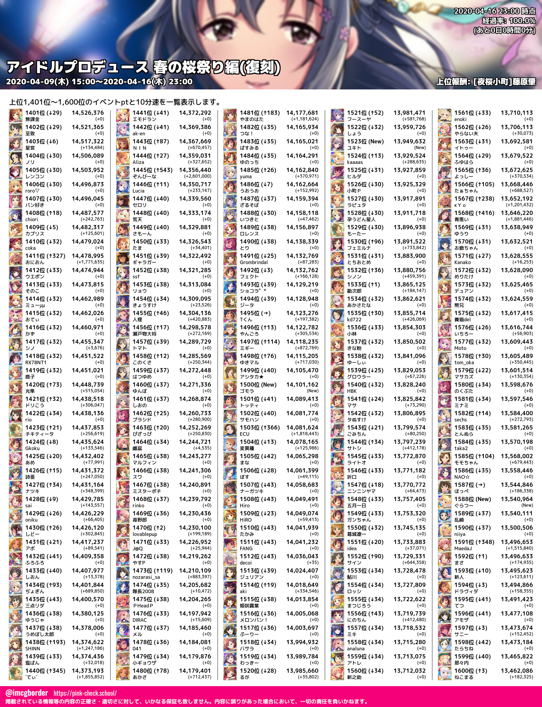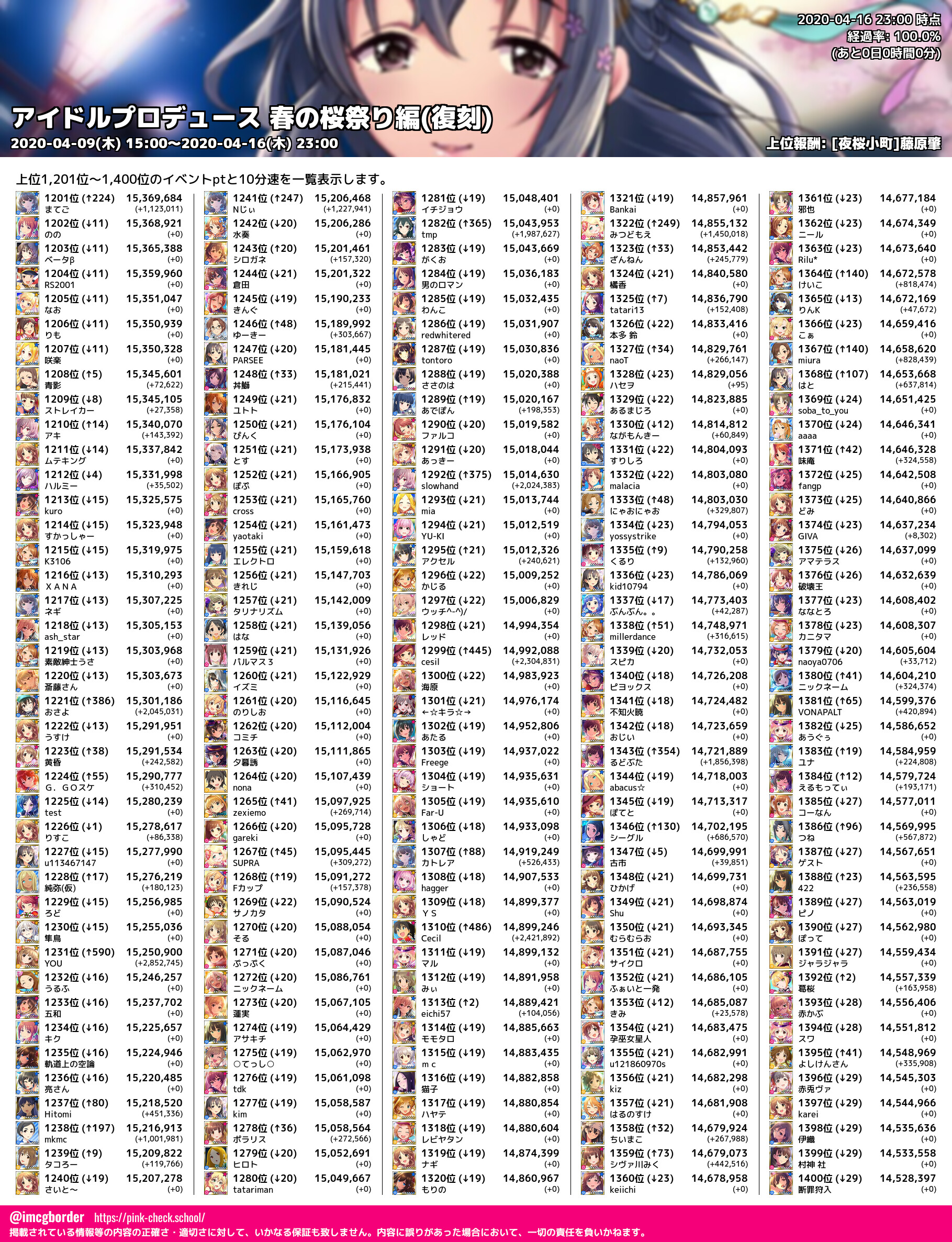上位プロデューサースコア (2020-04-16 23:00 時点)