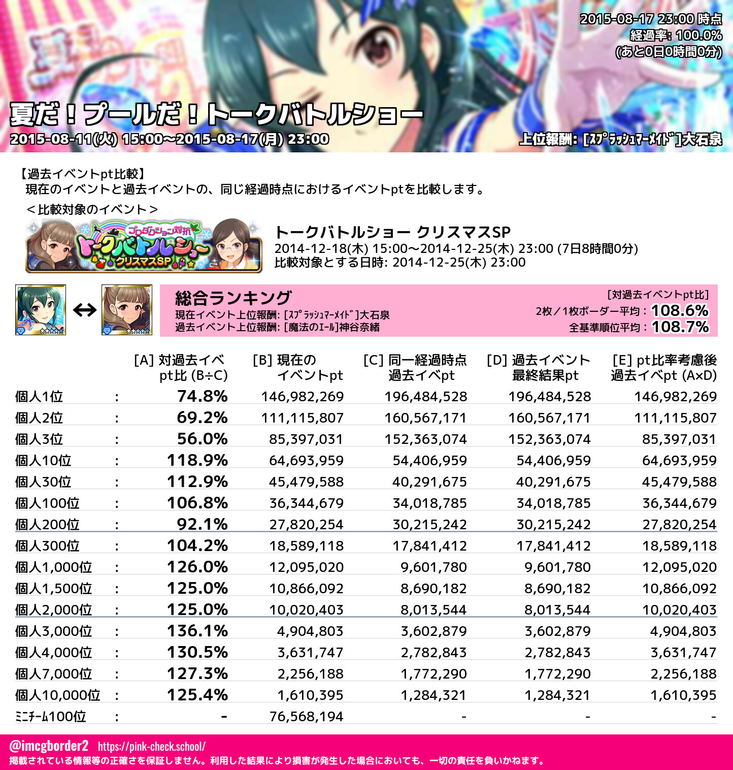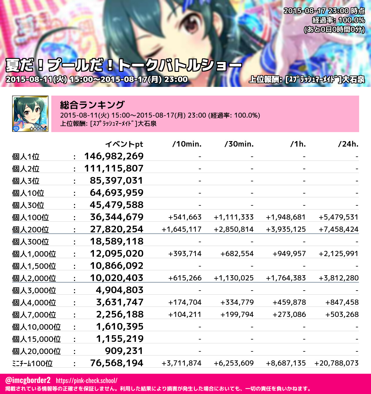 | 開催期間 | 2015-08-11(火) 15:00~2015-08-17(月) 23:00 |