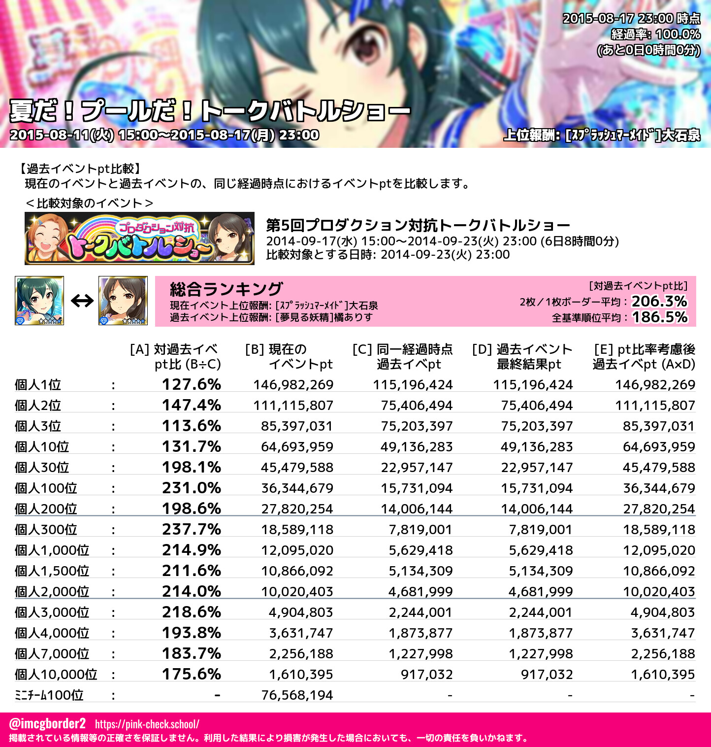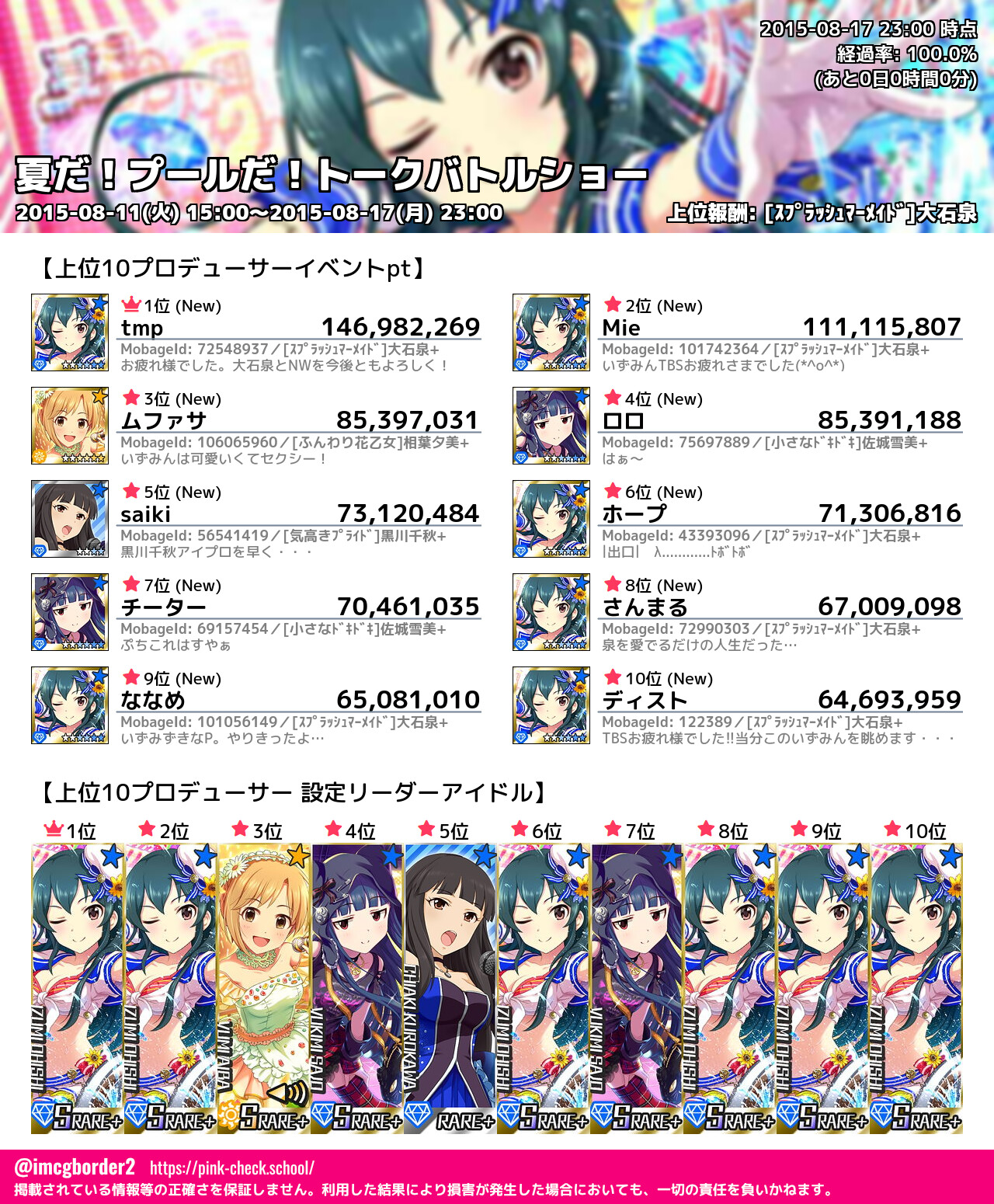 上位プロデューサースコア (2015-08-17 23:00 時点)