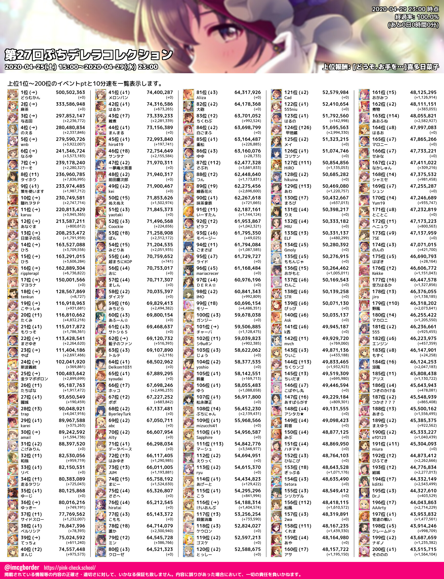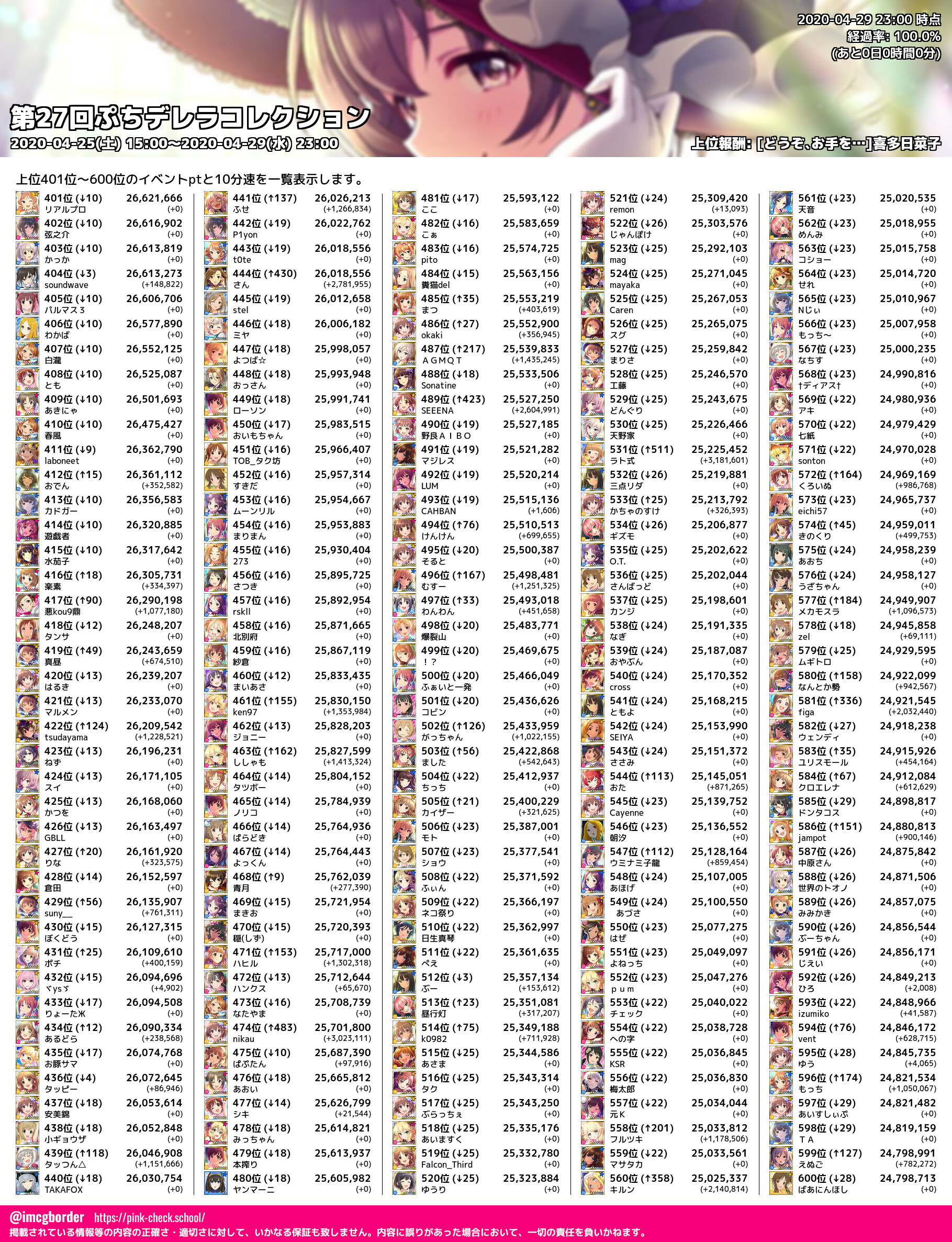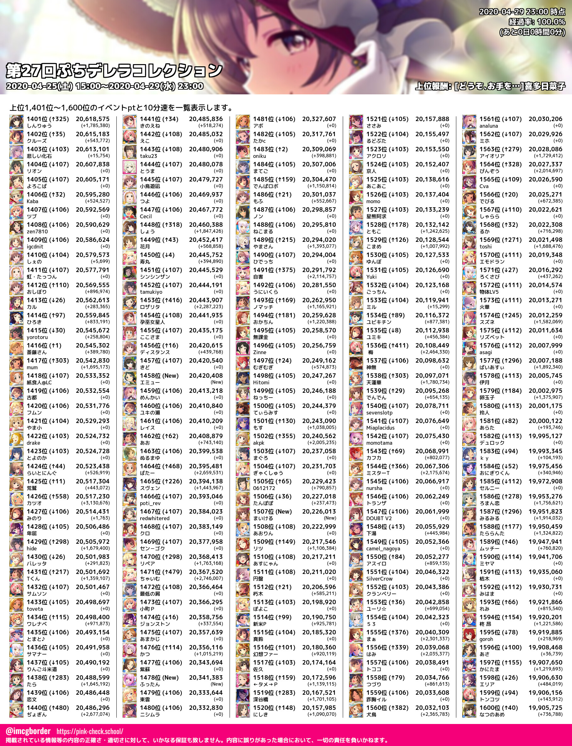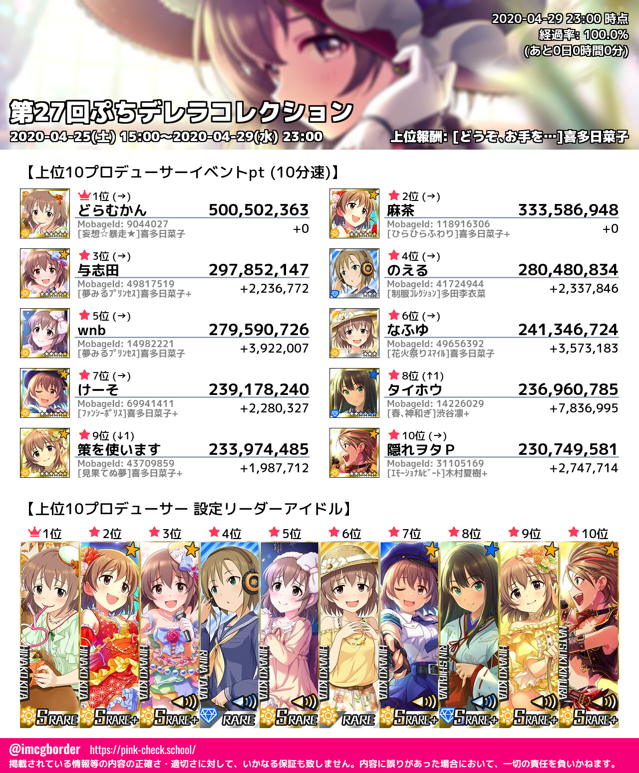 上位プロデューサースコア (2020-04-29 23:00 時点)