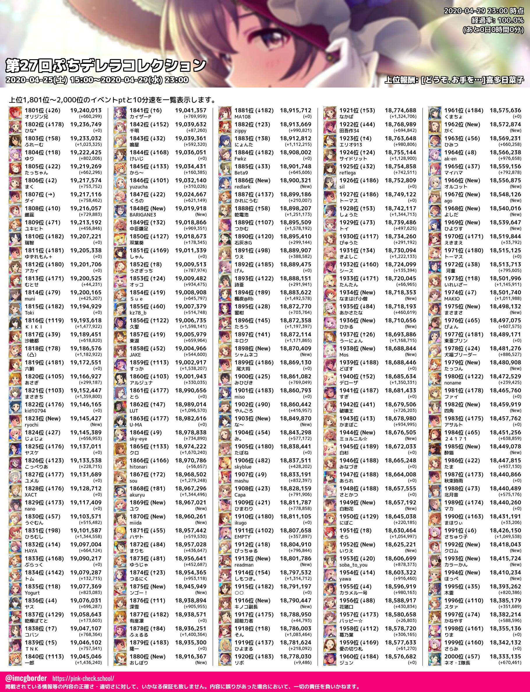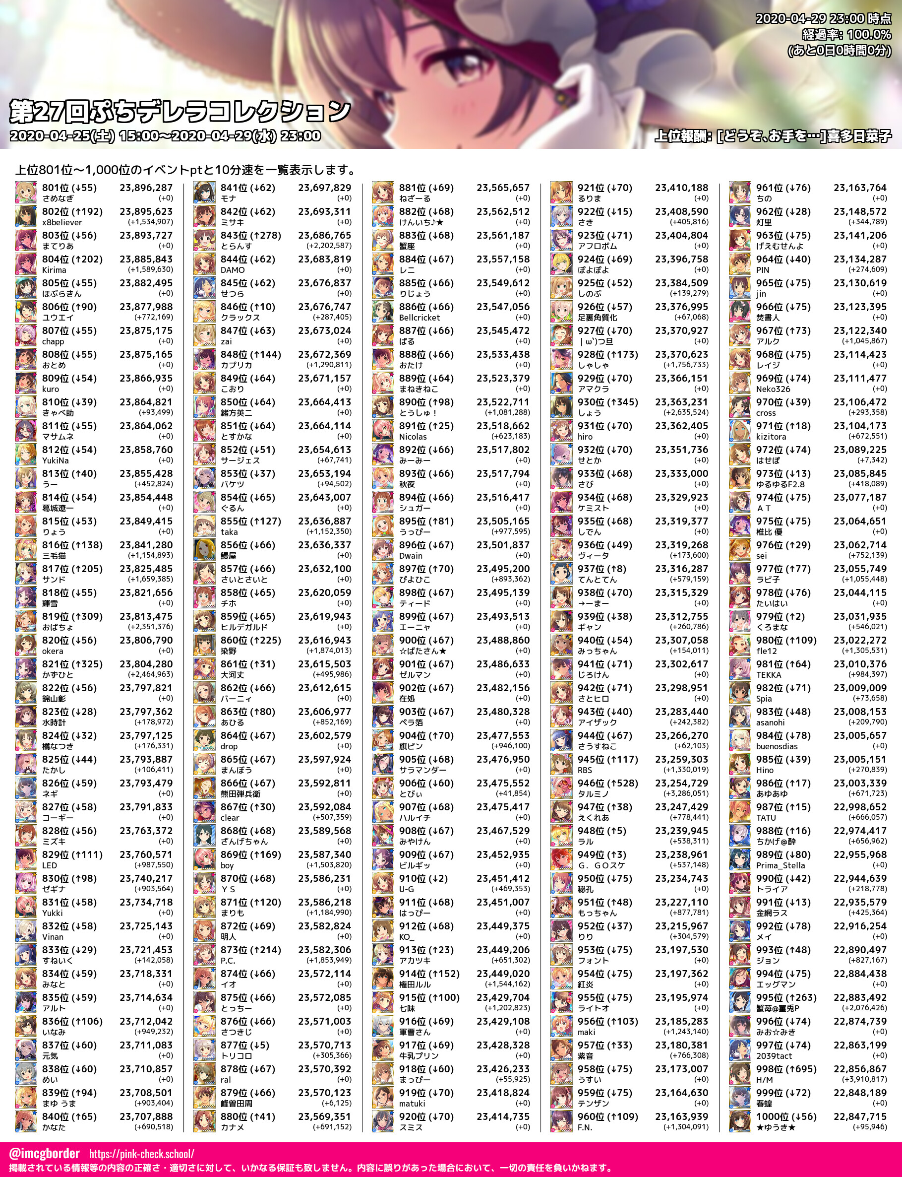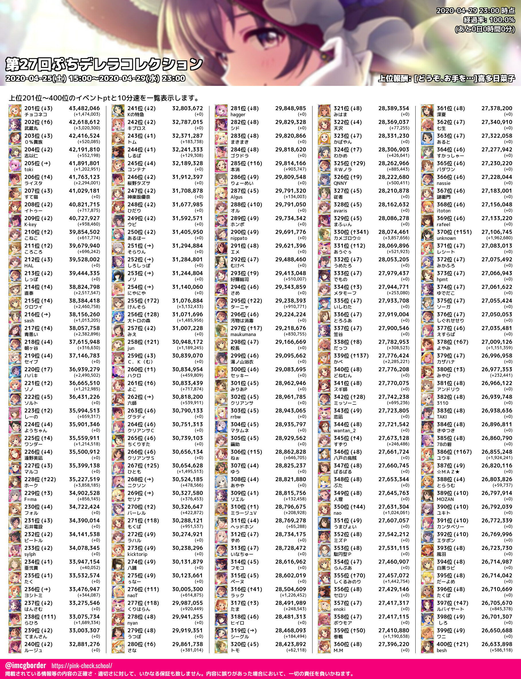 上位プロデューサースコア (2020-04-29 23:00 時点)