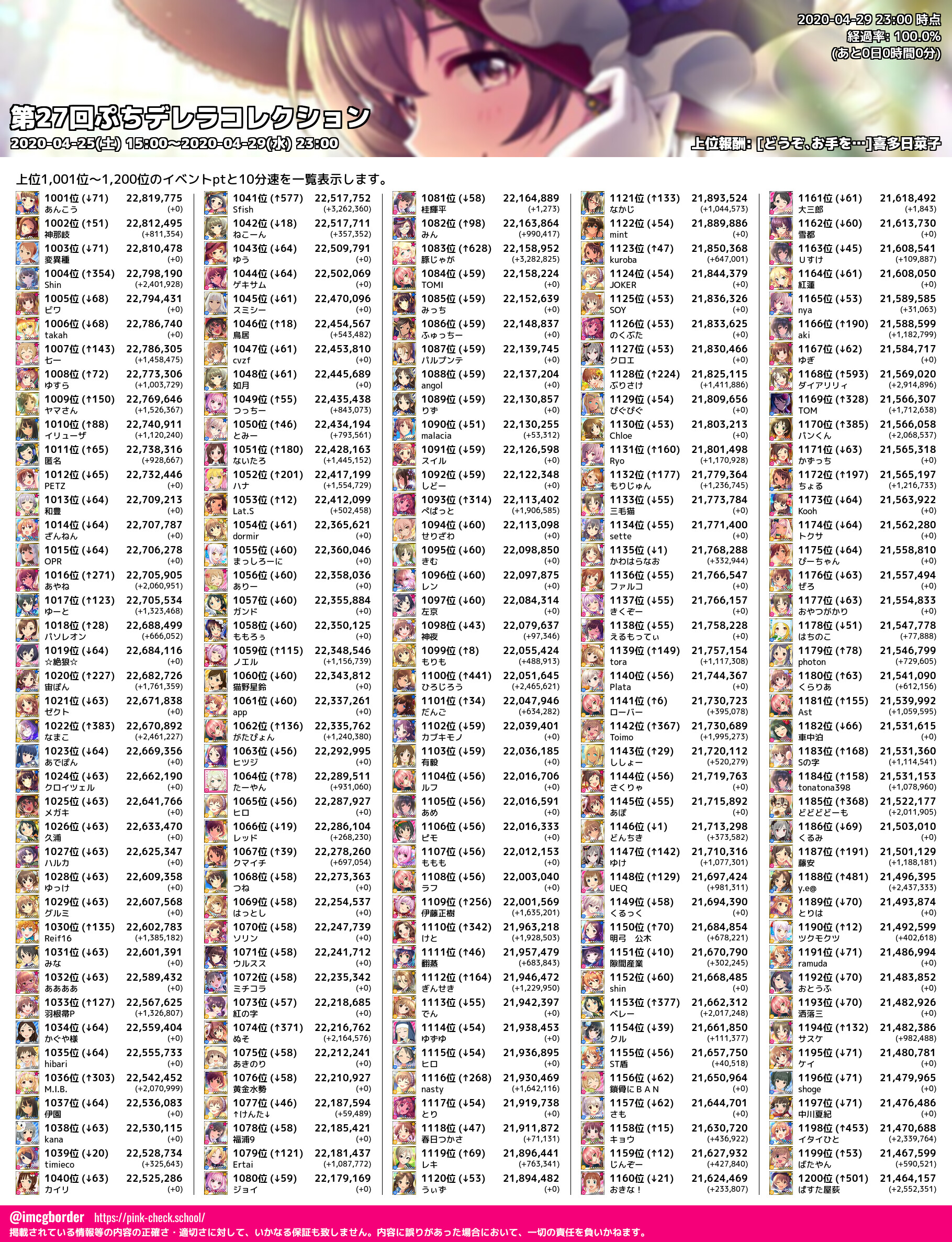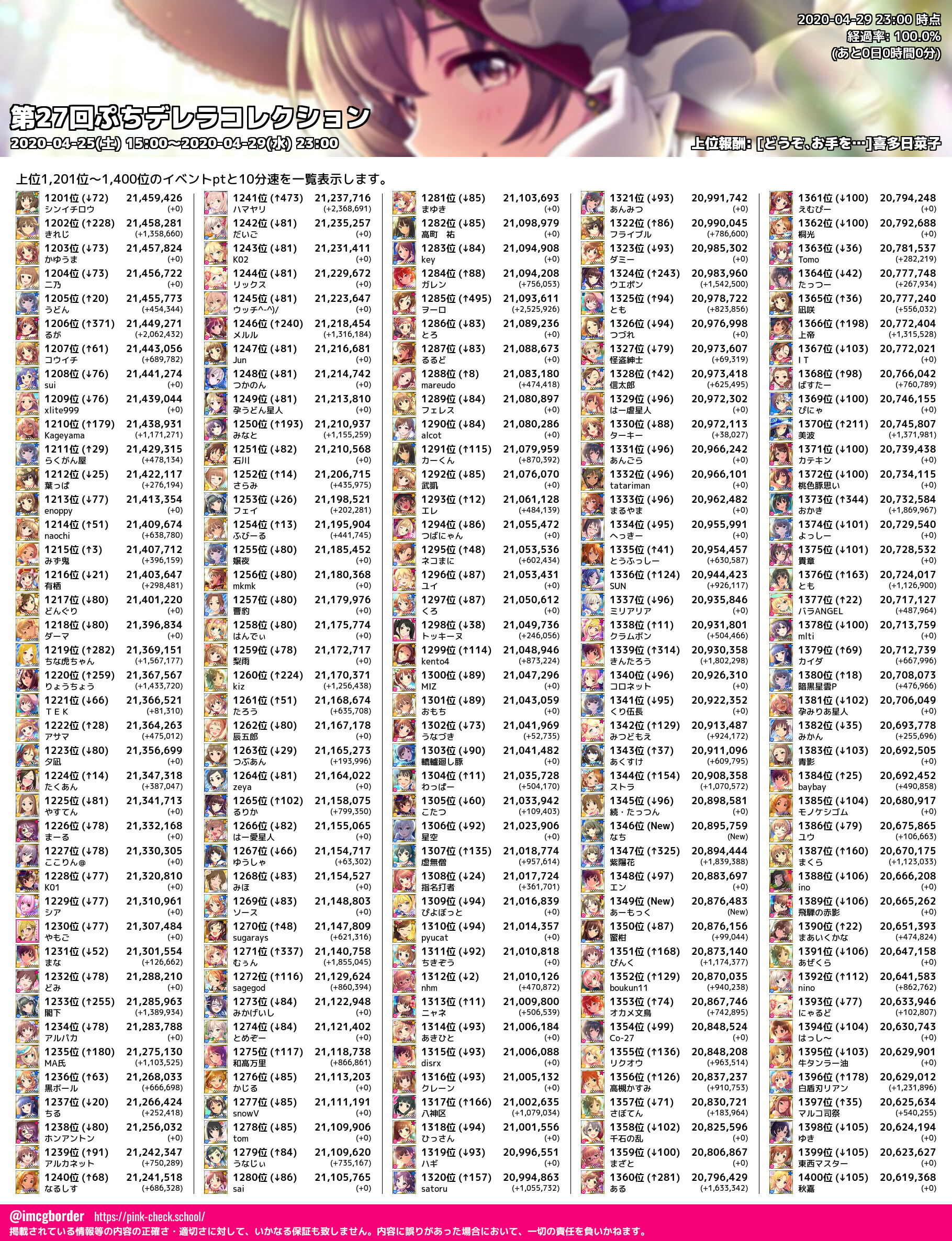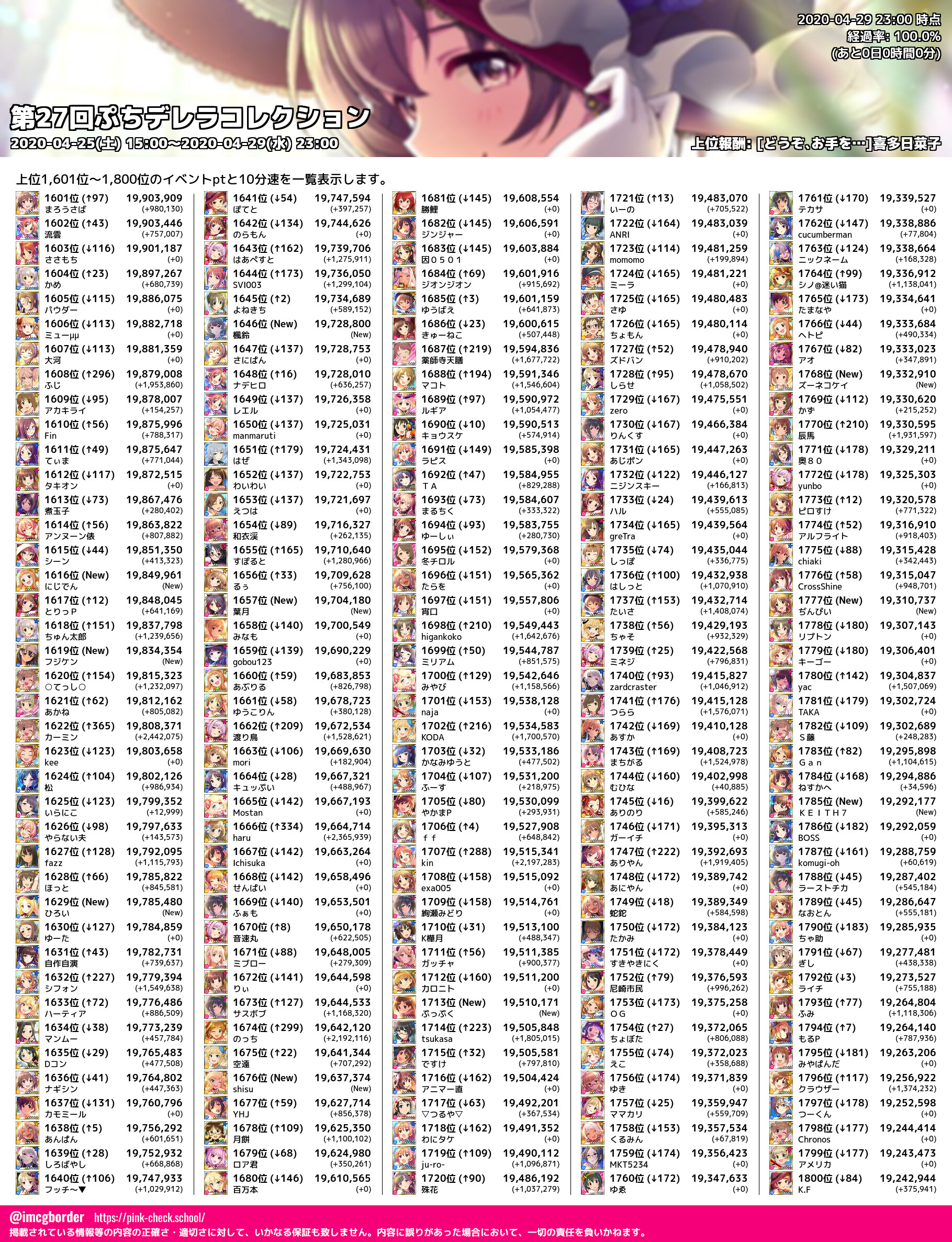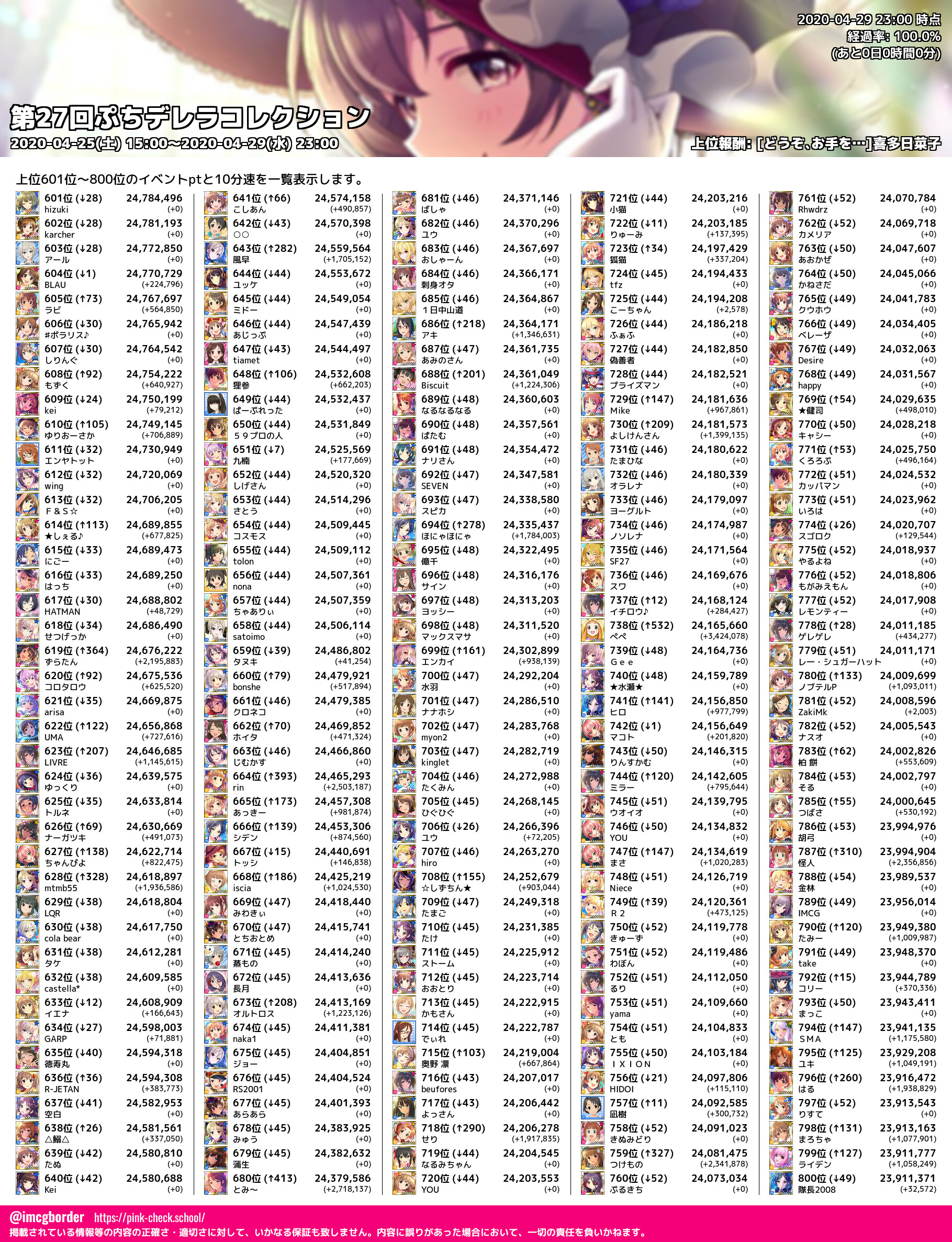 上位プロデューサースコア (2020-04-29 23:00 時点)