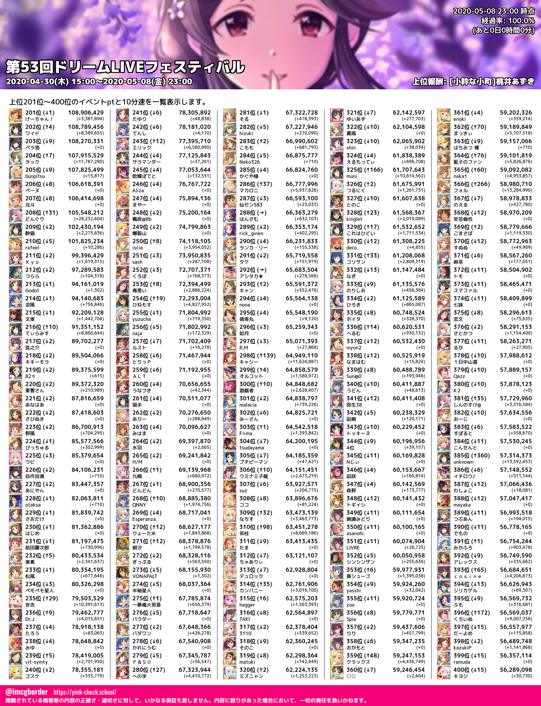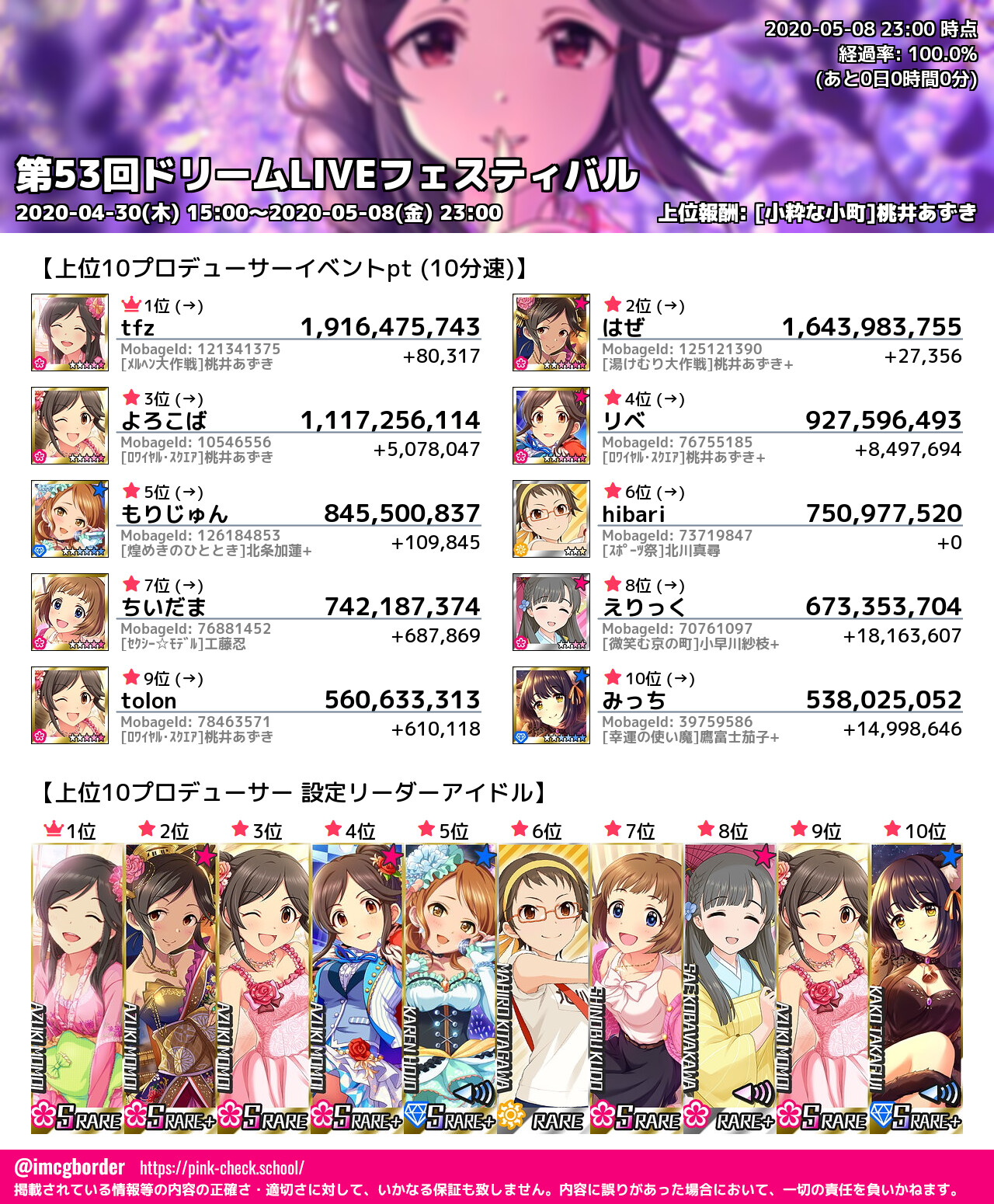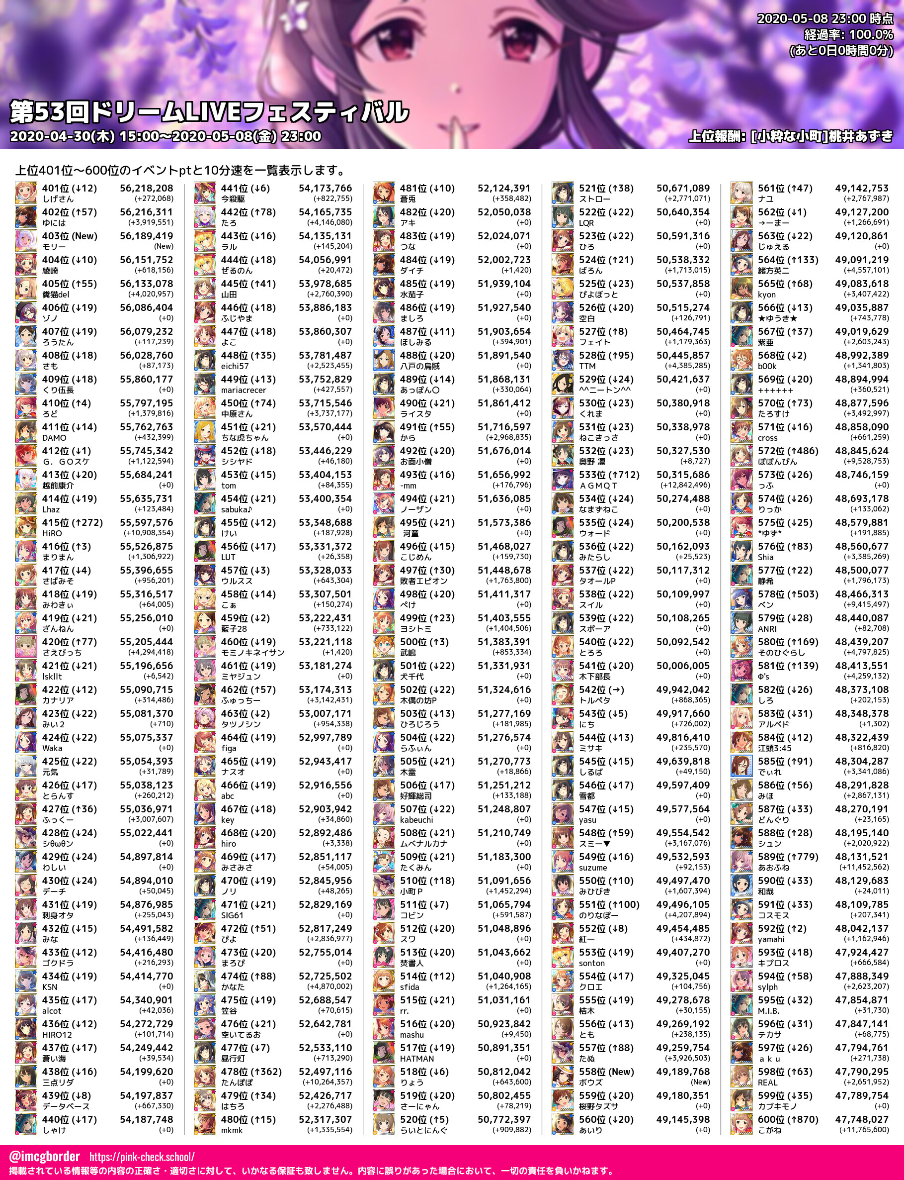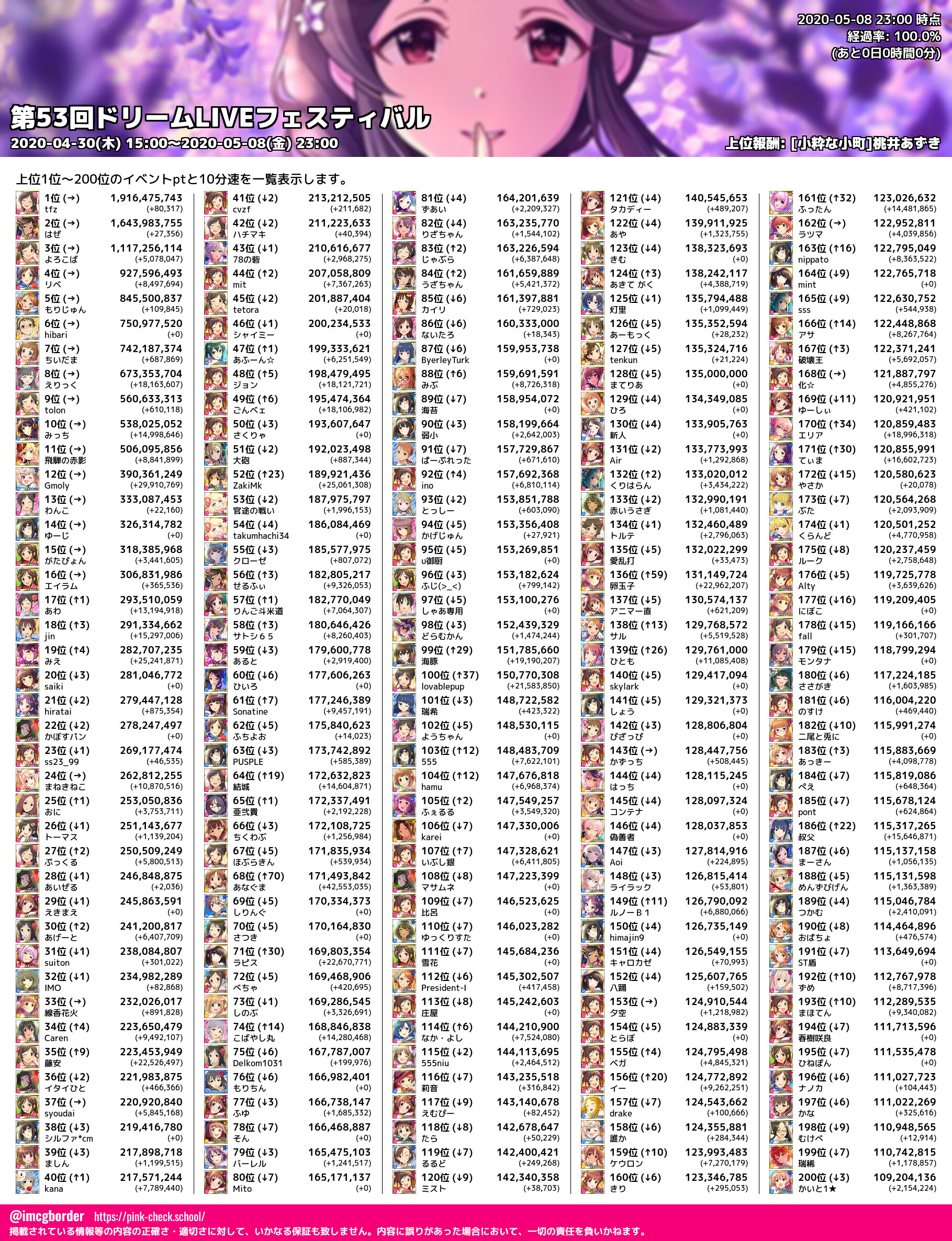 上位プロデューサースコア (2020-05-08 23:00 時点)