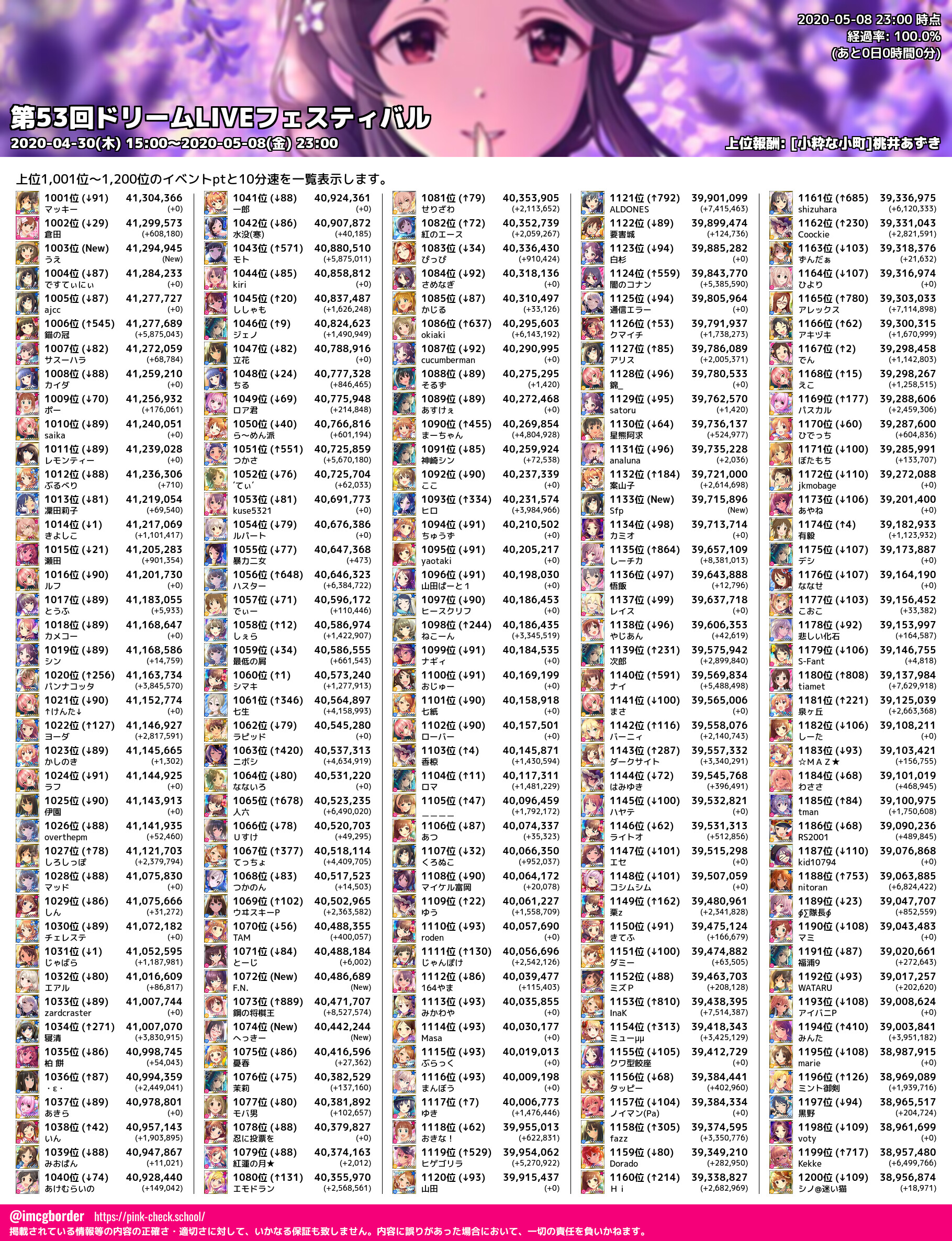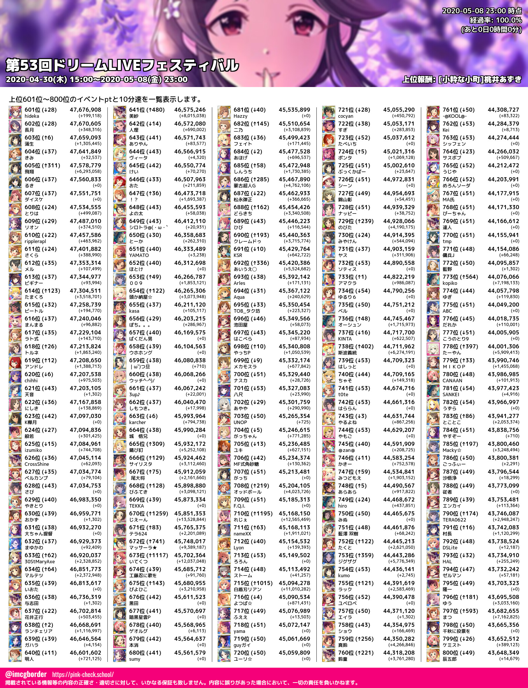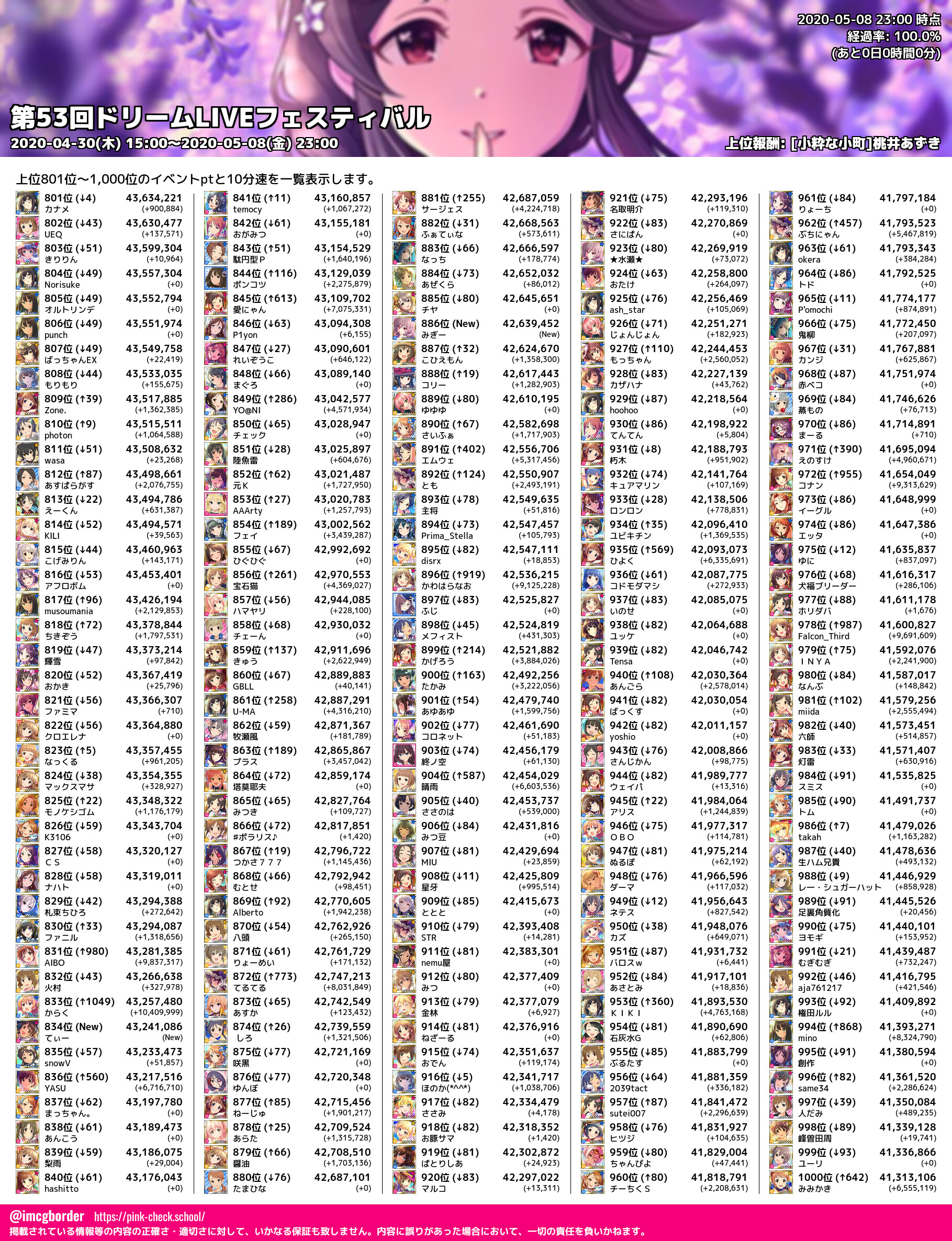 上位プロデューサースコア (2020-05-08 23:00 時点)