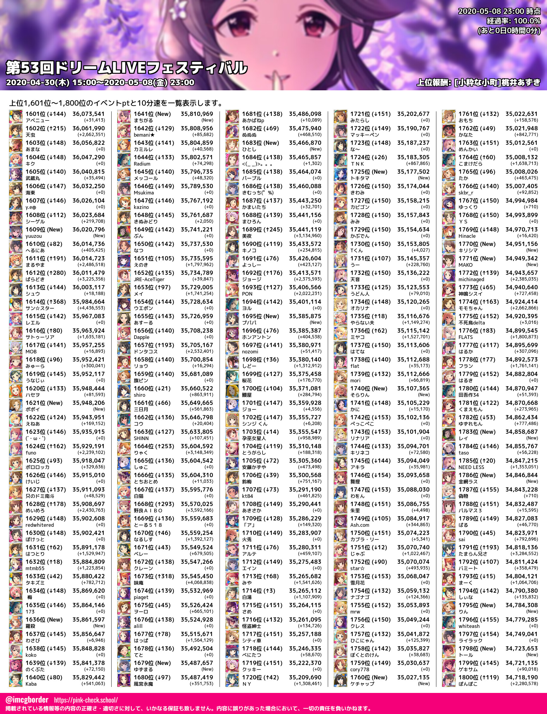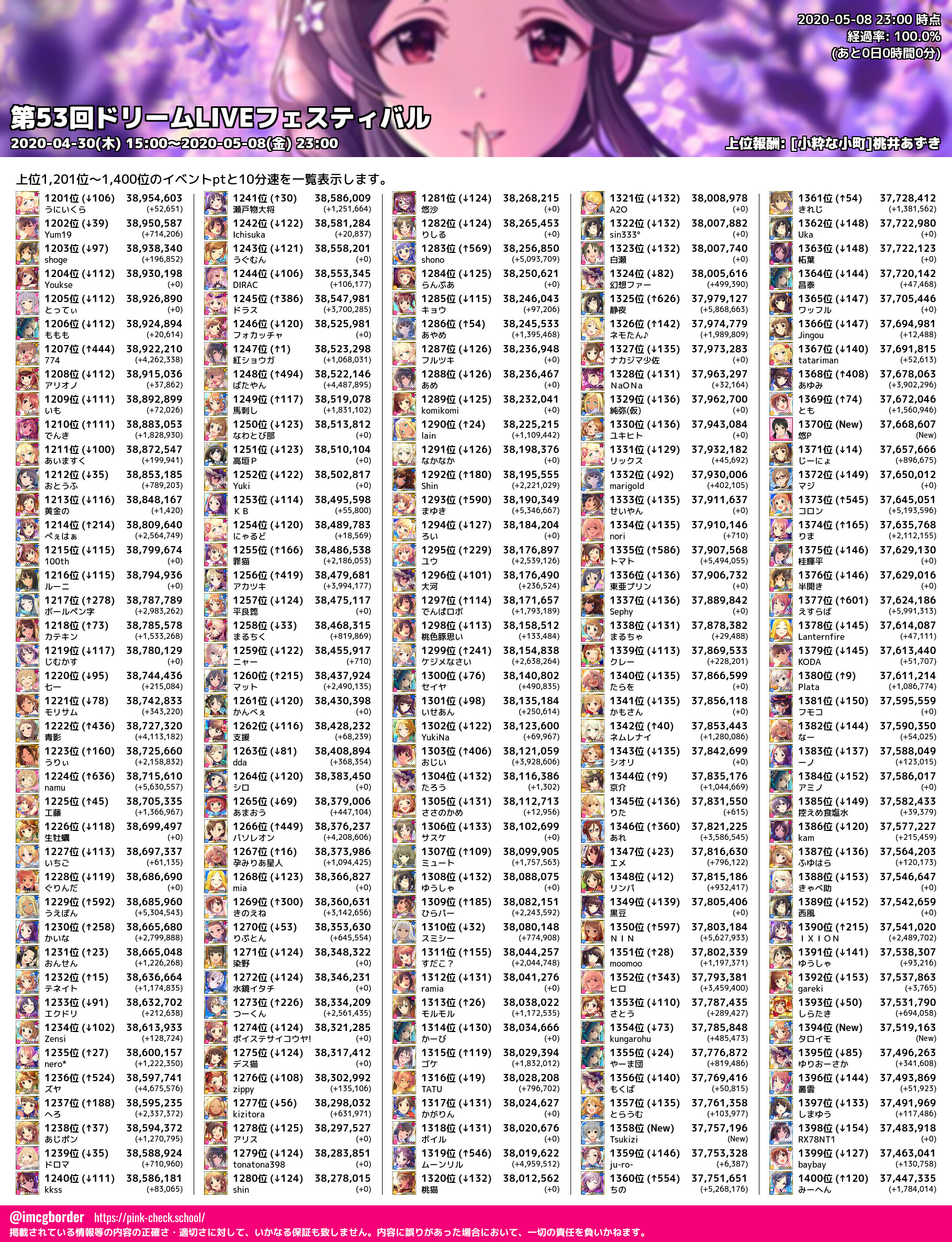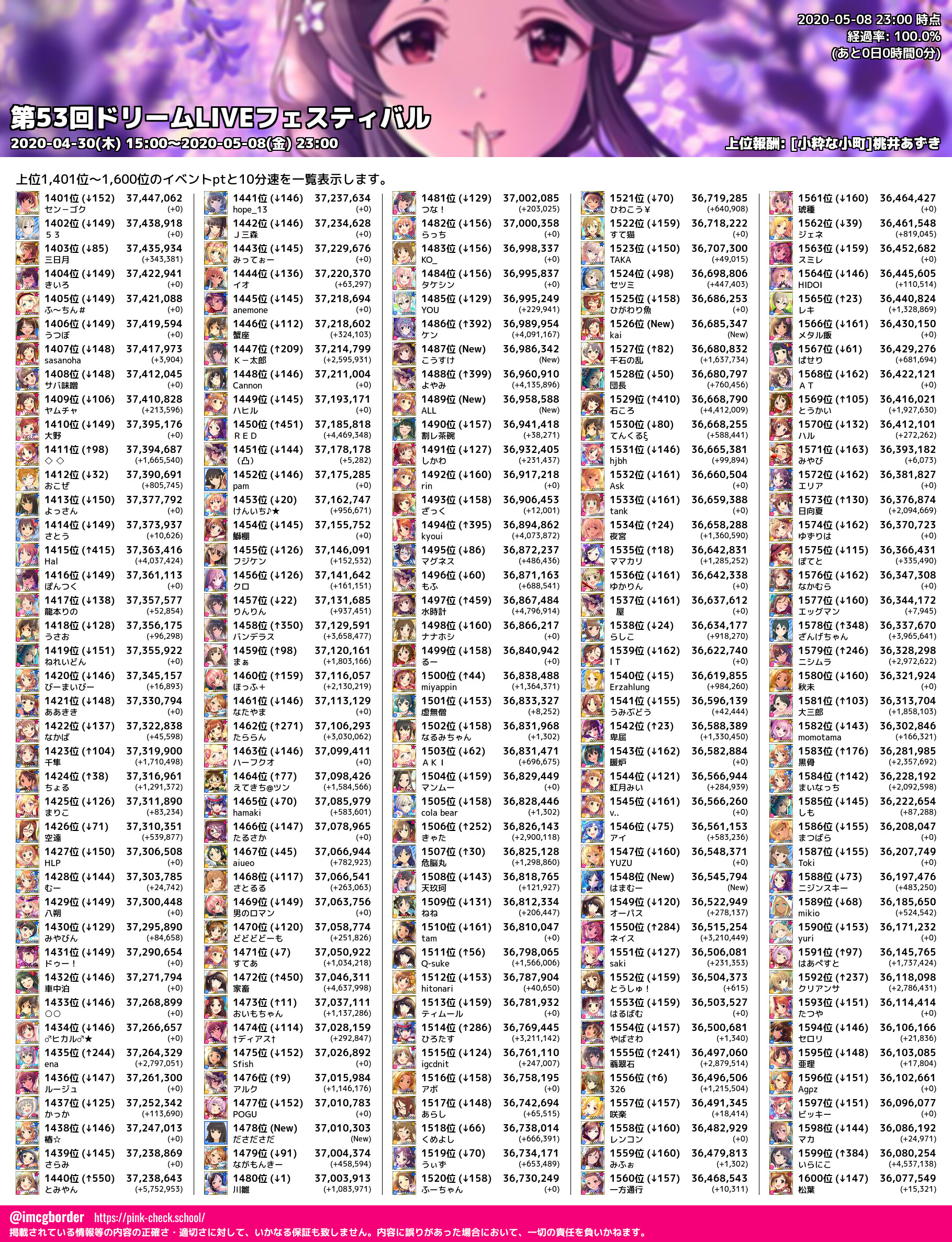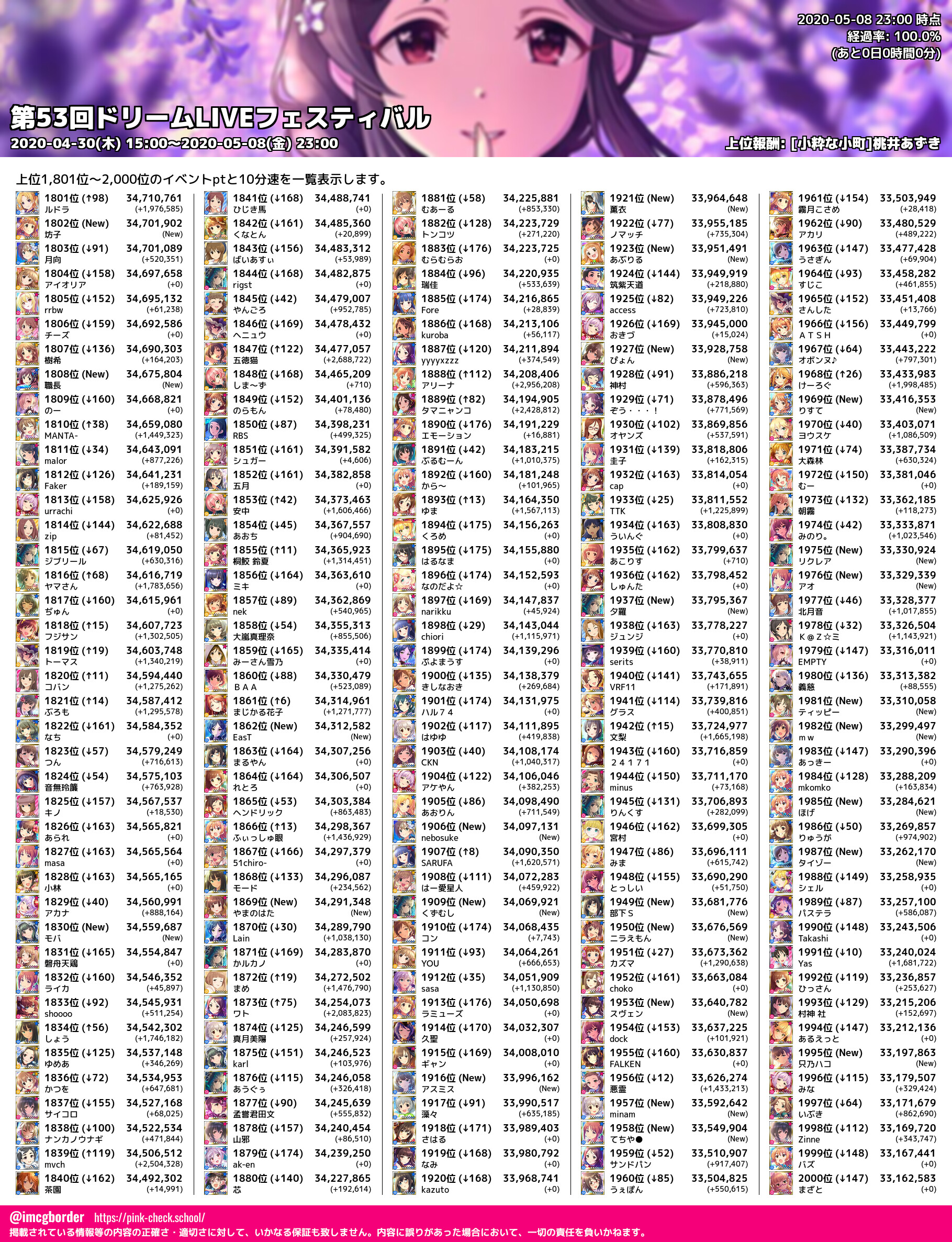 上位プロデューサースコア (2020-05-08 23:00 時点)