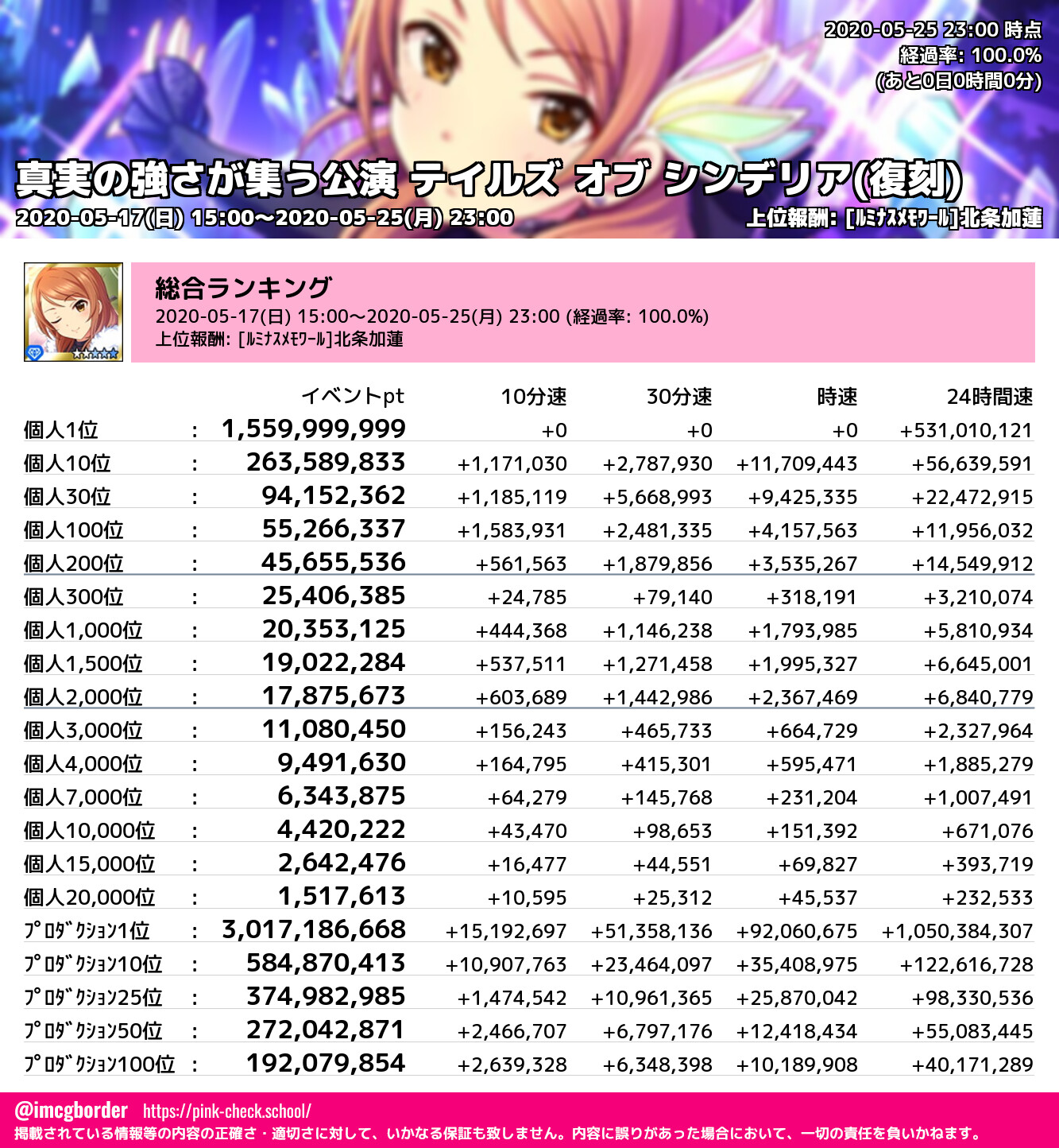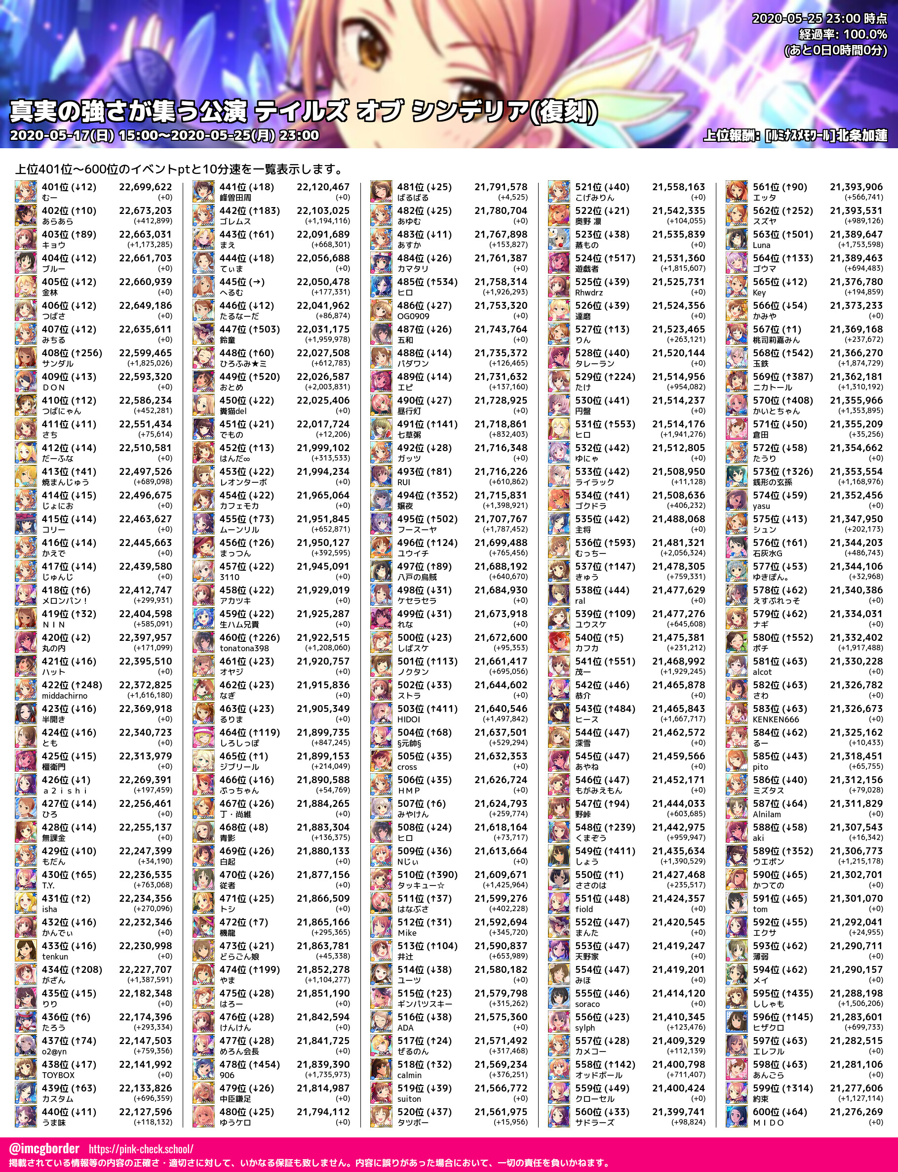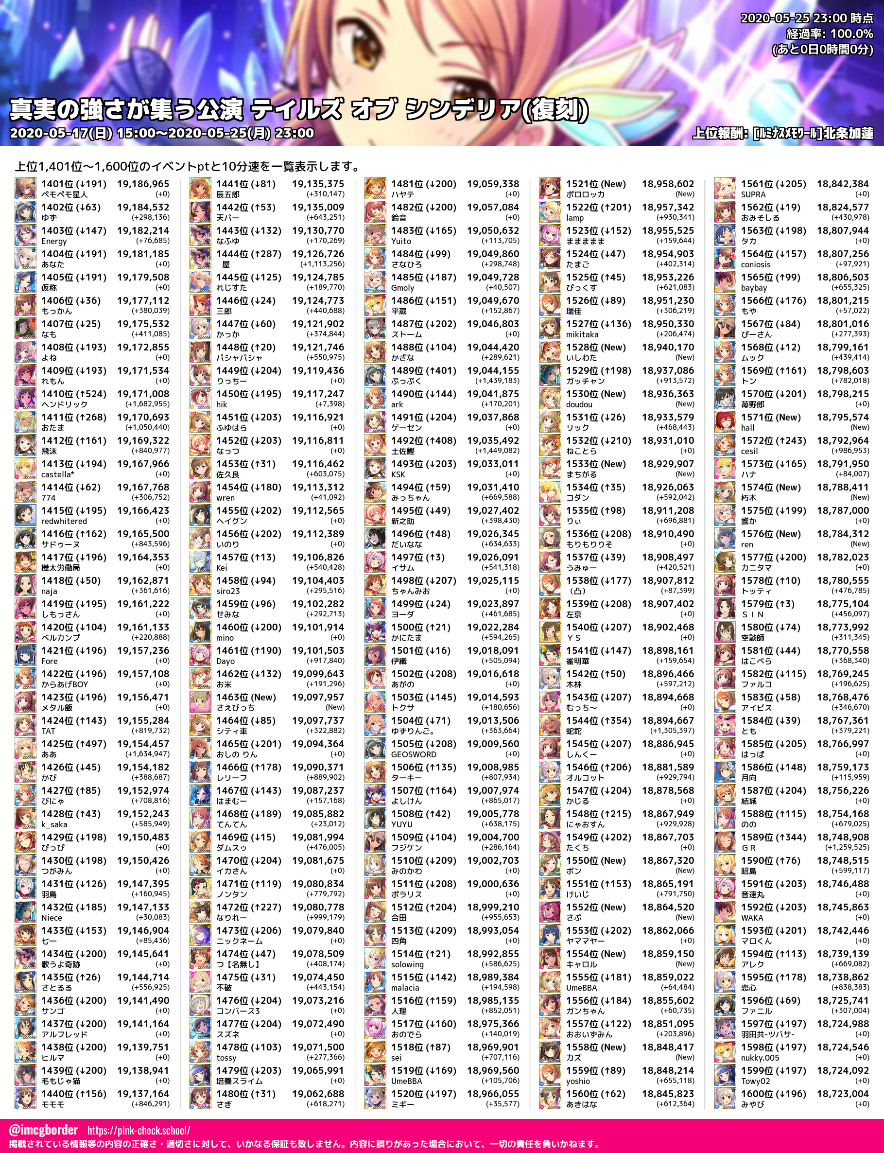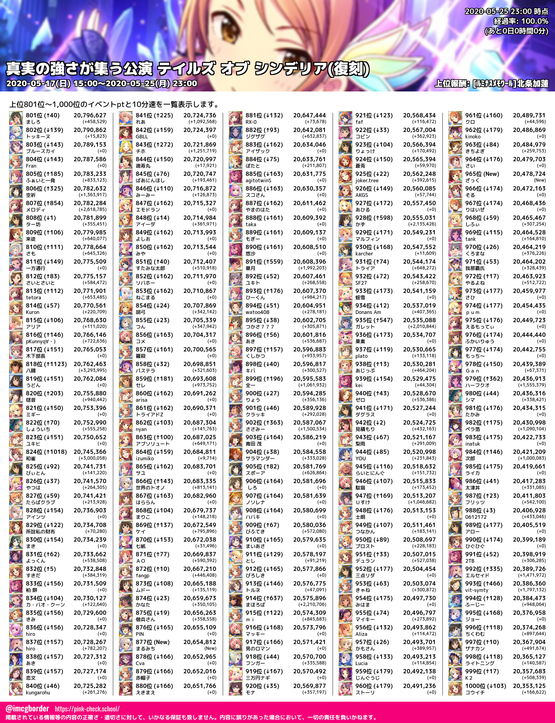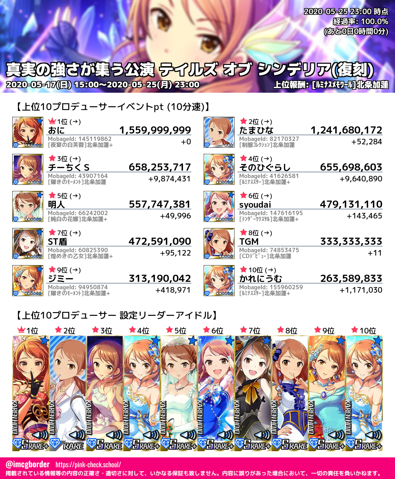 上位プロデューサースコア (2020-05-25 23:00 時点)