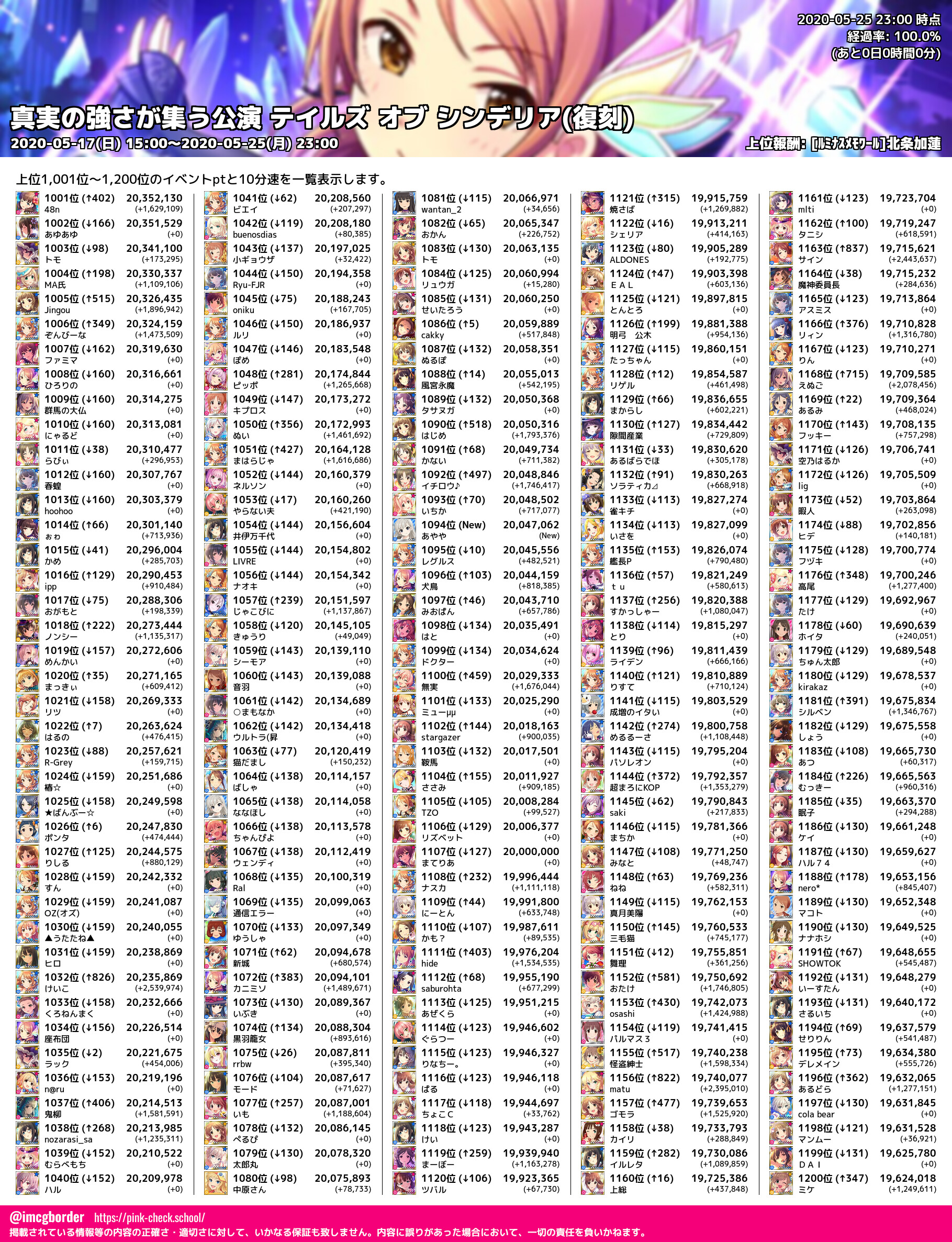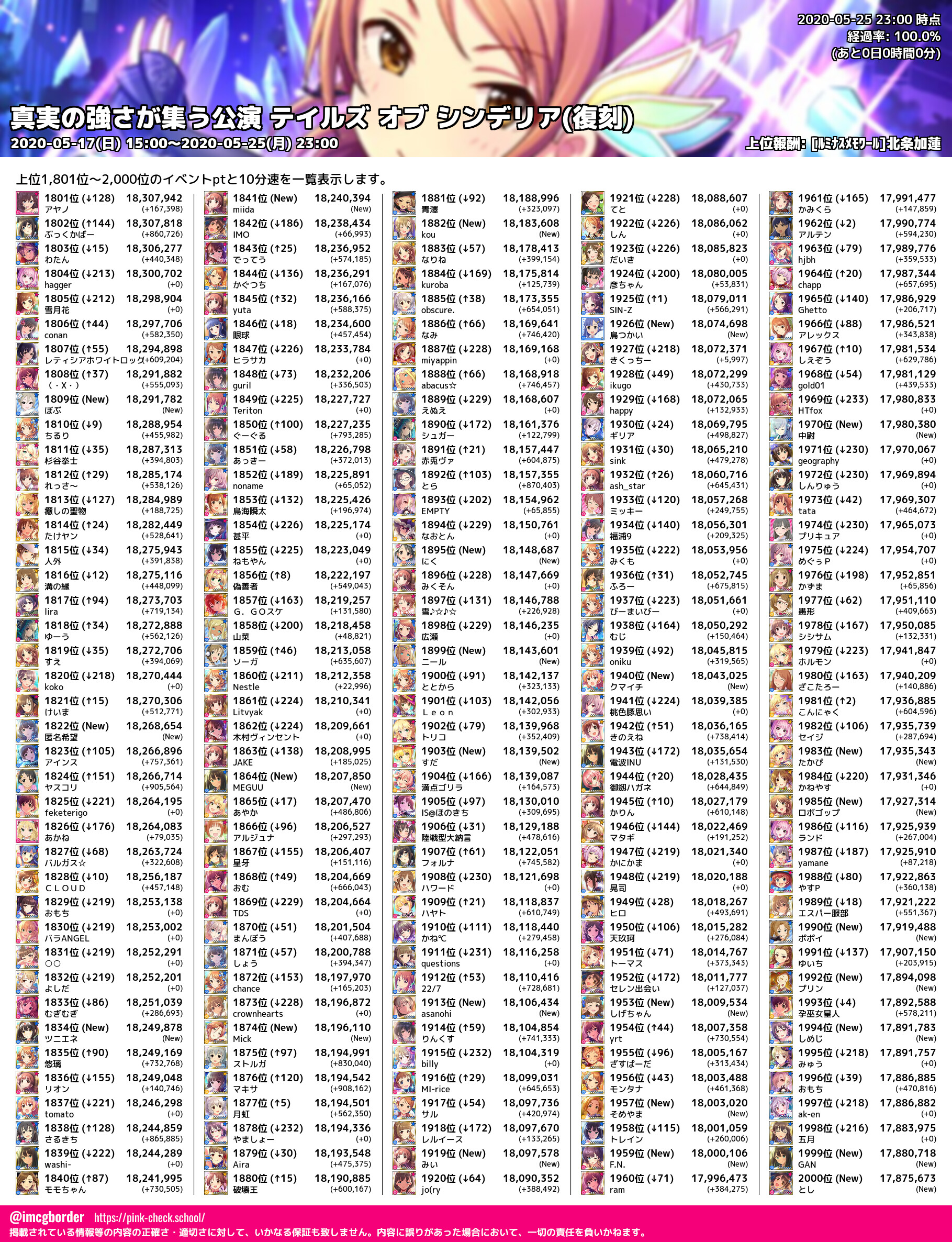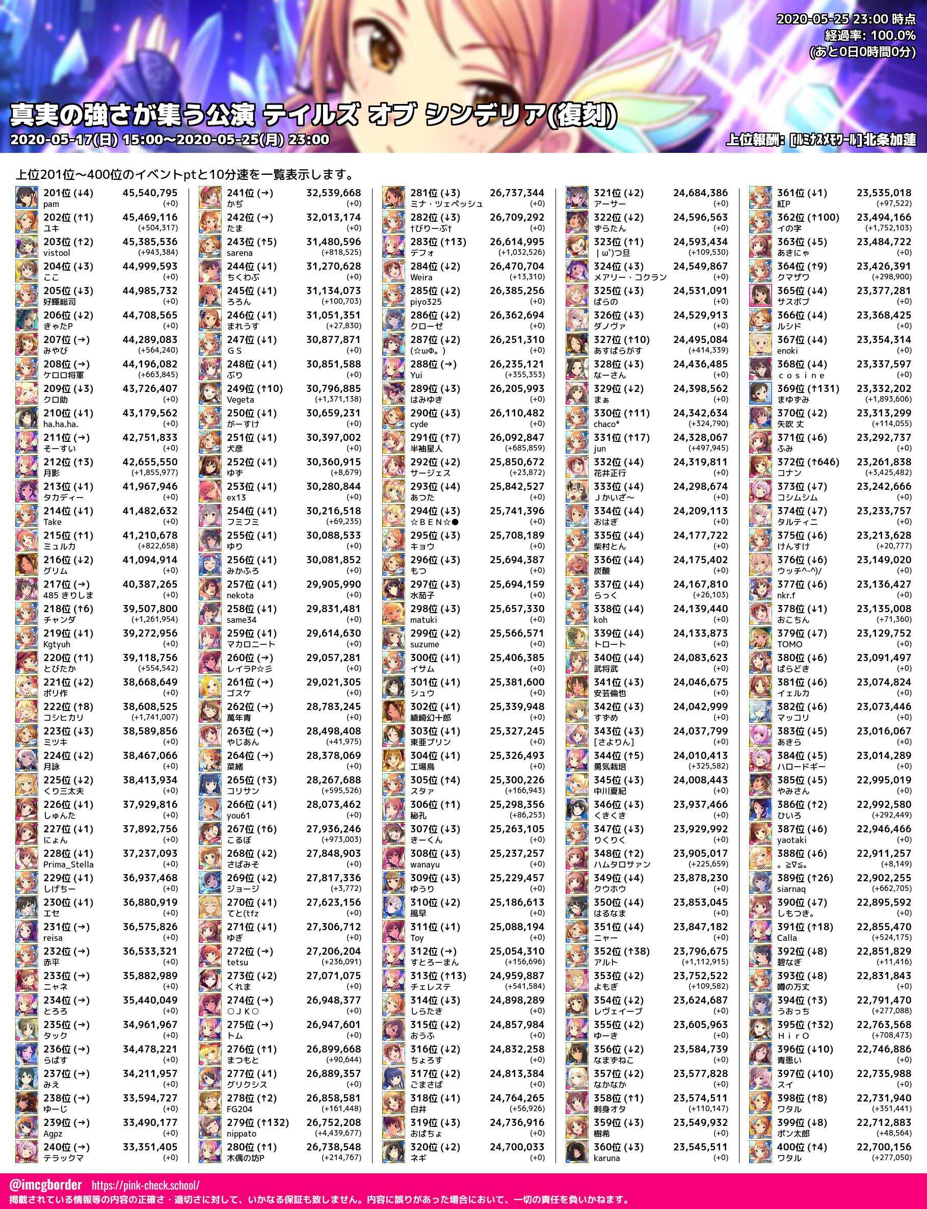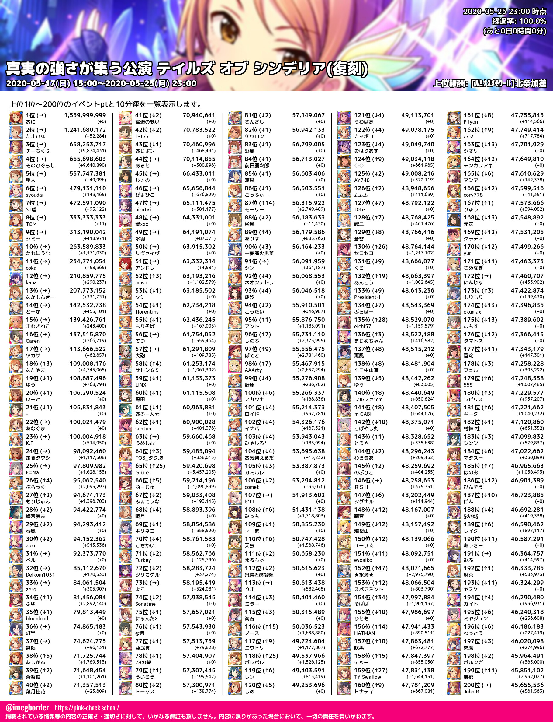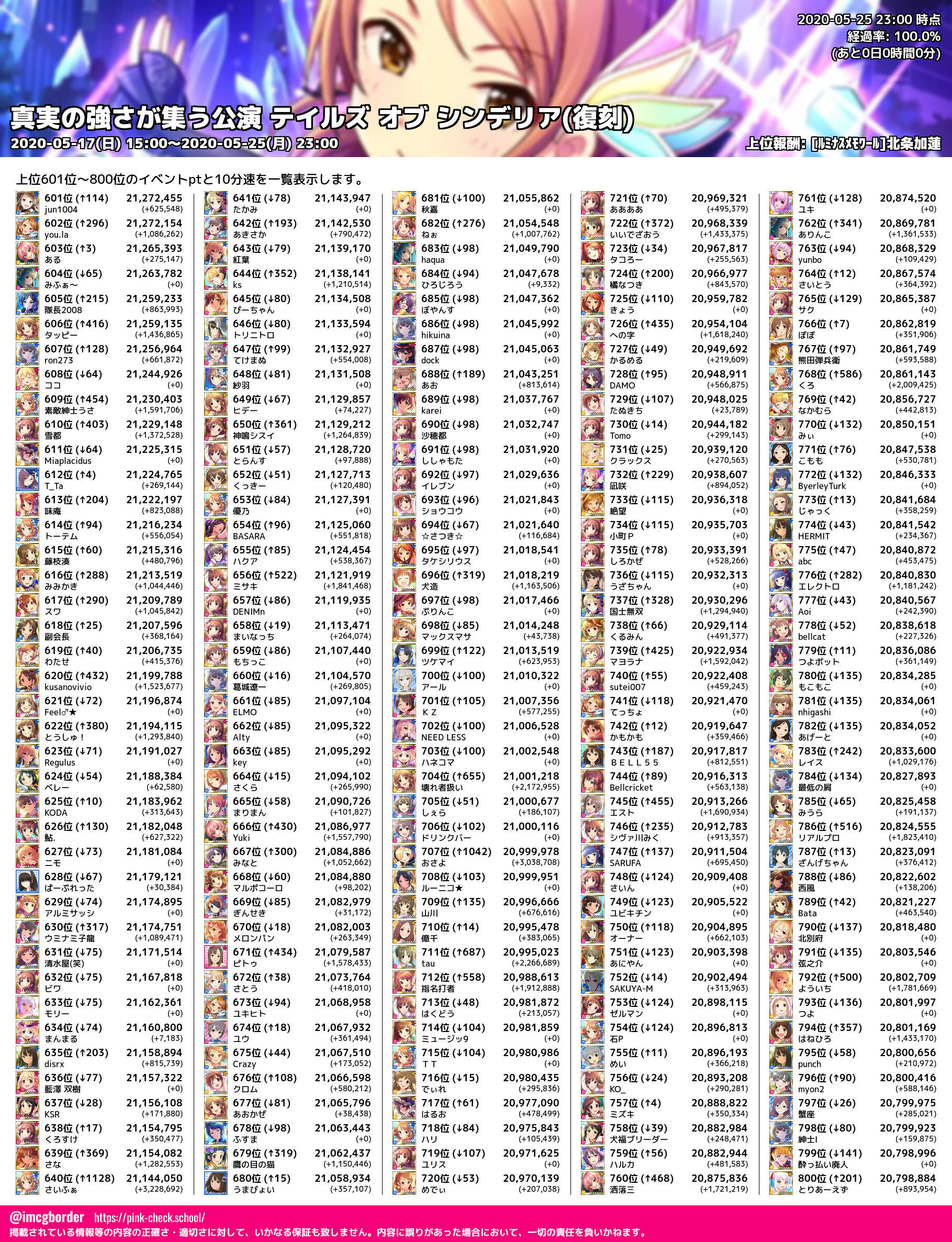 上位プロデューサースコア (2020-05-25 23:00 時点)