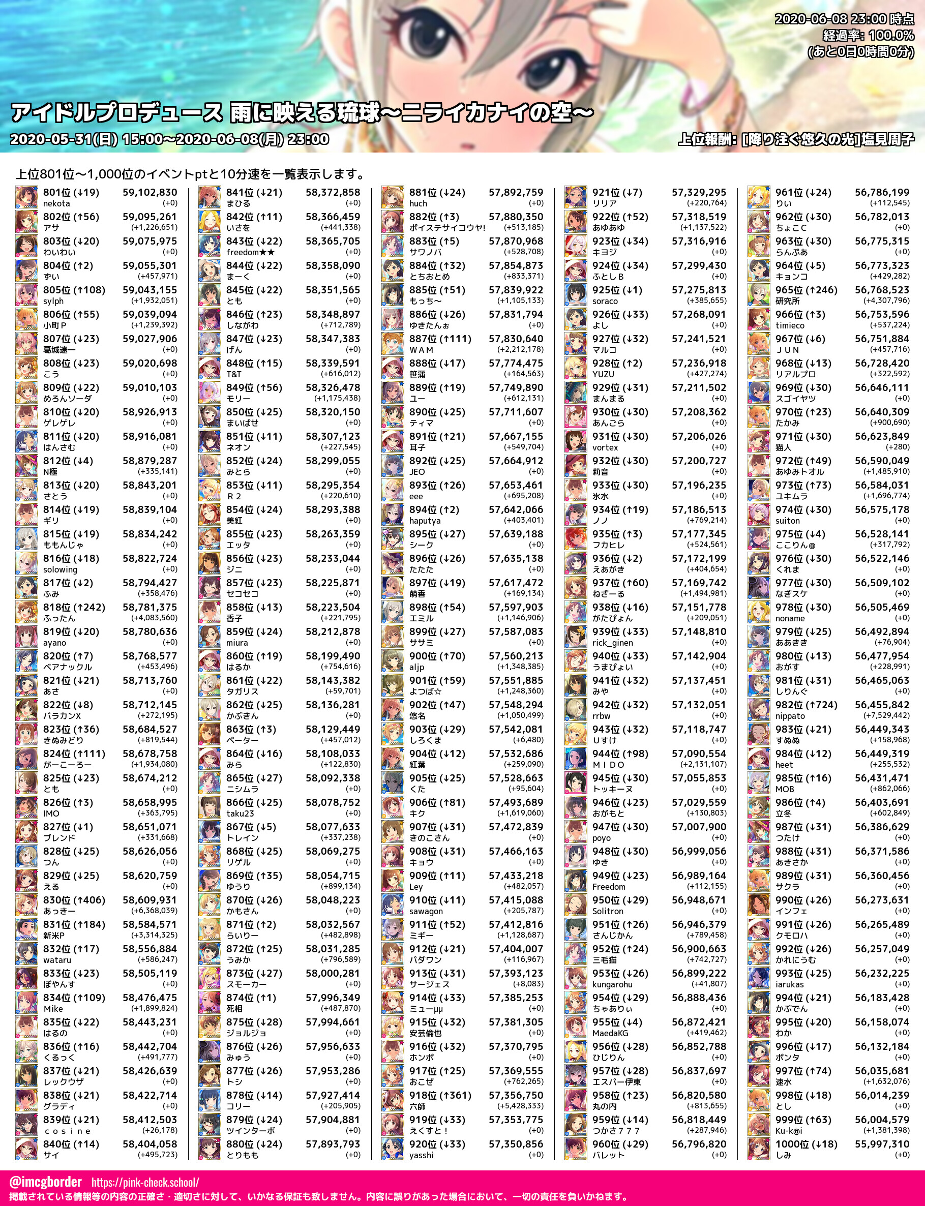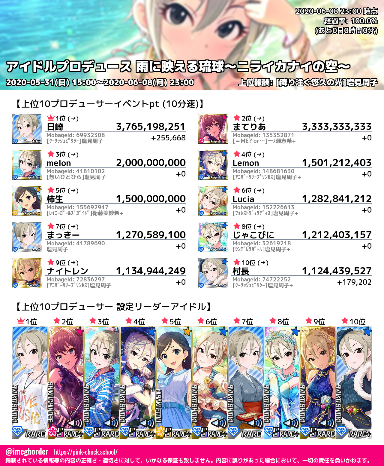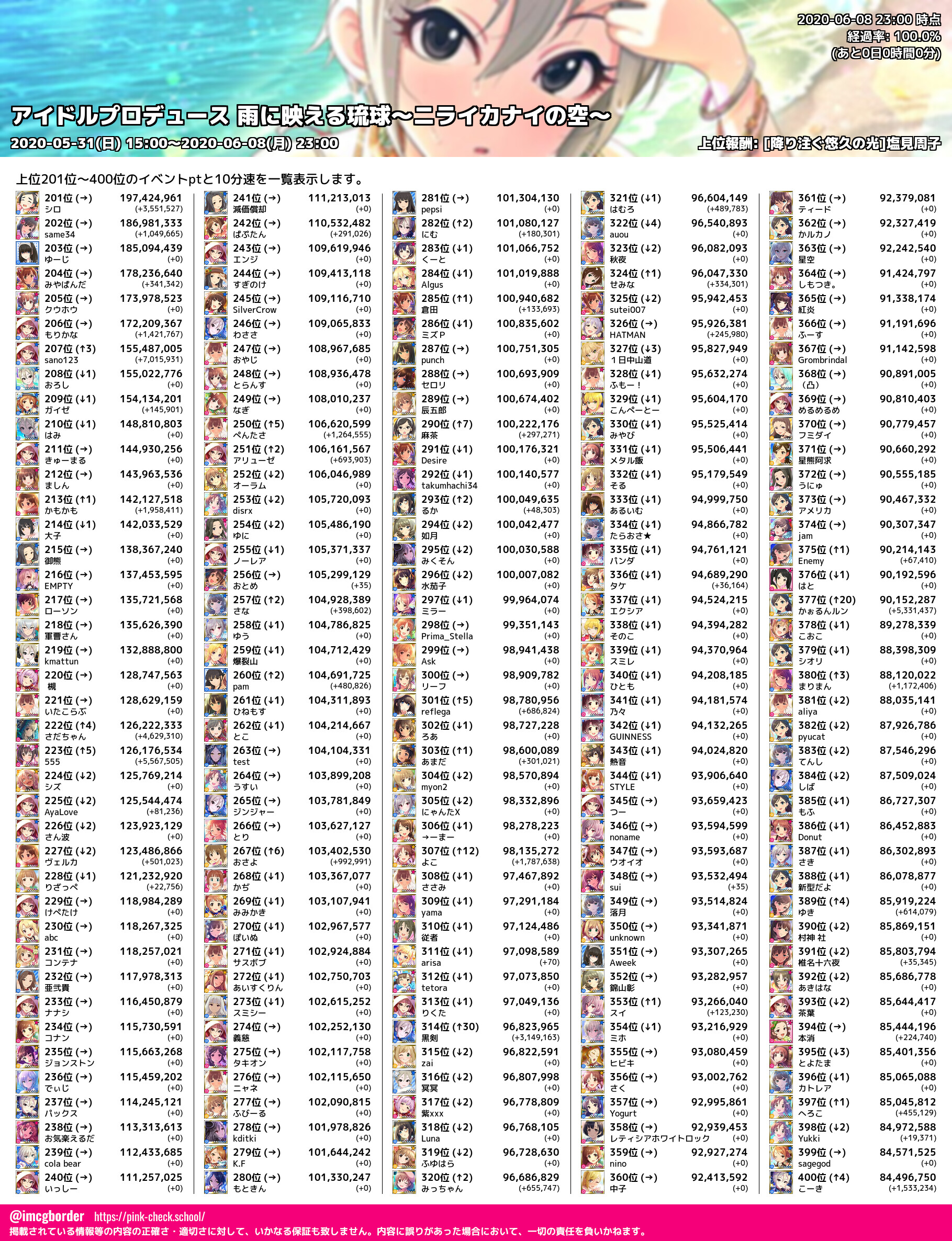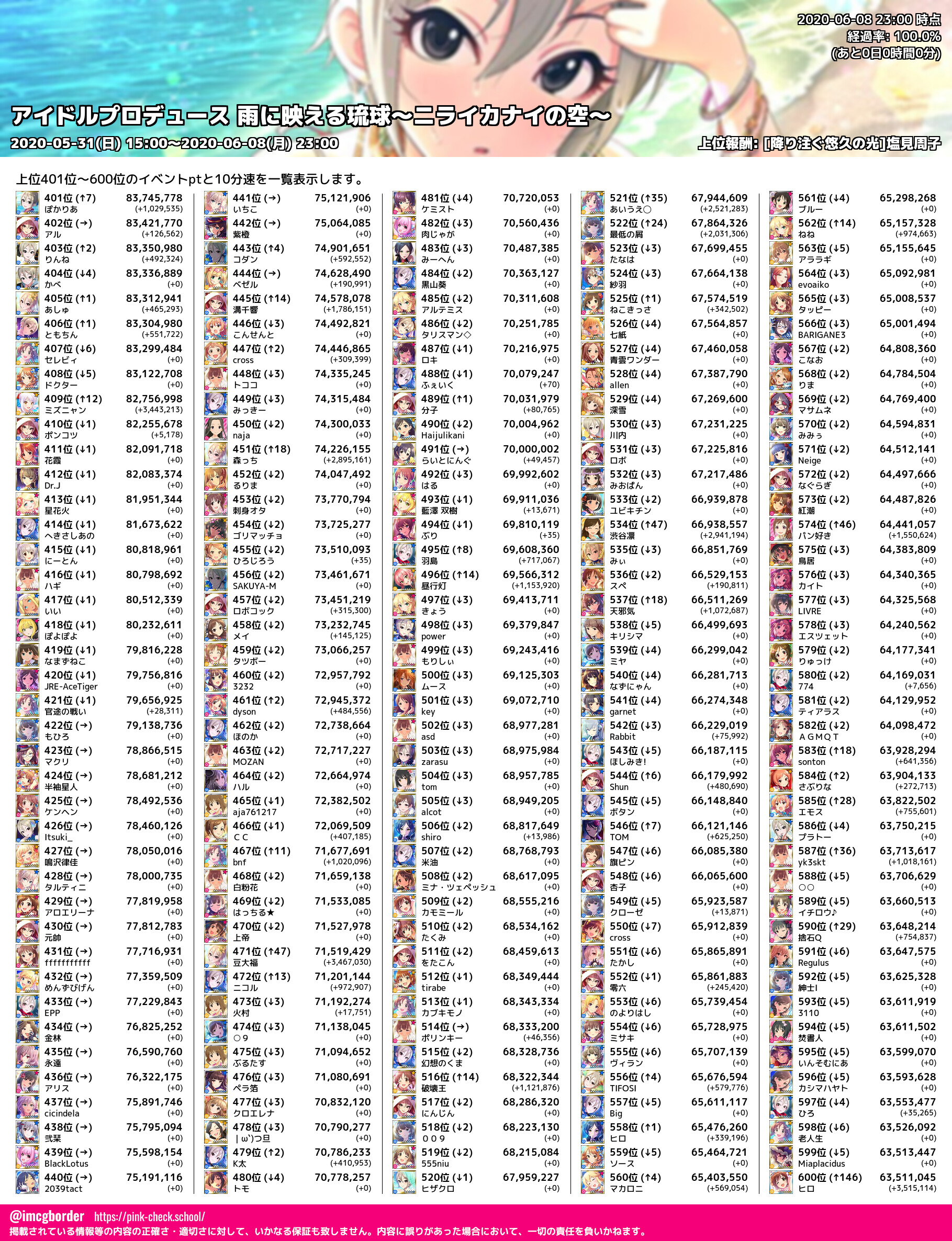 上位プロデューサースコア (2020-06-08 23:00 時点)