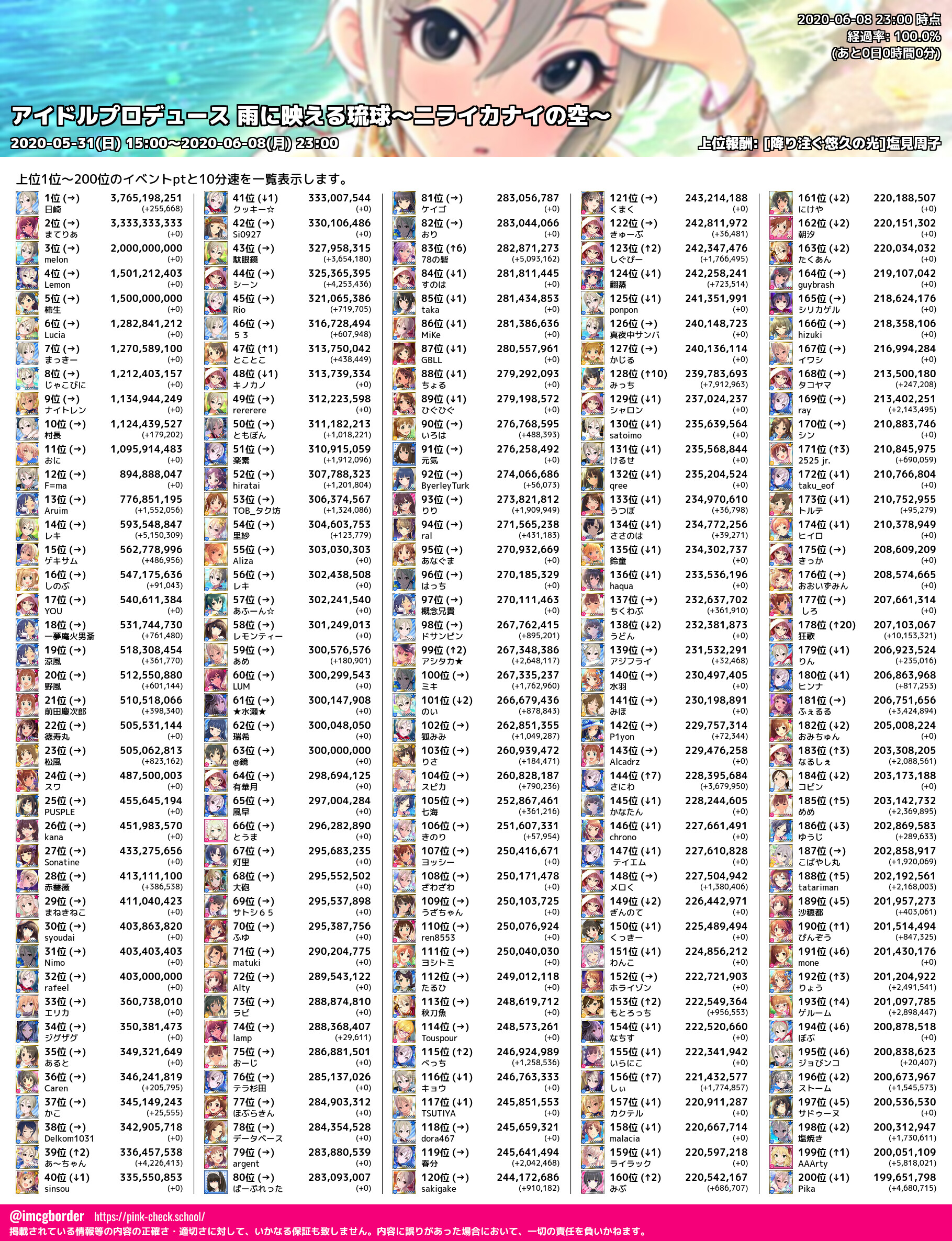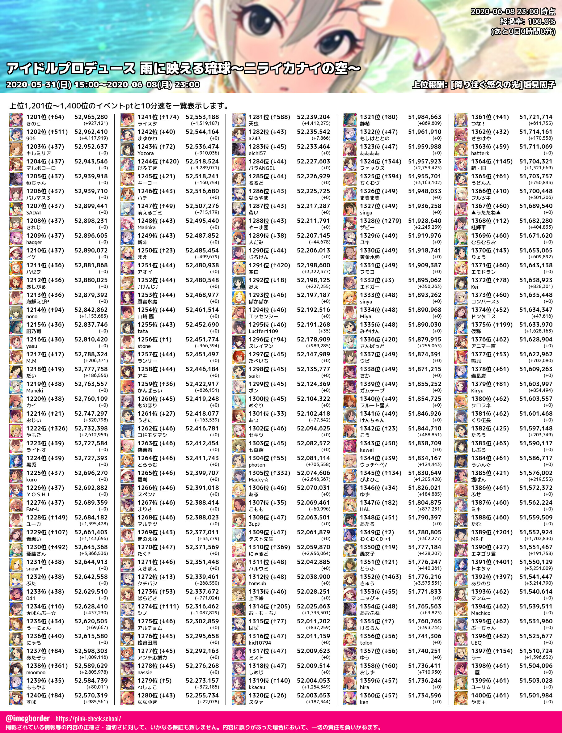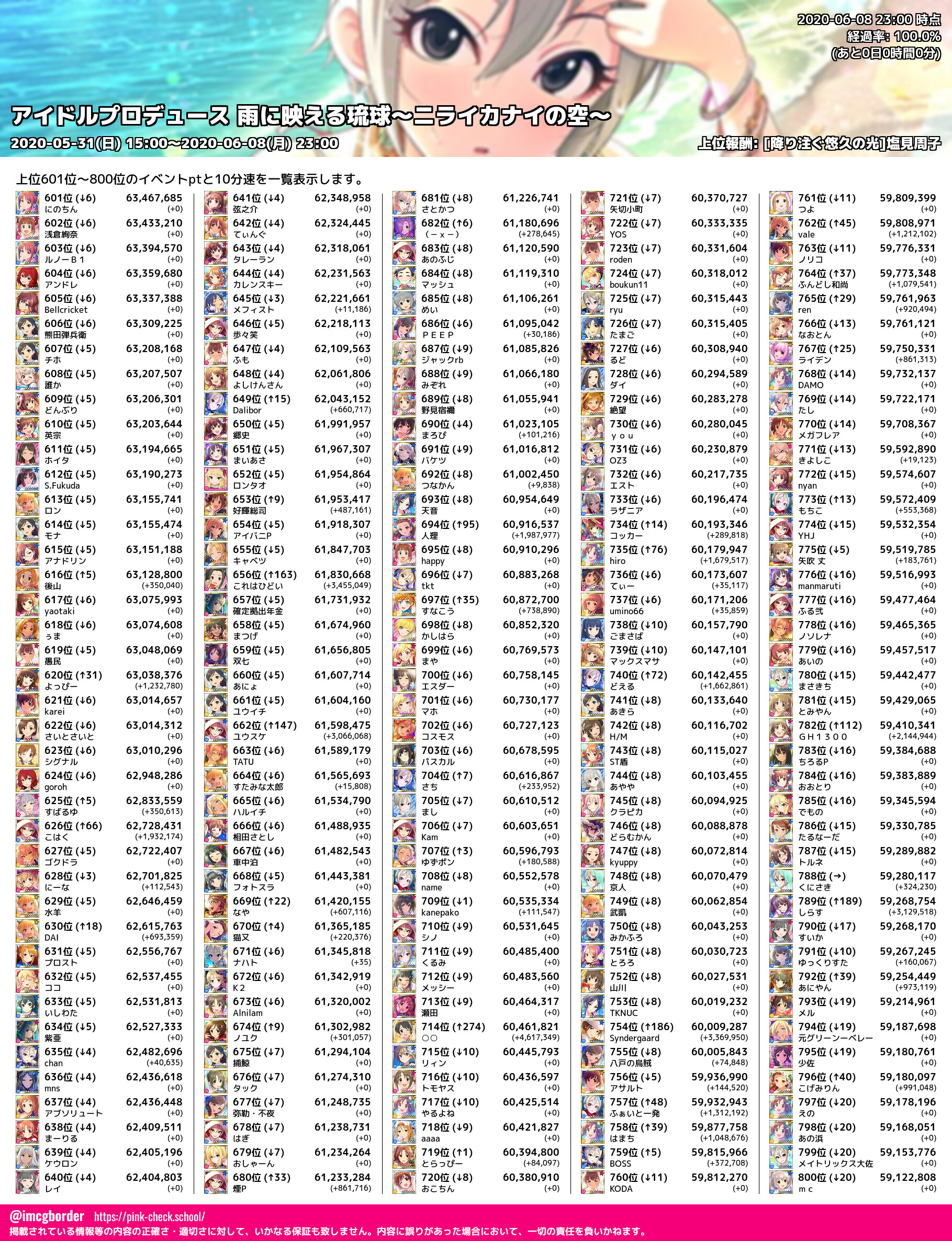 上位プロデューサースコア (2020-06-08 23:00 時点)