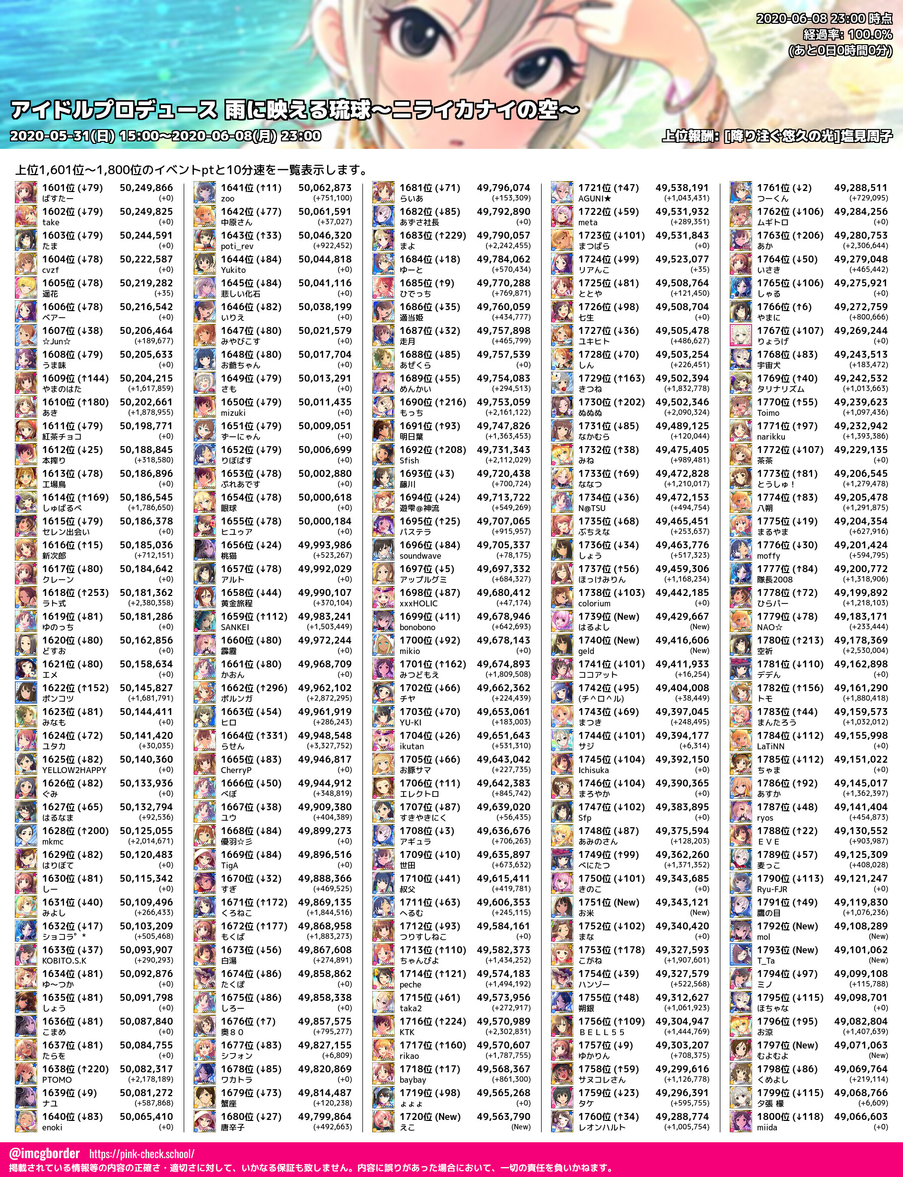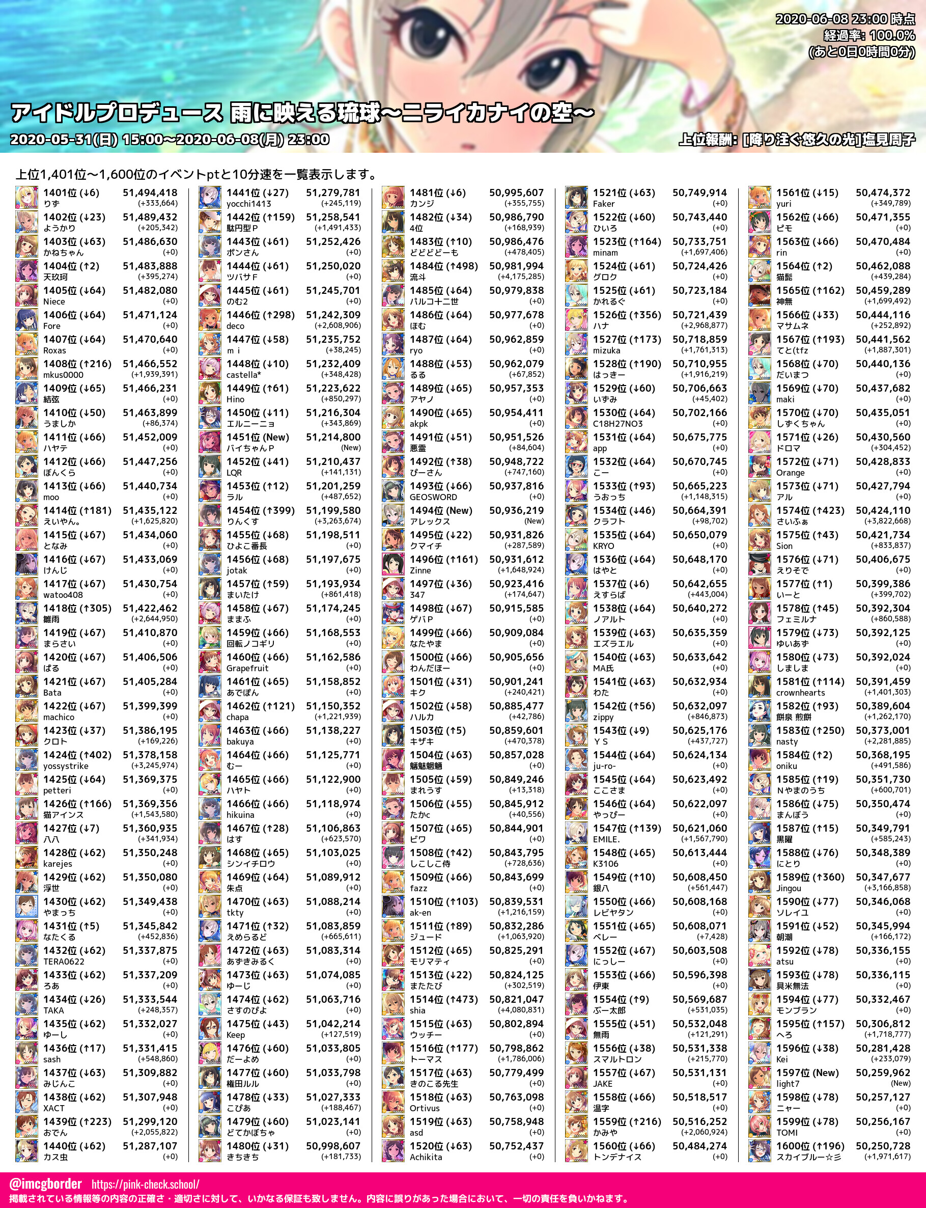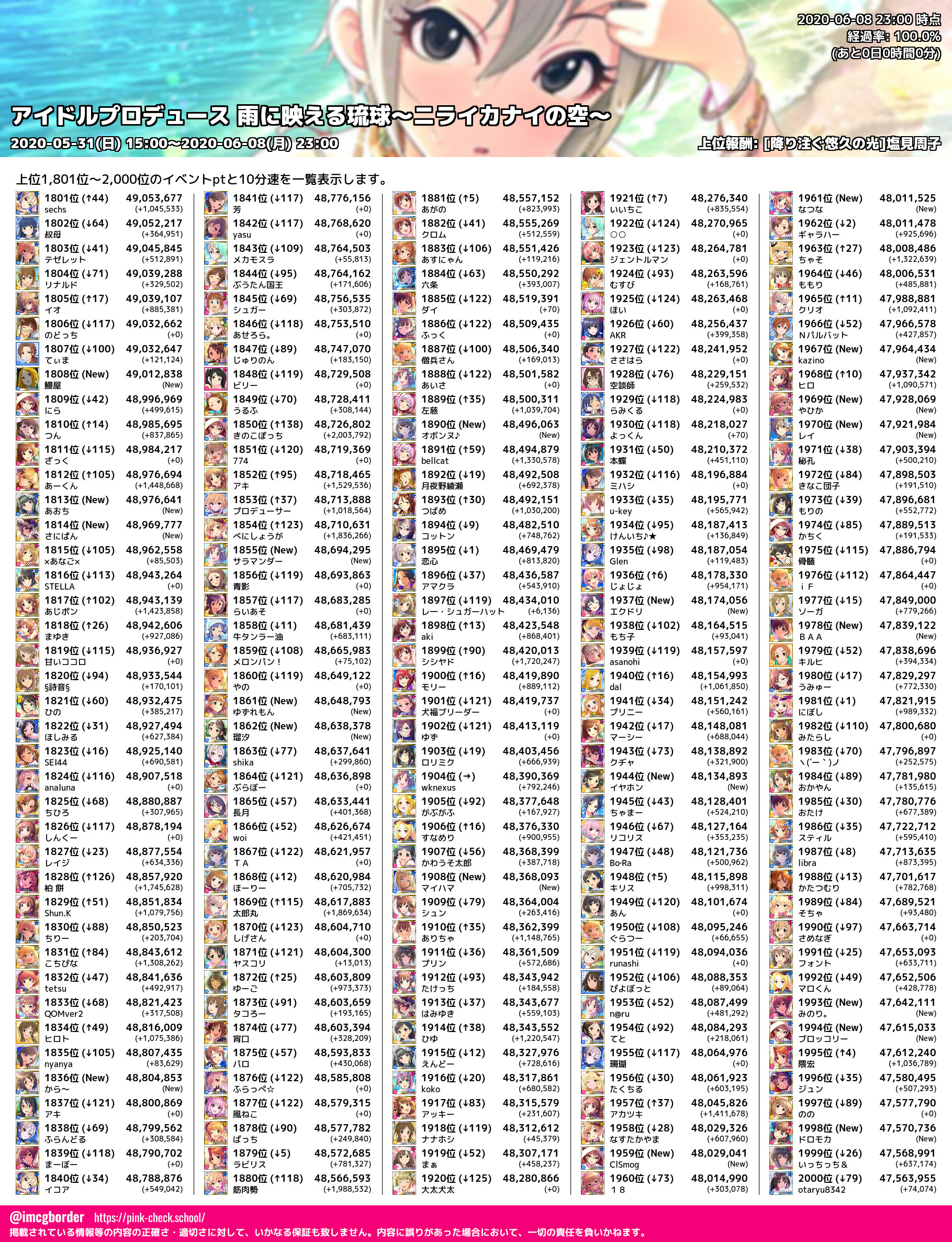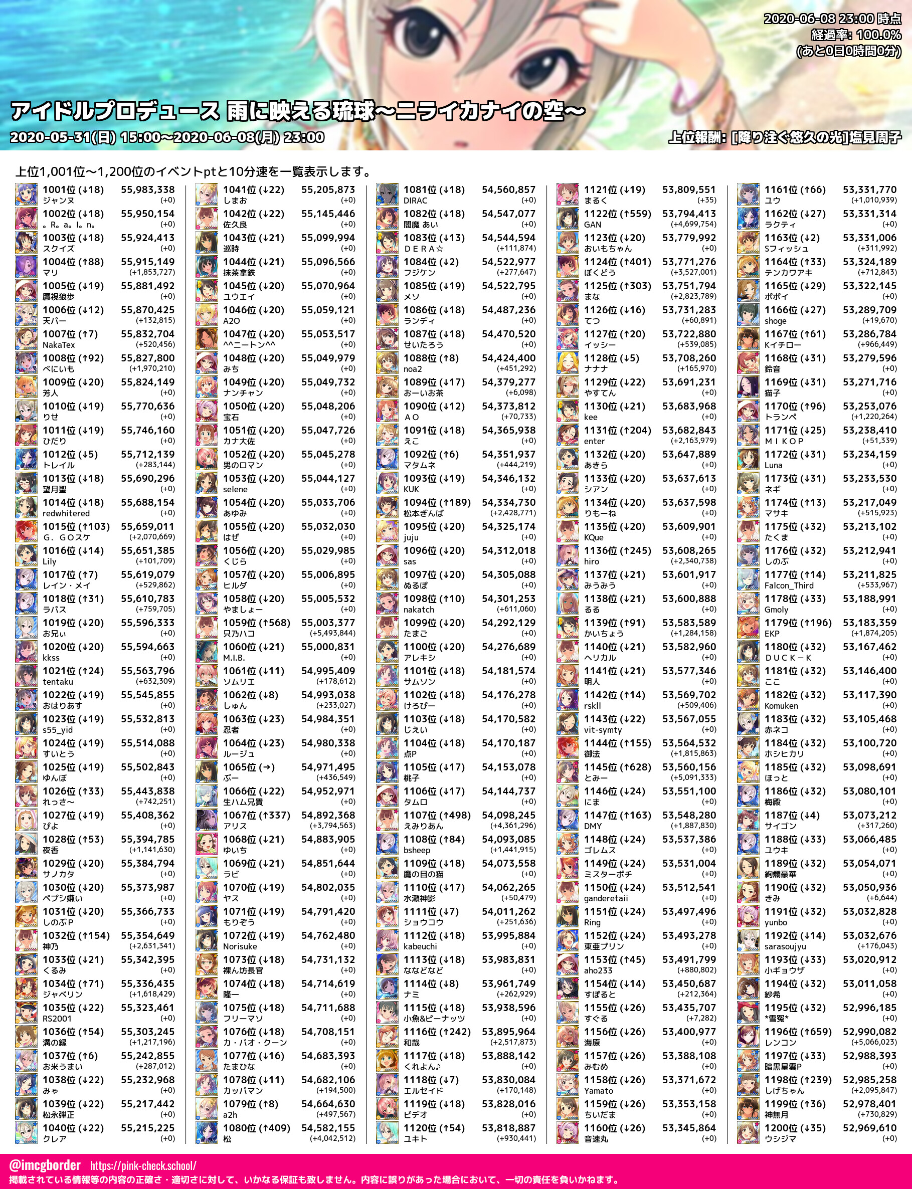 上位プロデューサースコア (2020-06-08 23:00 時点)