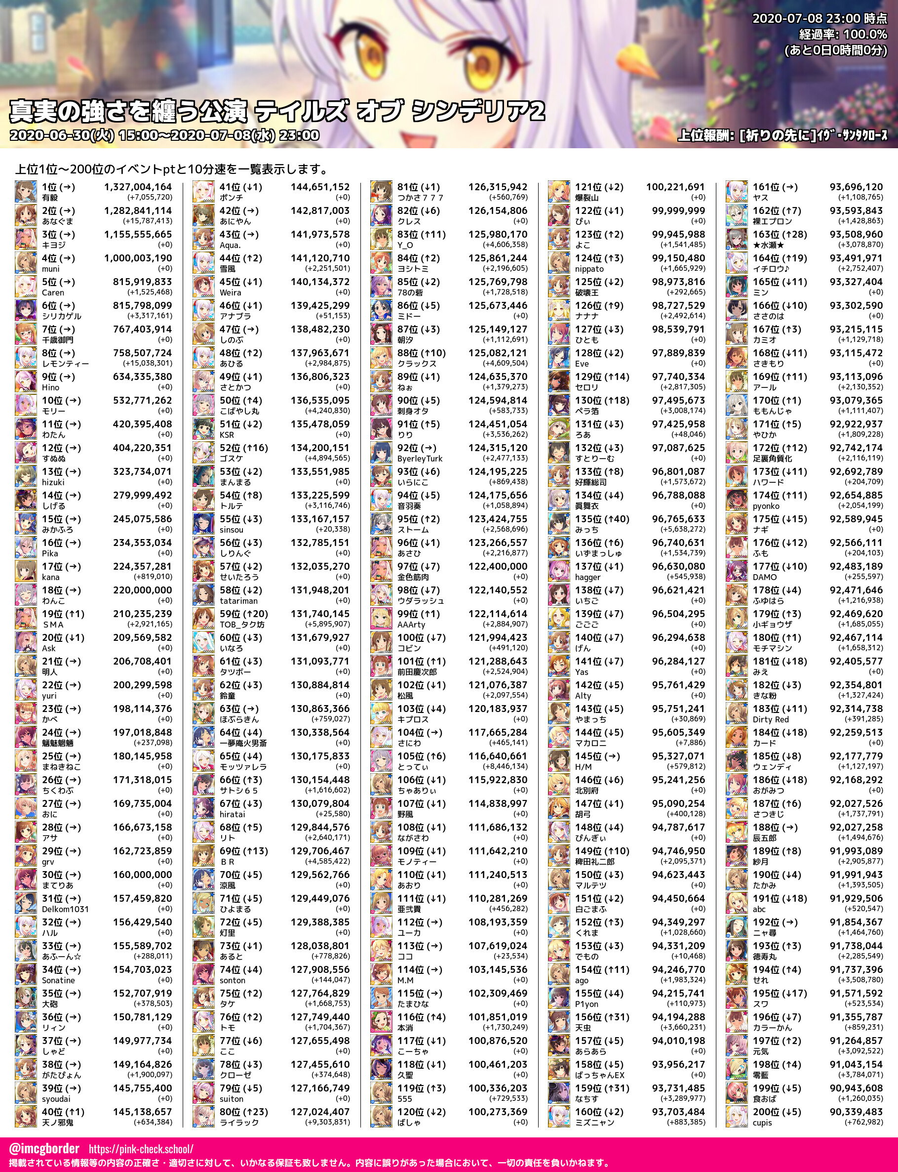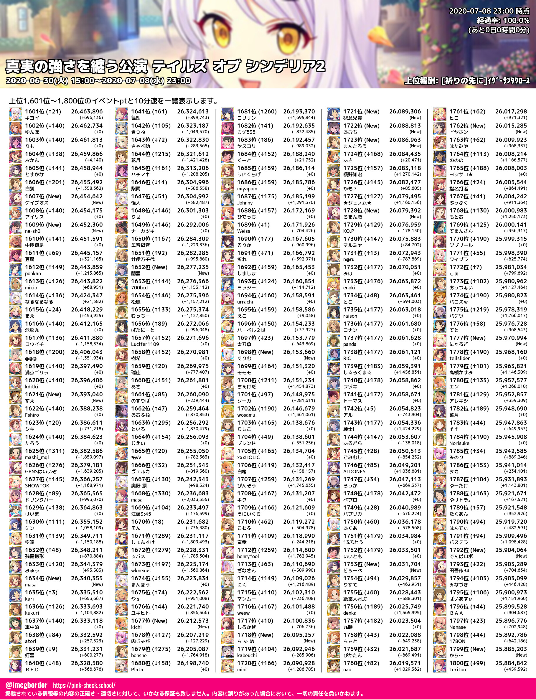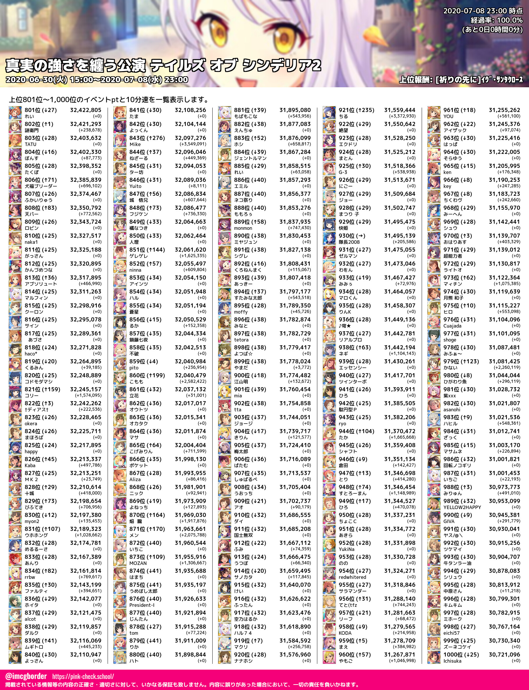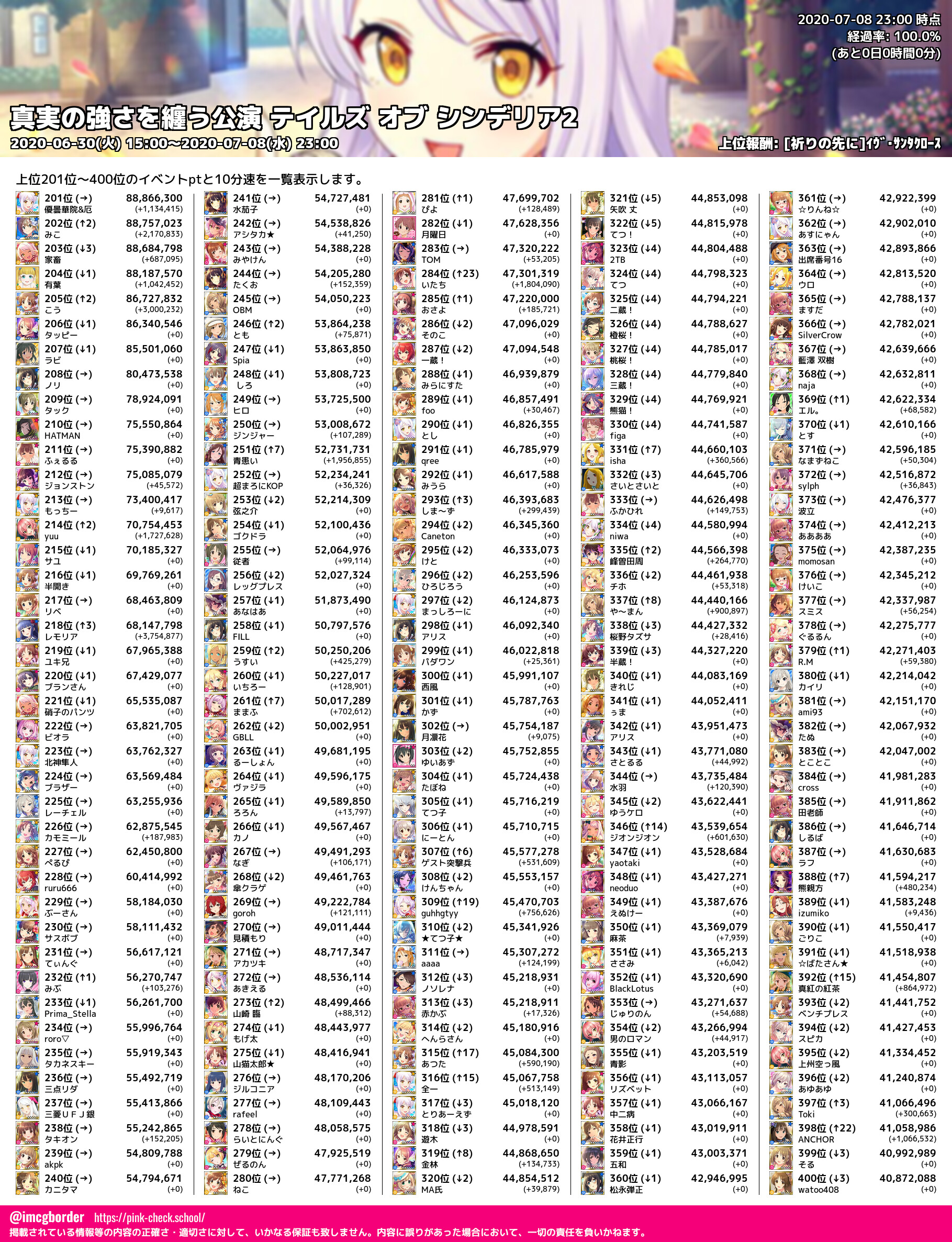 上位プロデューサースコア (2020-07-08 23:00 時点)