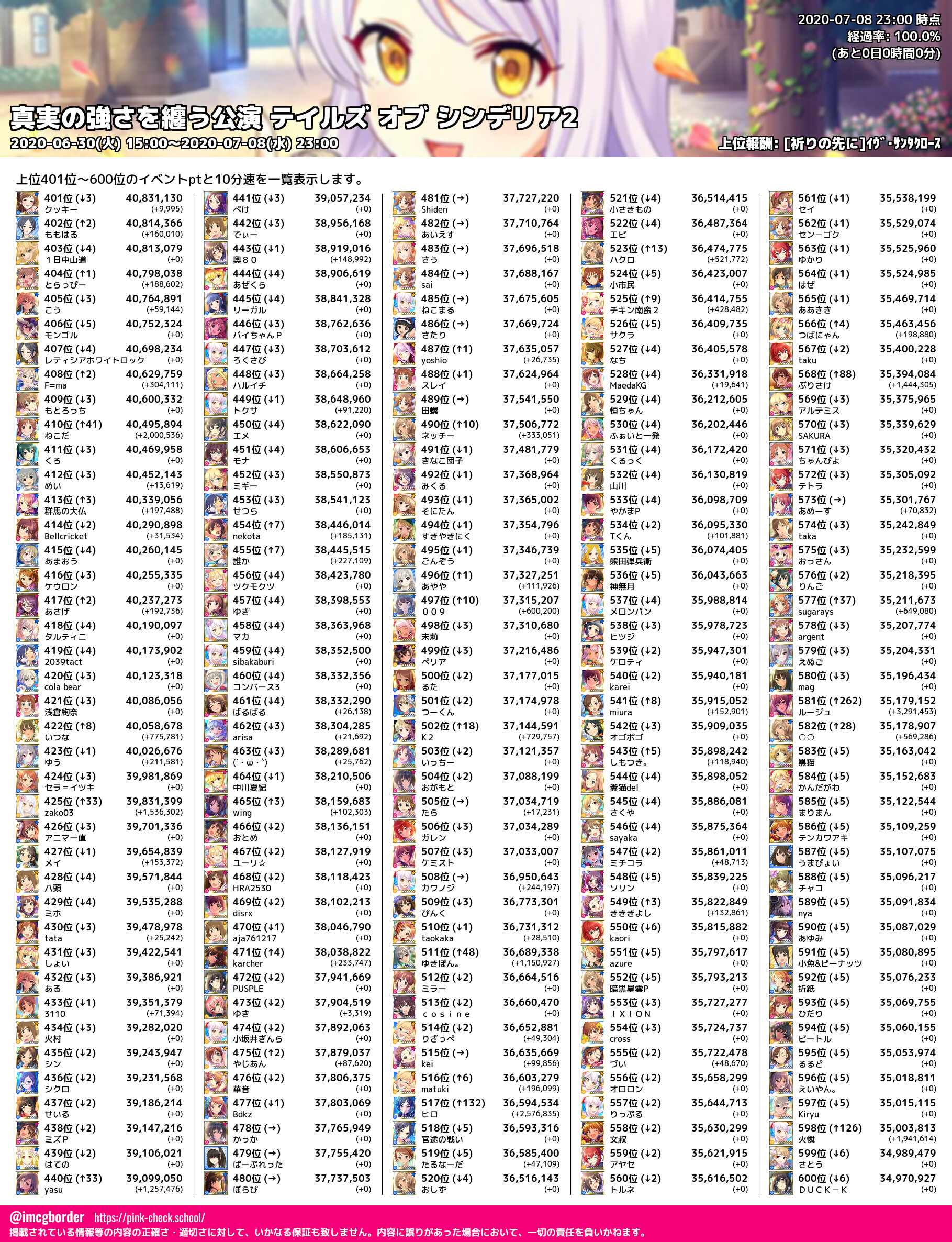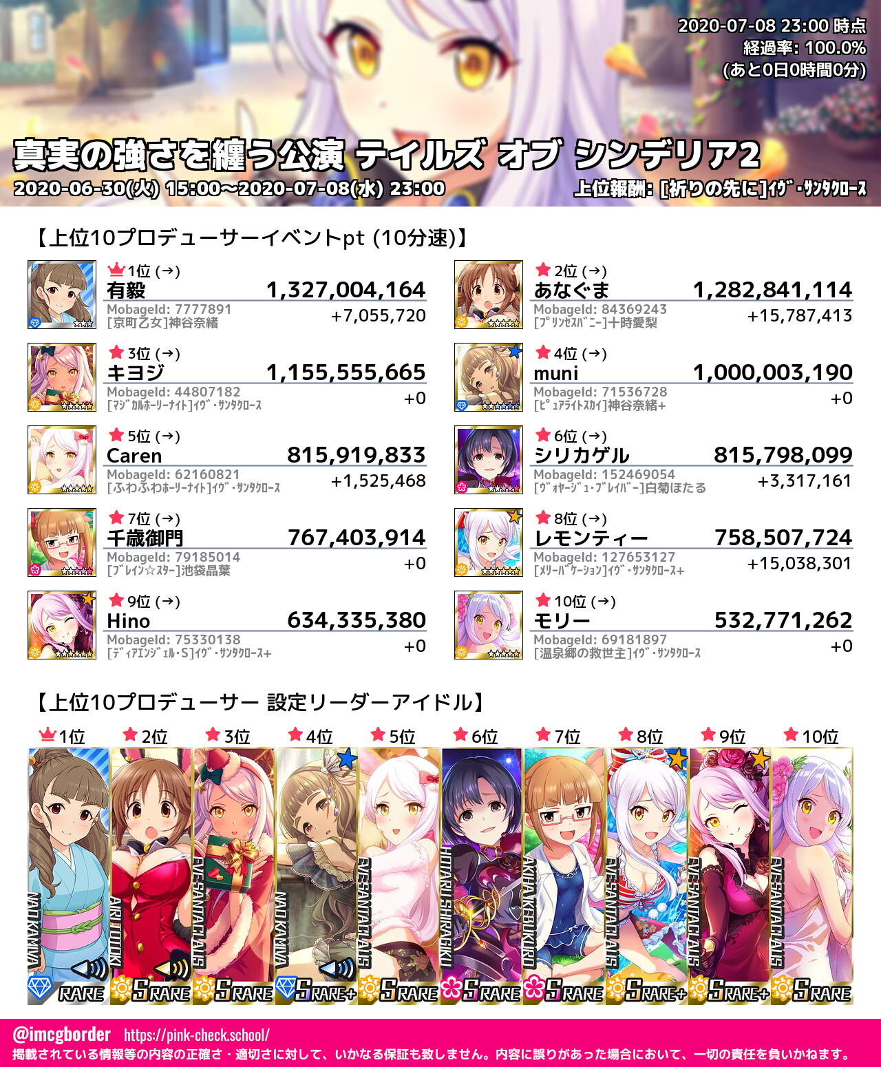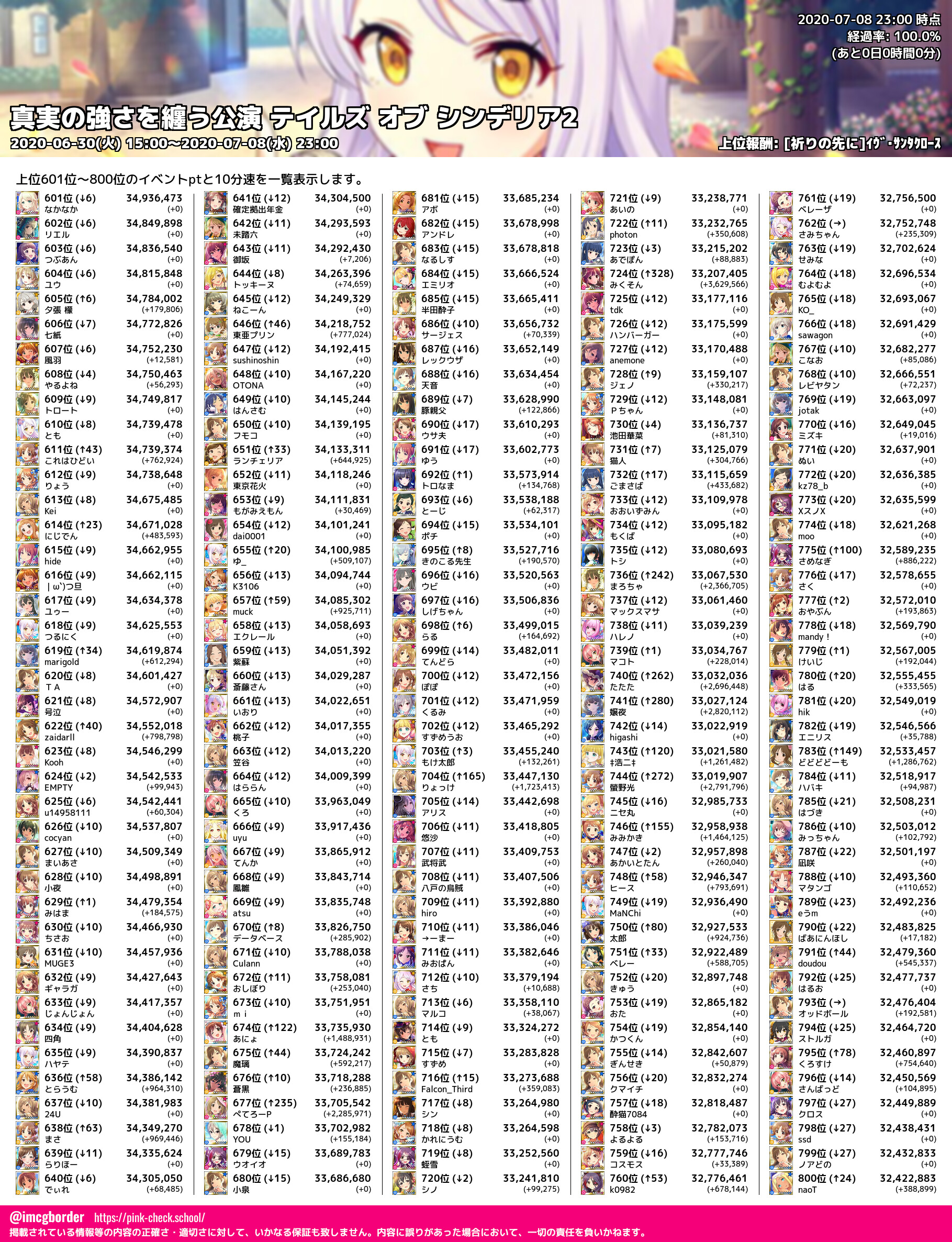 上位プロデューサースコア (2020-07-08 23:00 時点)