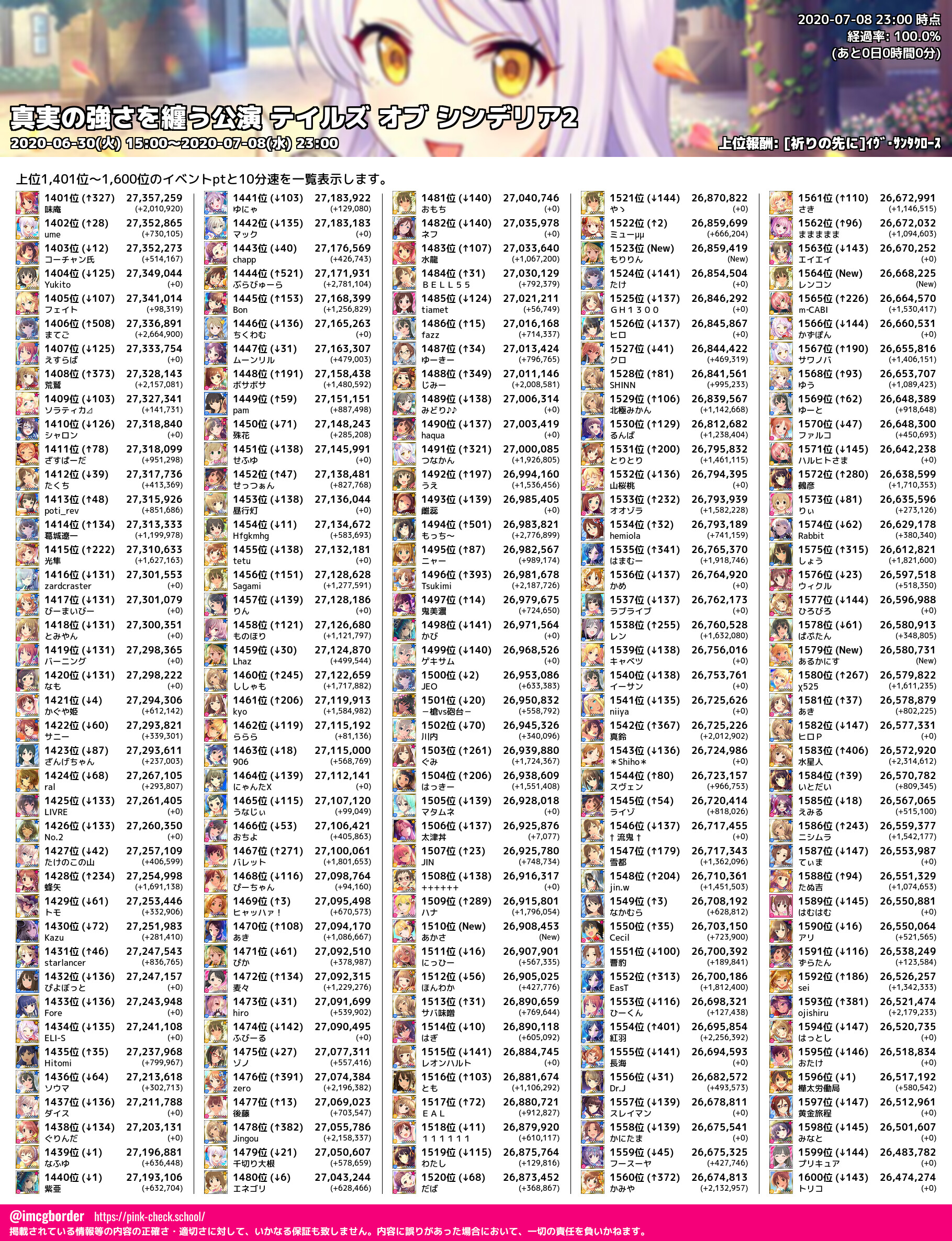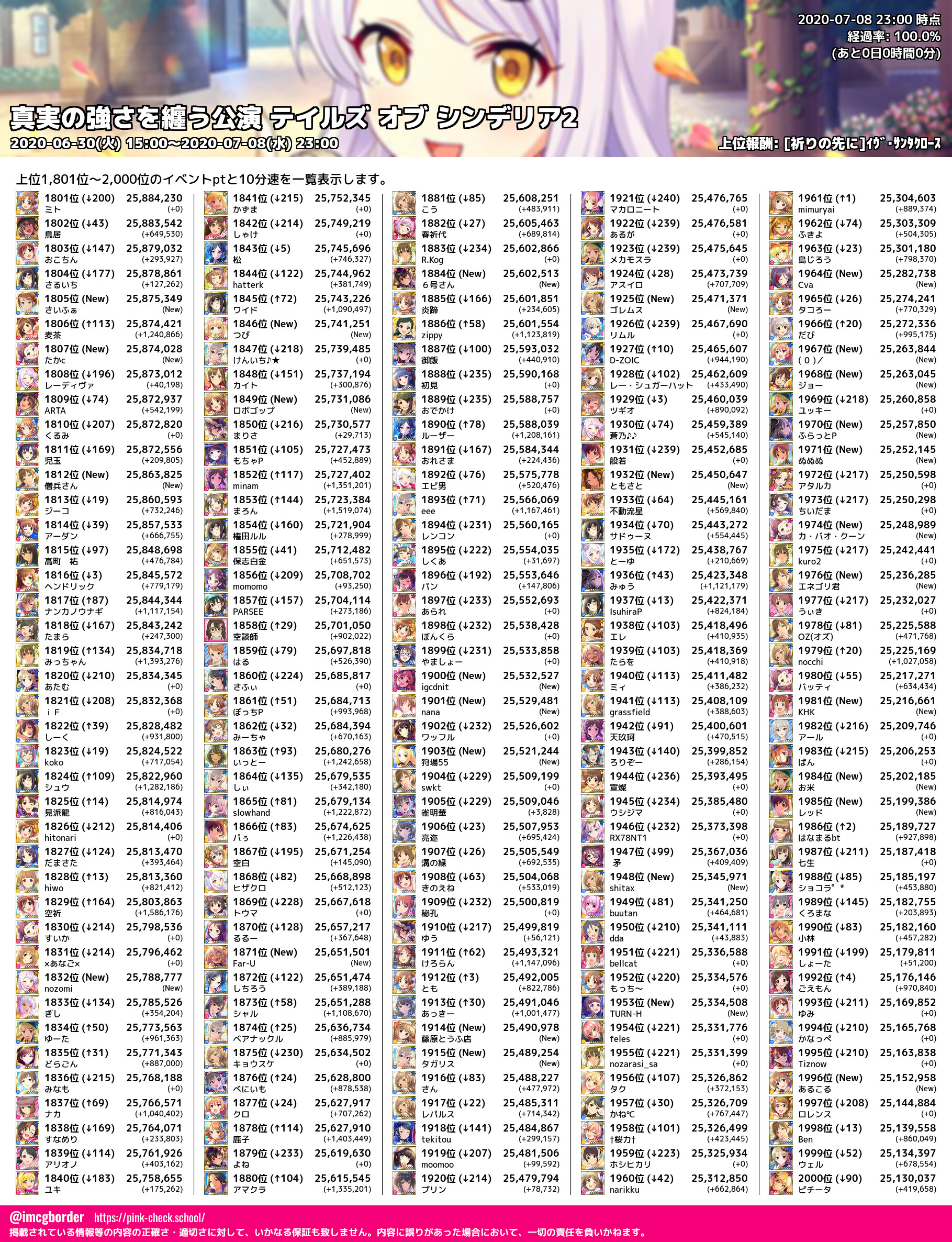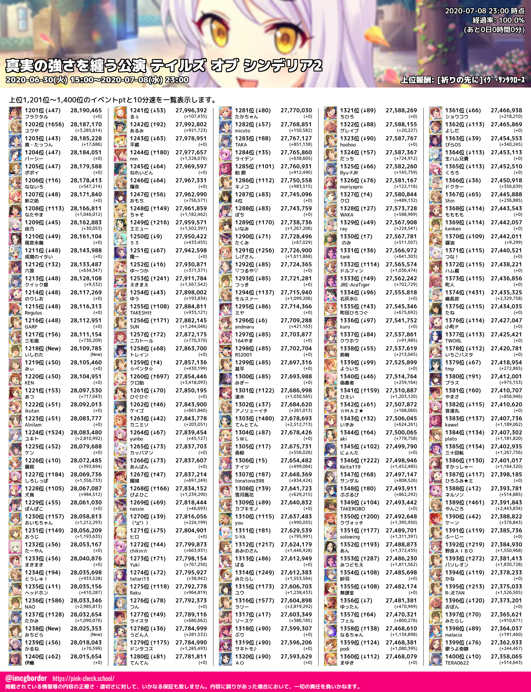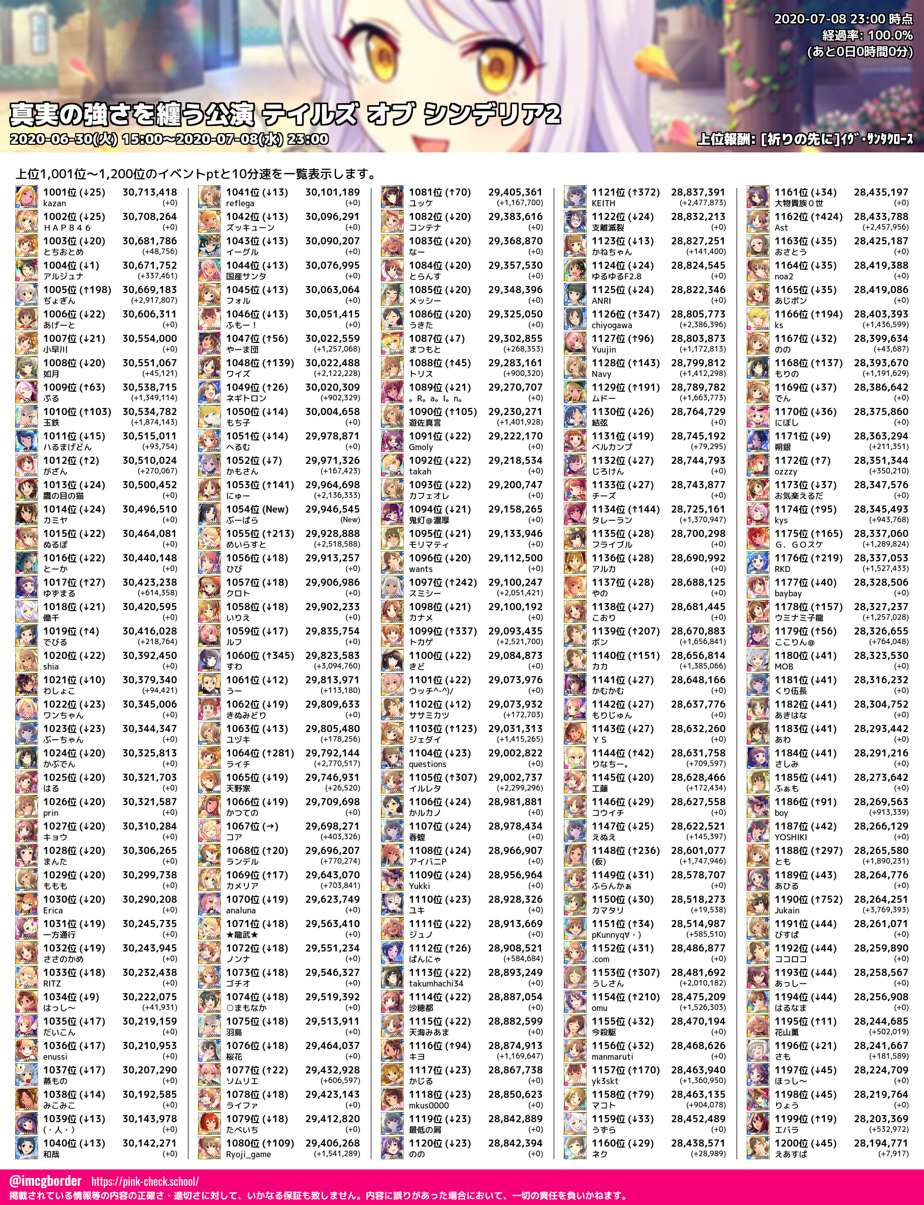 上位プロデューサースコア (2020-07-08 23:00 時点)