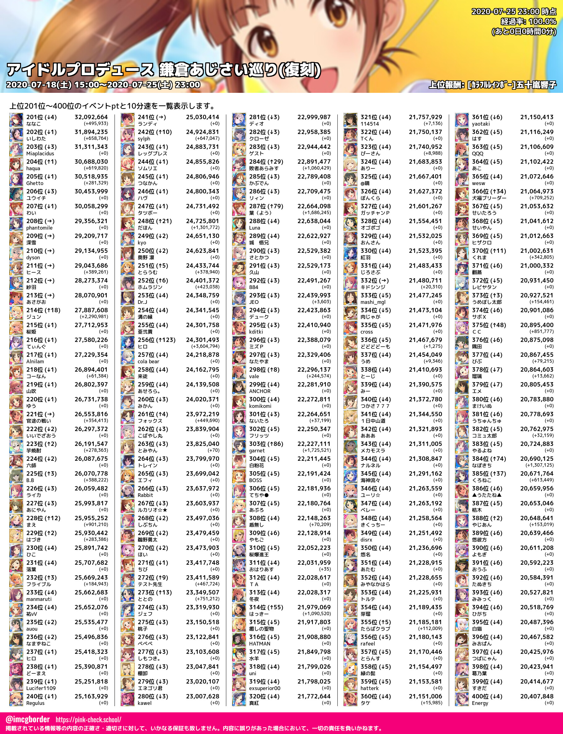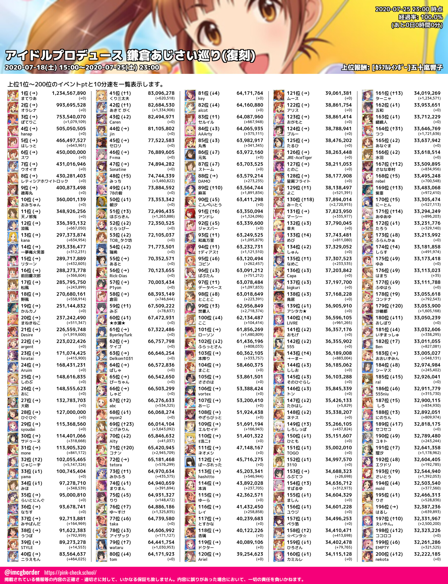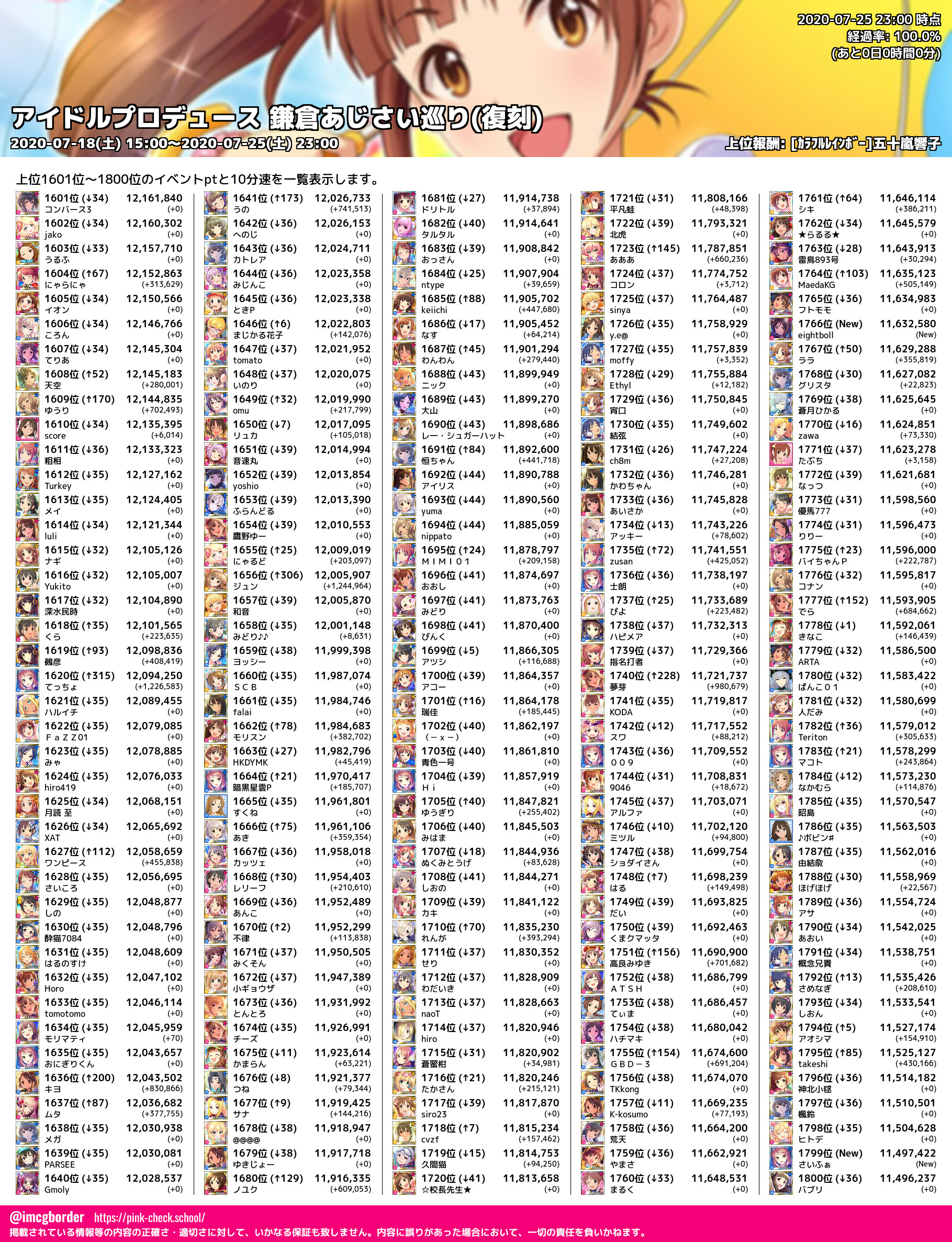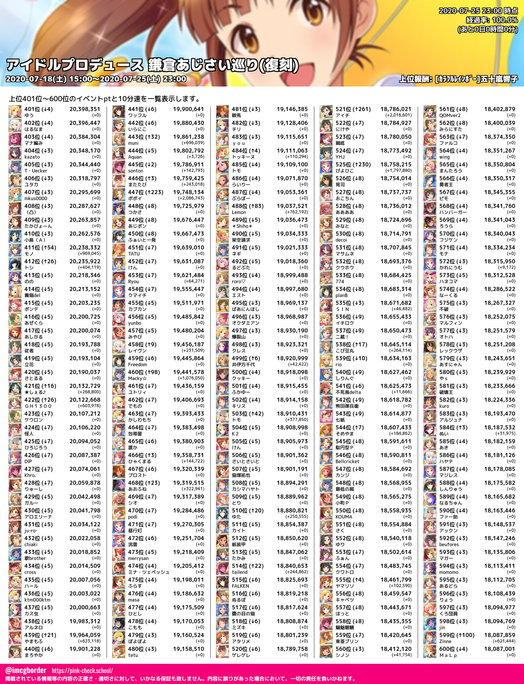 上位プロデューサースコア (2020-07-25 23:00 時点)