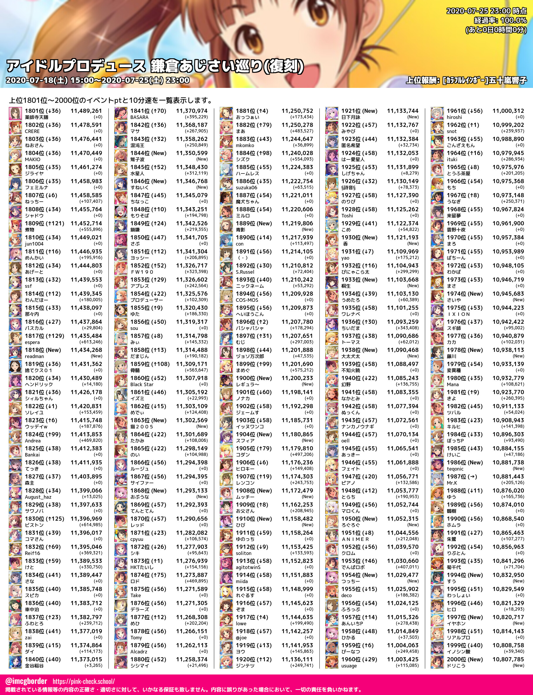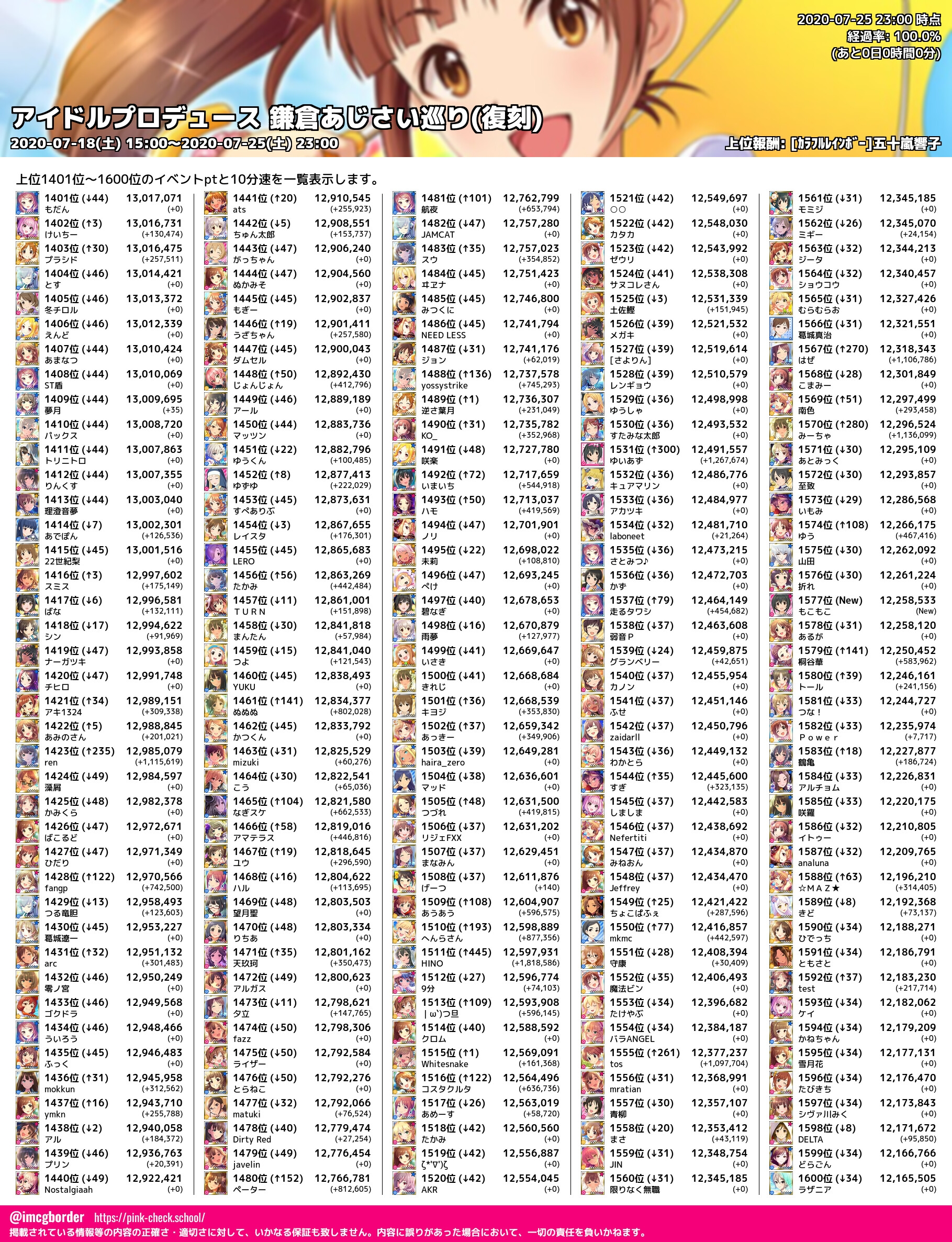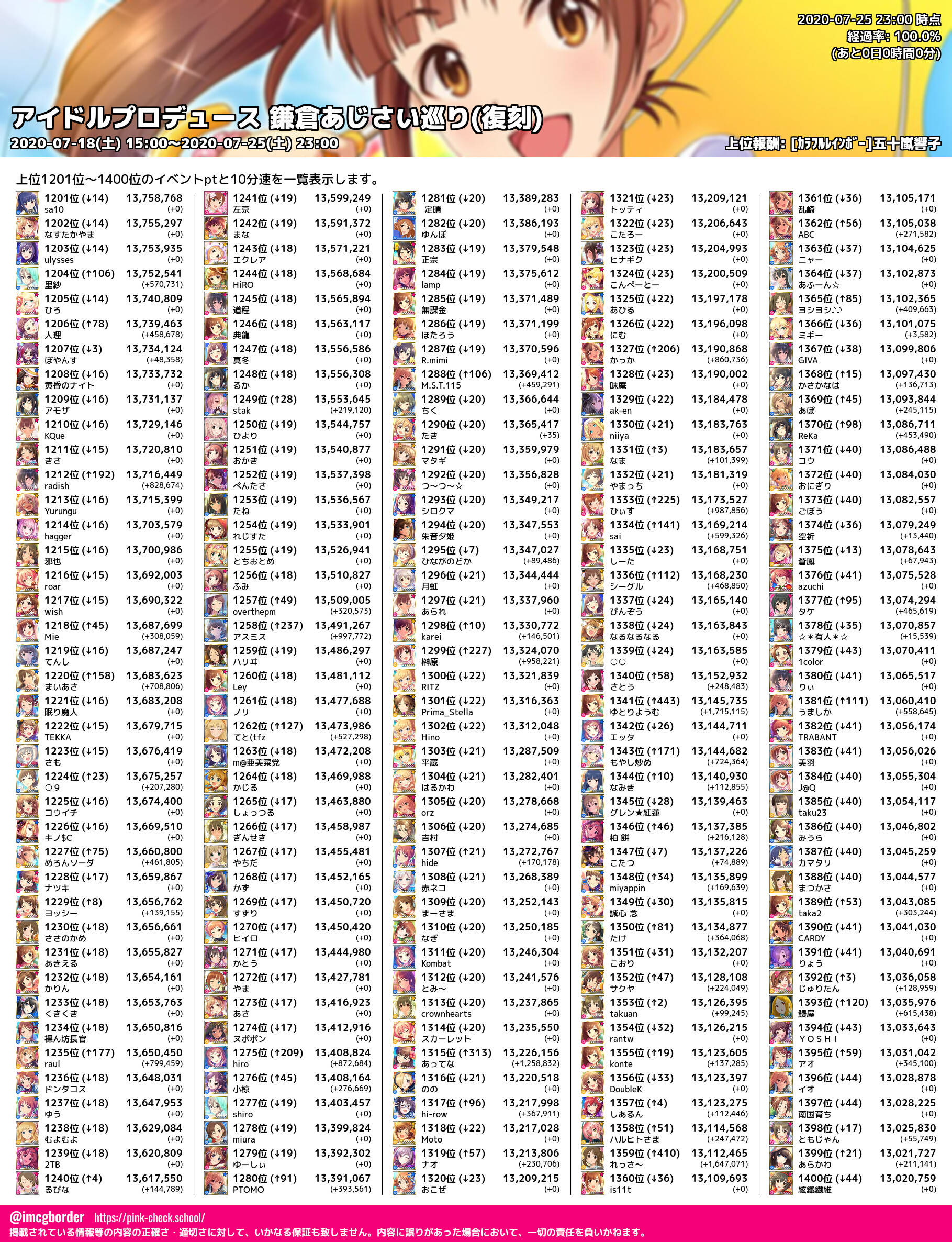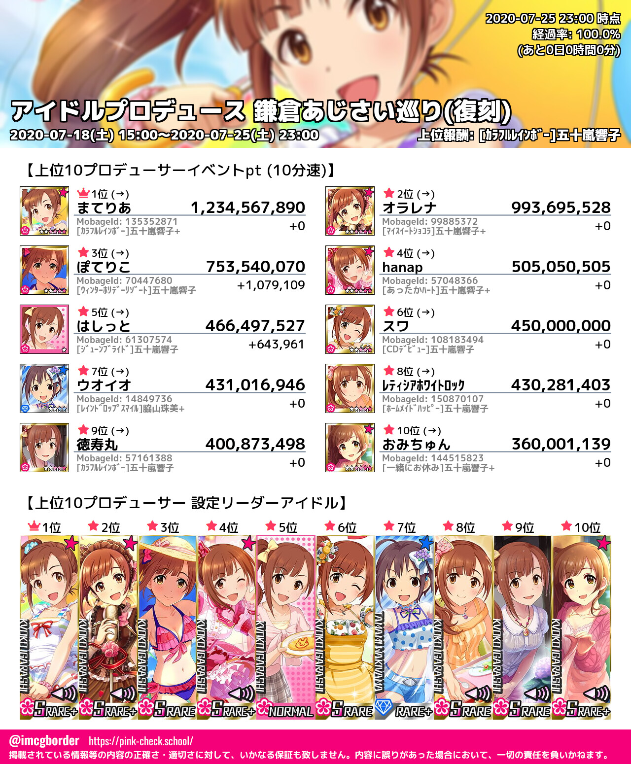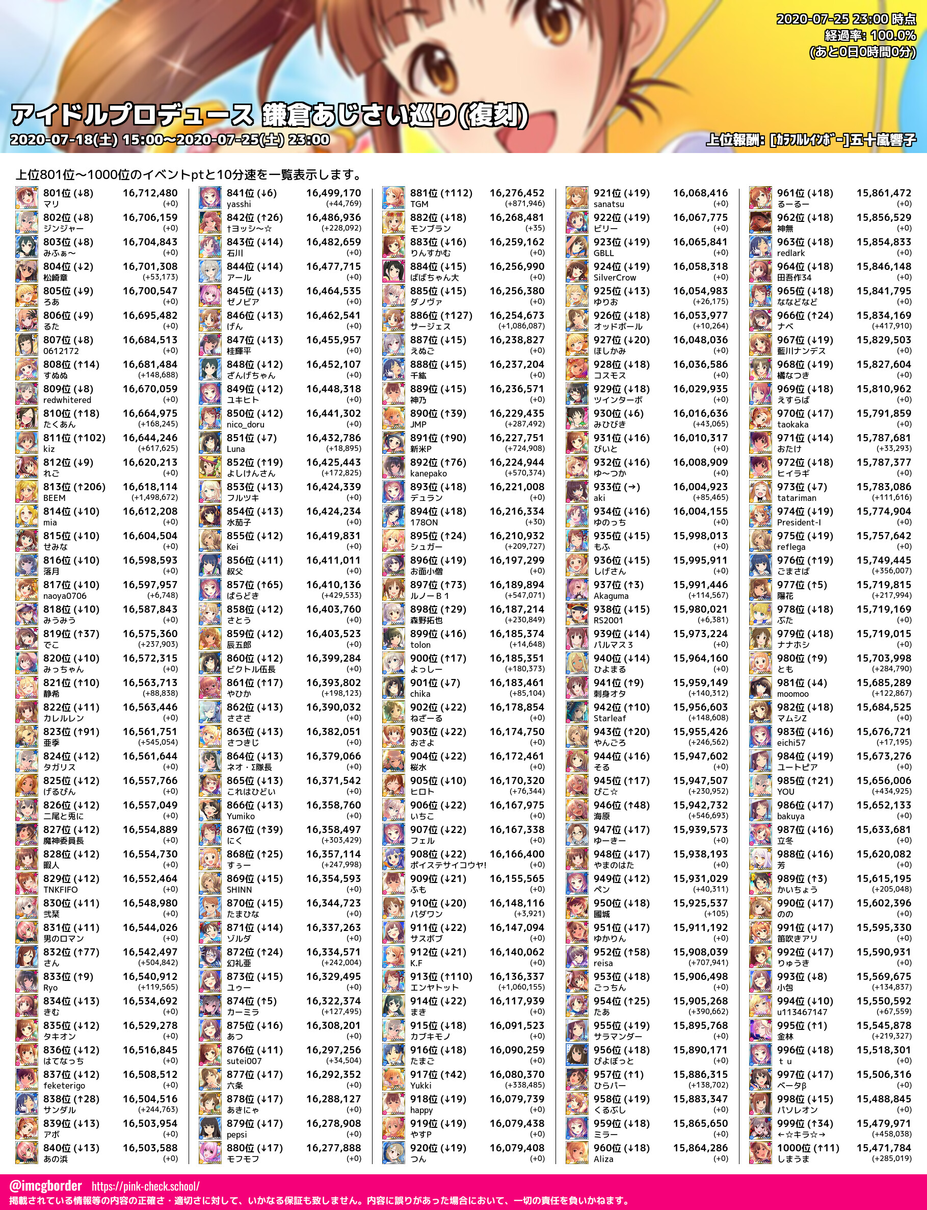 上位プロデューサースコア (2020-07-25 23:00 時点)