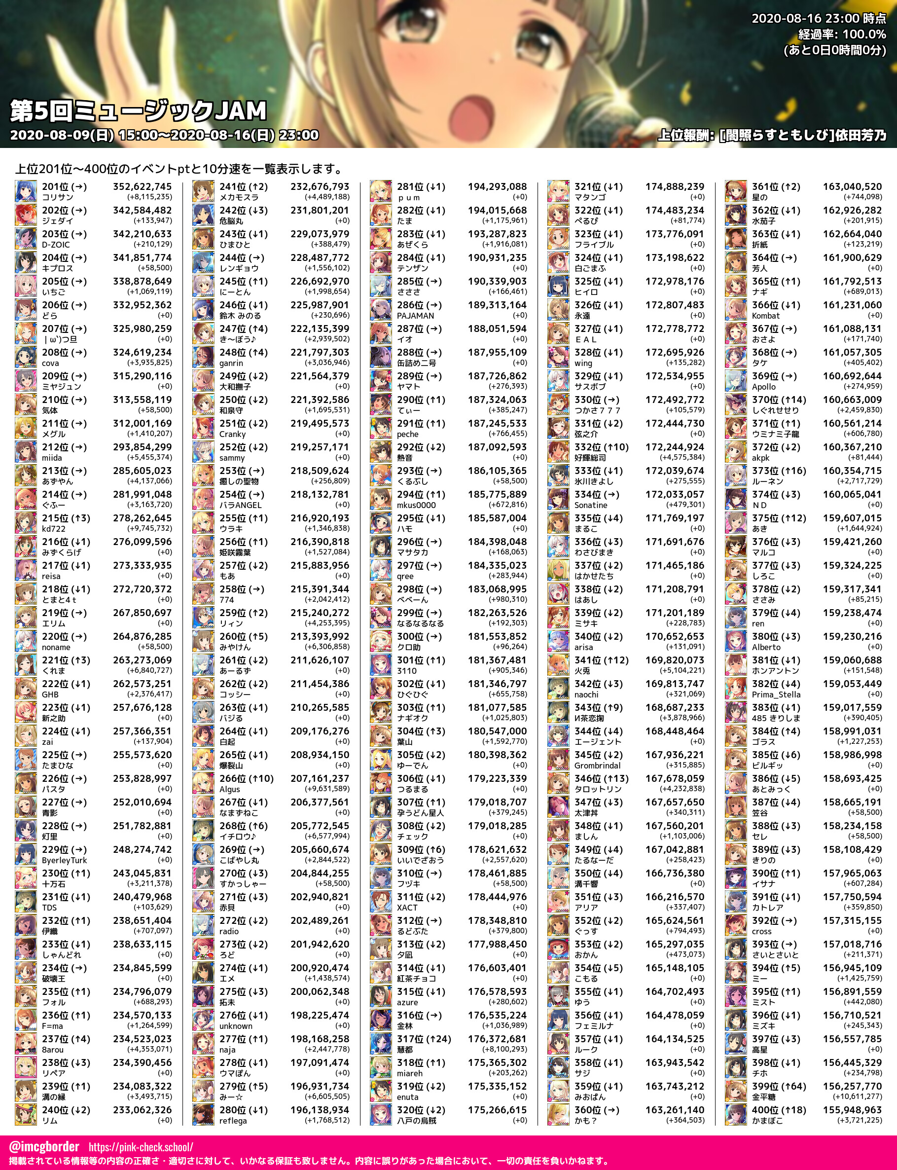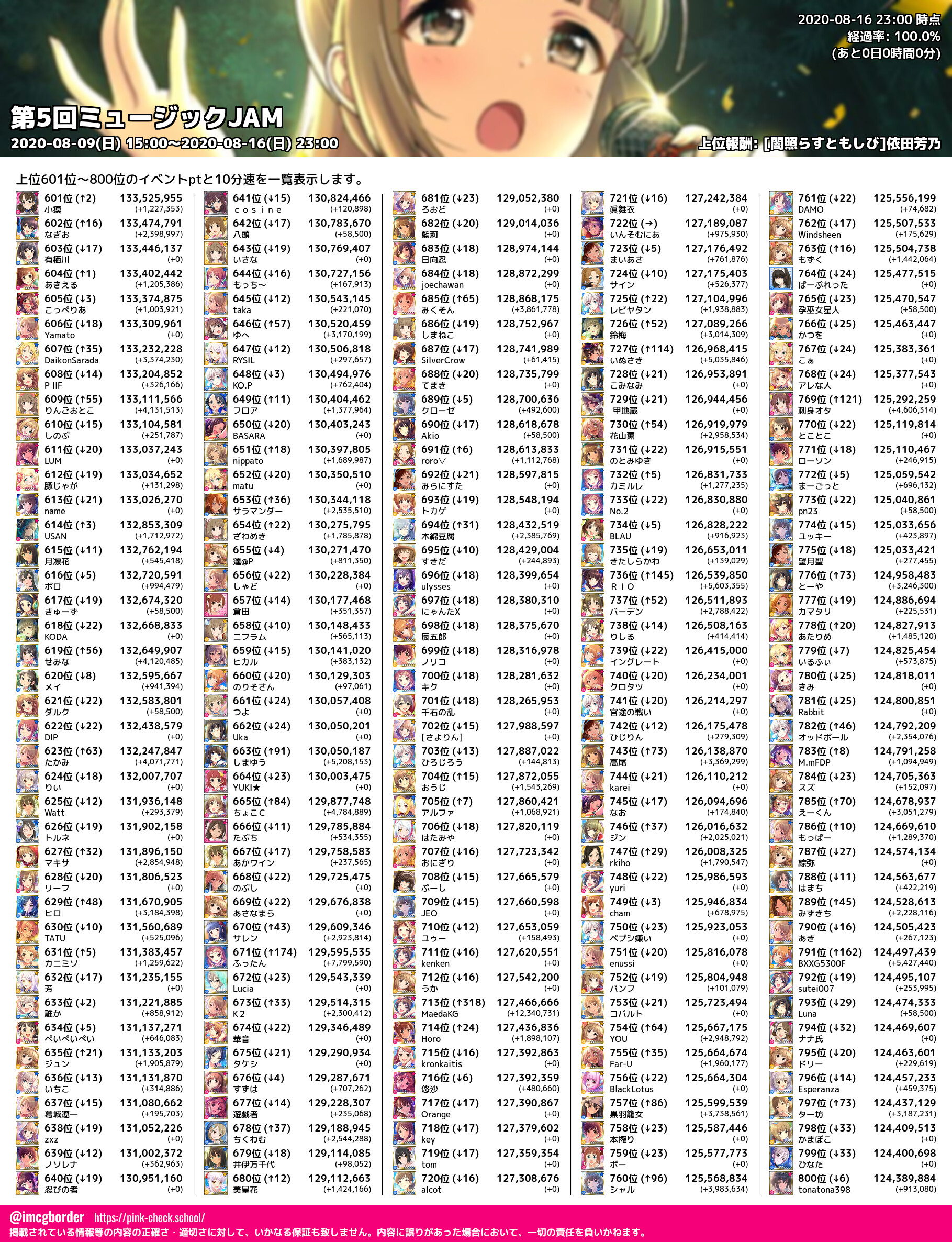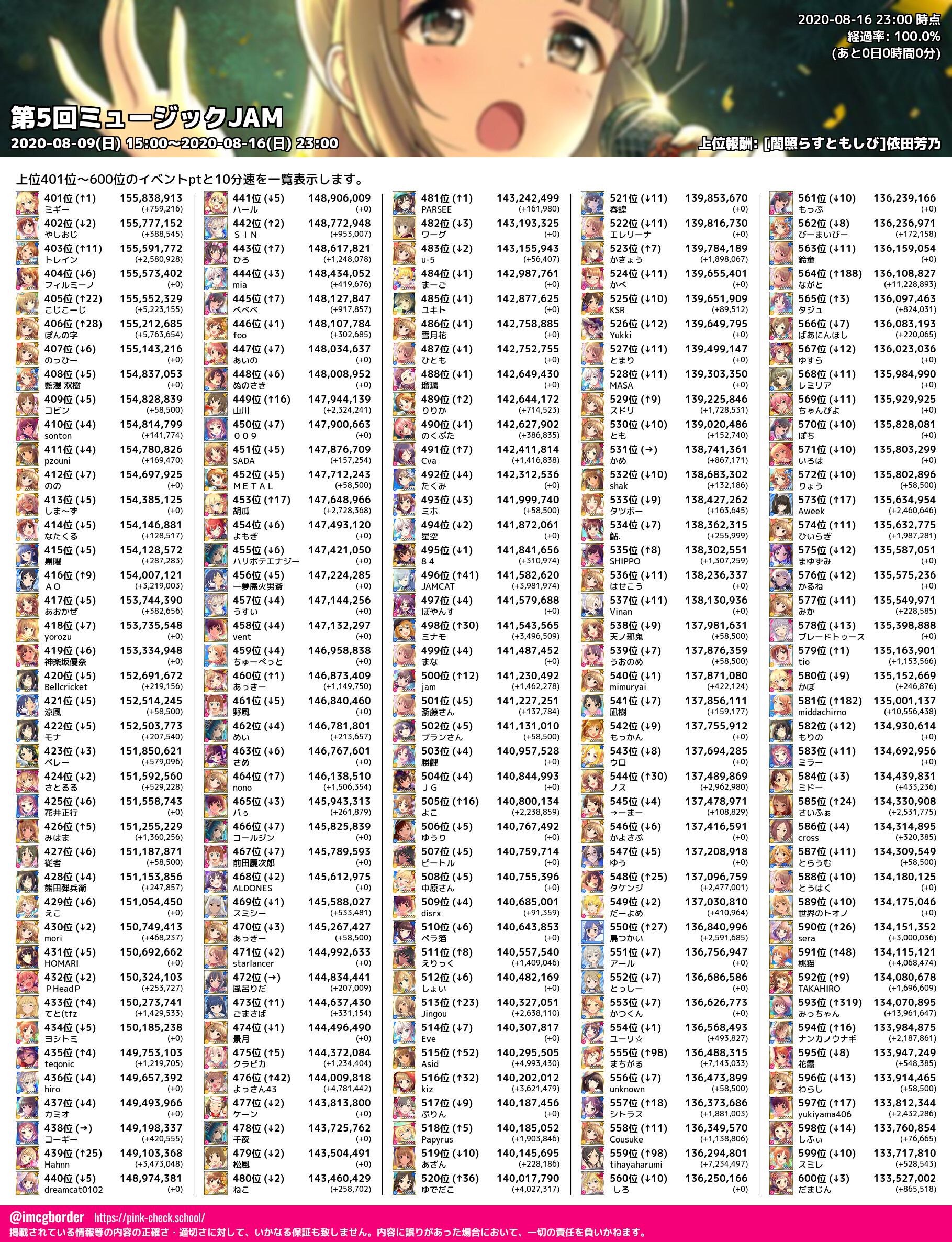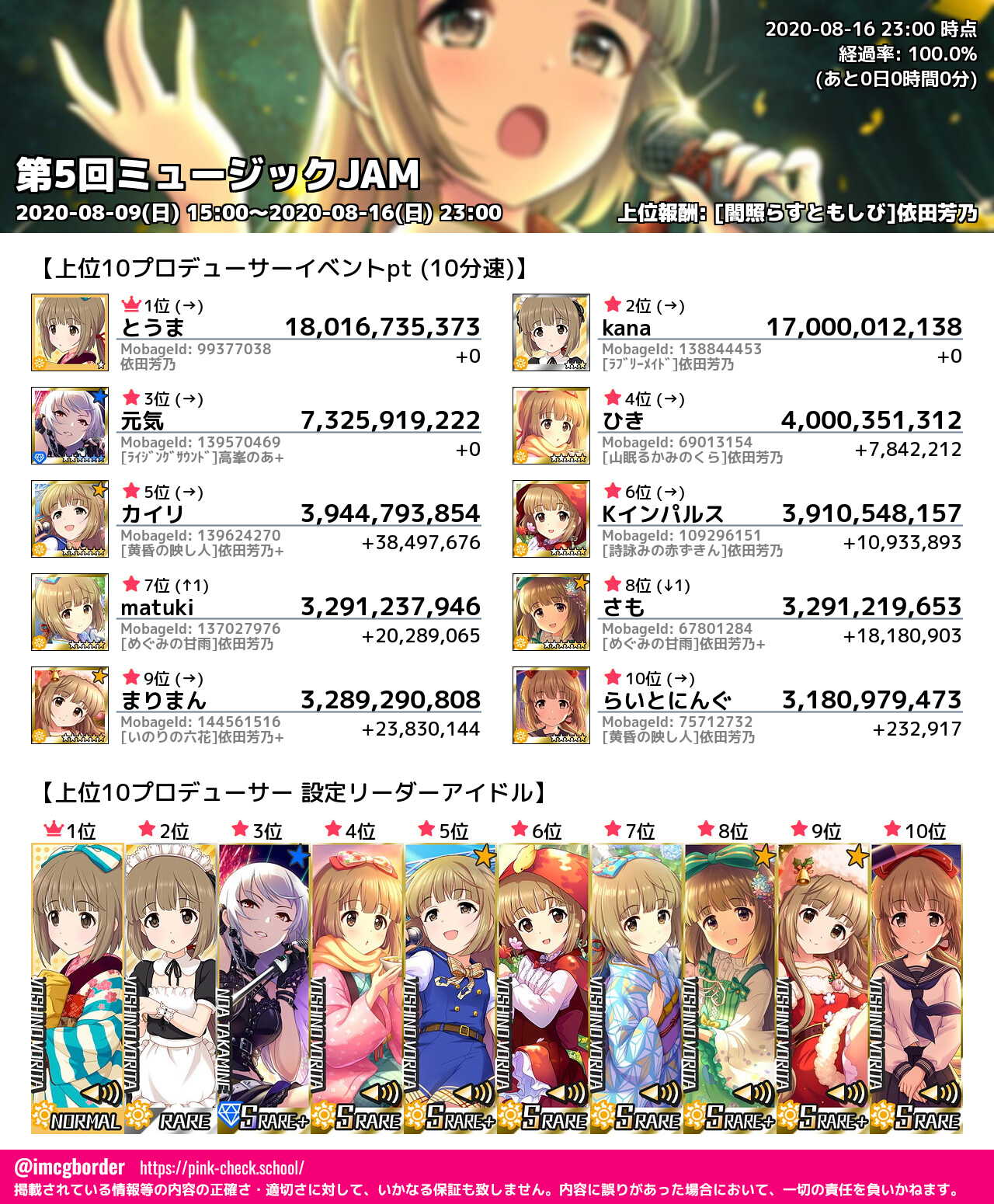 上位プロデューサースコア (2020-08-16 23:00 時点)
