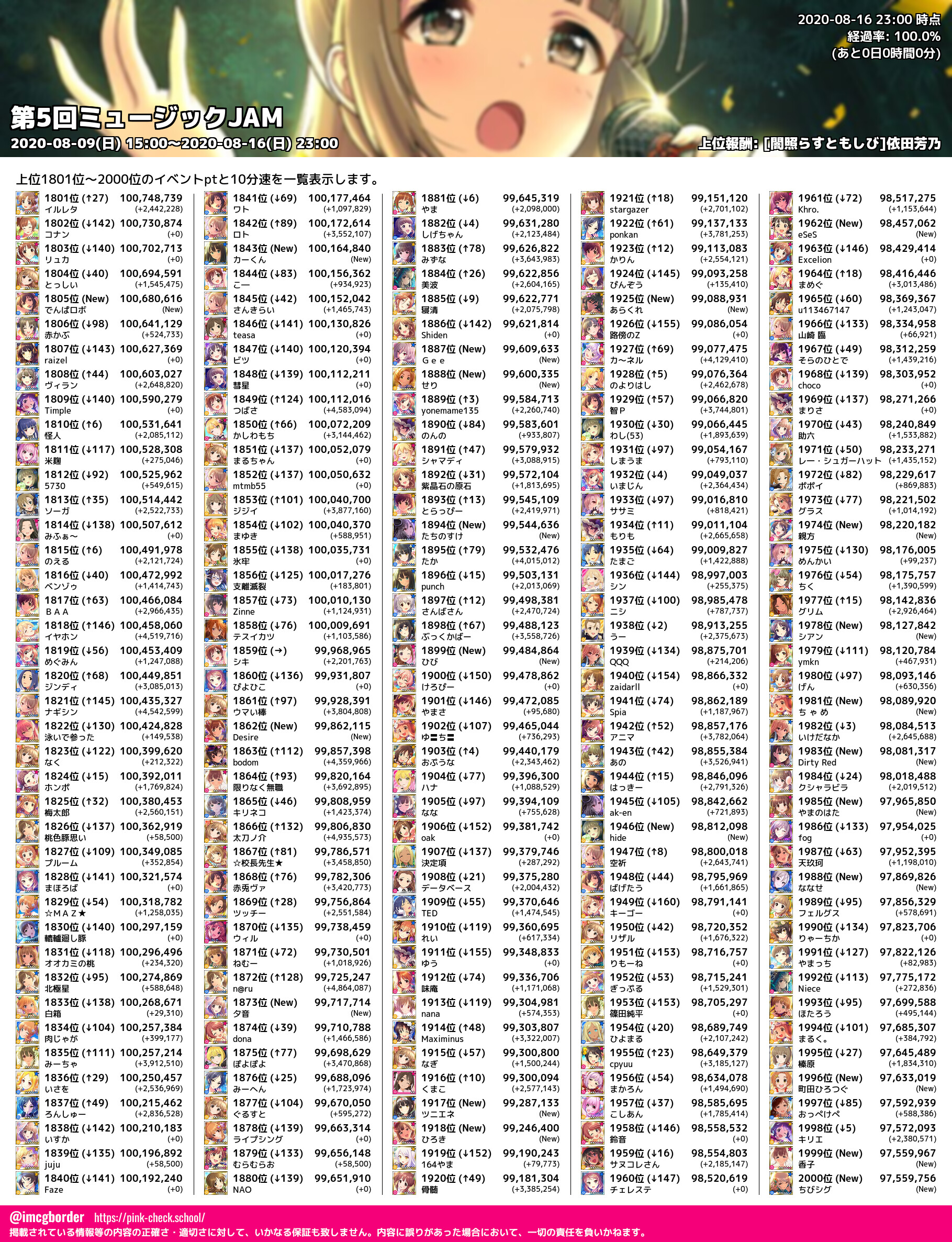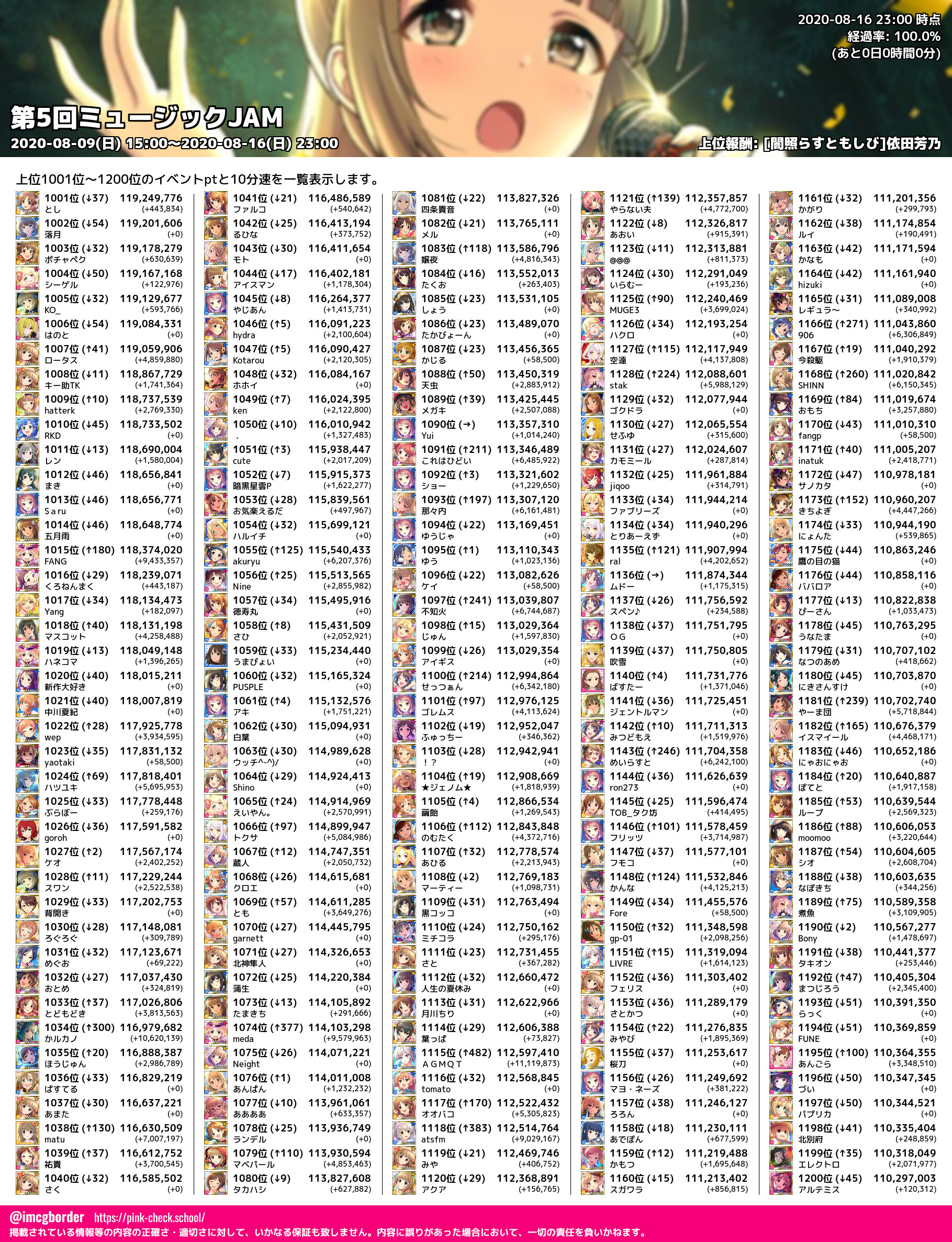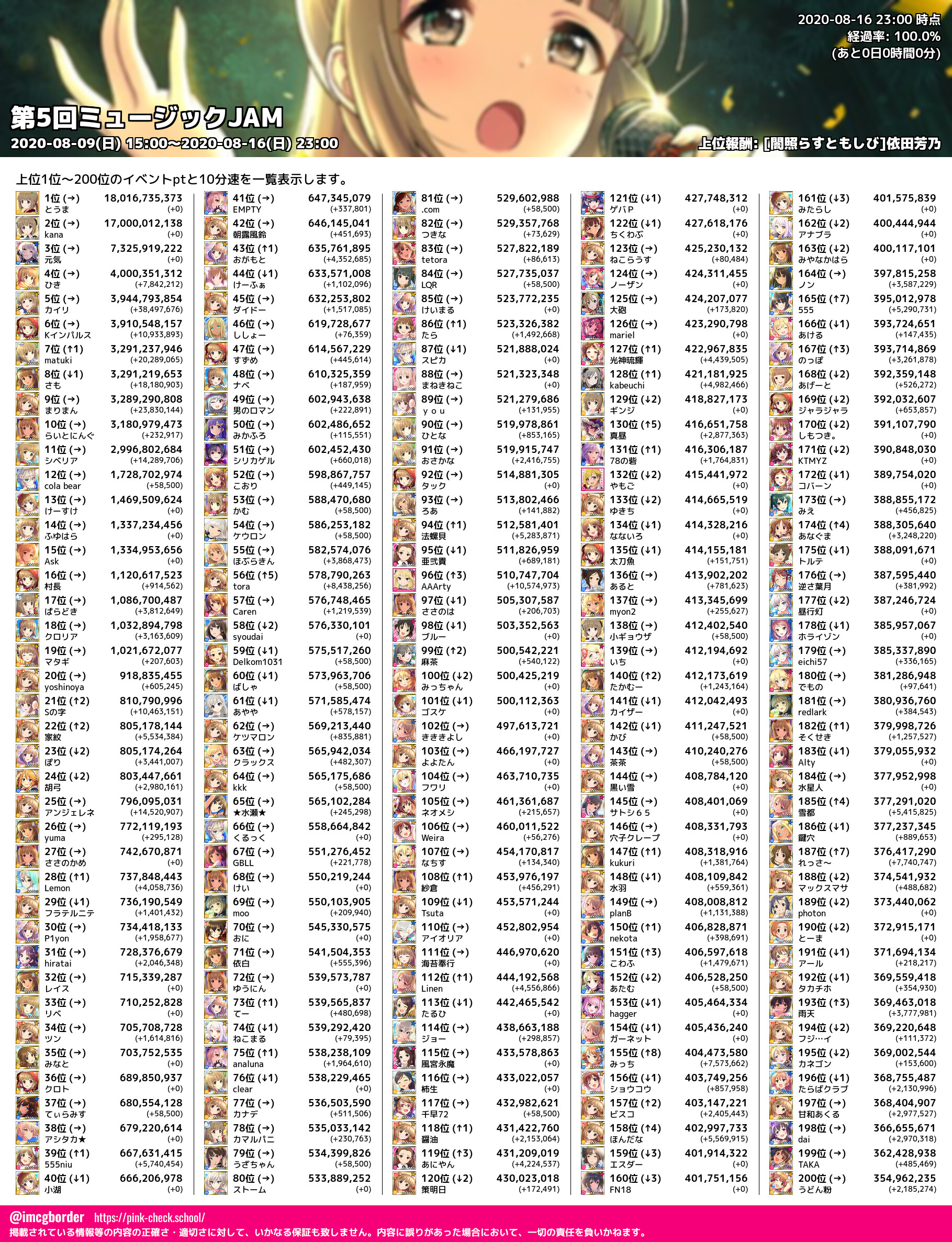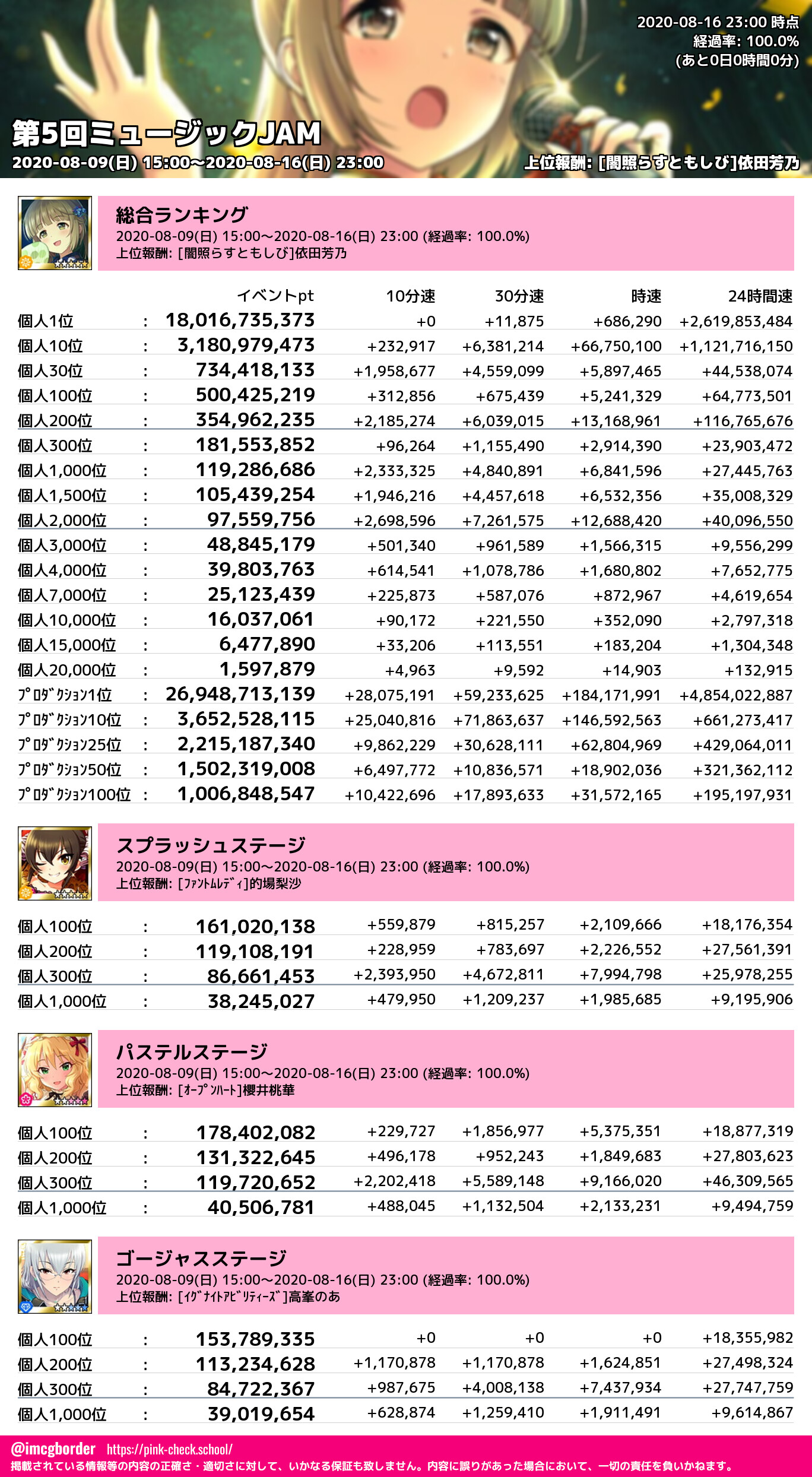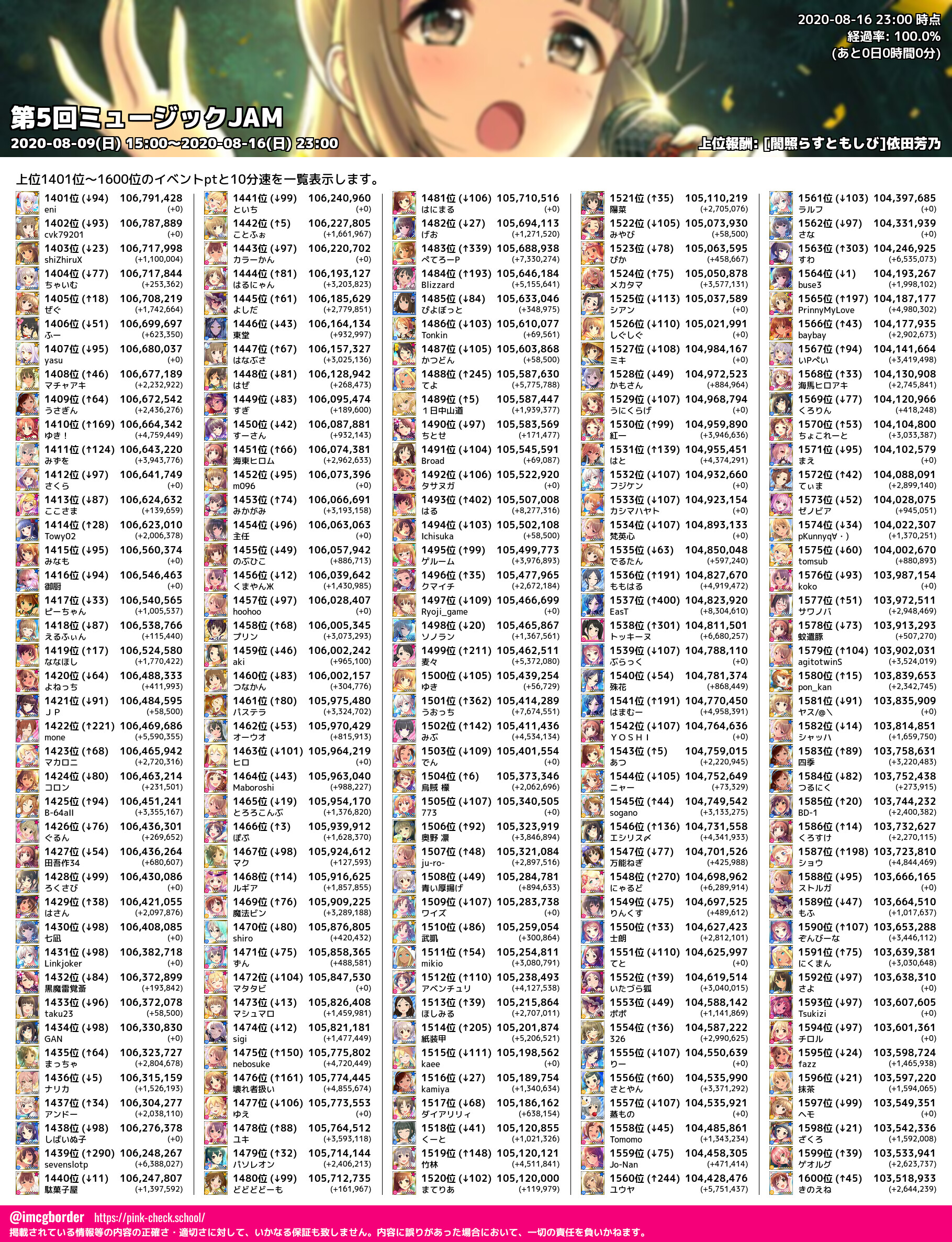 上位プロデューサースコア (2020-08-16 23:00 時点)