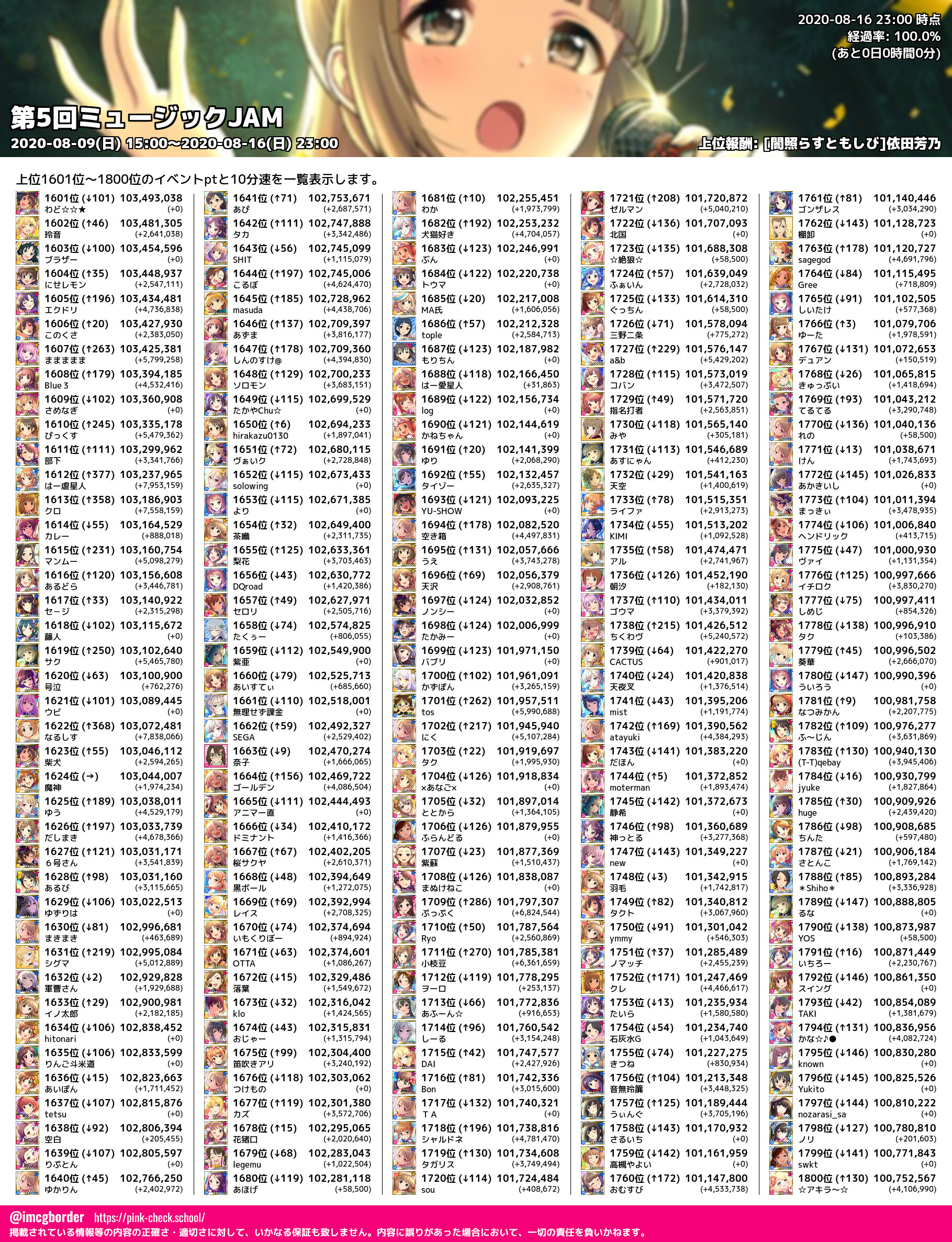 | 開催期間 | 2020-08-09(日) 15:00~2020-08-16(日) 23:00 |