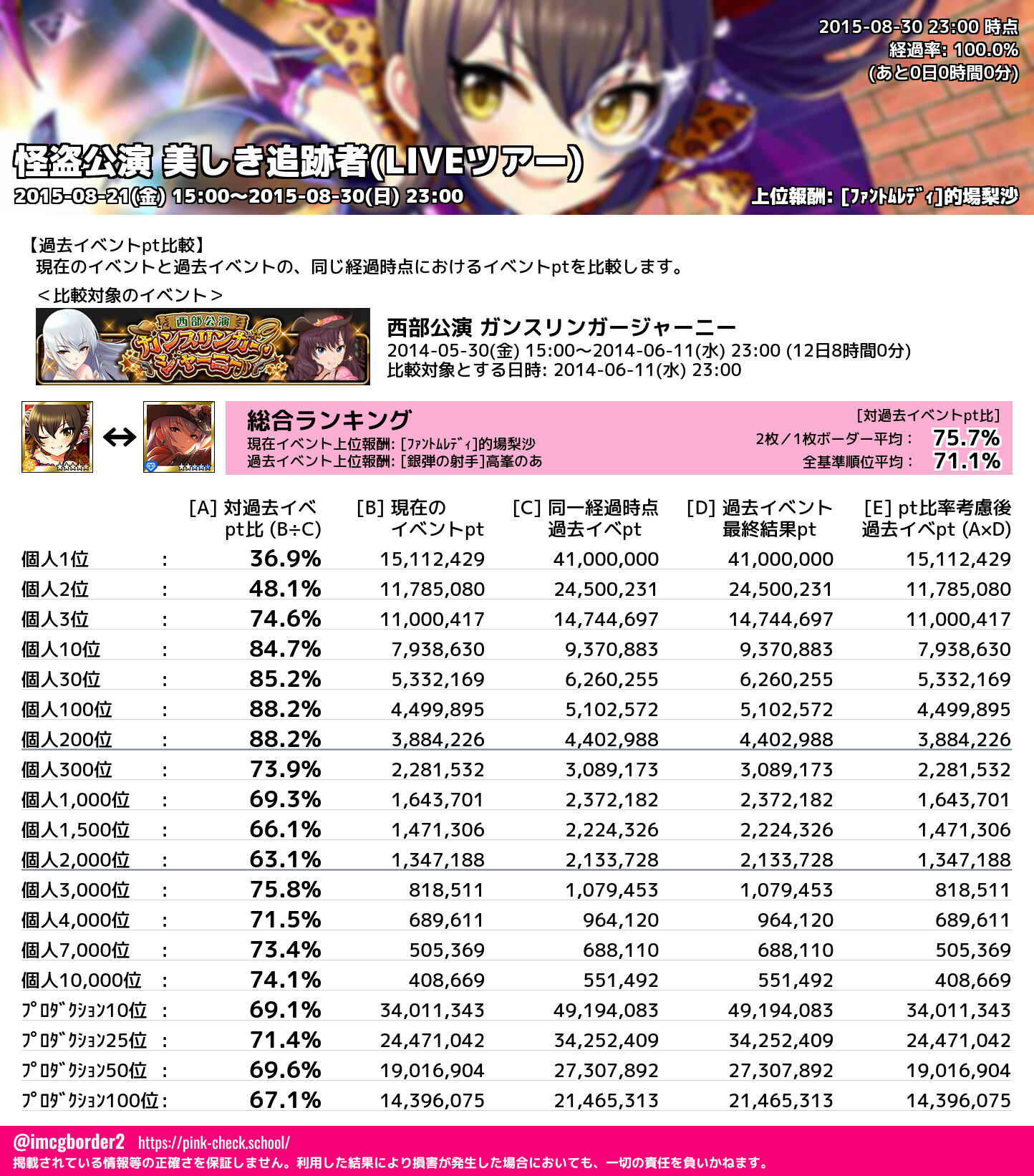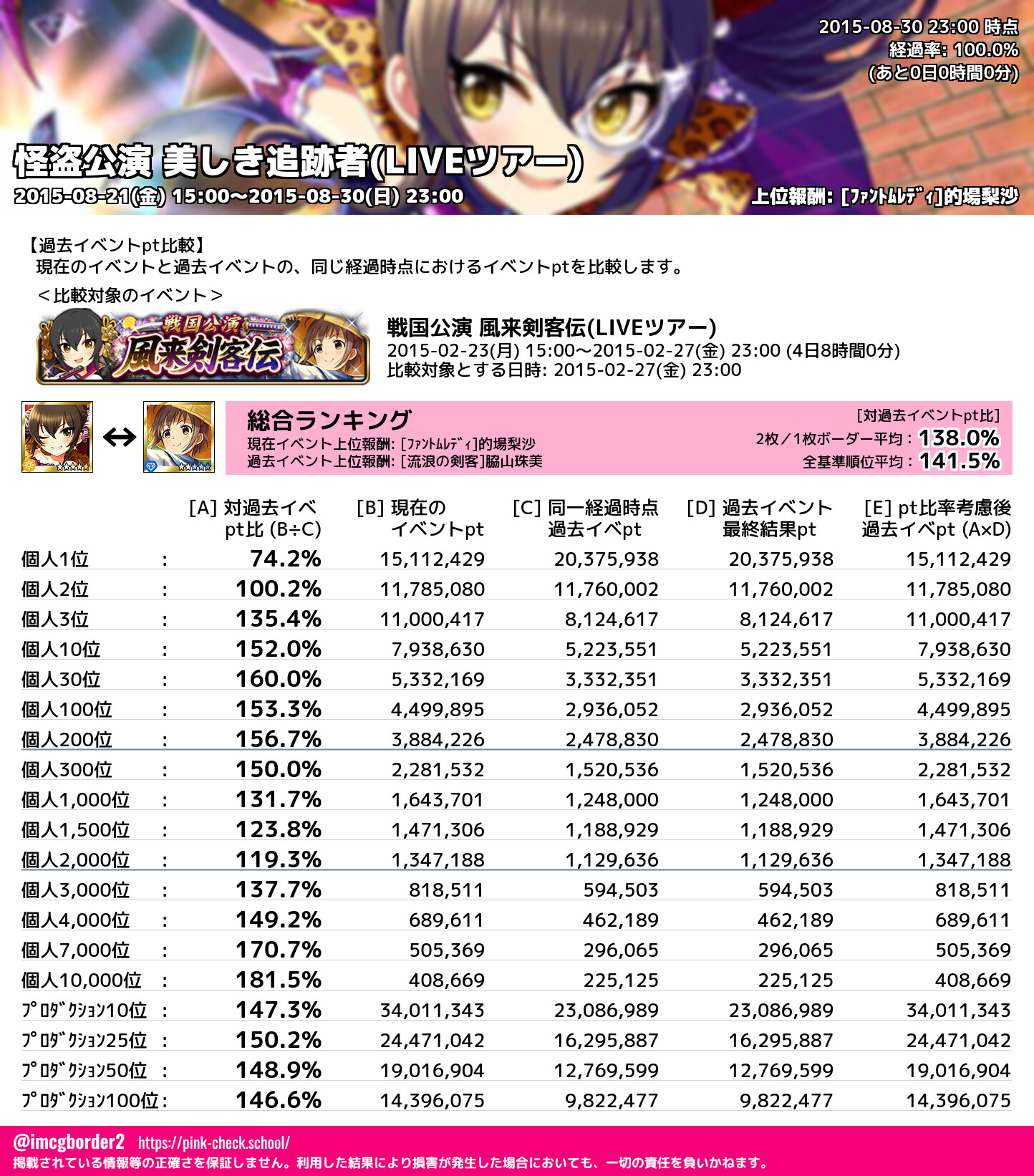 怪盗公演 美しき追跡者(LIVEツアー) 結果集計完了