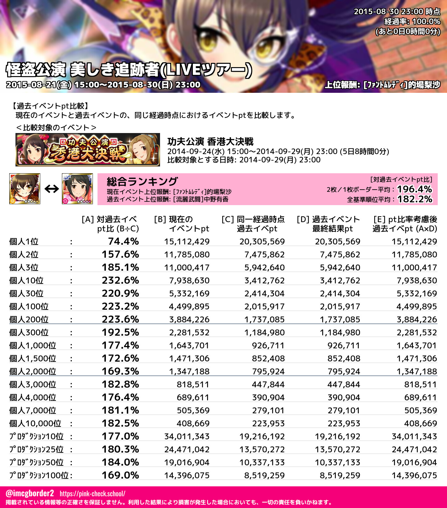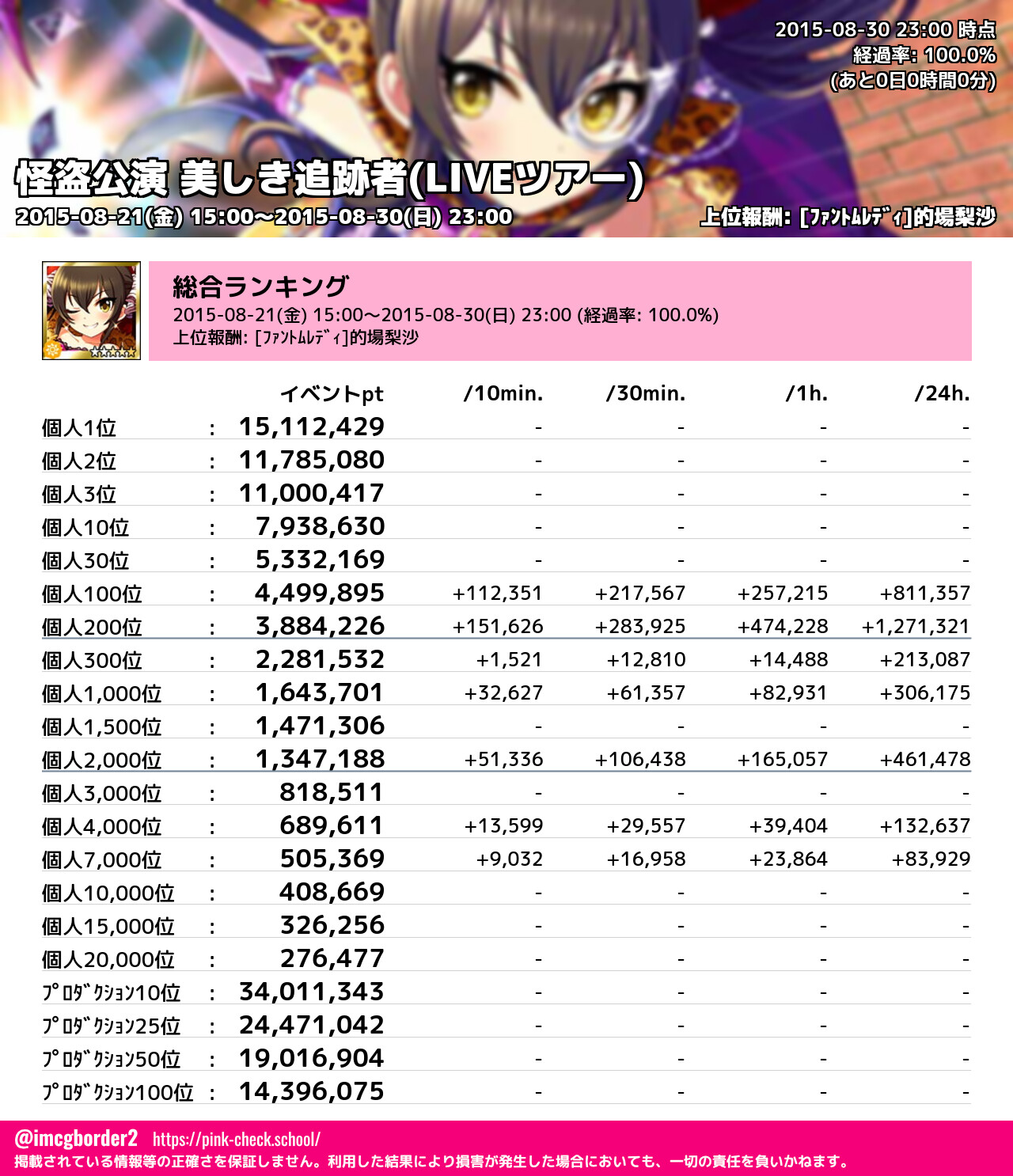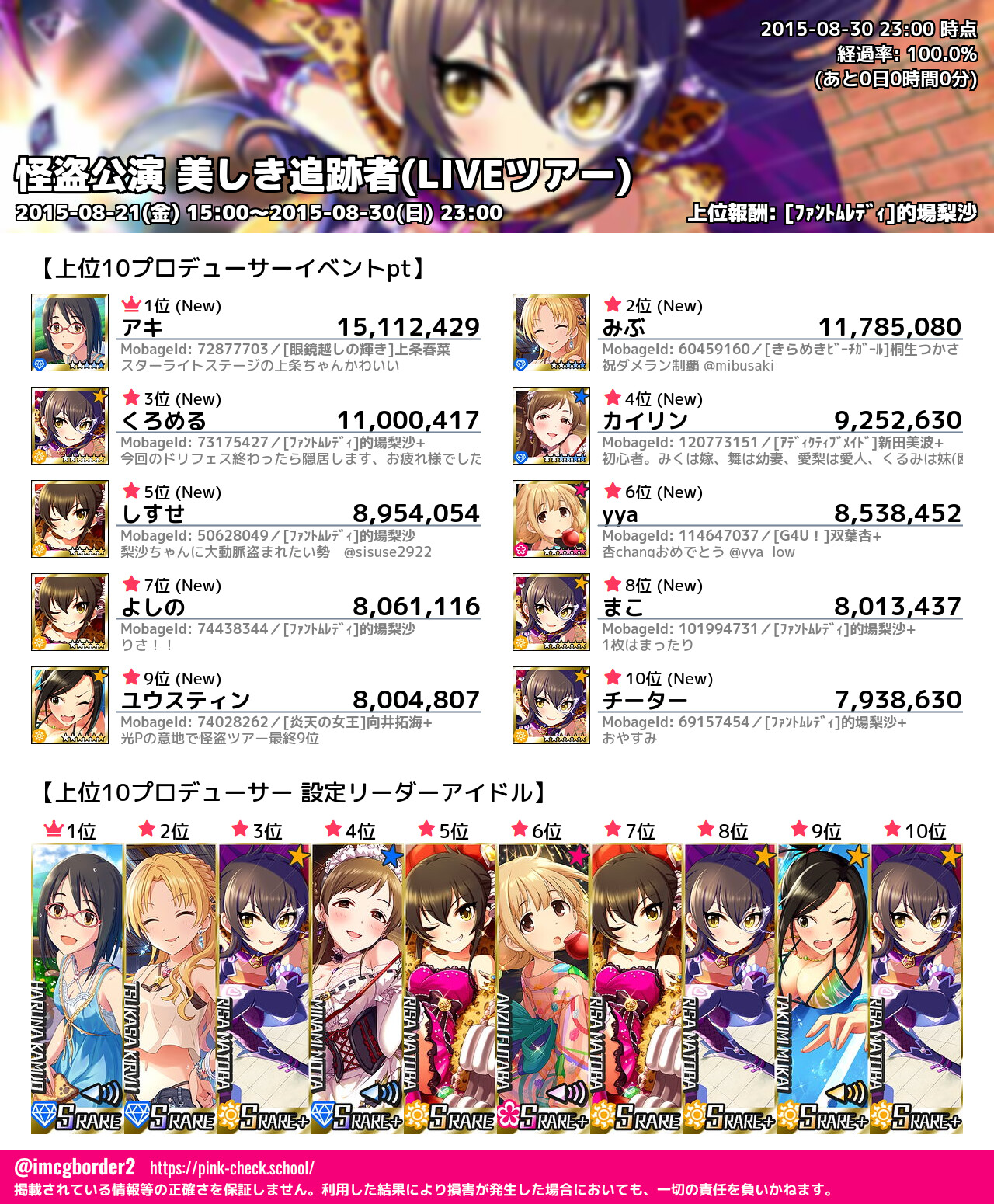 上位プロデューサースコア (2015-08-30 23:00 時点)
