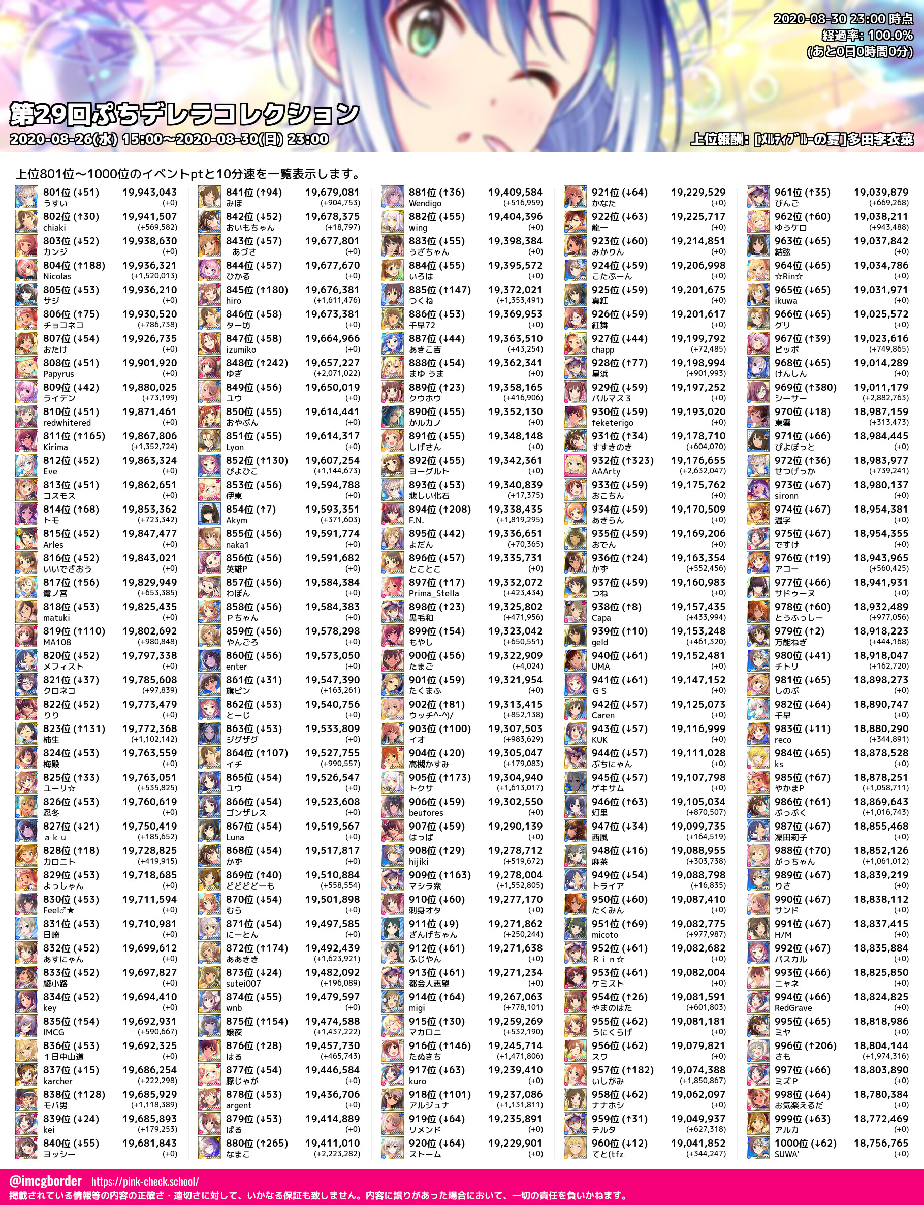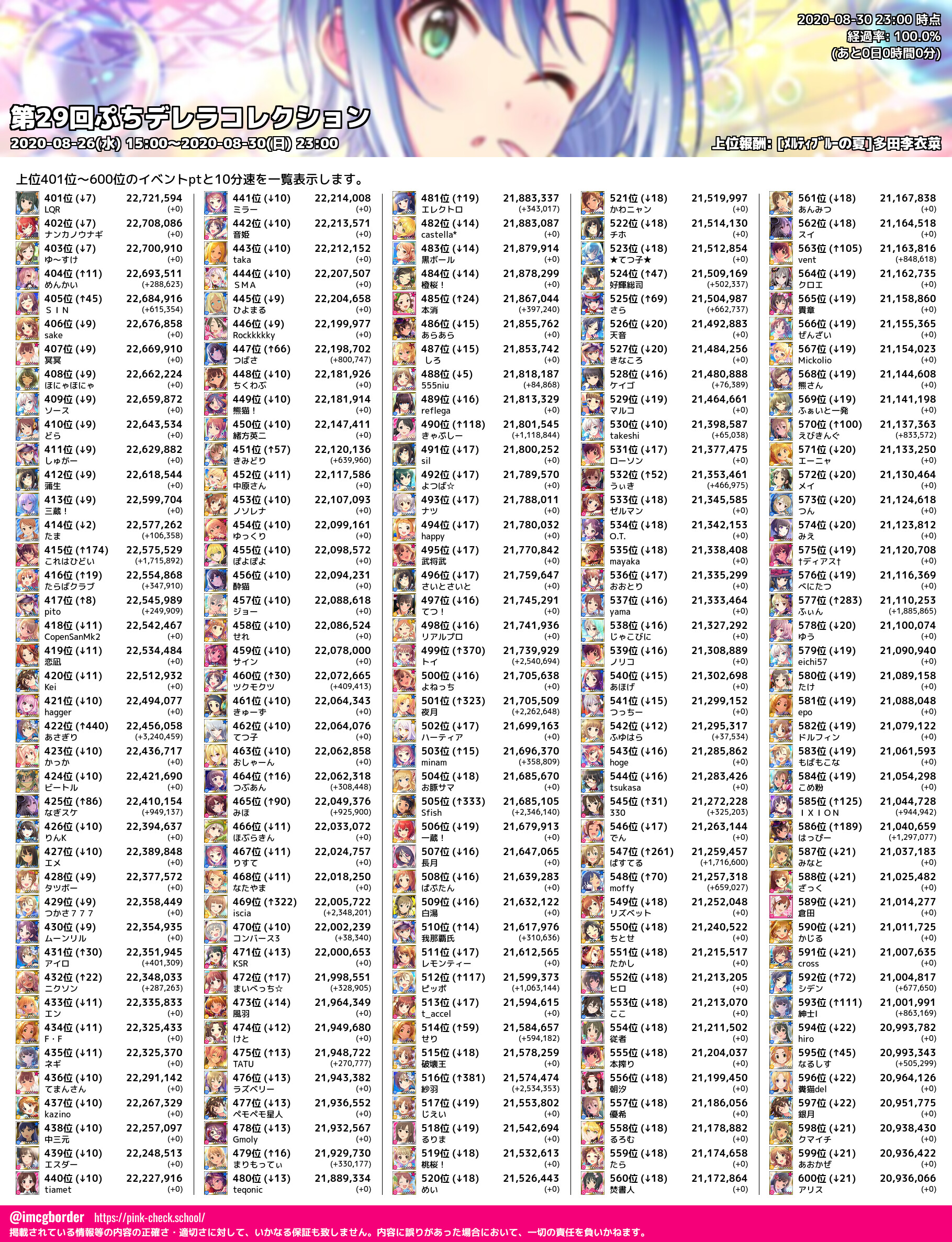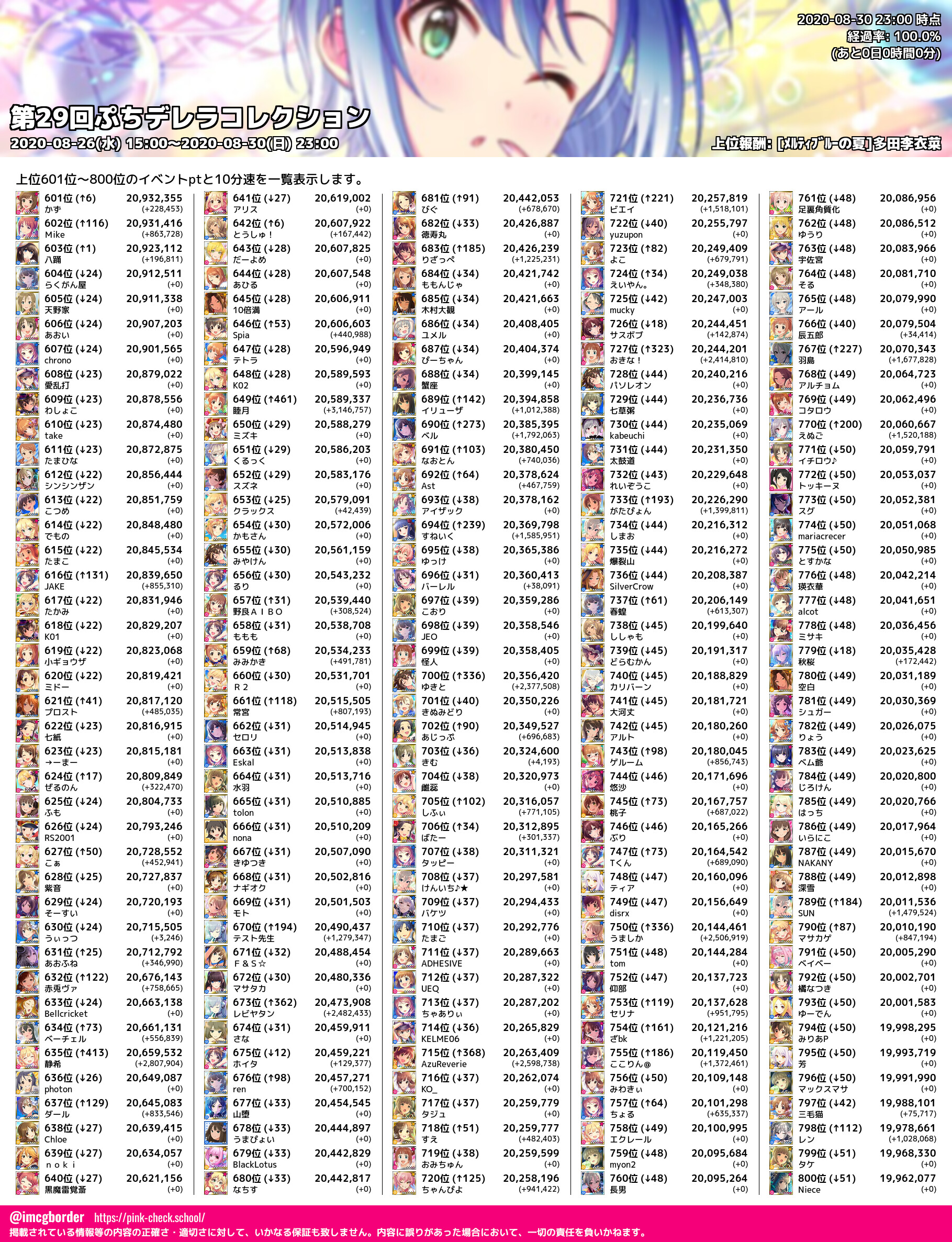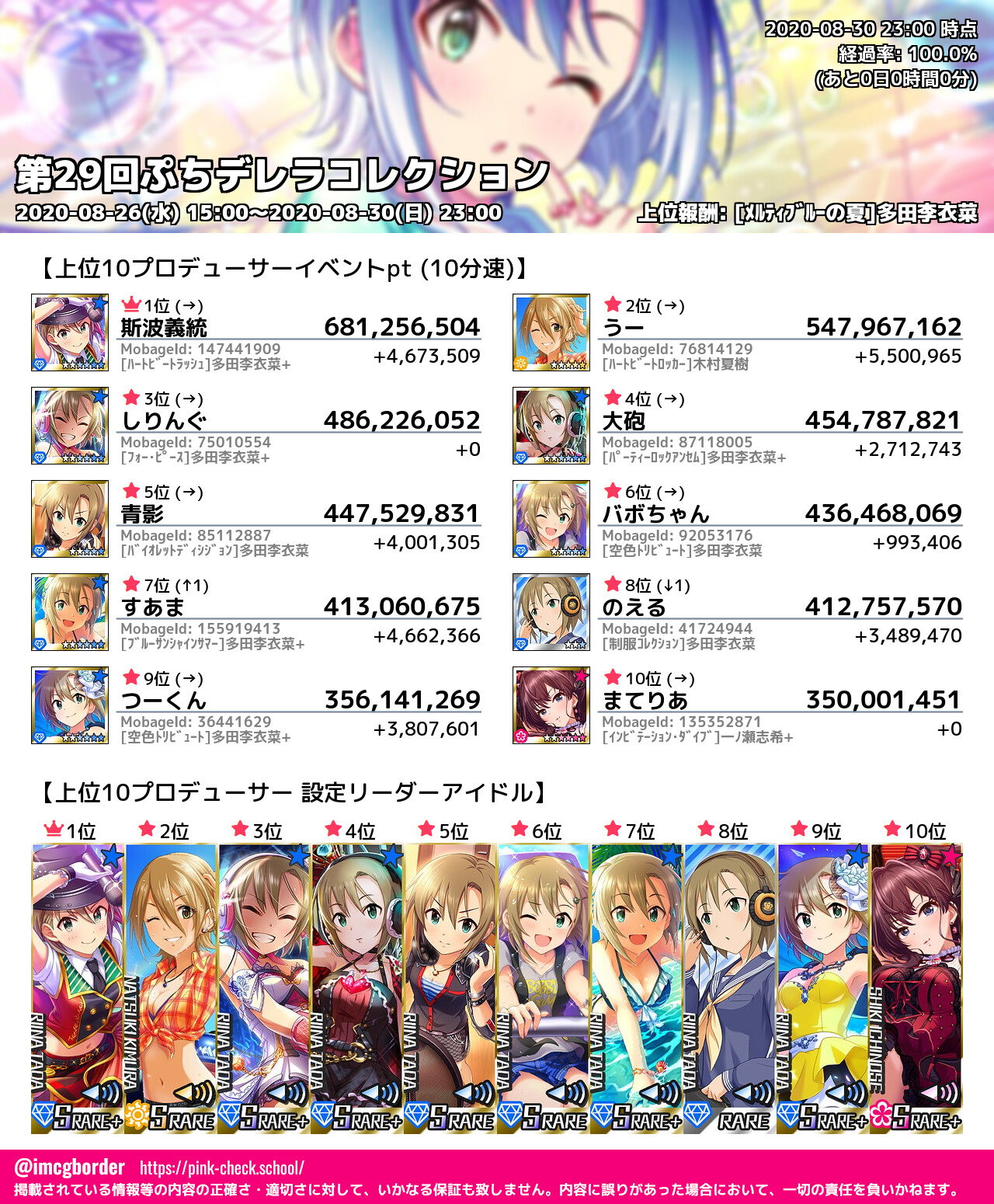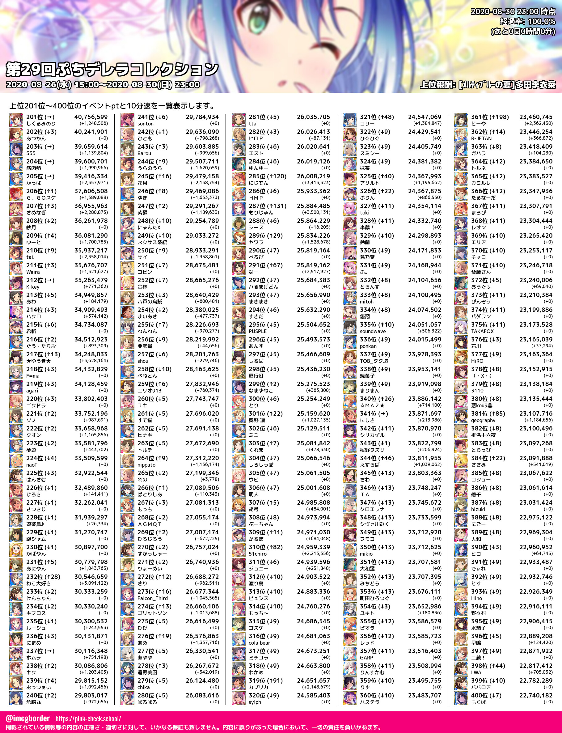 上位プロデューサースコア (2020-08-30 23:00 時点)
