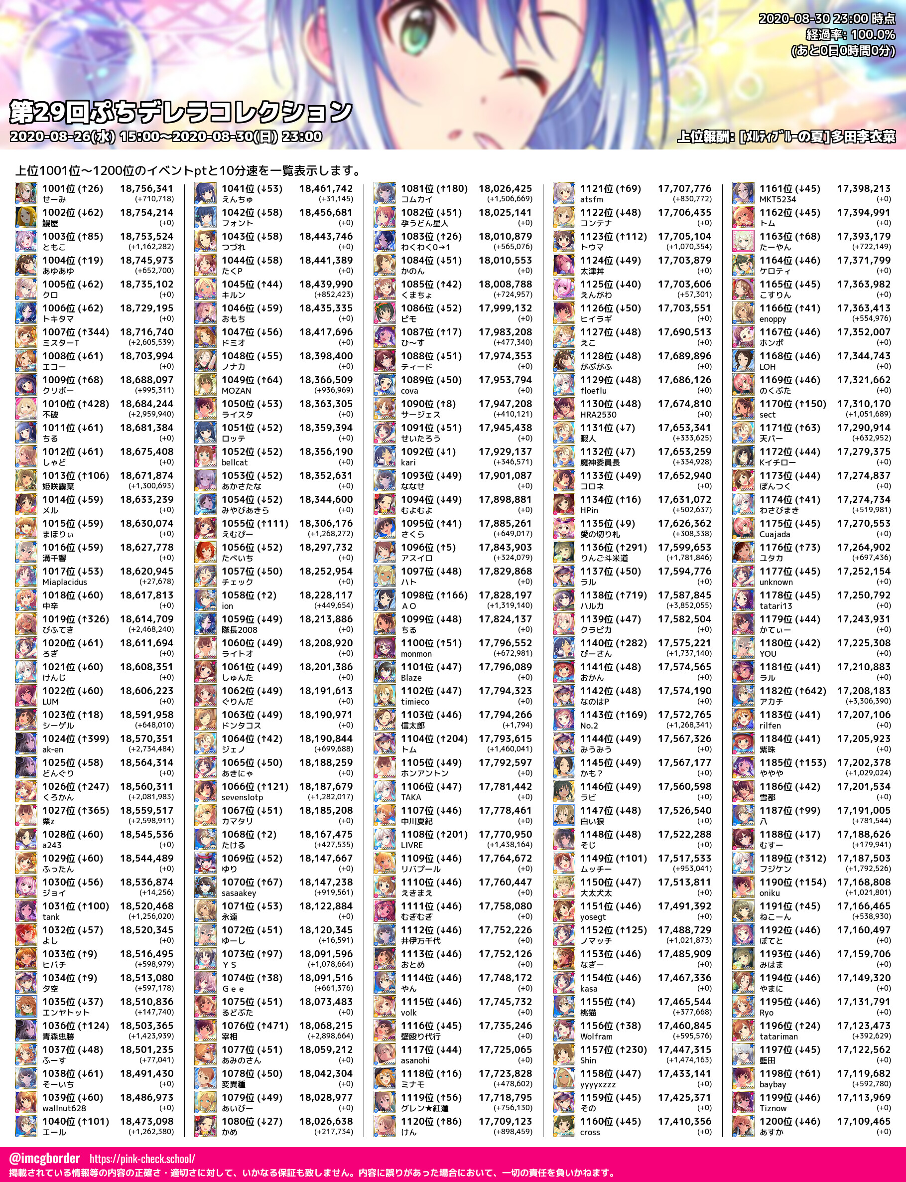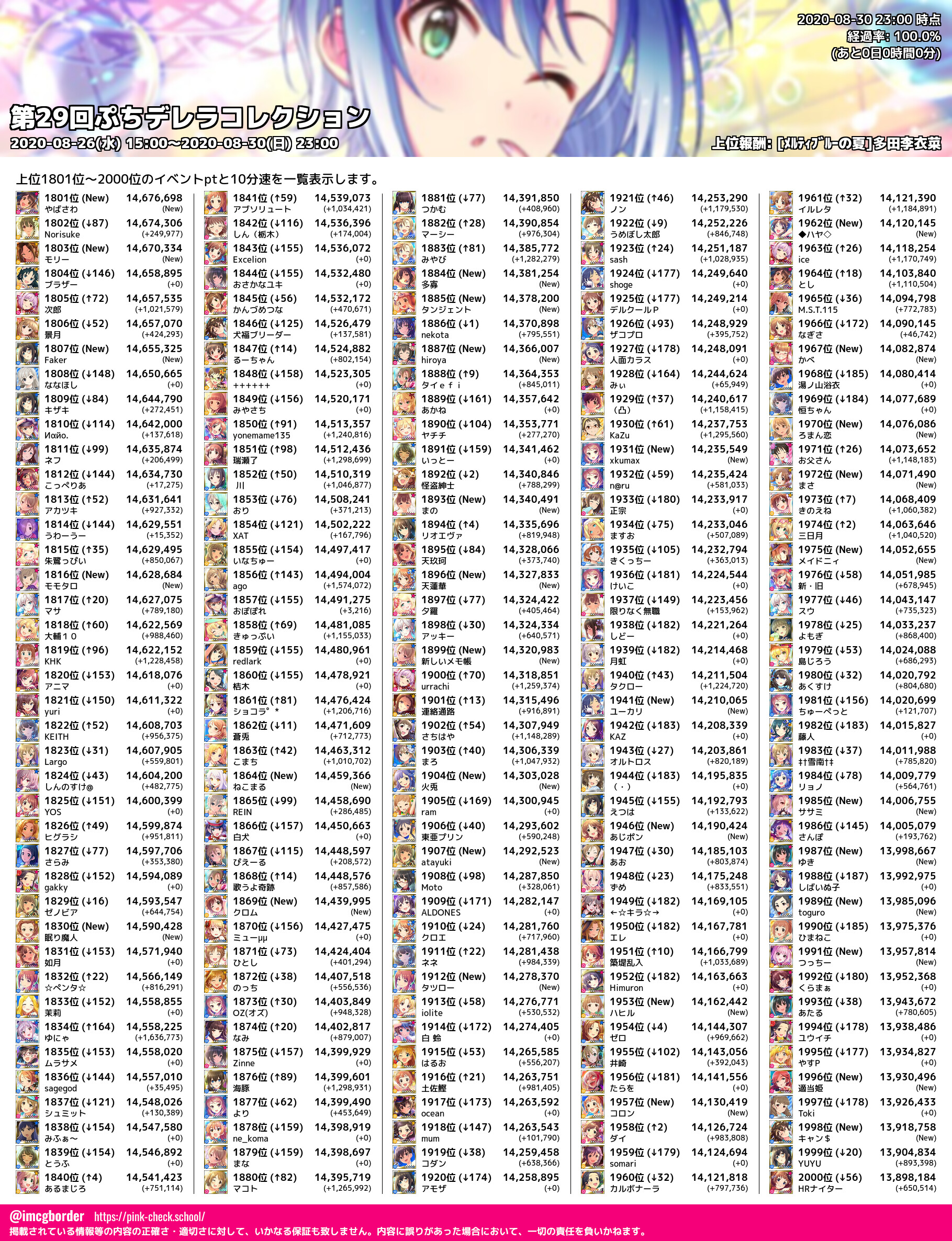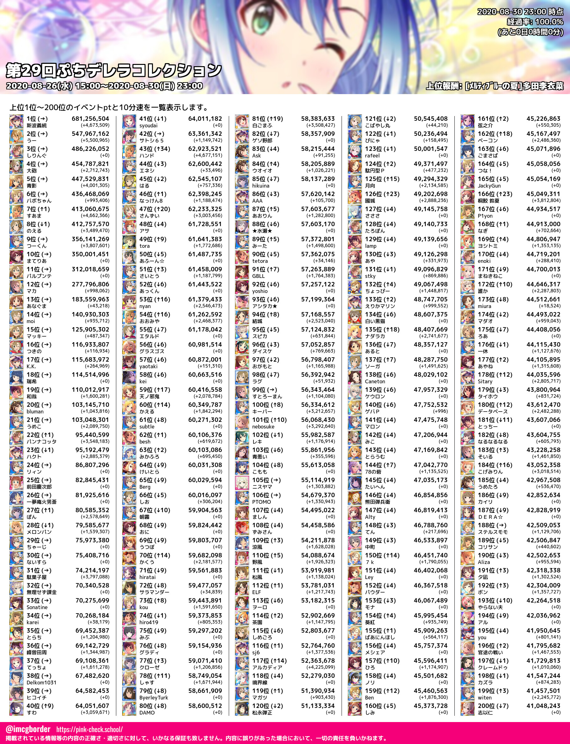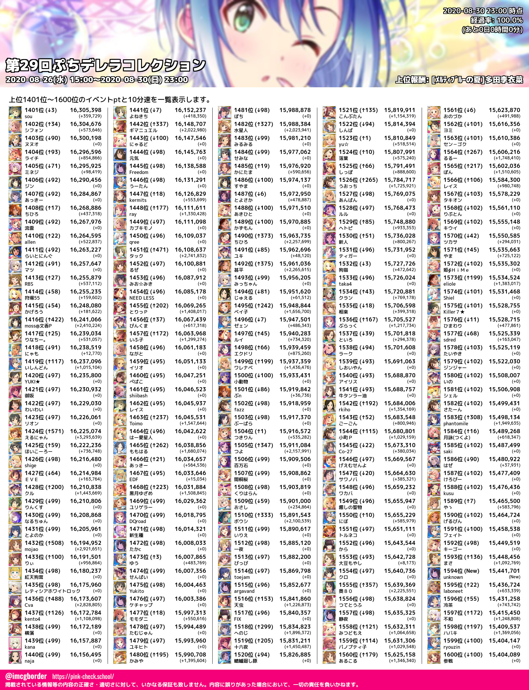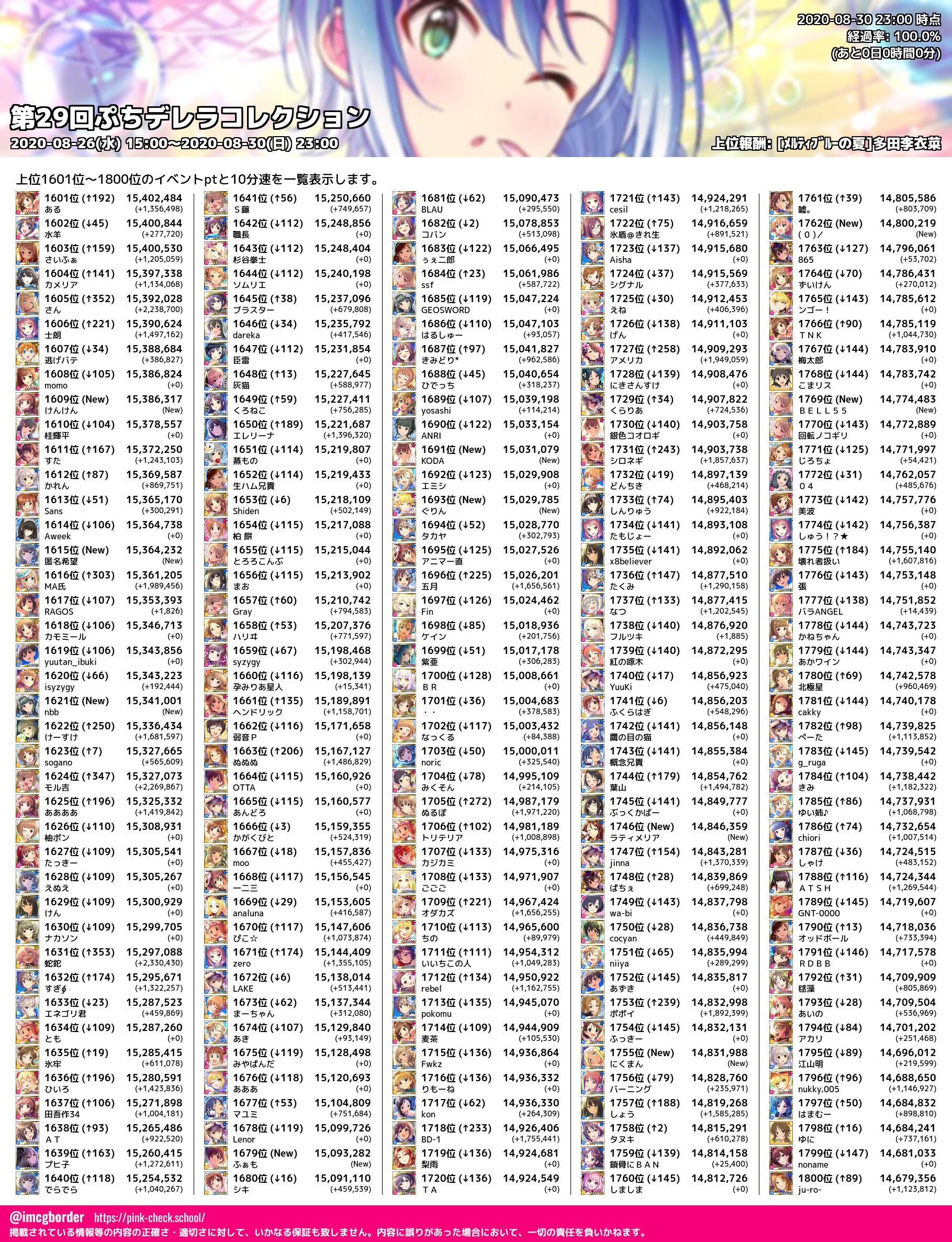 上位プロデューサースコア (2020-08-30 23:00 時点)