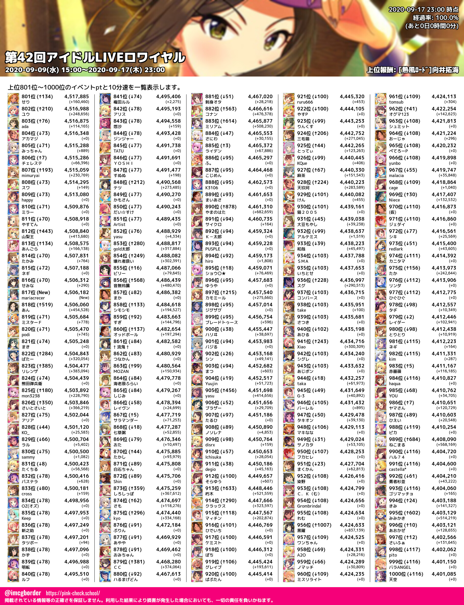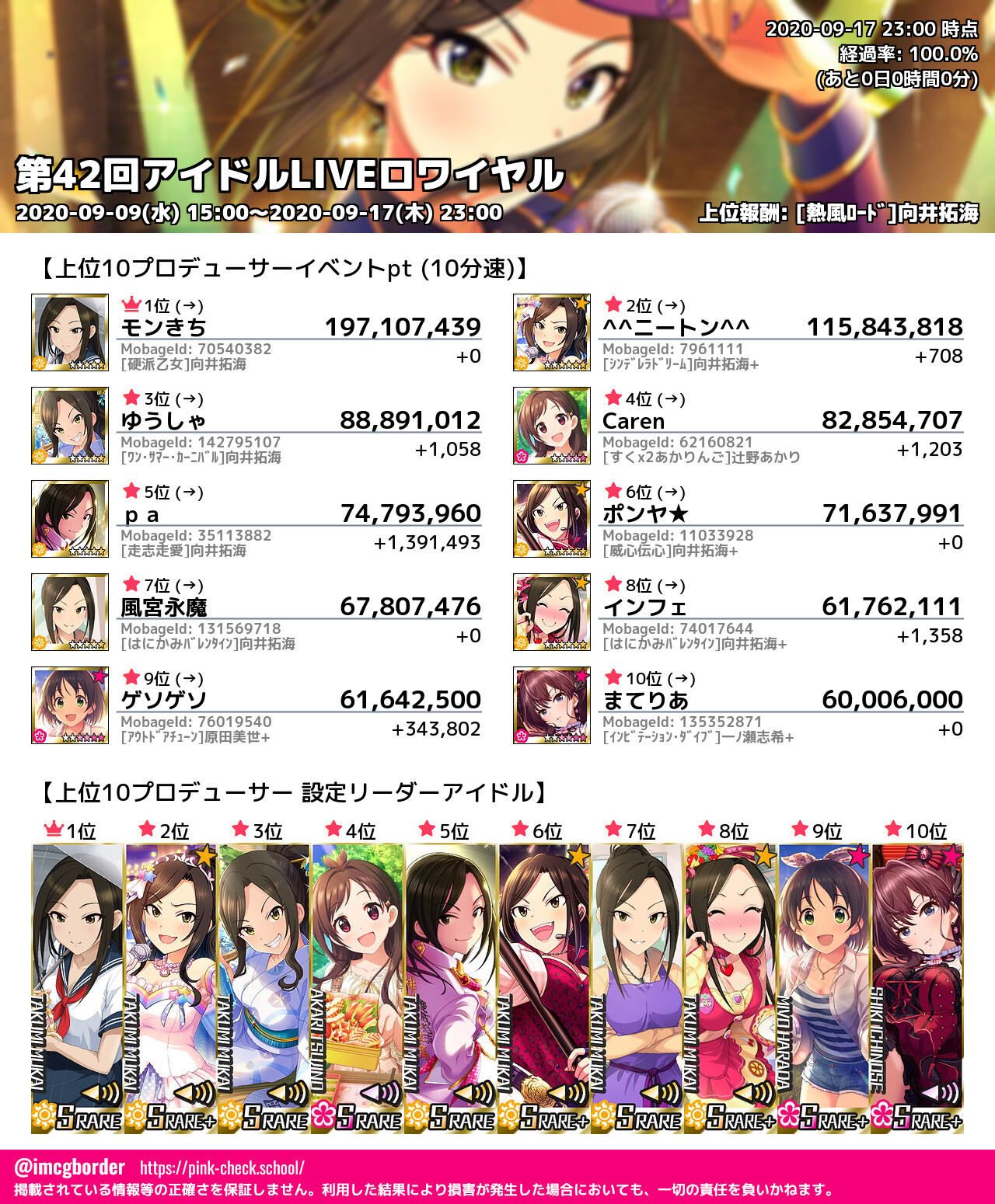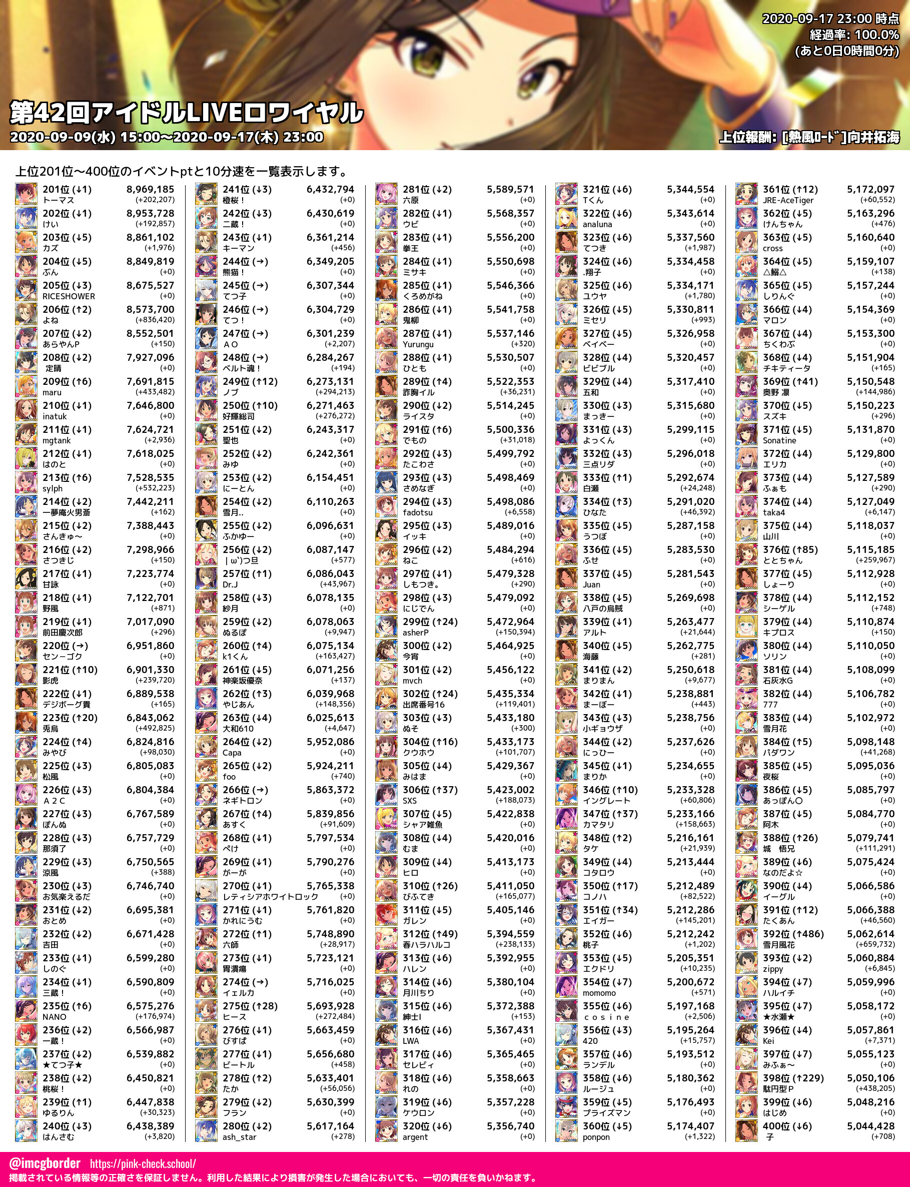 上位プロデューサースコア (2020-09-17 23:00 時点)