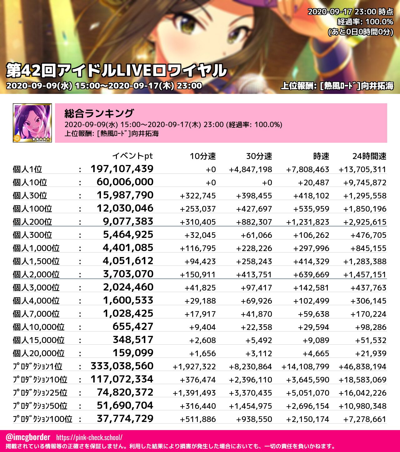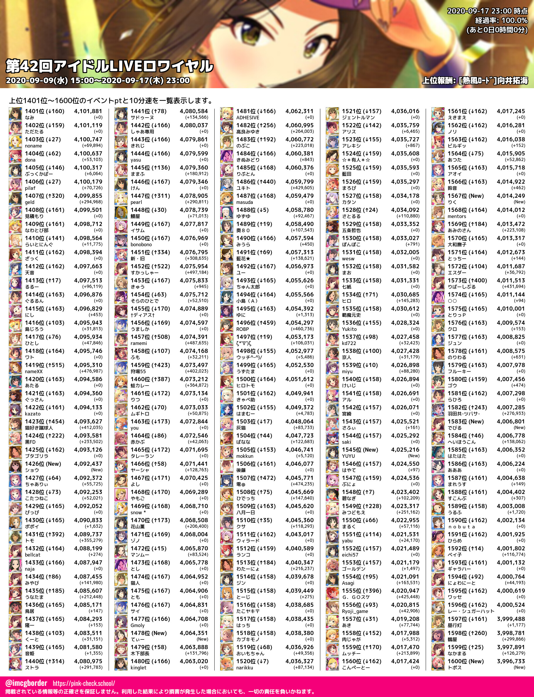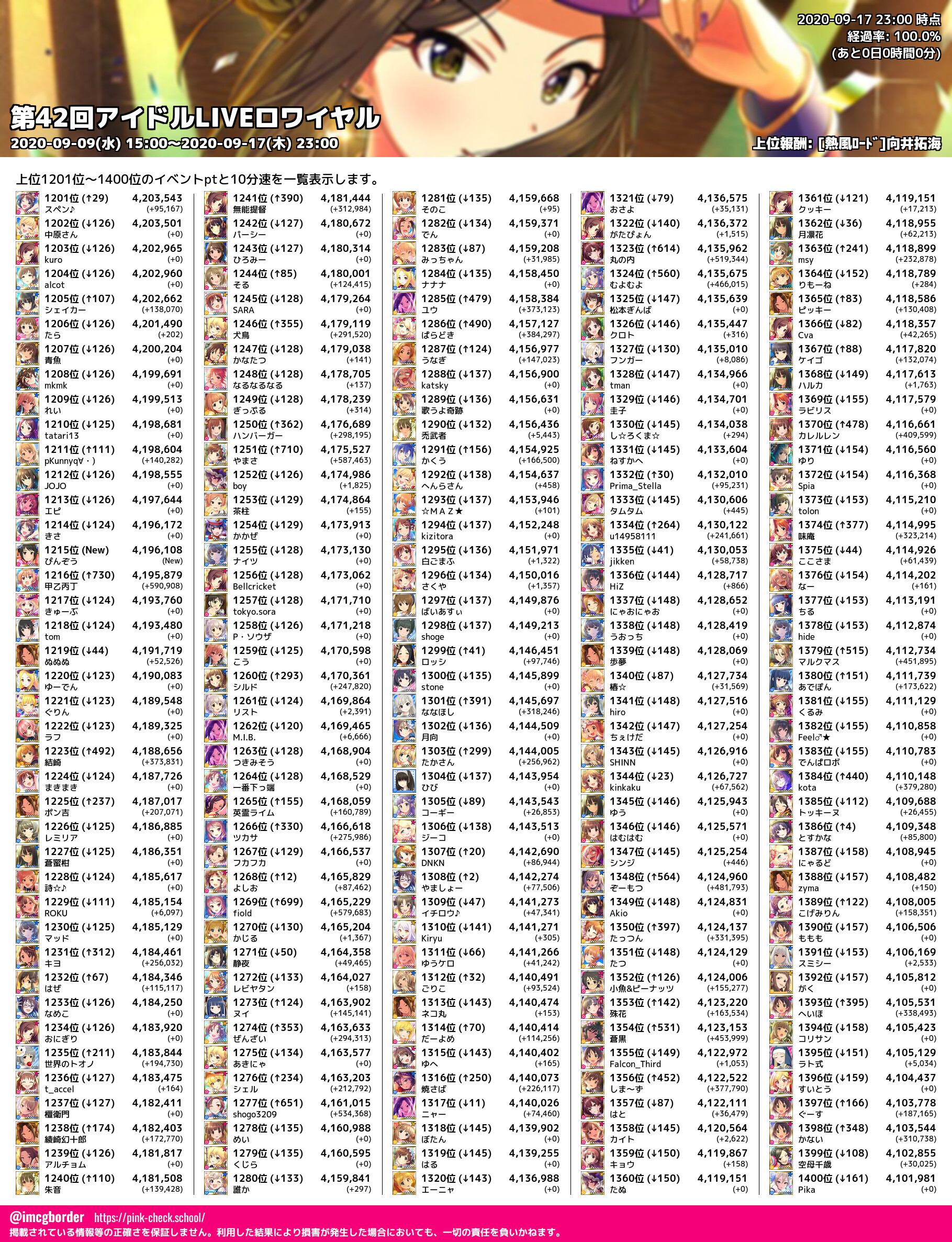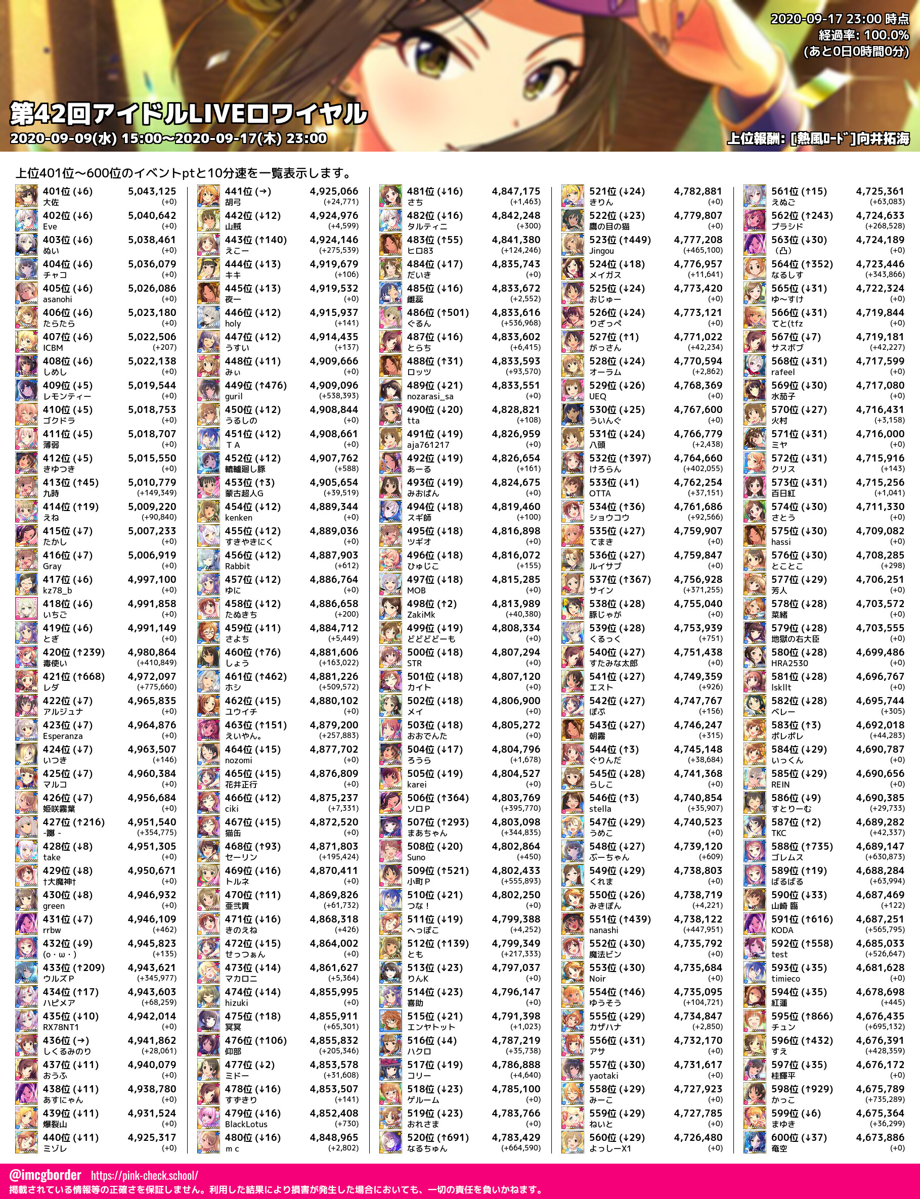 上位プロデューサースコア (2020-09-17 23:00 時点)