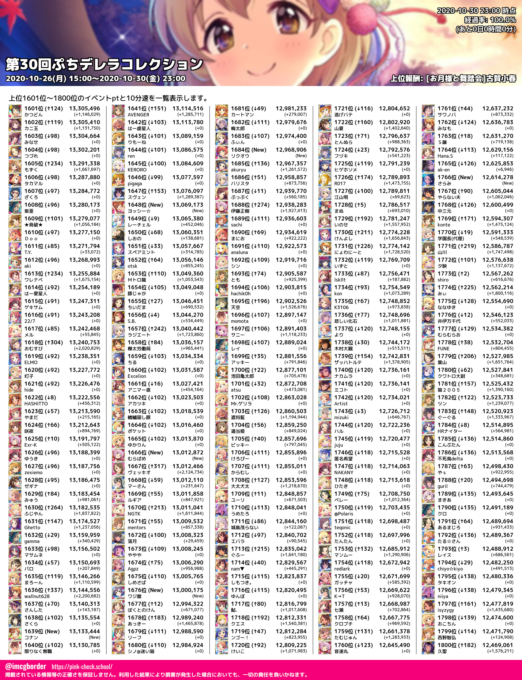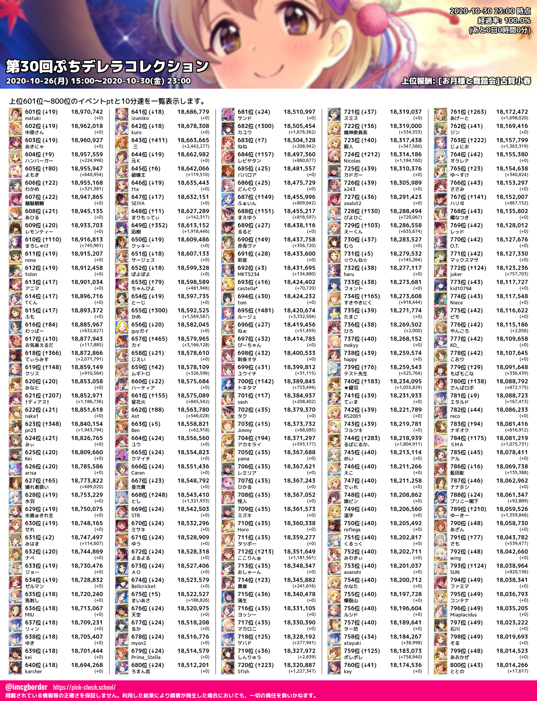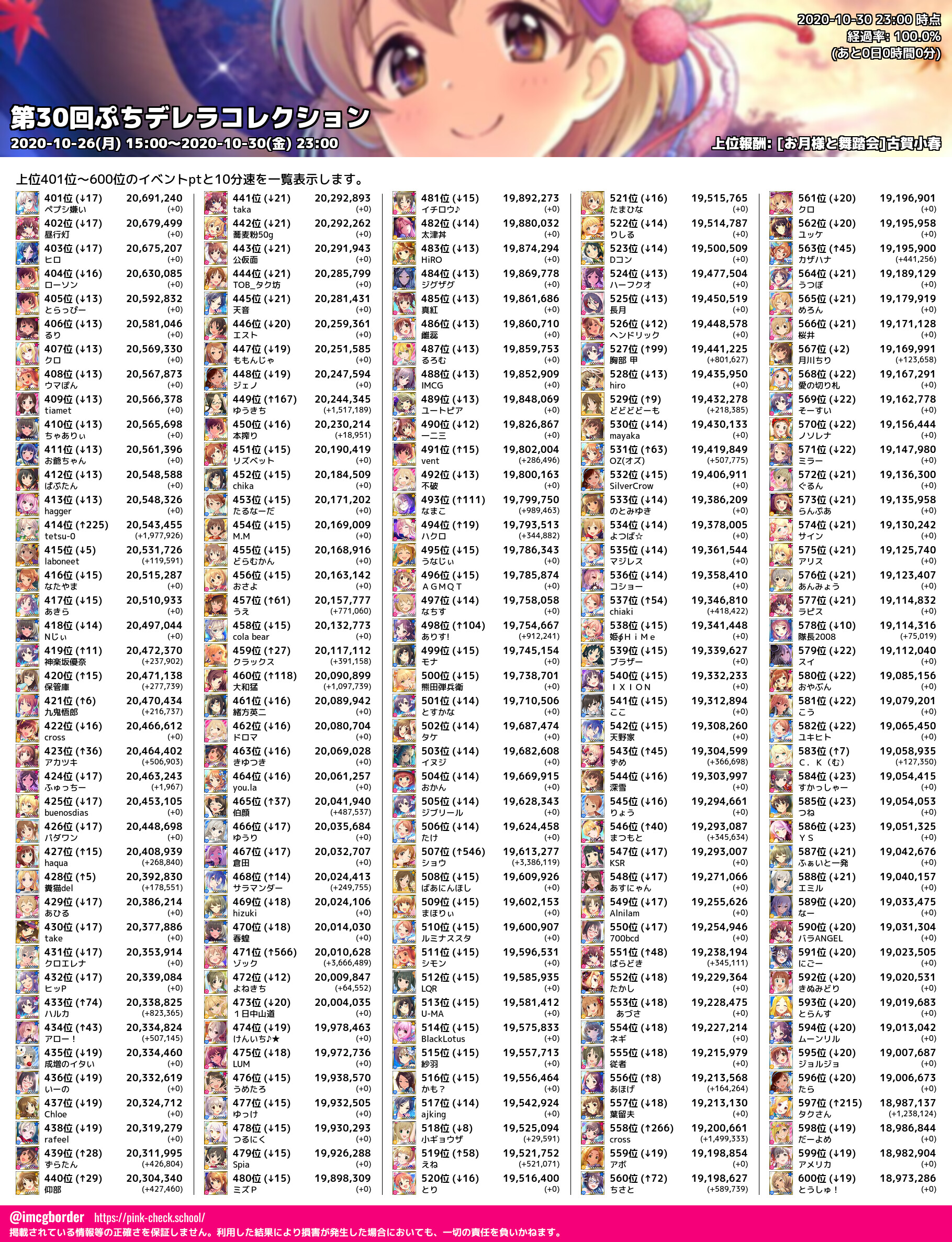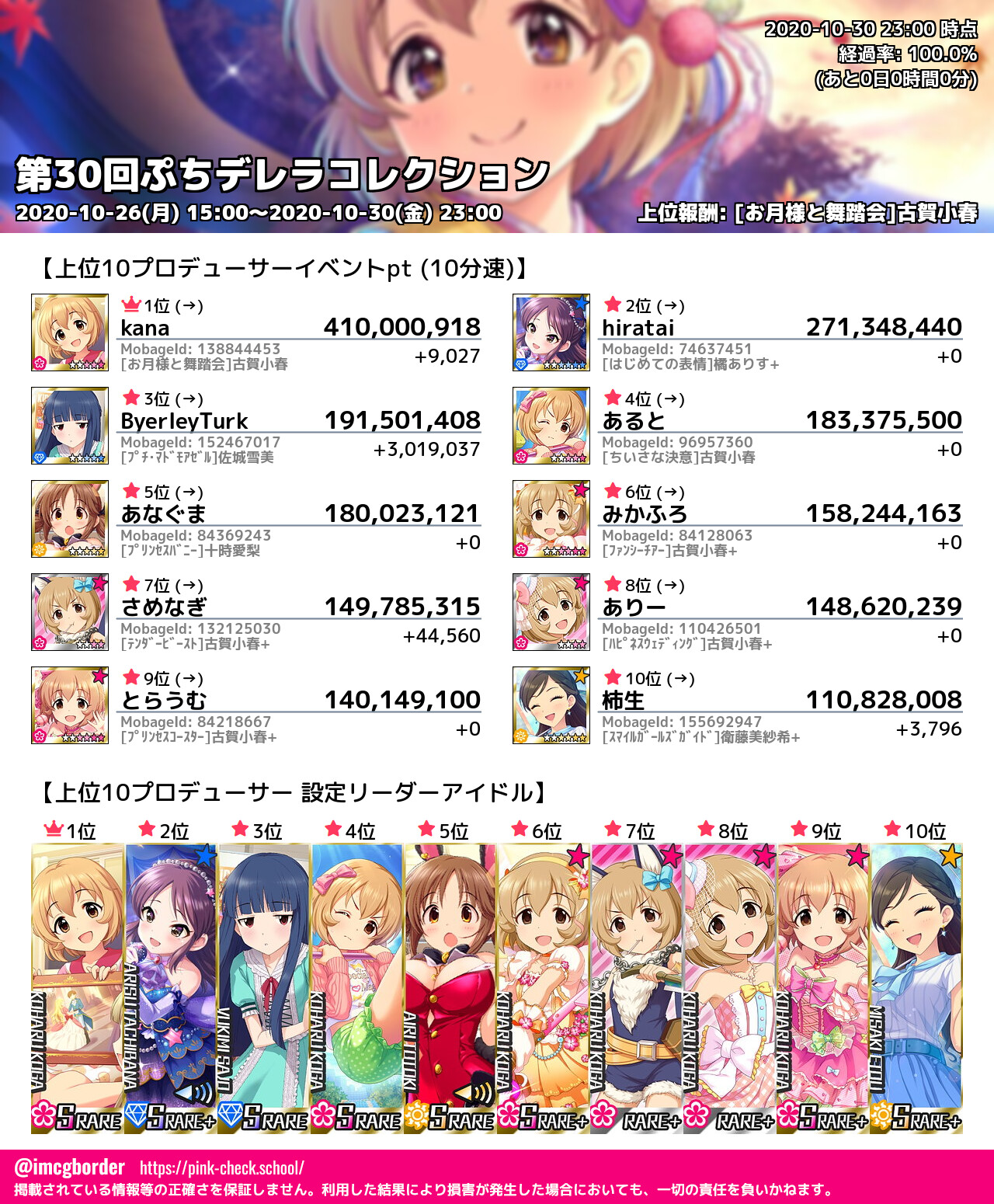 上位プロデューサースコア (2020-10-30 23:00 時点)