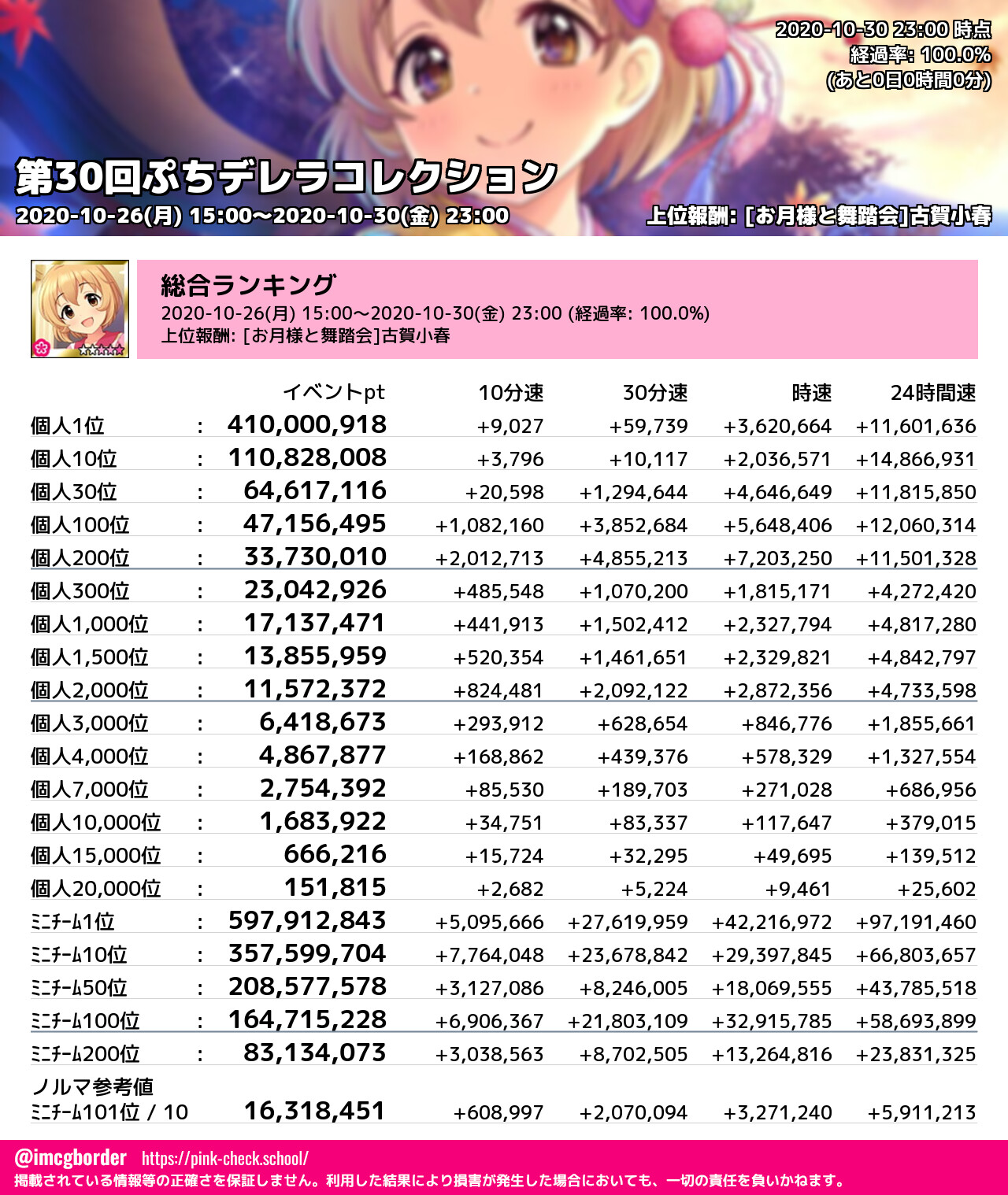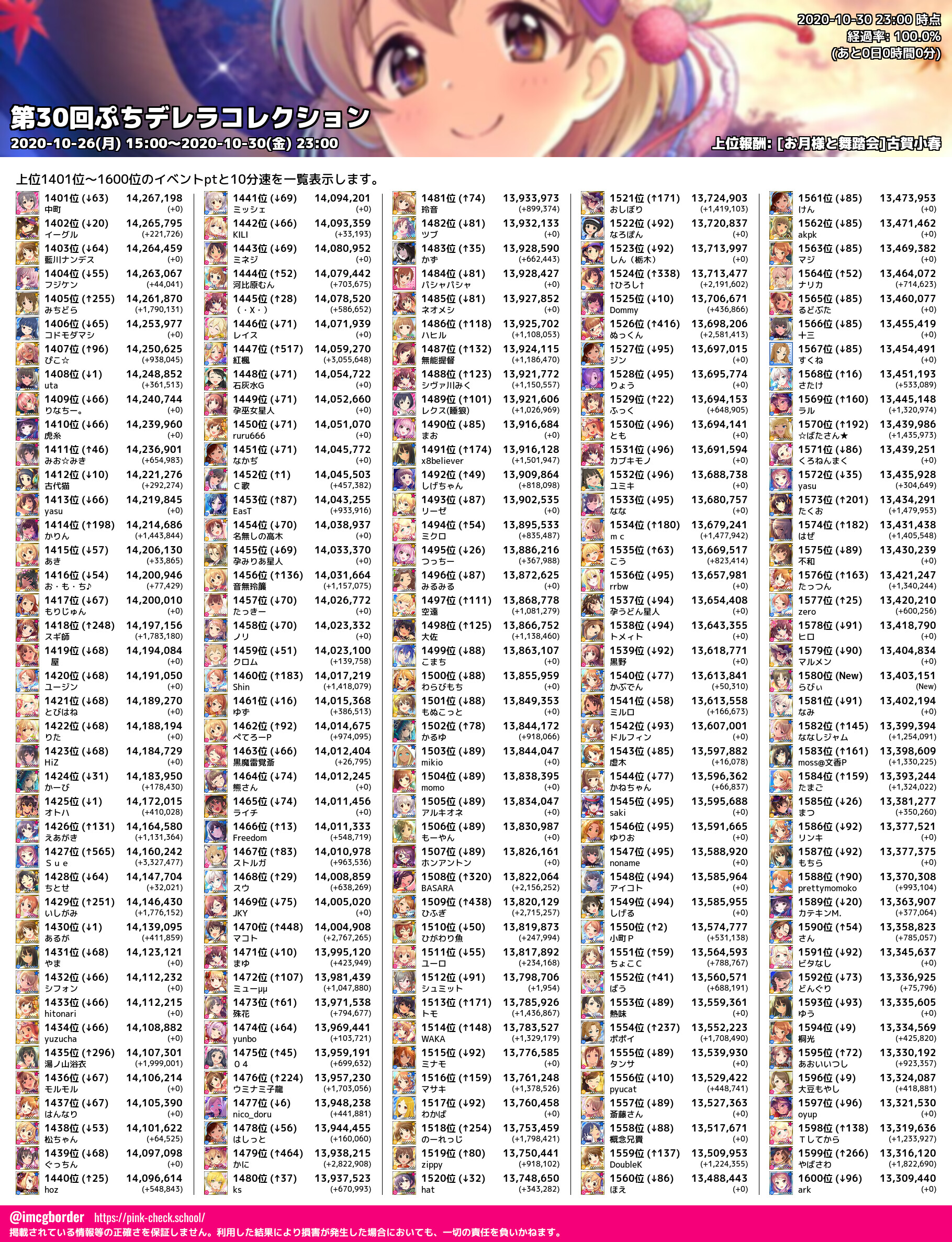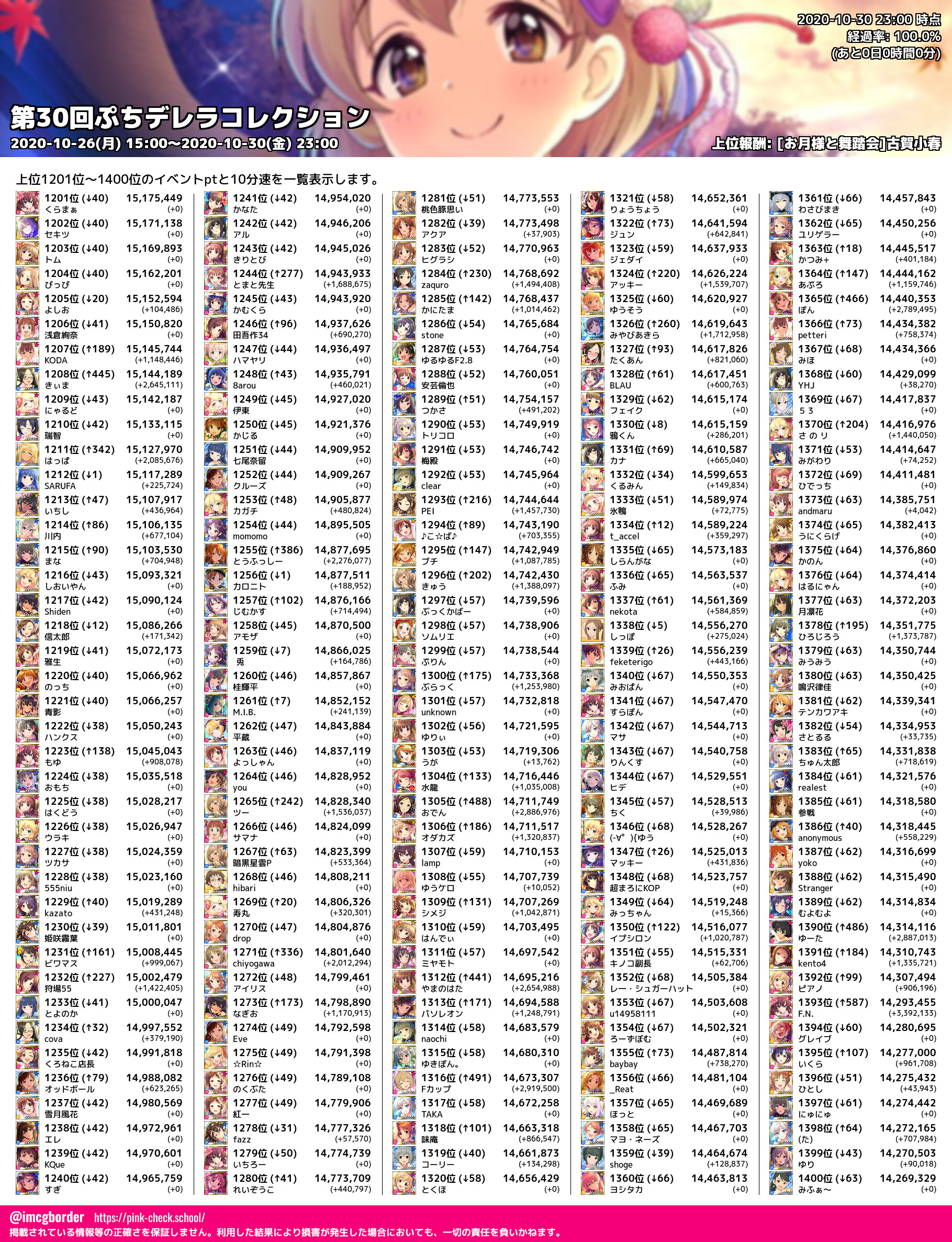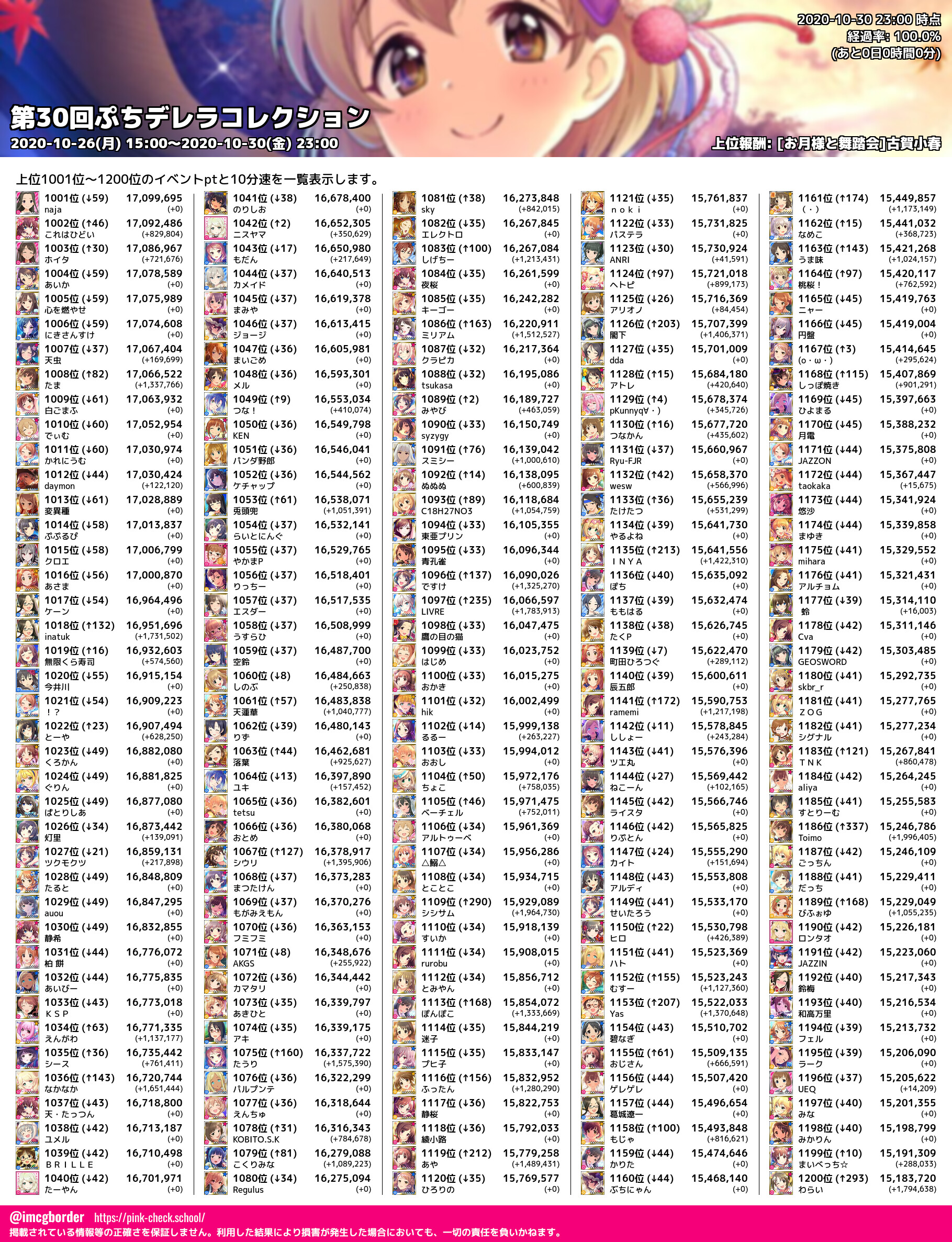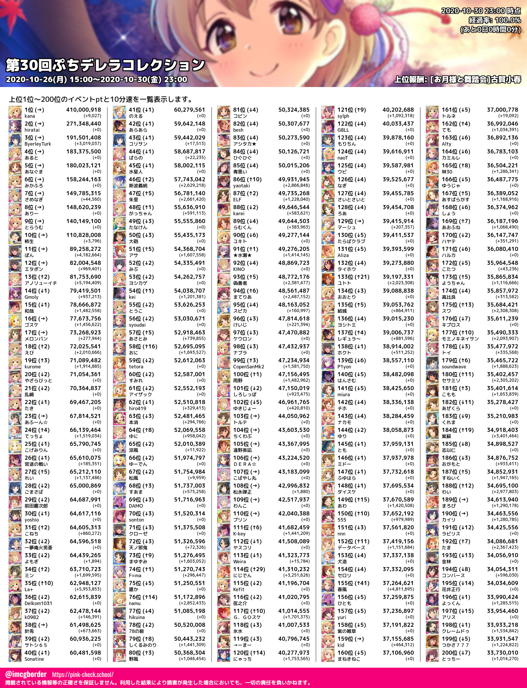 上位プロデューサースコア (2020-10-30 23:00 時点)