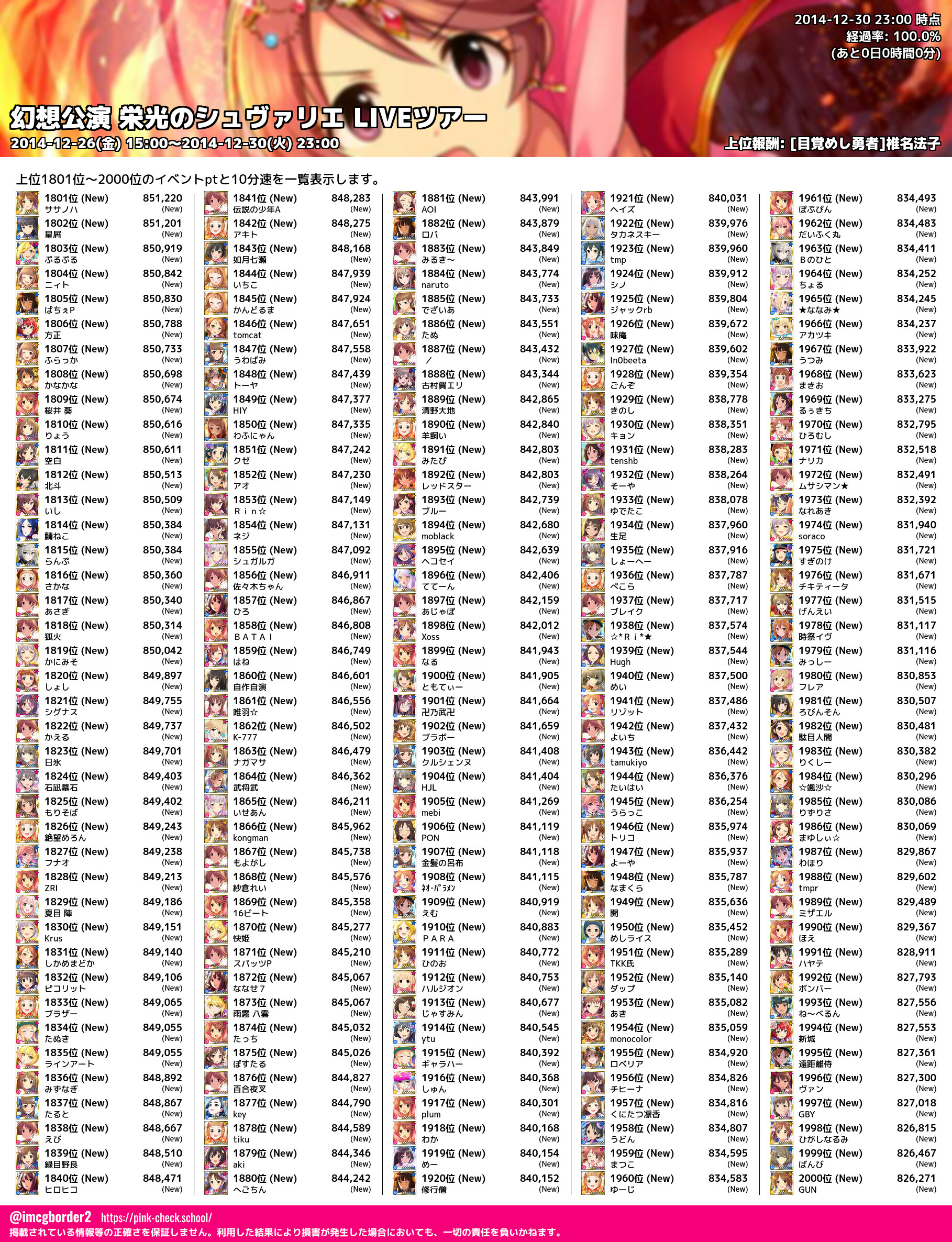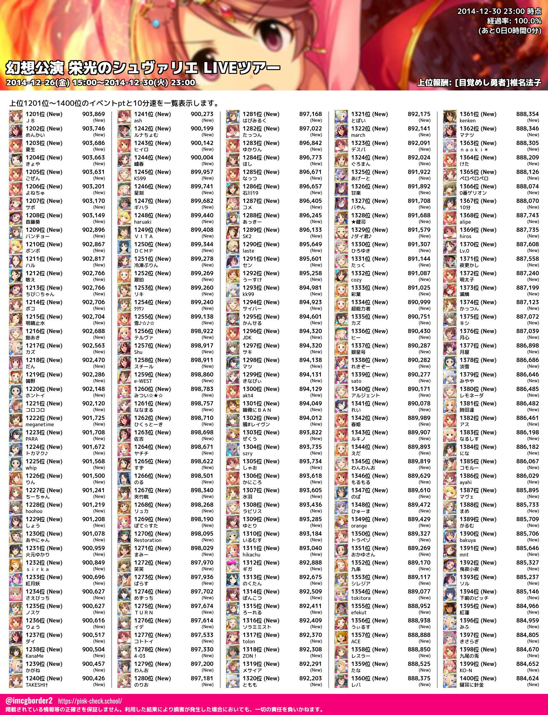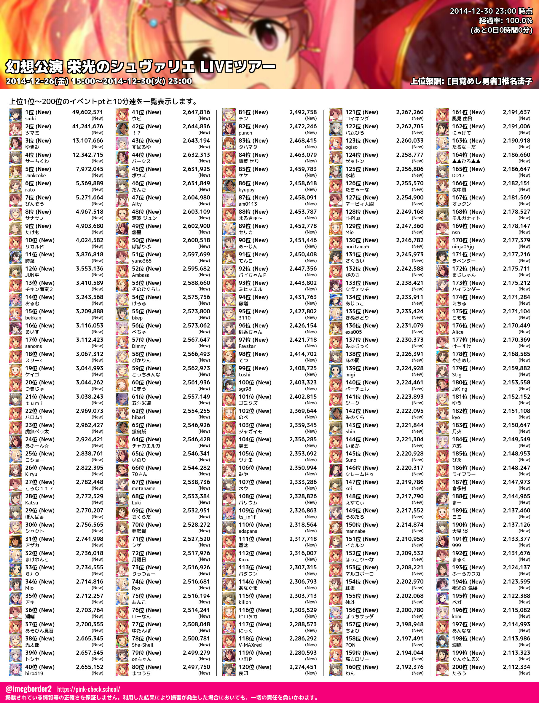 | 開催期間 | 2014-12-26(金) 15:00~2014-12-30(火) 23:00 |