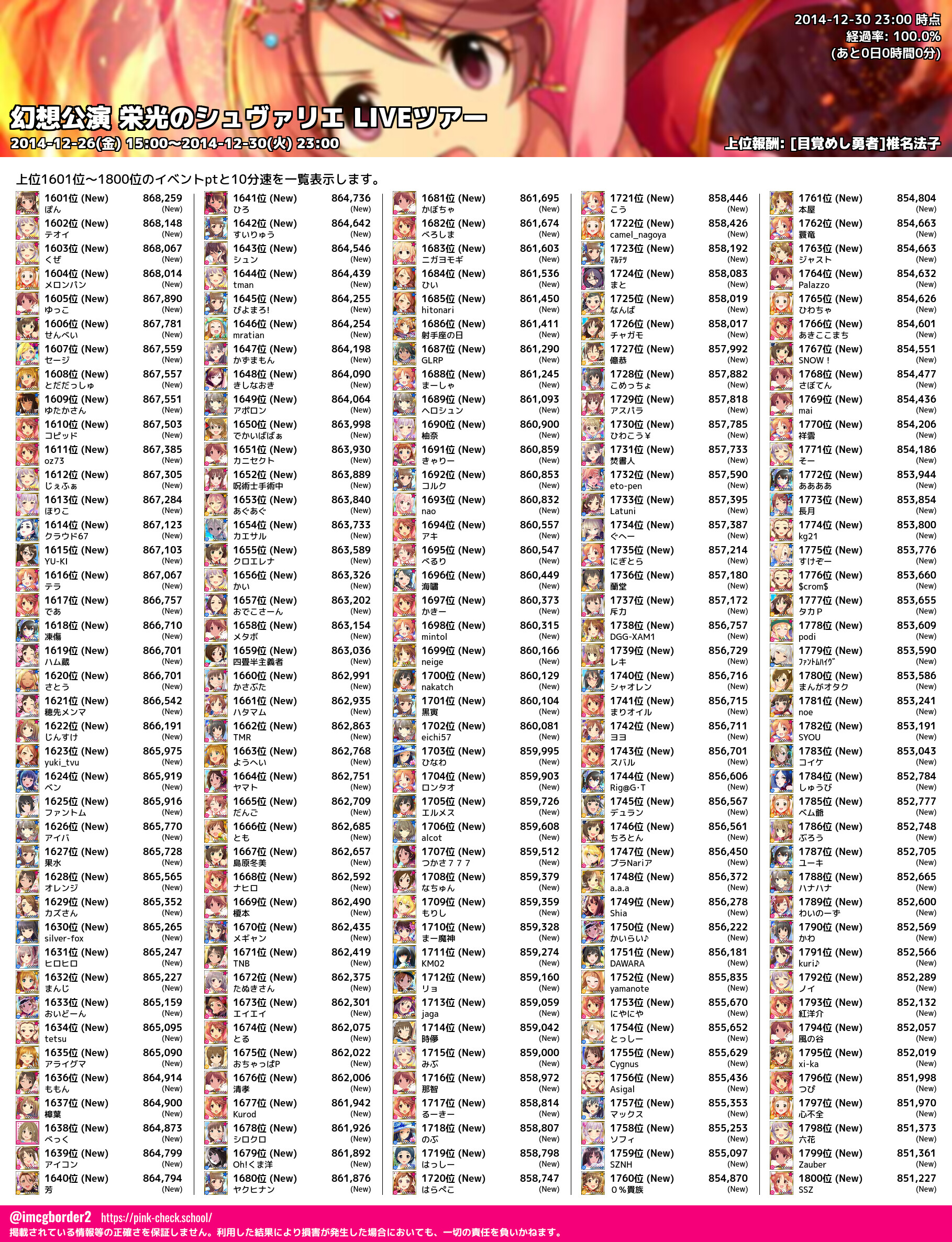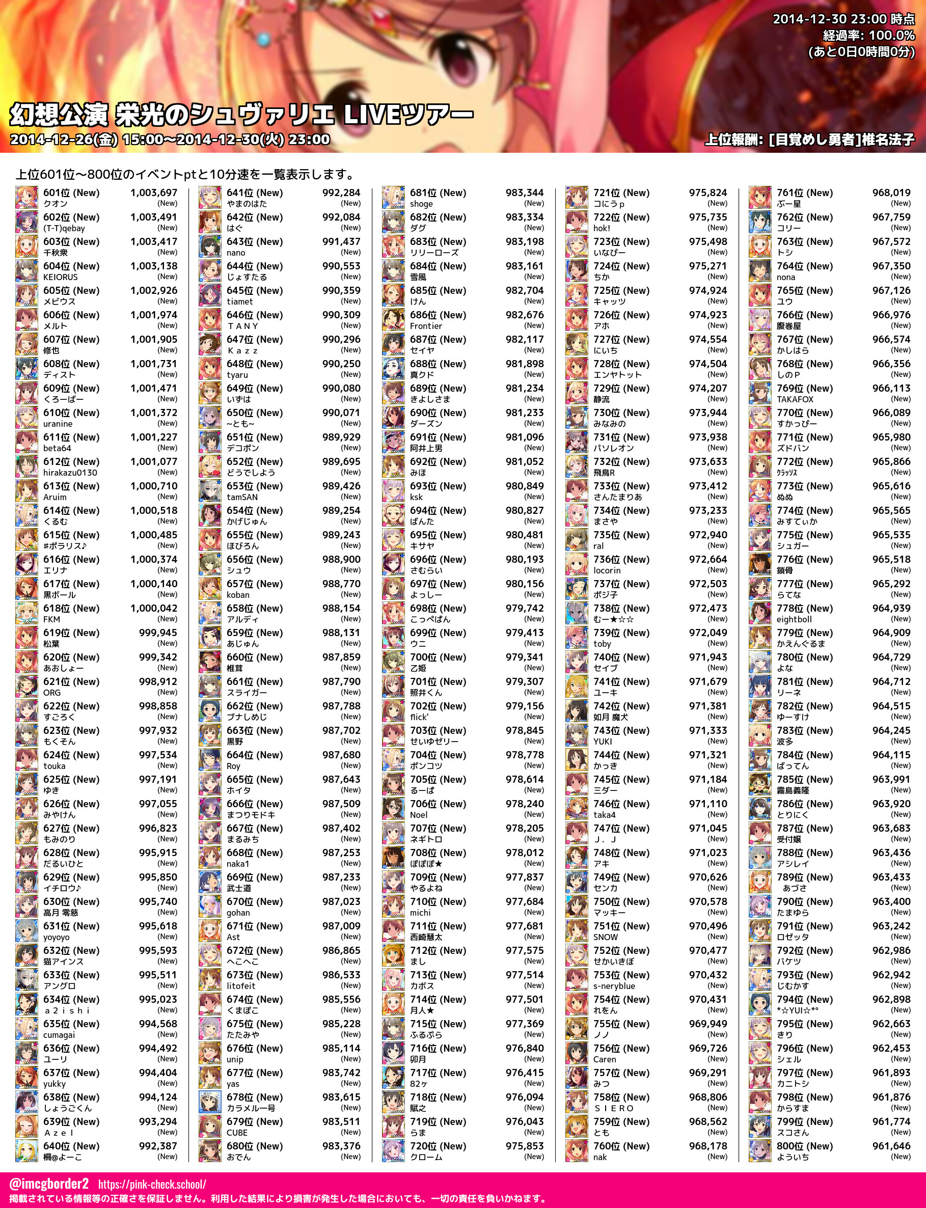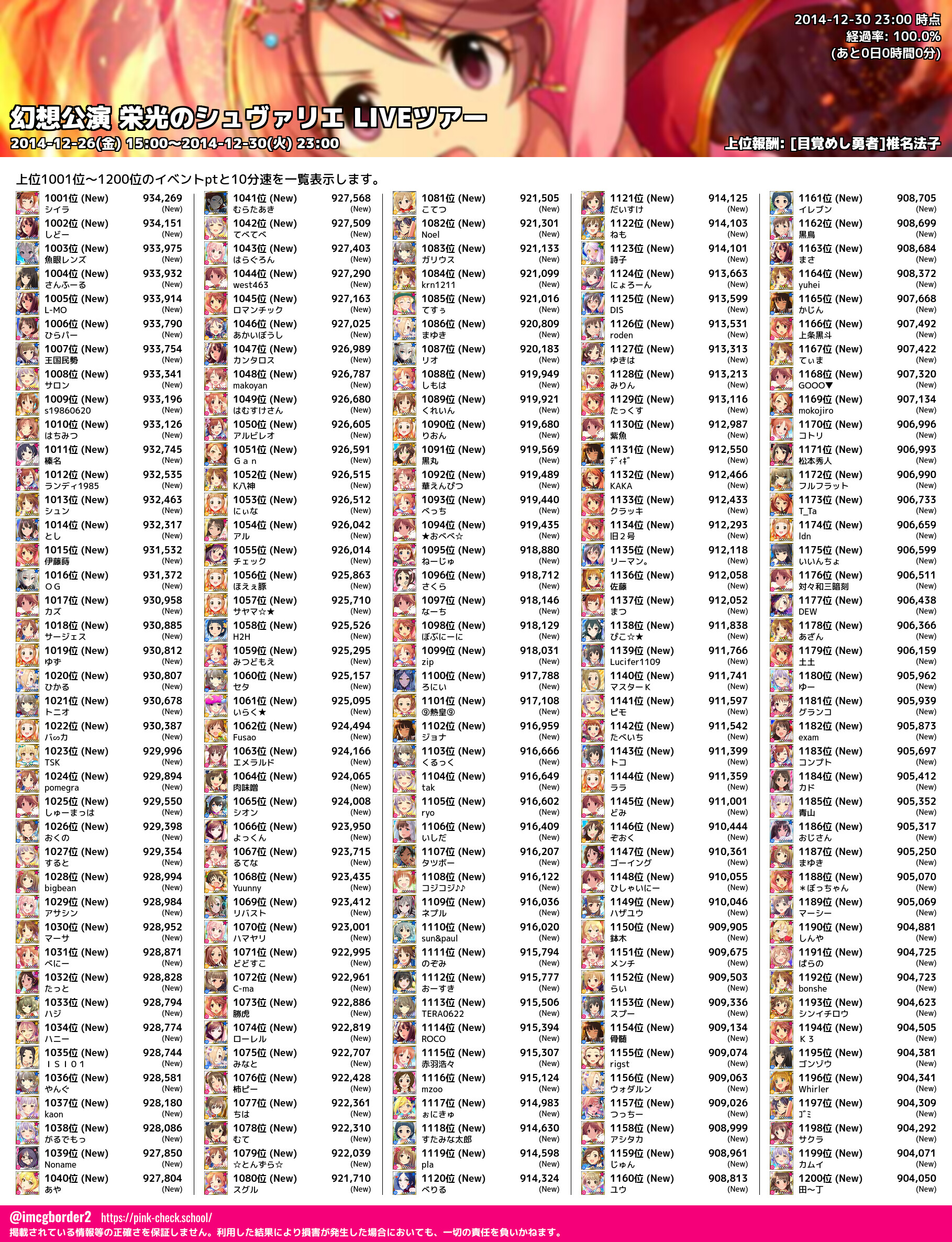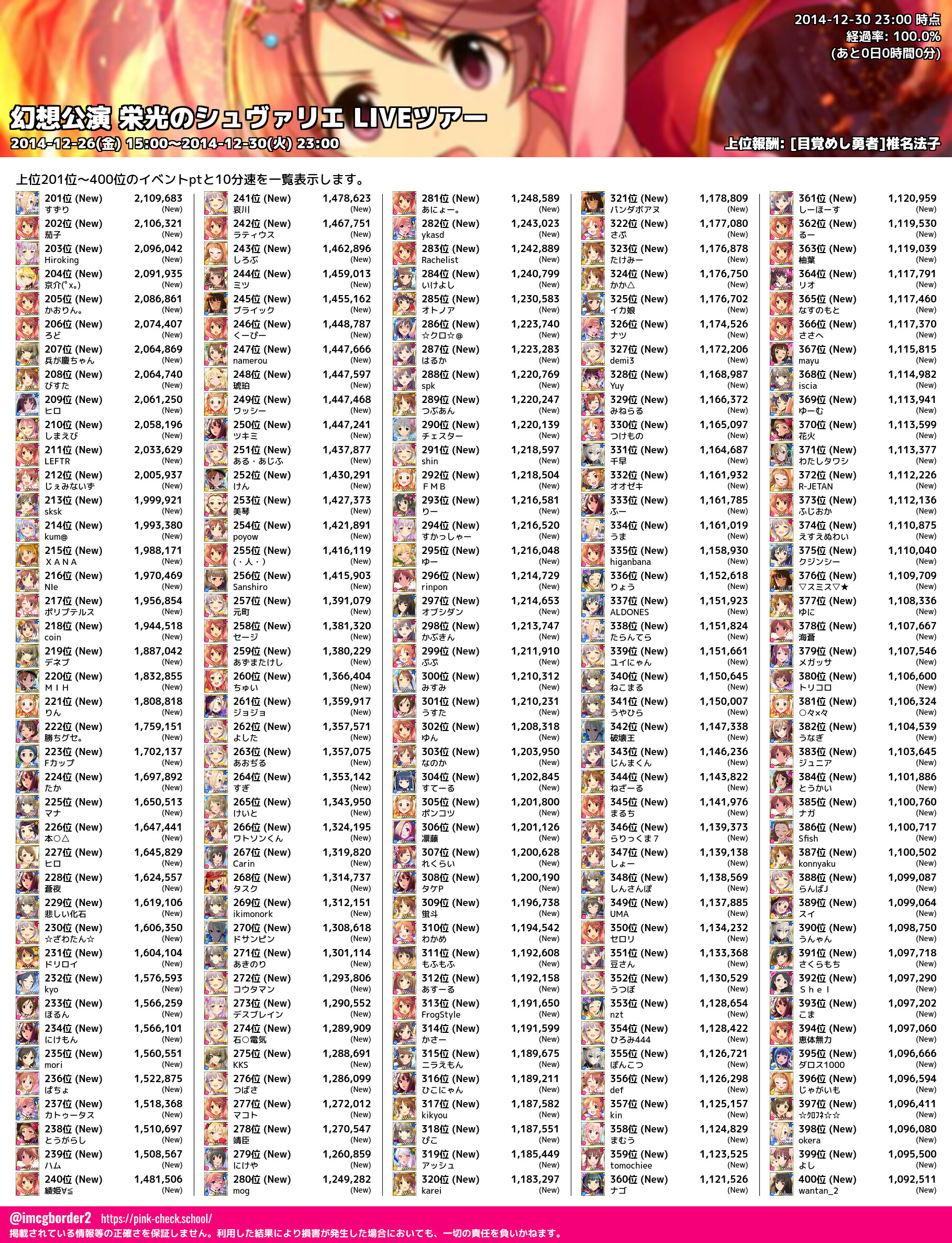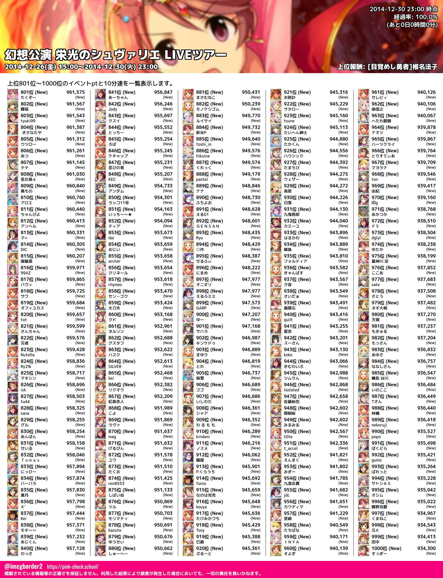 上位プロデューサースコア (2014-12-30 23:00 時点)