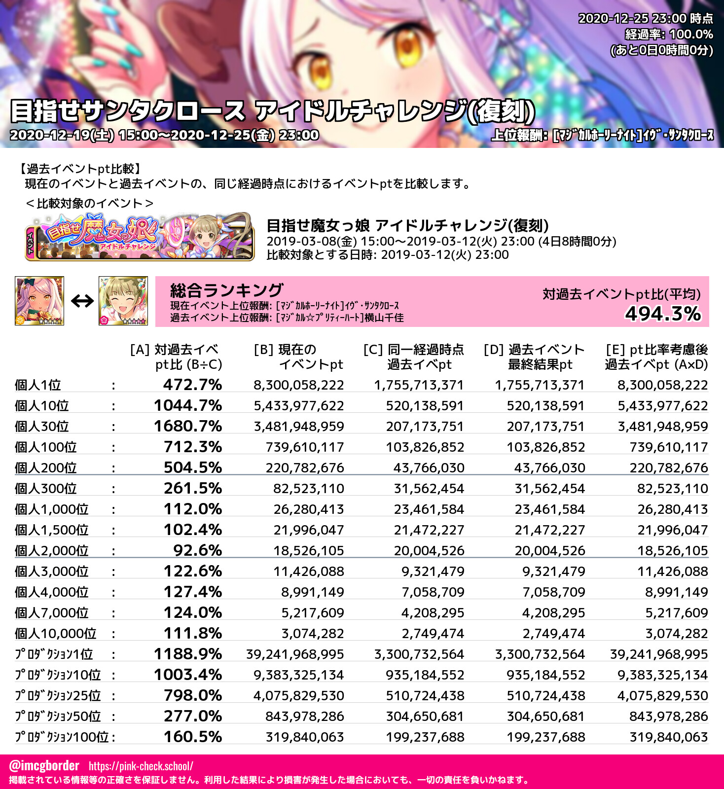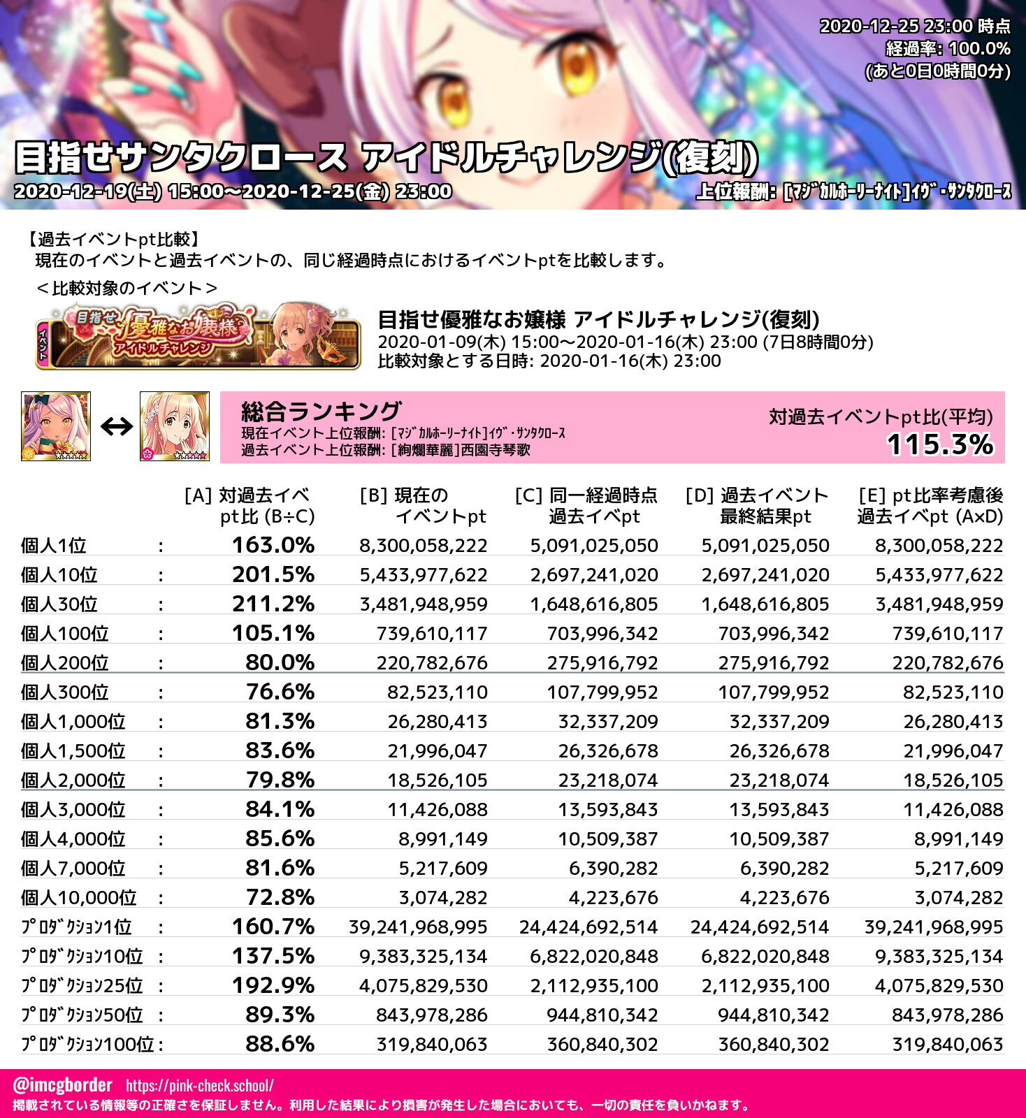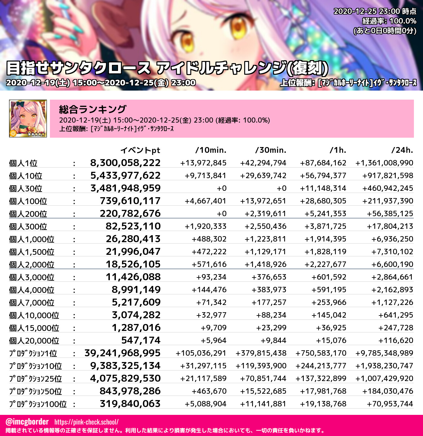 目指せサンタクロース アイドルチャレンジ(復刻) 結果集計完了