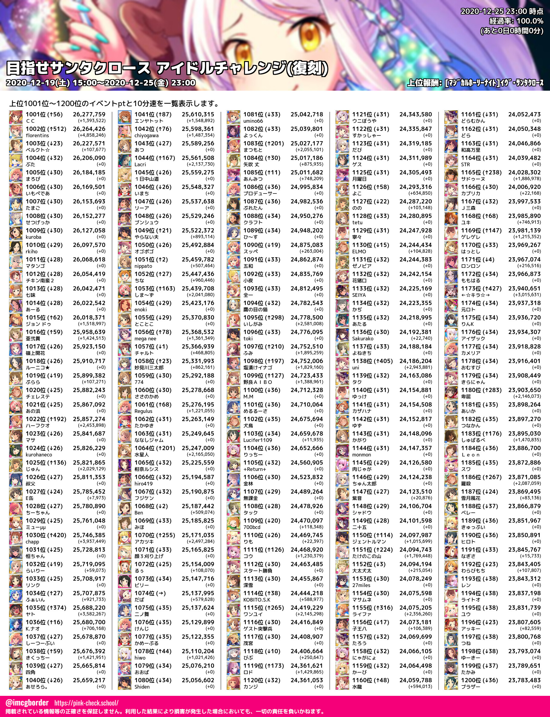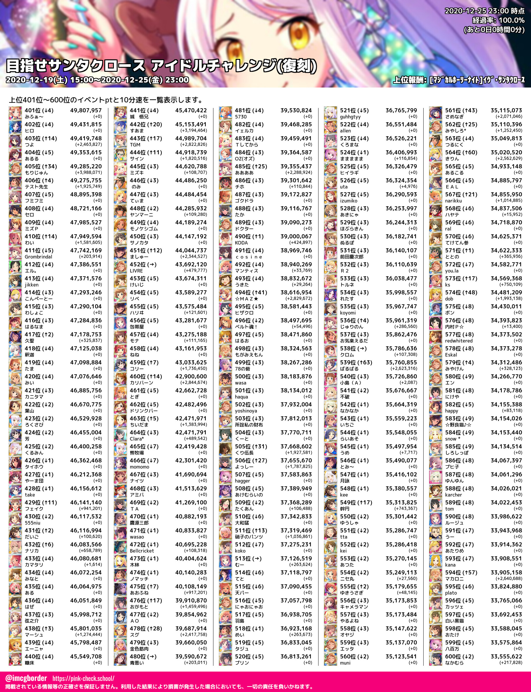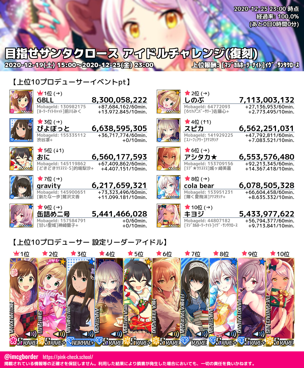 上位プロデューサースコア (2020-12-25 23:00 時点)