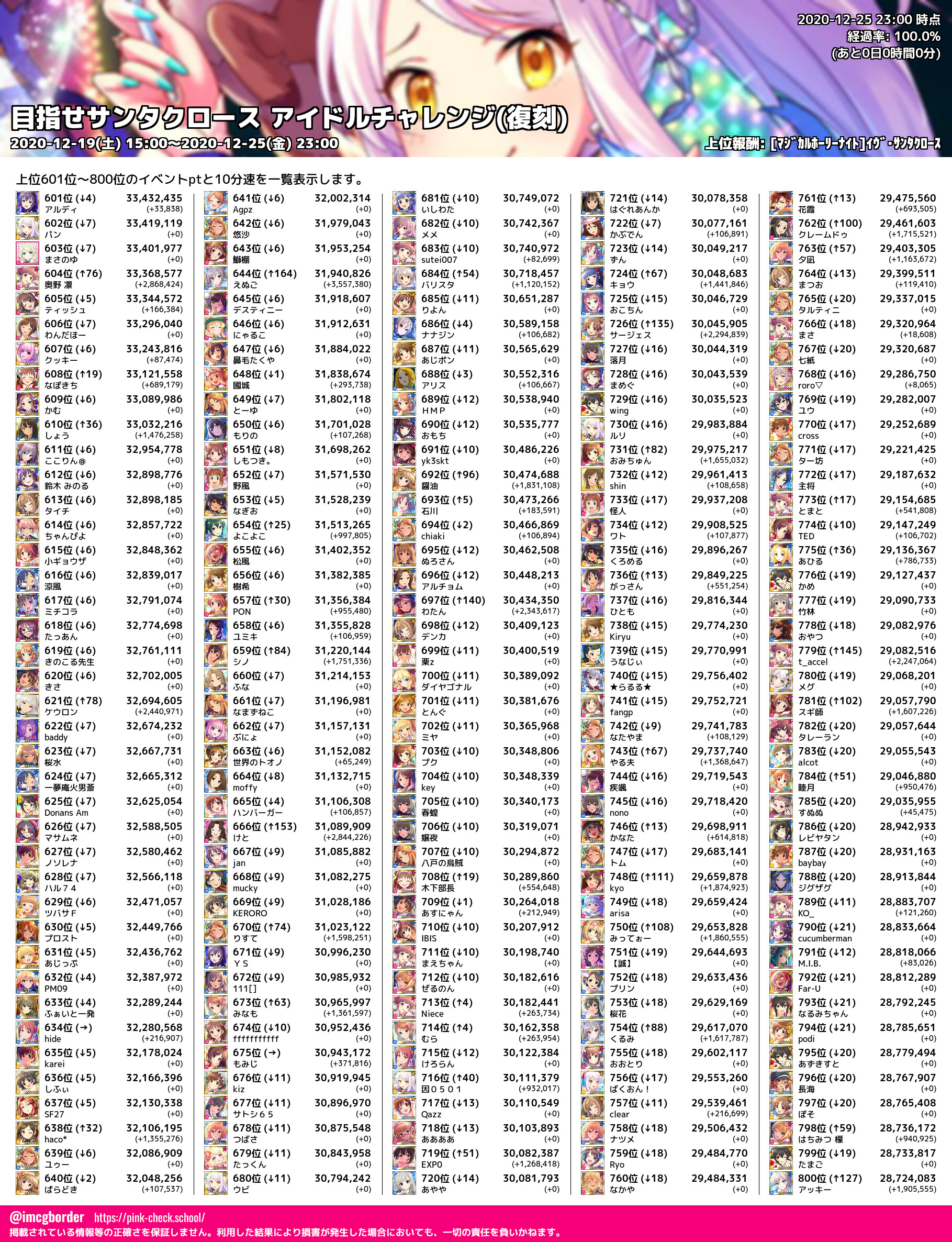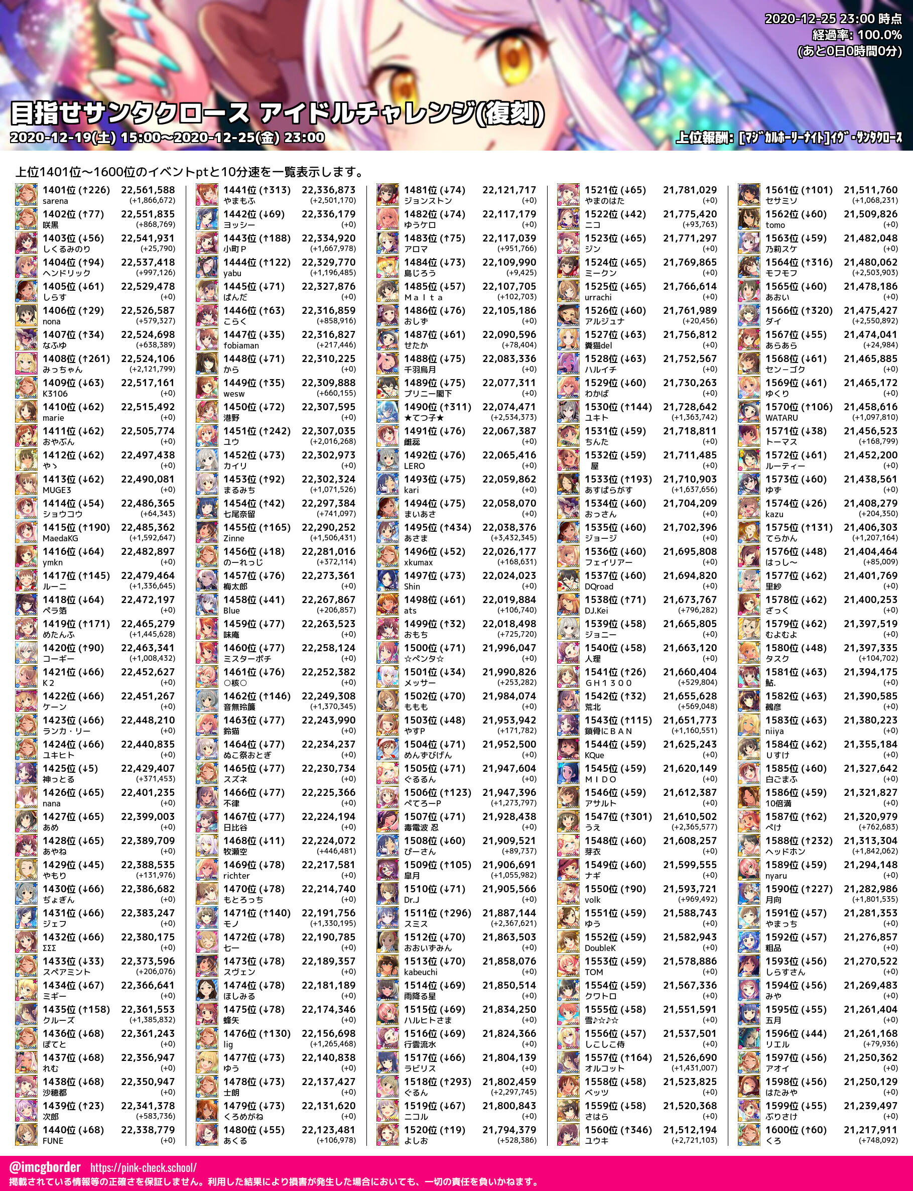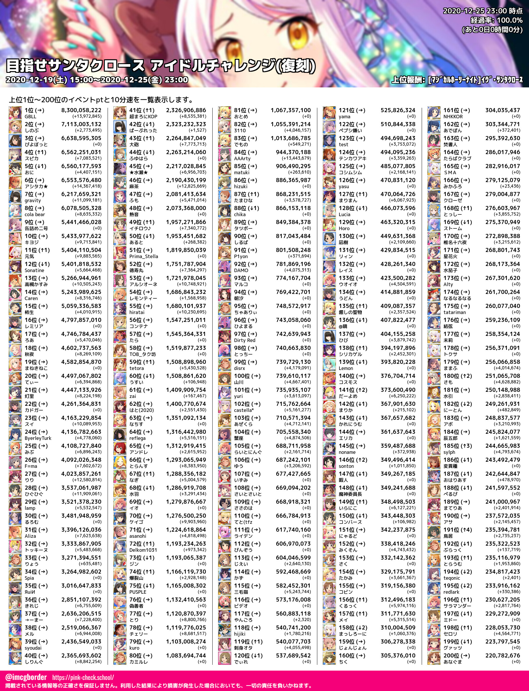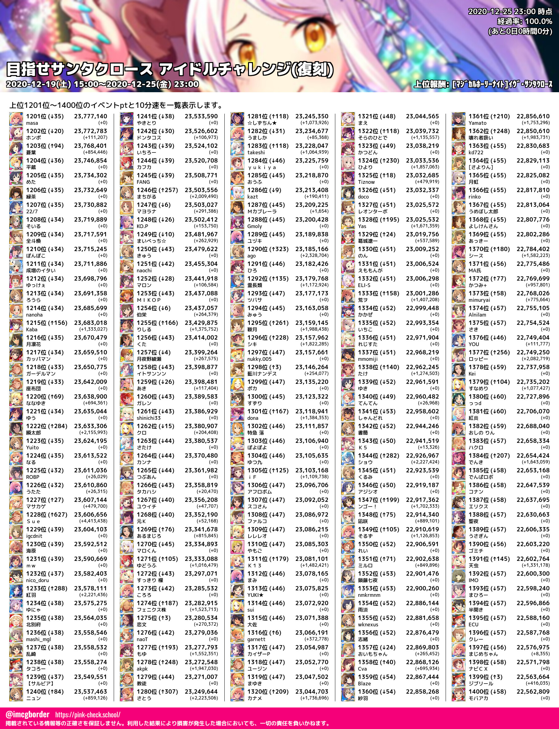 上位プロデューサースコア (2020-12-25 23:00 時点)