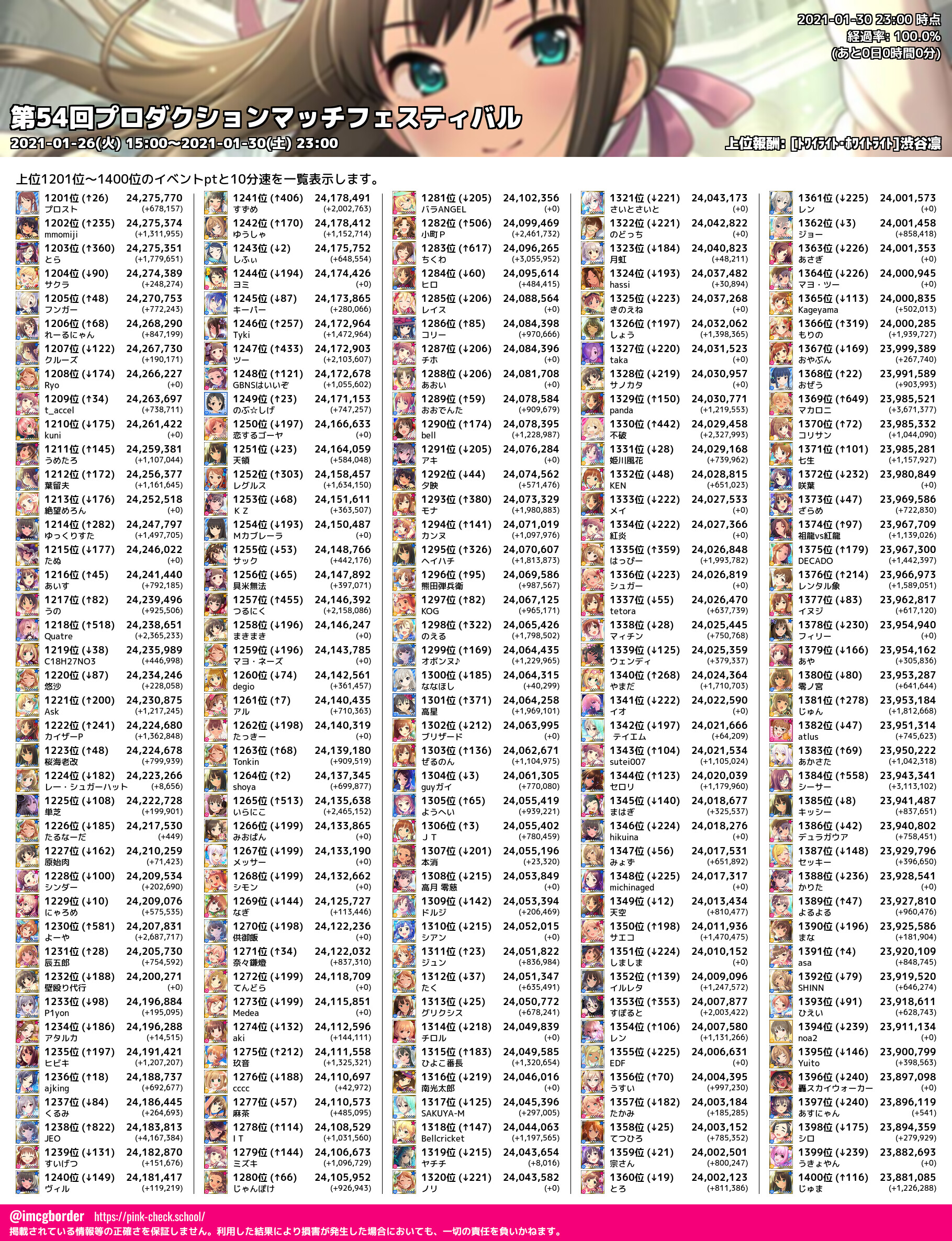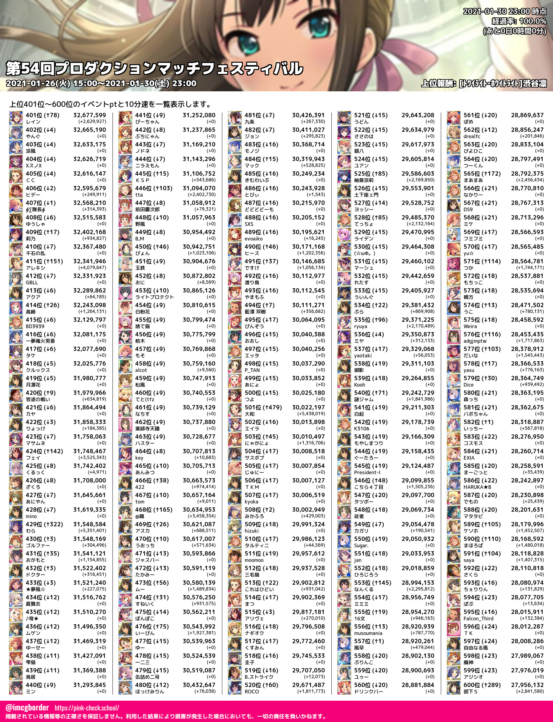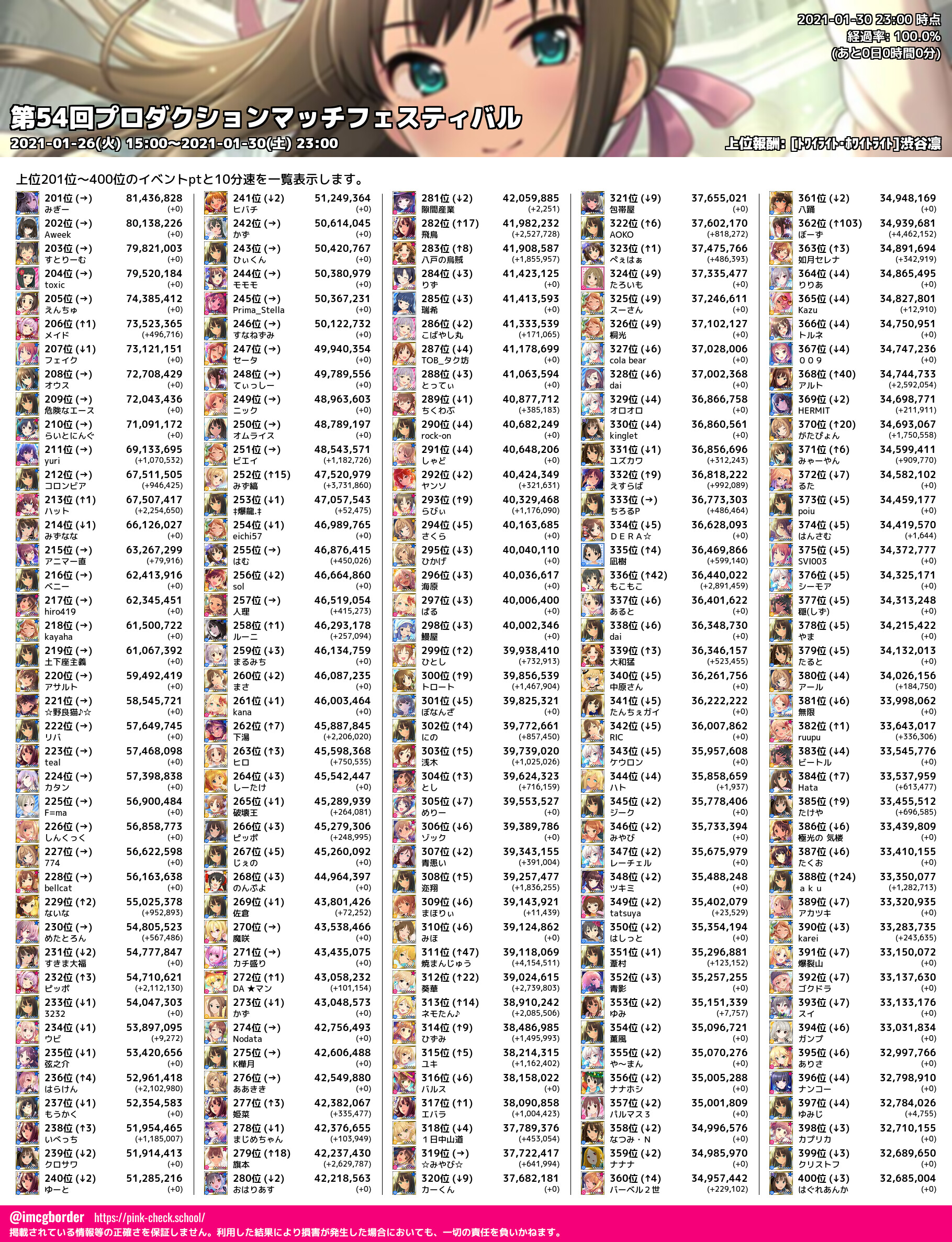 上位プロデューサースコア (2021-01-30 23:00 時点)