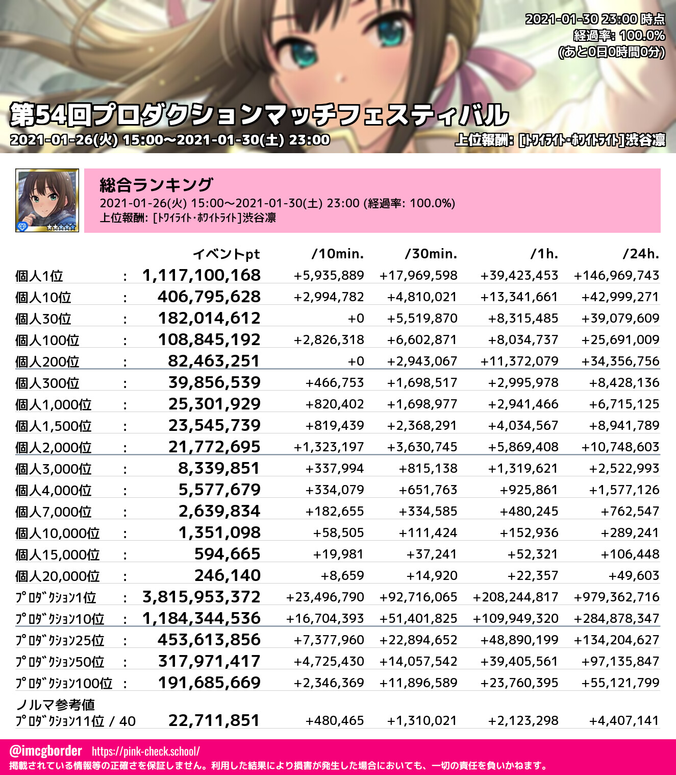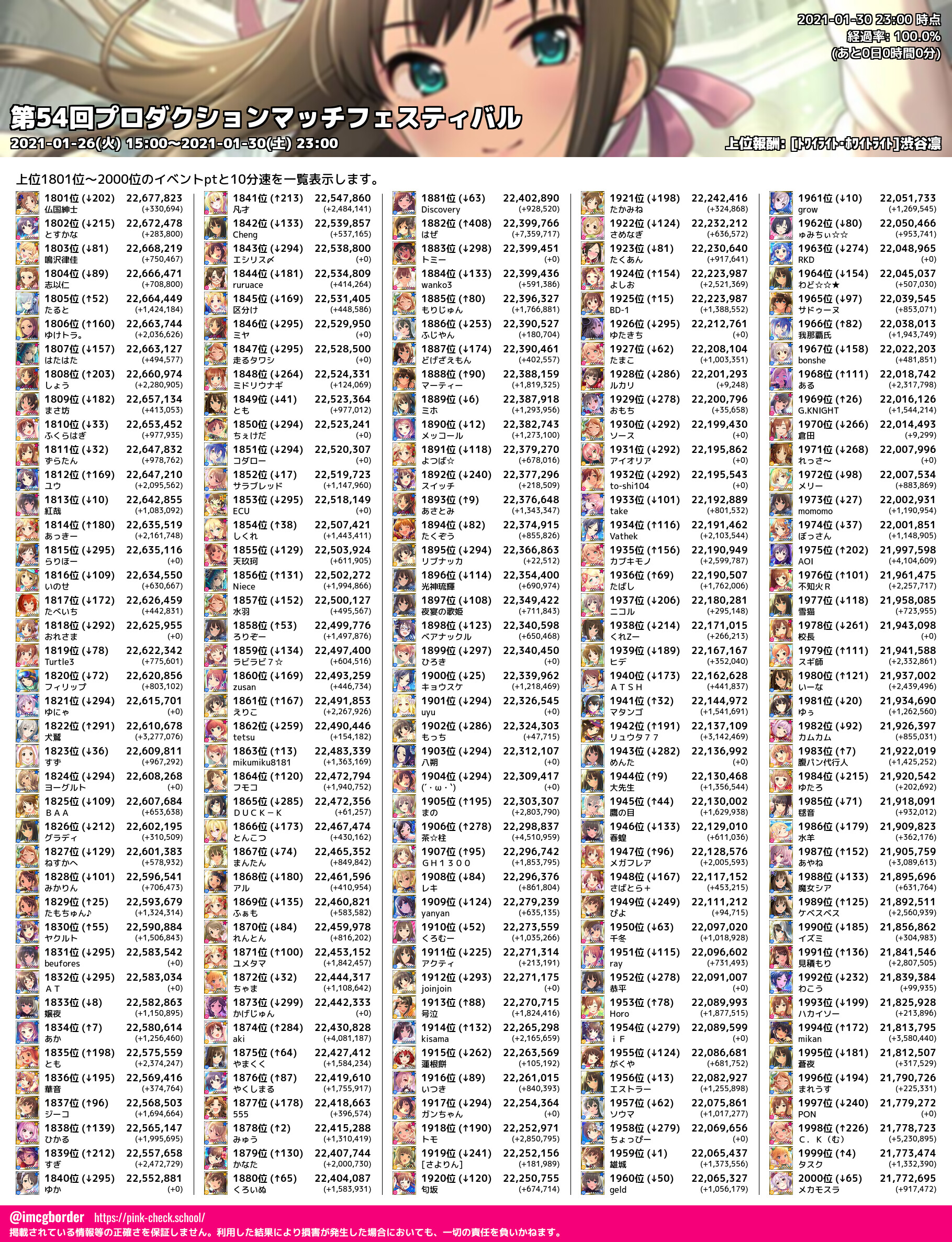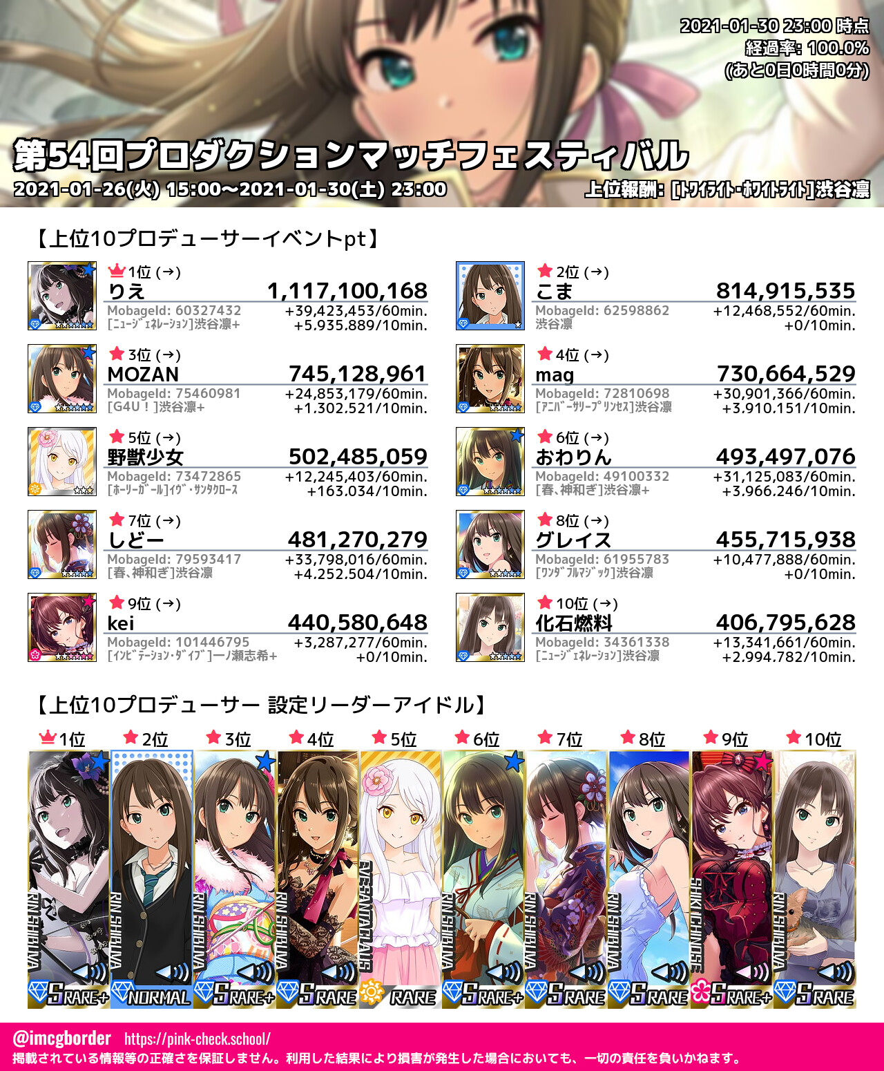 上位プロデューサースコア (2021-01-30 23:00 時点)