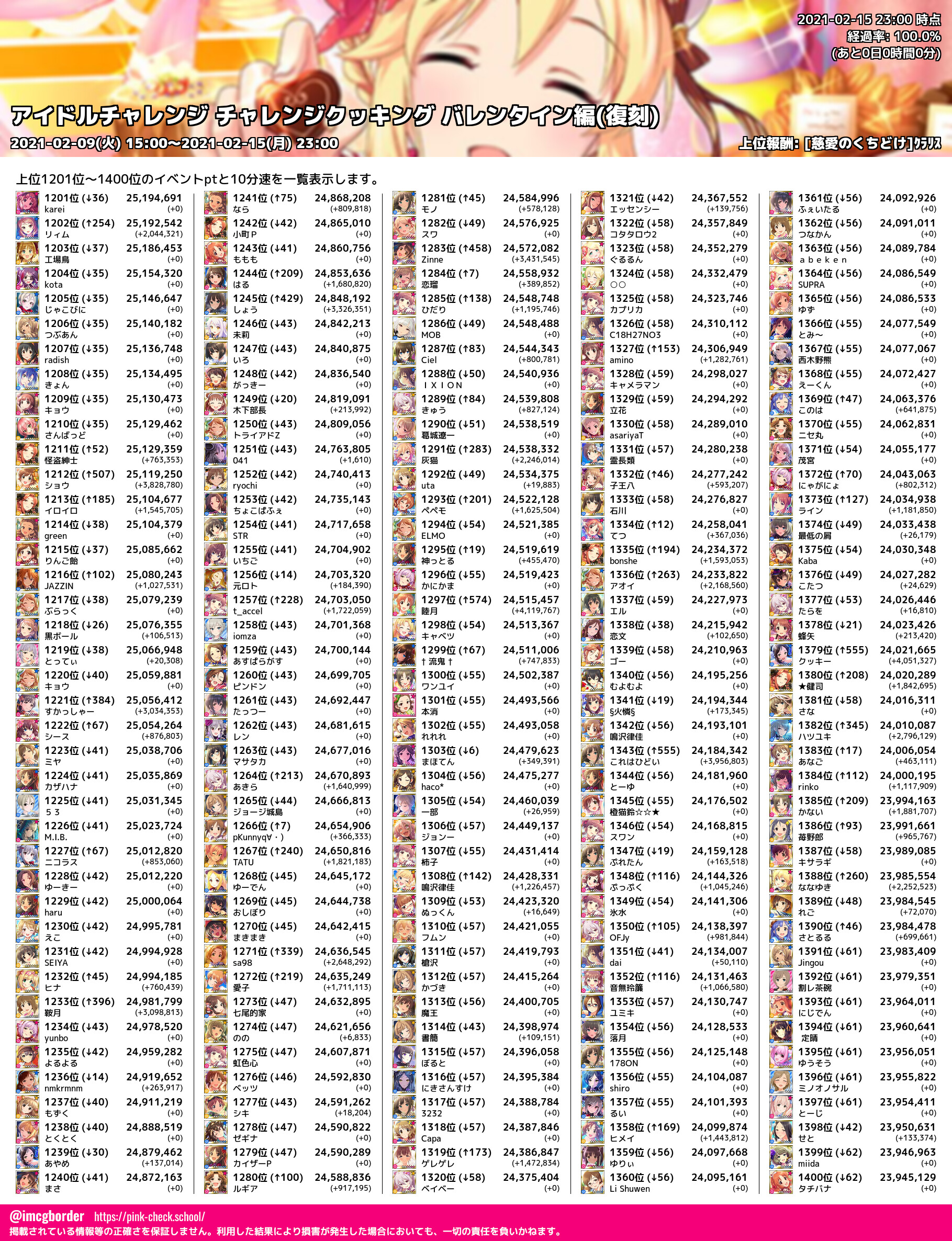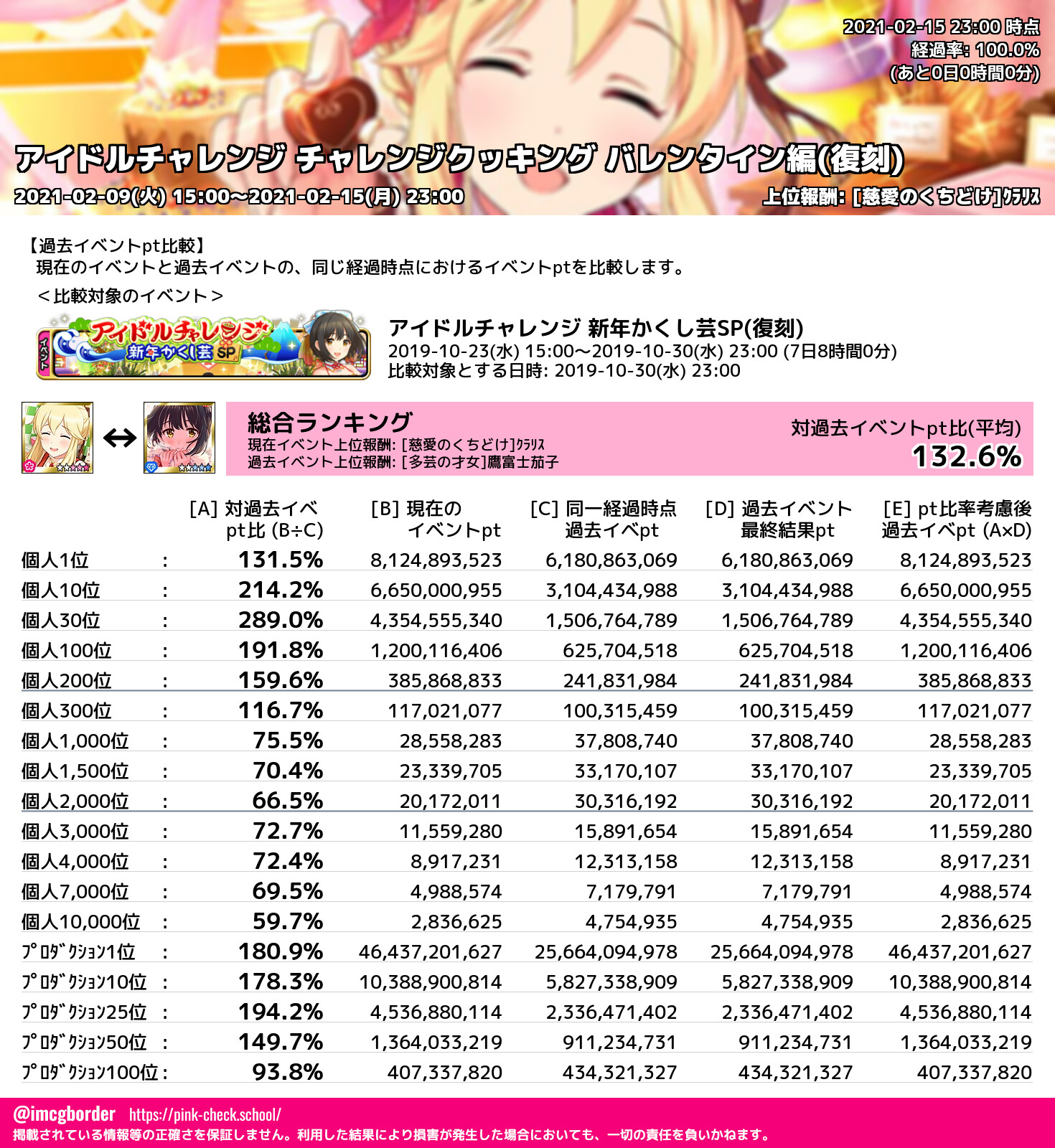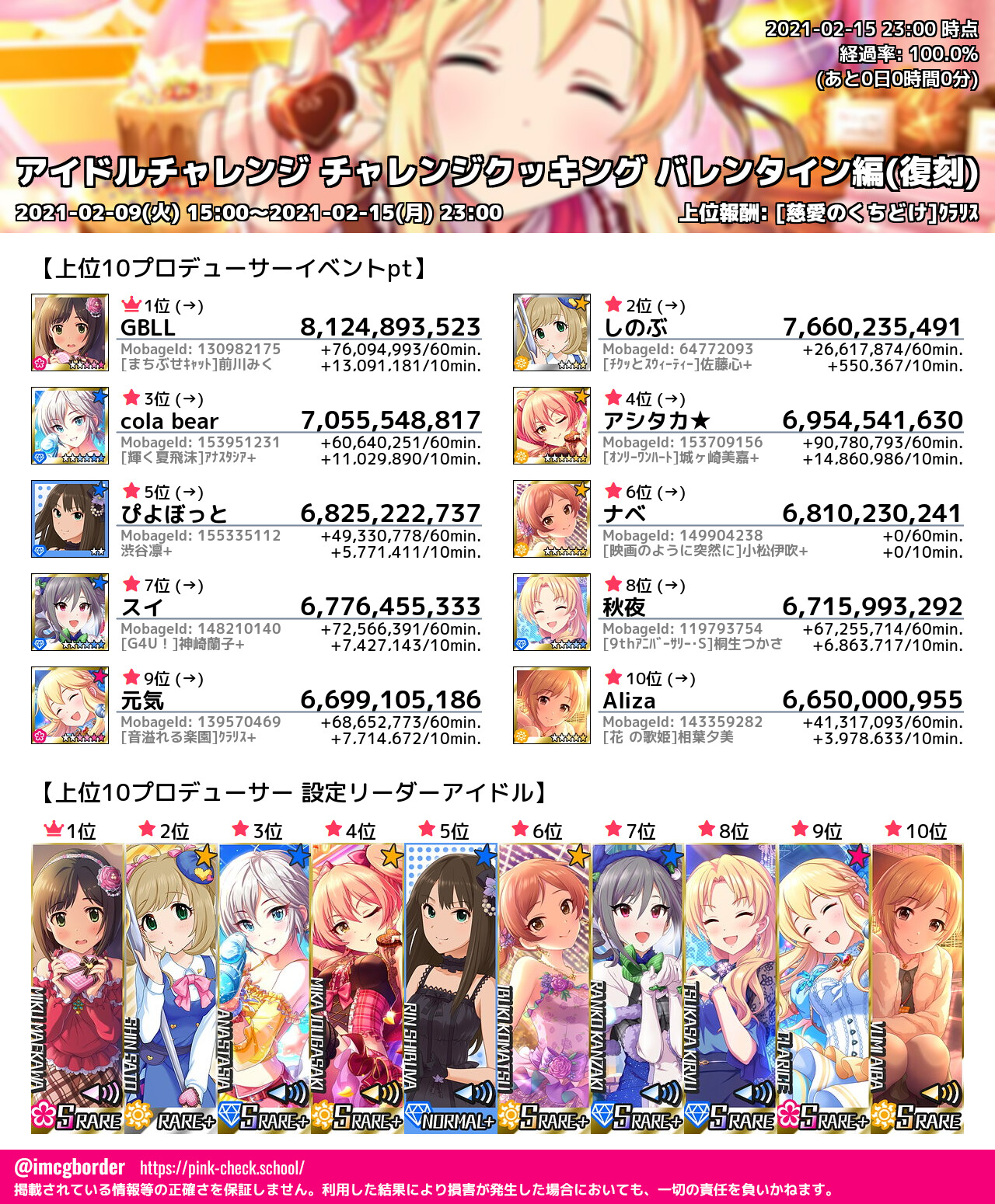 アイドルチャレンジ チャレンジクッキング バレンタイン編(復刻) 結果集計完了